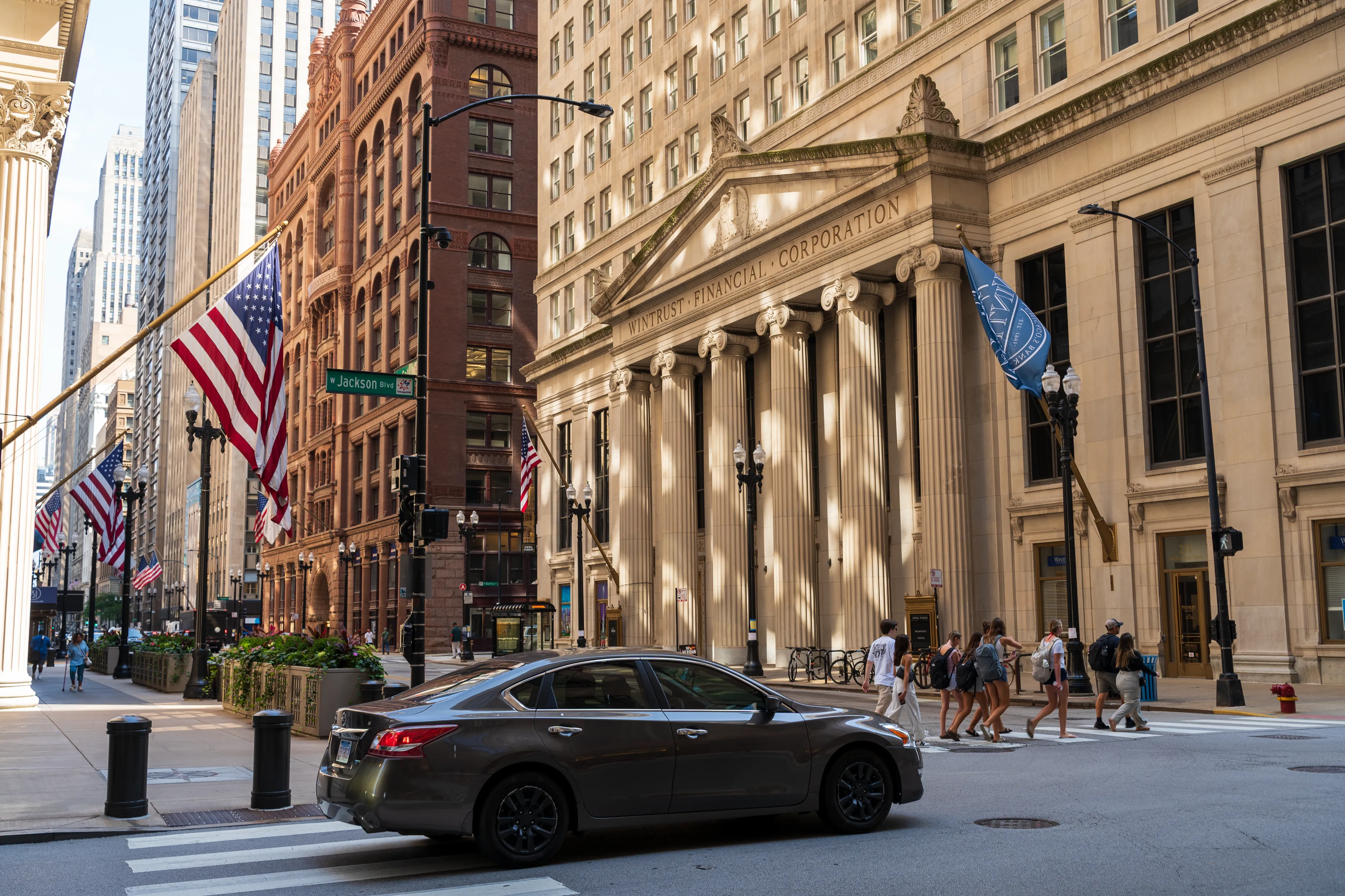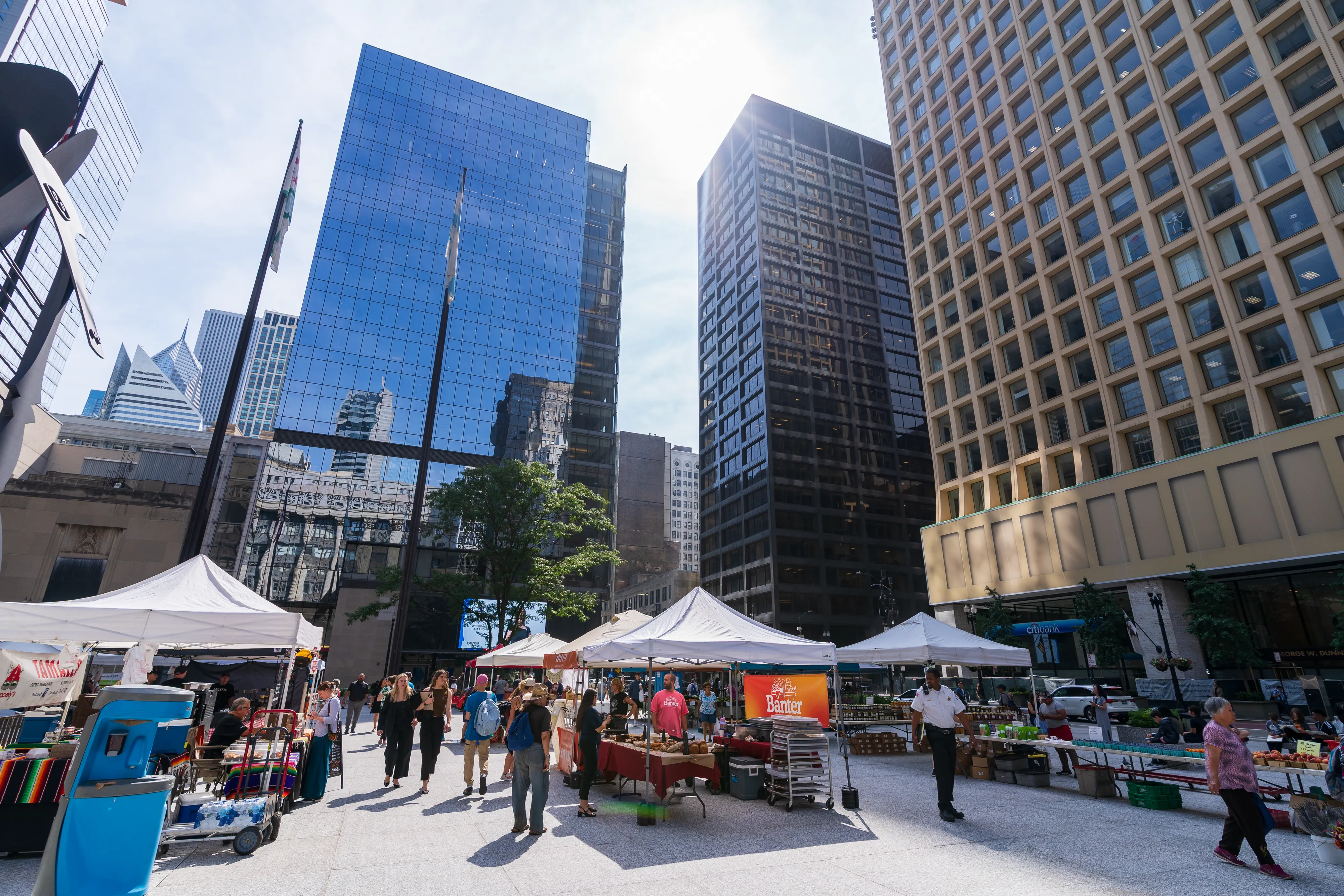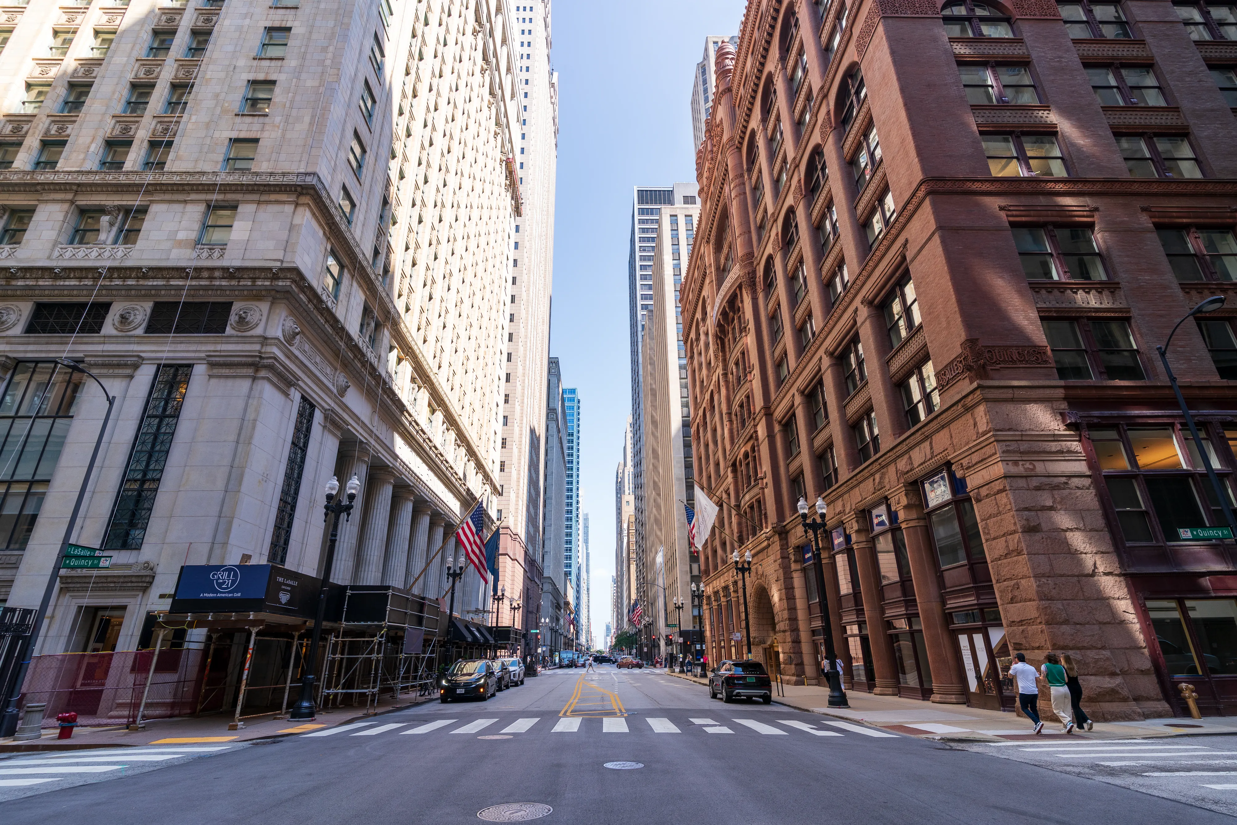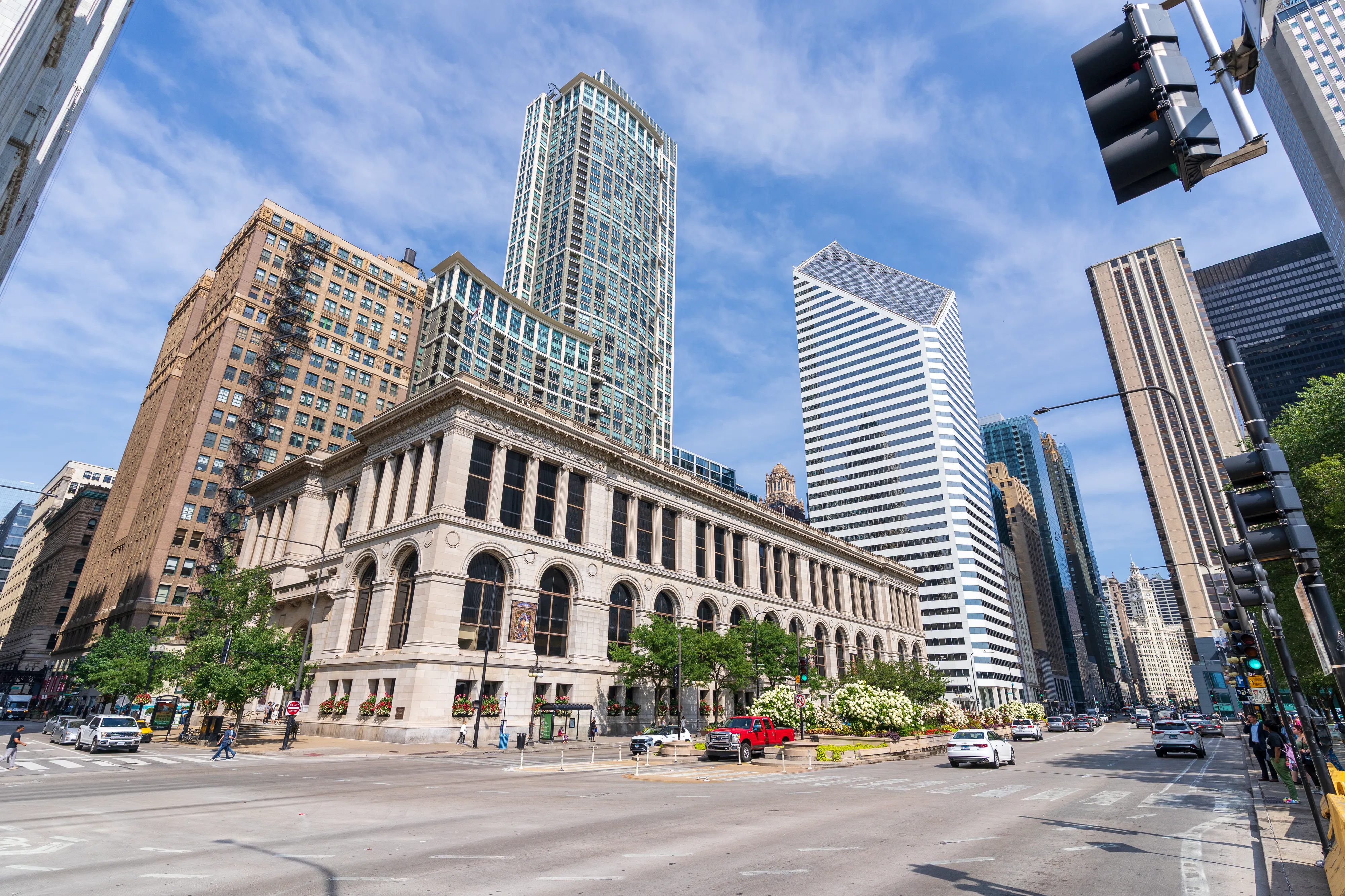 Auch der dritte Tag in Chicago startet mit einem leckeren und reichlich belegten Bagel. Anschließend fahren wir mit der Hochbahn auf dem “Loop”: Eine auf Stelzen über der Straße errichtete Ringbahn, die es bereits seit 1892 gibt. Insgesamt ist das Metro-System von Chicago eines der ältesten und größten der Welt. Wir fahren bis zum Chicago Board of Trade Building, welches durch seine Art Deco Fassade beeindruckt.