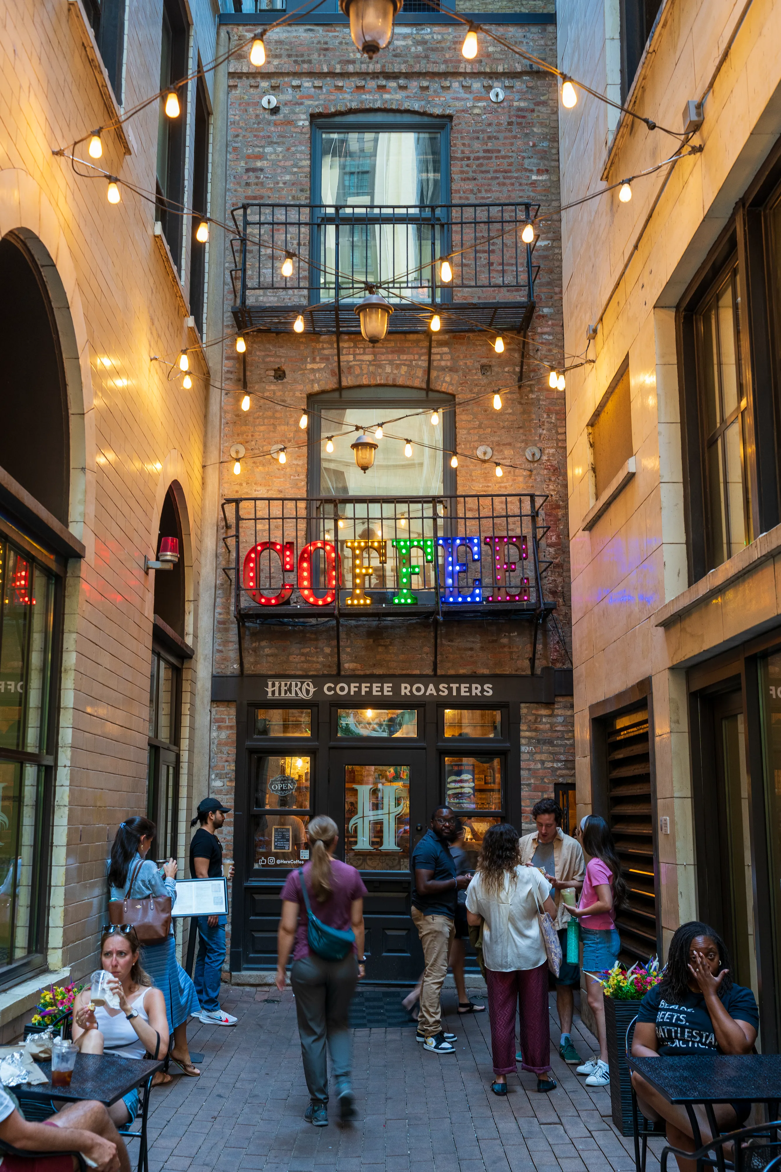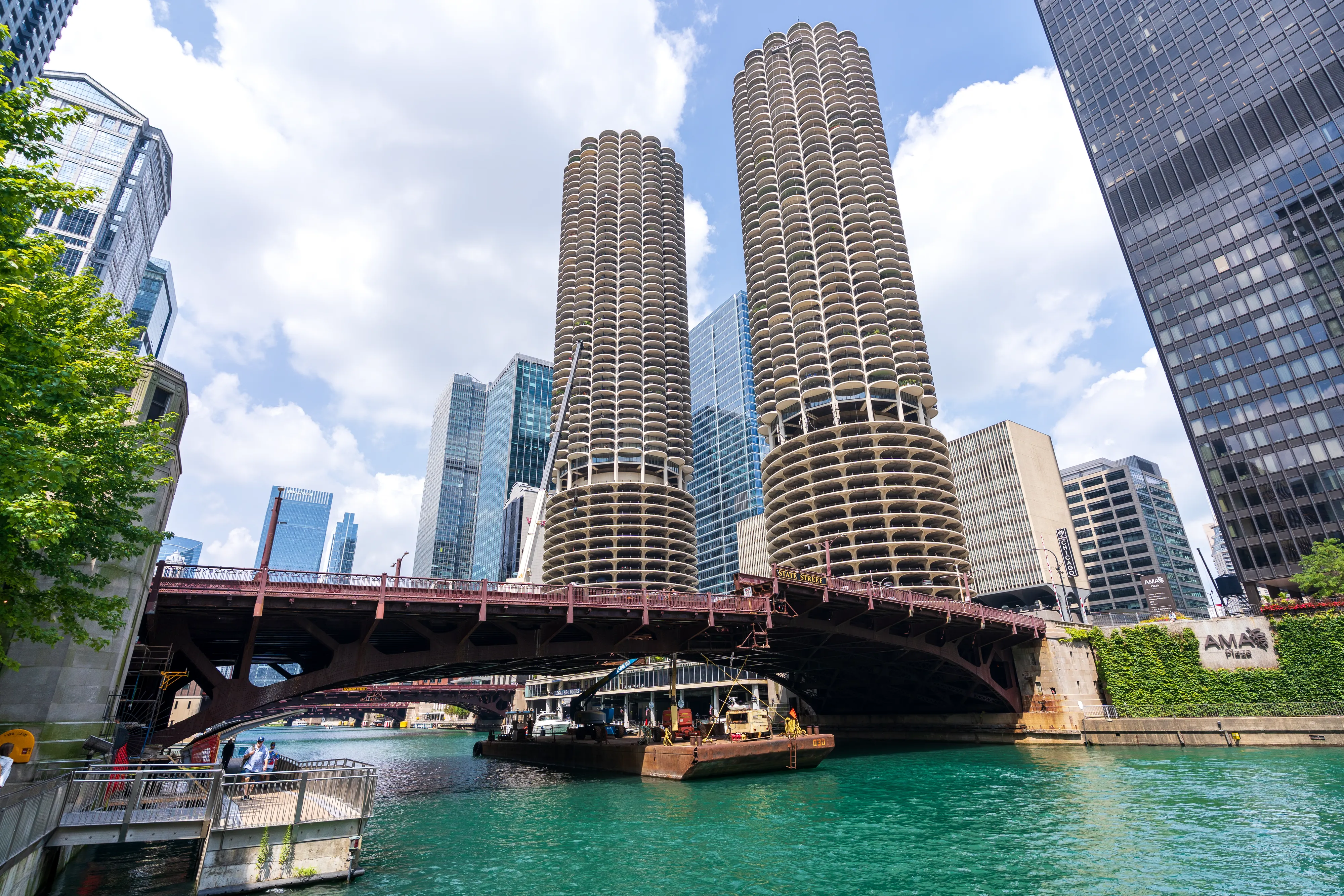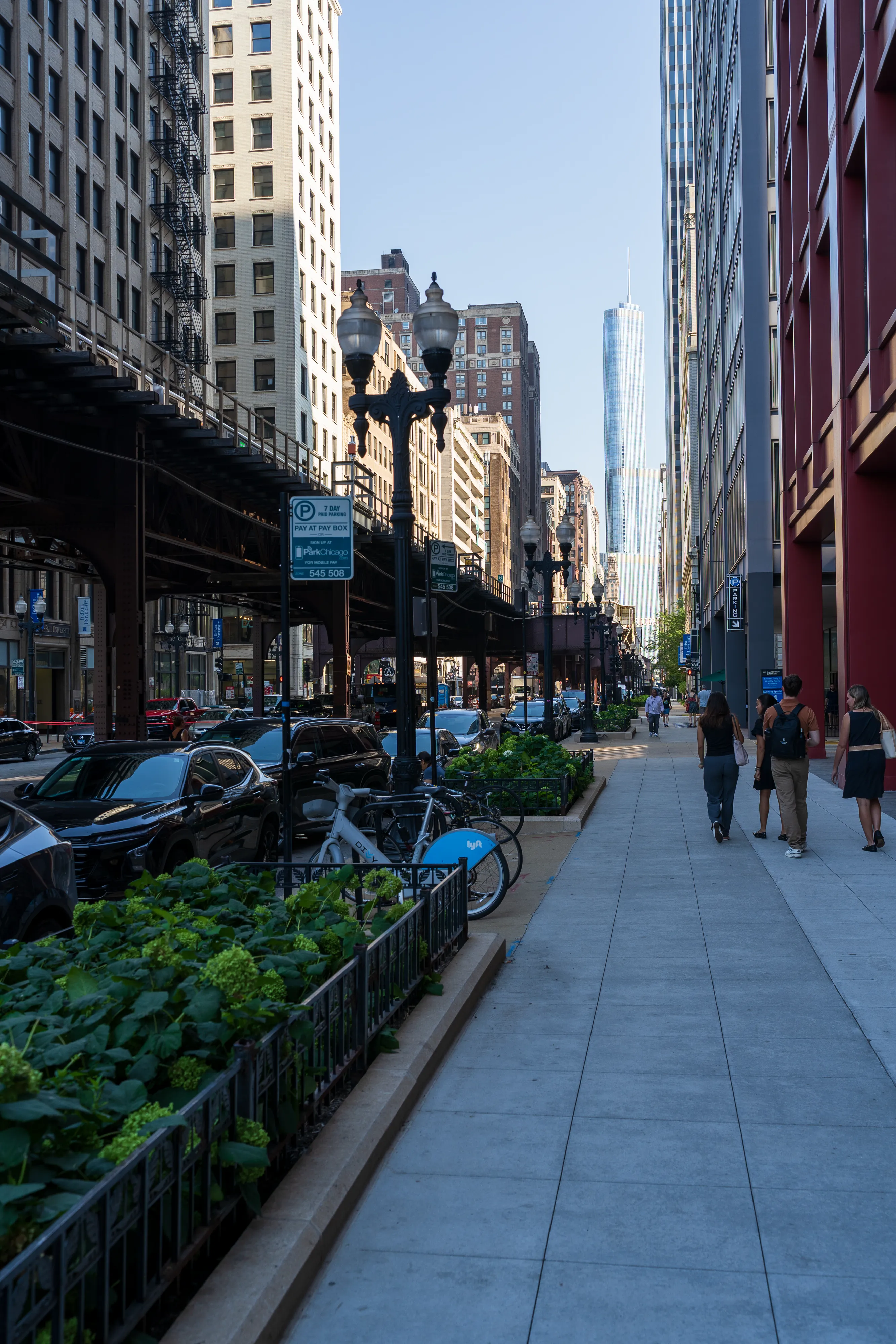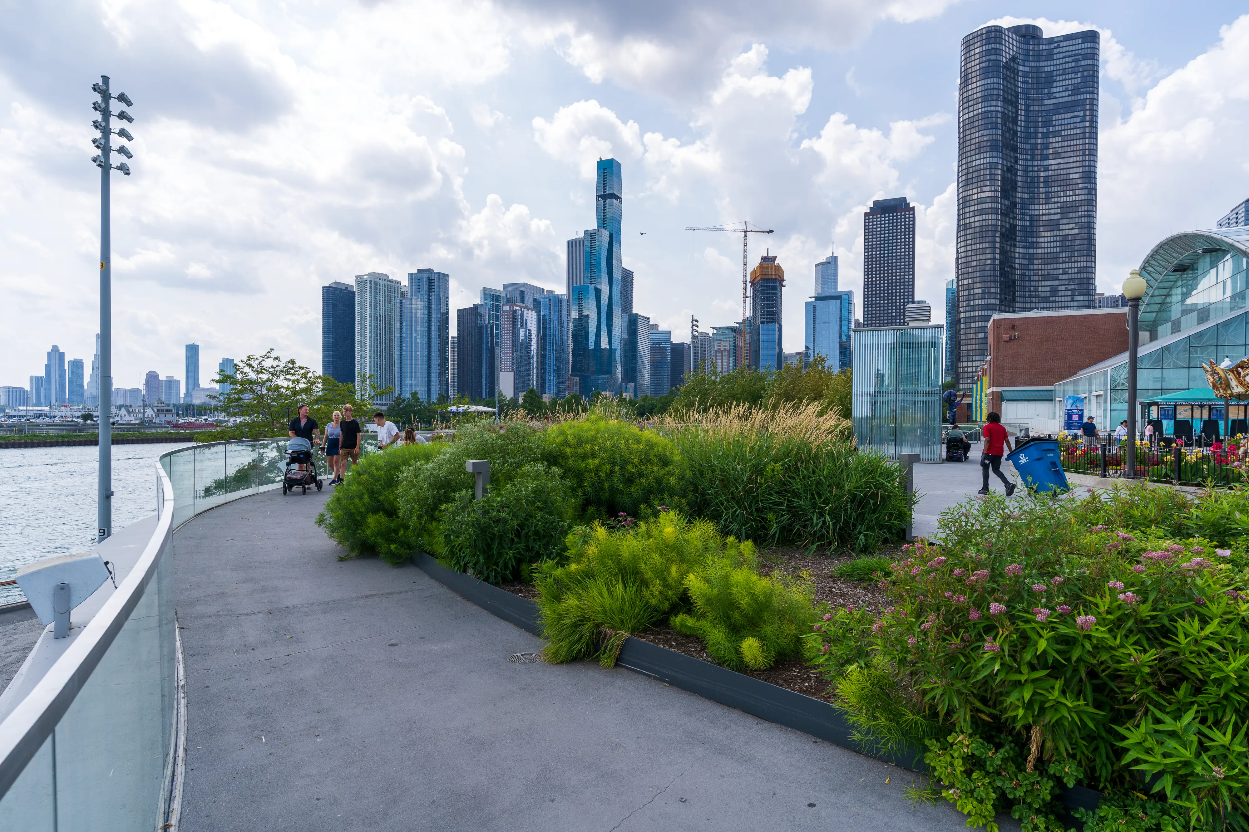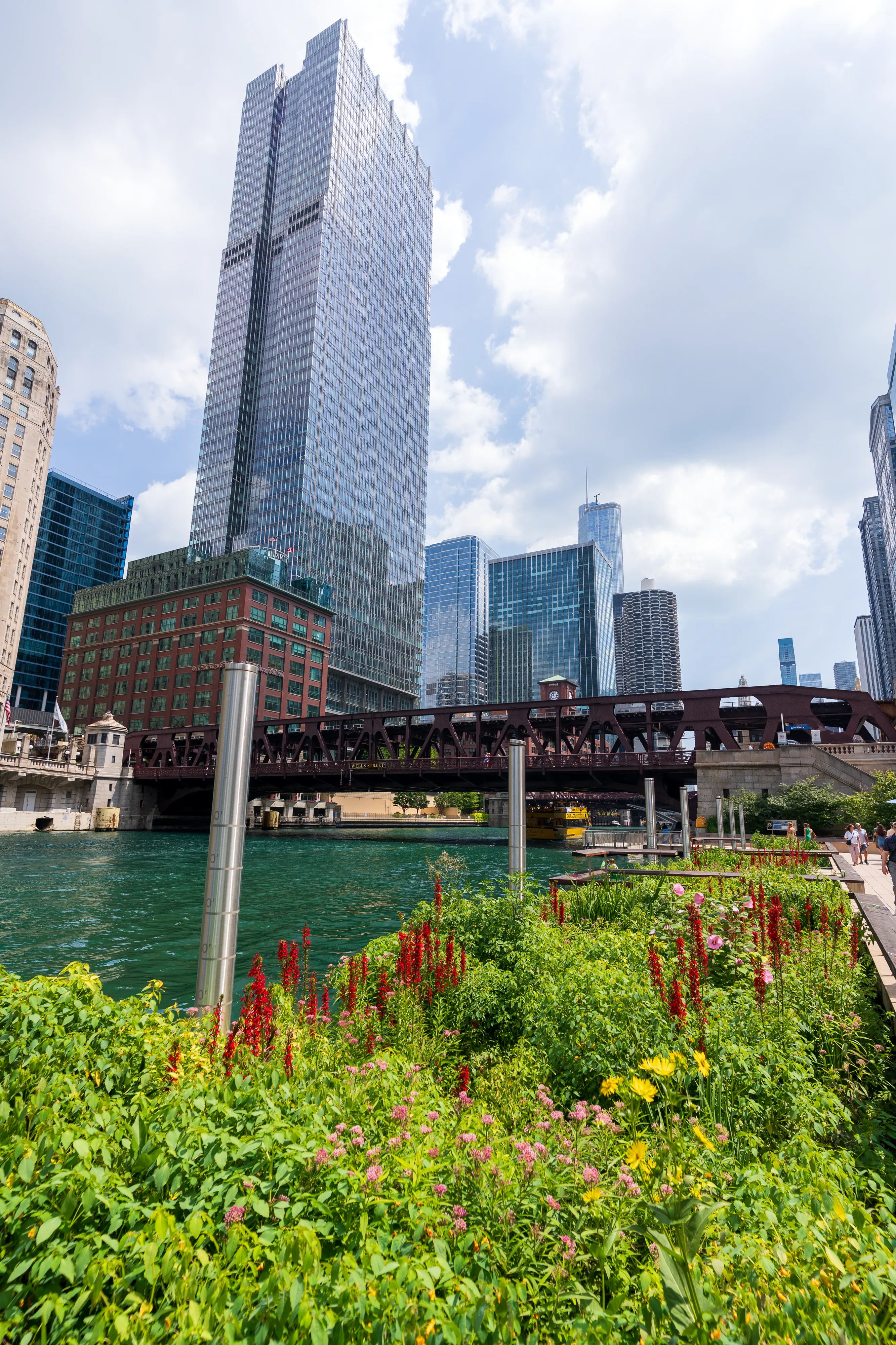 Kurz überlegen wir, ob wir eine “Architectural Boat Tour” (angeblich die meistgebuchte Bootstour der USA) machen sollen - entscheiden uns aber für den entspannten Spaziergang entlang des Chicago Rivers. Dieser führt unter vielen Brücken entlang (welche hochgeklappt werden können!), an hippen Bars und Lokalen sowie dem “Floating Gardens” vorbei bis zur Lake Street Bridge.