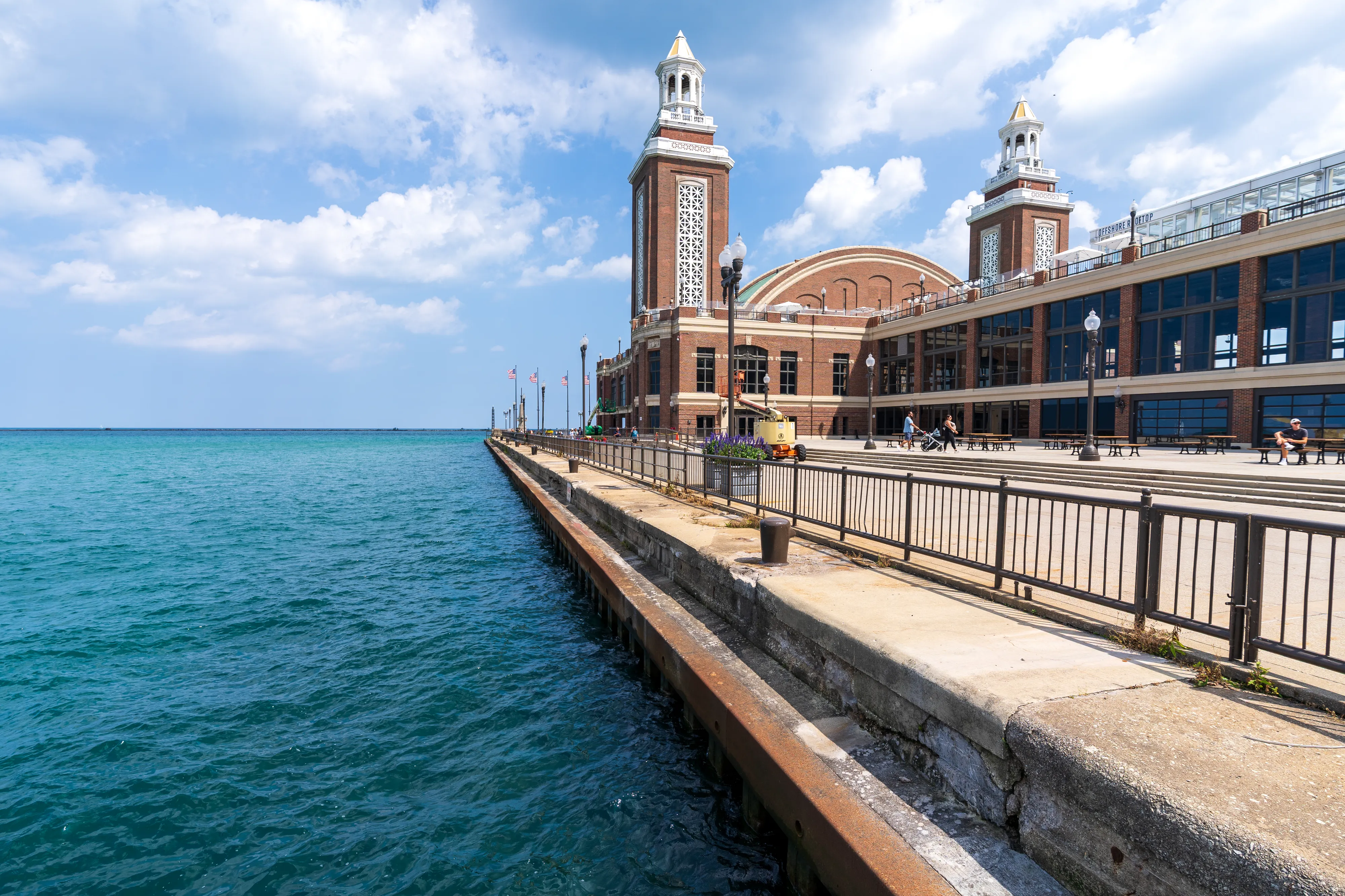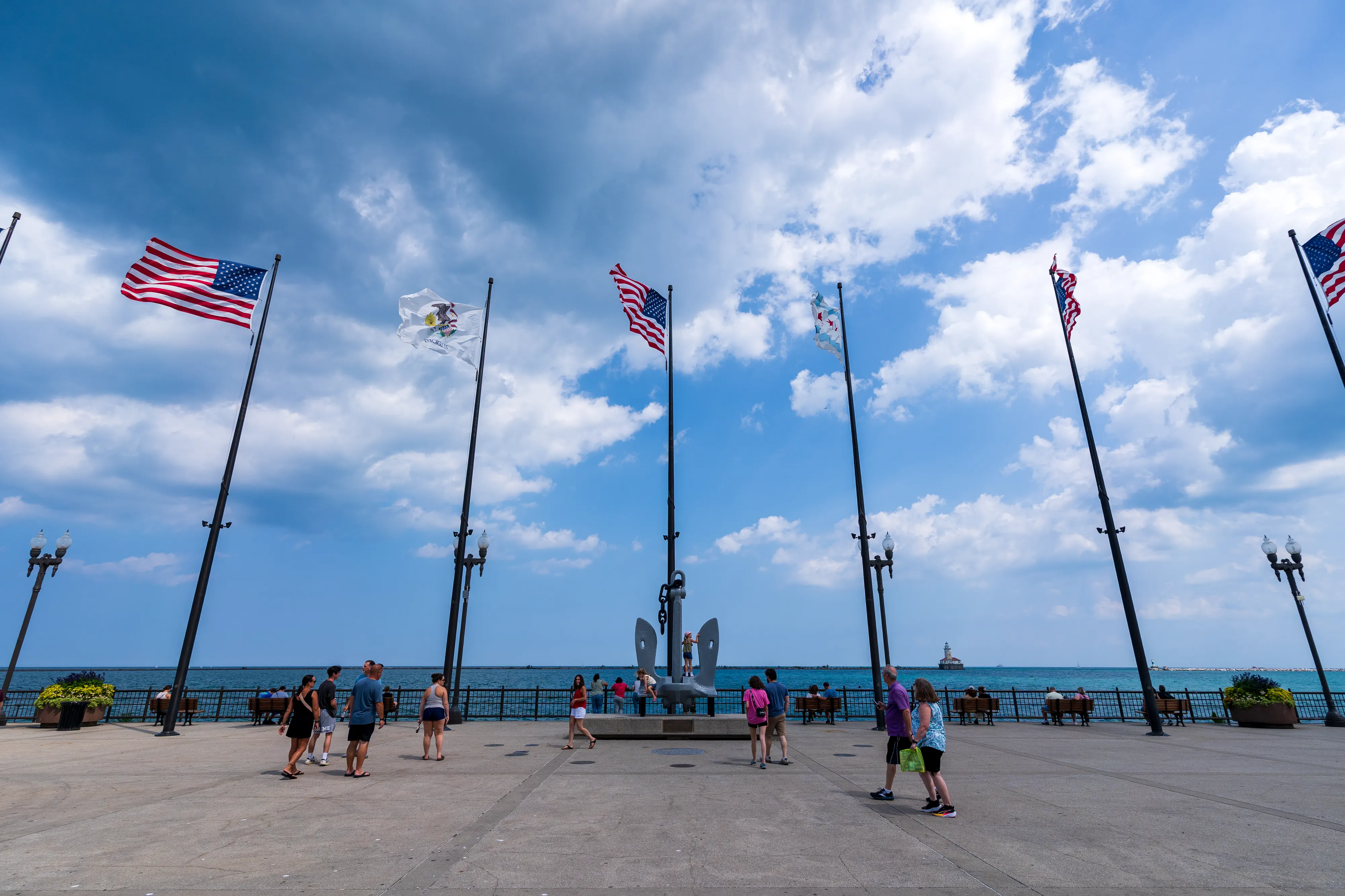 Wir laufen also zum Navy Pier, einem klassischen amerikanischen Pier mit Riesenrad, Fahrgeschäften, Shops und Restaurants - und ganz am Ende angekommen sind wir doch ziemlich geschafft von der Hitze. Zwar hat es “nur” 28 ºC, allerdings ist die Luftfeuchtigkeit ziemlich hoch und so richtig windig ist es in der “Windy City” - so der Spitzname von Chicago - heute auch nicht. Also entscheiden wir uns, im Lake Michigan baden zu gehen.