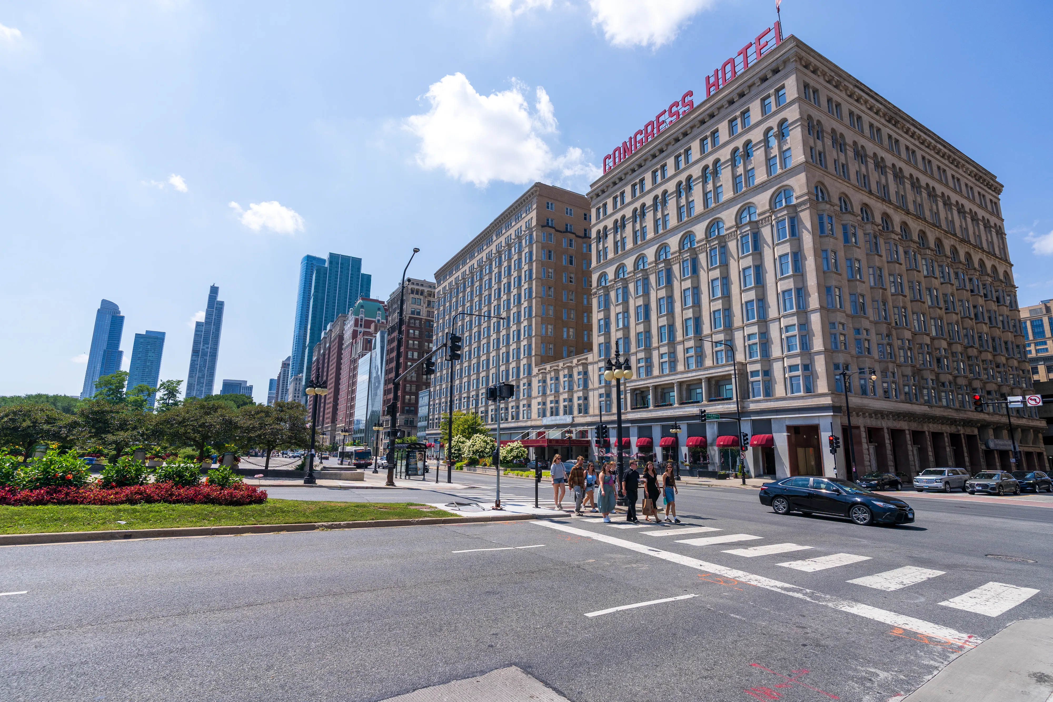 Nachdem wir auch hier wieder unser Hab-und-Gut zum Hotel - dem historischen Congress Plaza Hotel - geschleppt haben, geht es direkt Richtung 360 Chicago Observation Deck, der Aussichtsetage im 875 North Michigan Avenue (früher bekannt als John Hancock Center).