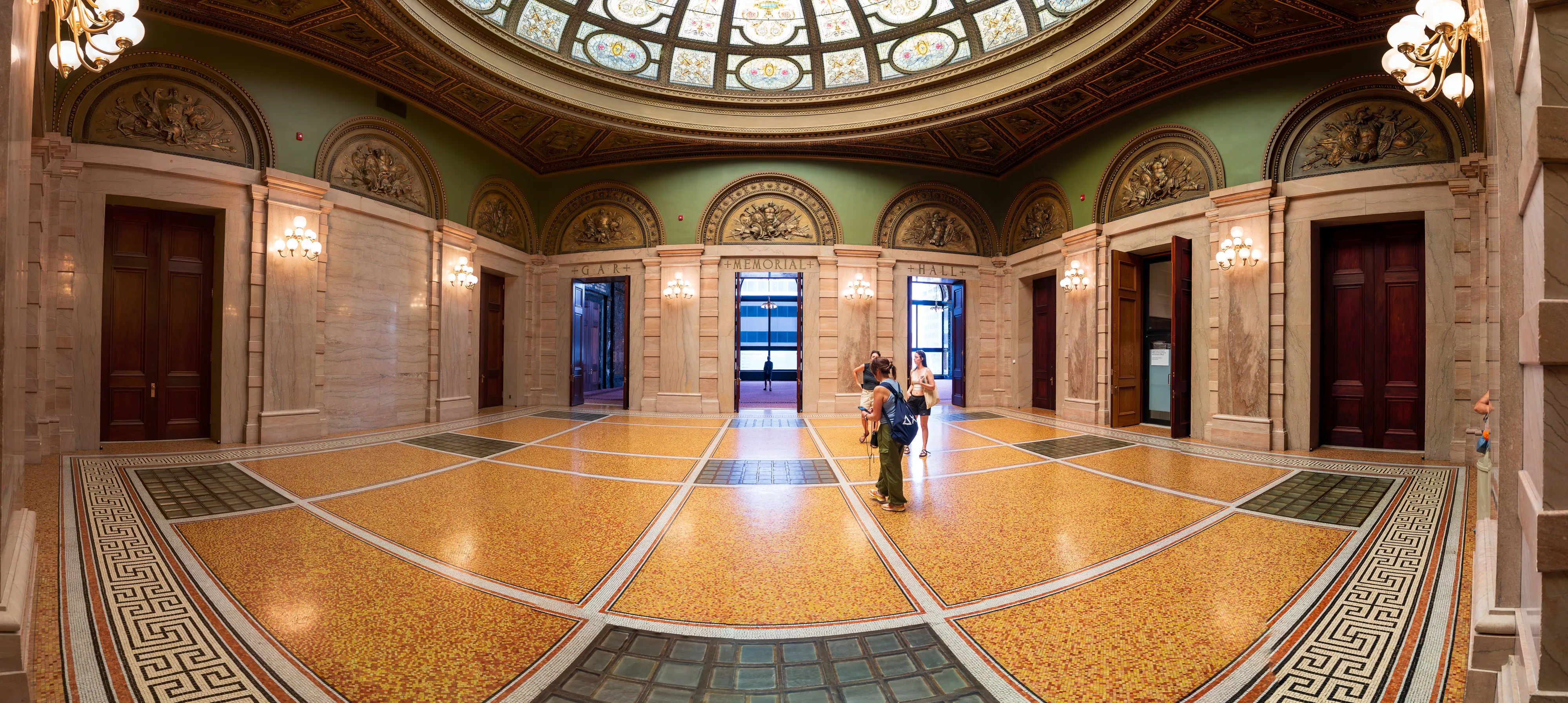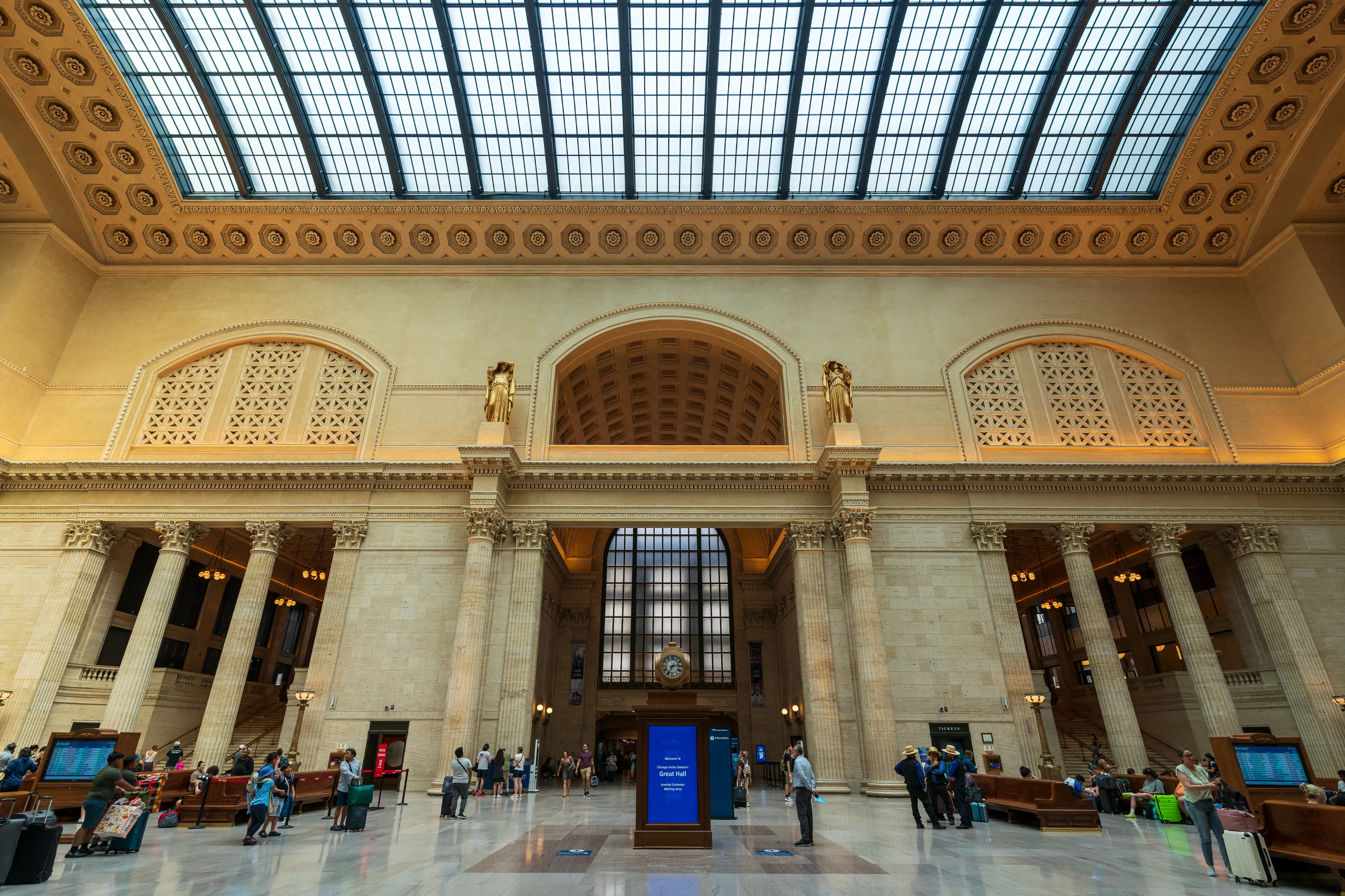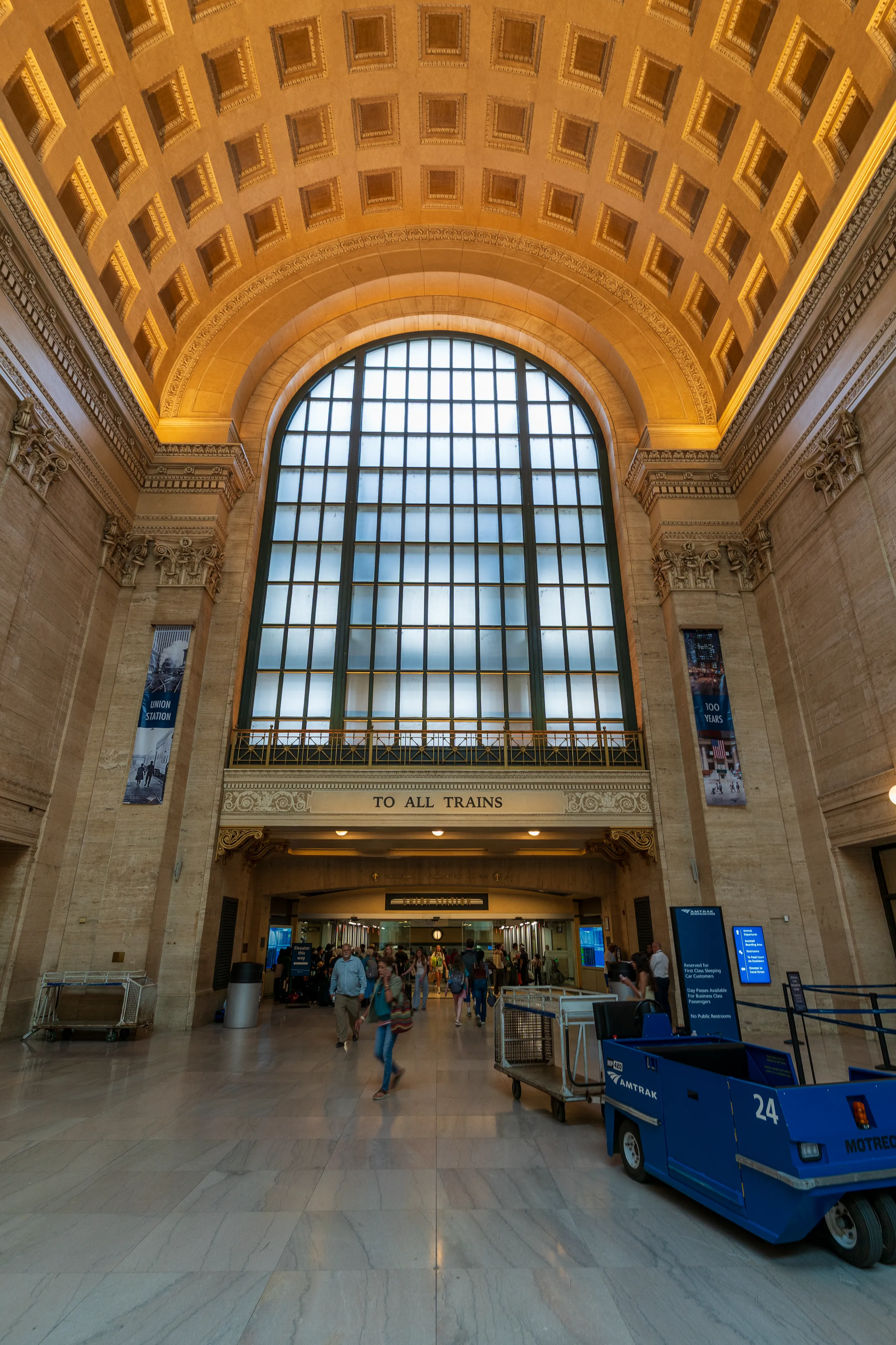Nachdem wir umgepackt und das Zimmer geräumt haben, fahren wir mit dem Bus zur Union Station und checken unser Gepäck ein. Blöderweise wird unsere dritte Tasche nicht akzeptiert, da “gewebte Textiltaschen” nicht mehr angenommen werden. Sie würden zu leicht kaputtgehen - Flughäfen, die ja nicht gerade für sanften Umgang mit Gepäck bekannt sind, haben dieses Problem bisher wohl noch nicht erkannt. Dementsprechend schleppen wir die Tasche eben mit in die Metro und zum Chicago Cultural Center, sowie zum Vorräte-für-die-Zugfahrt-Einkaufen.