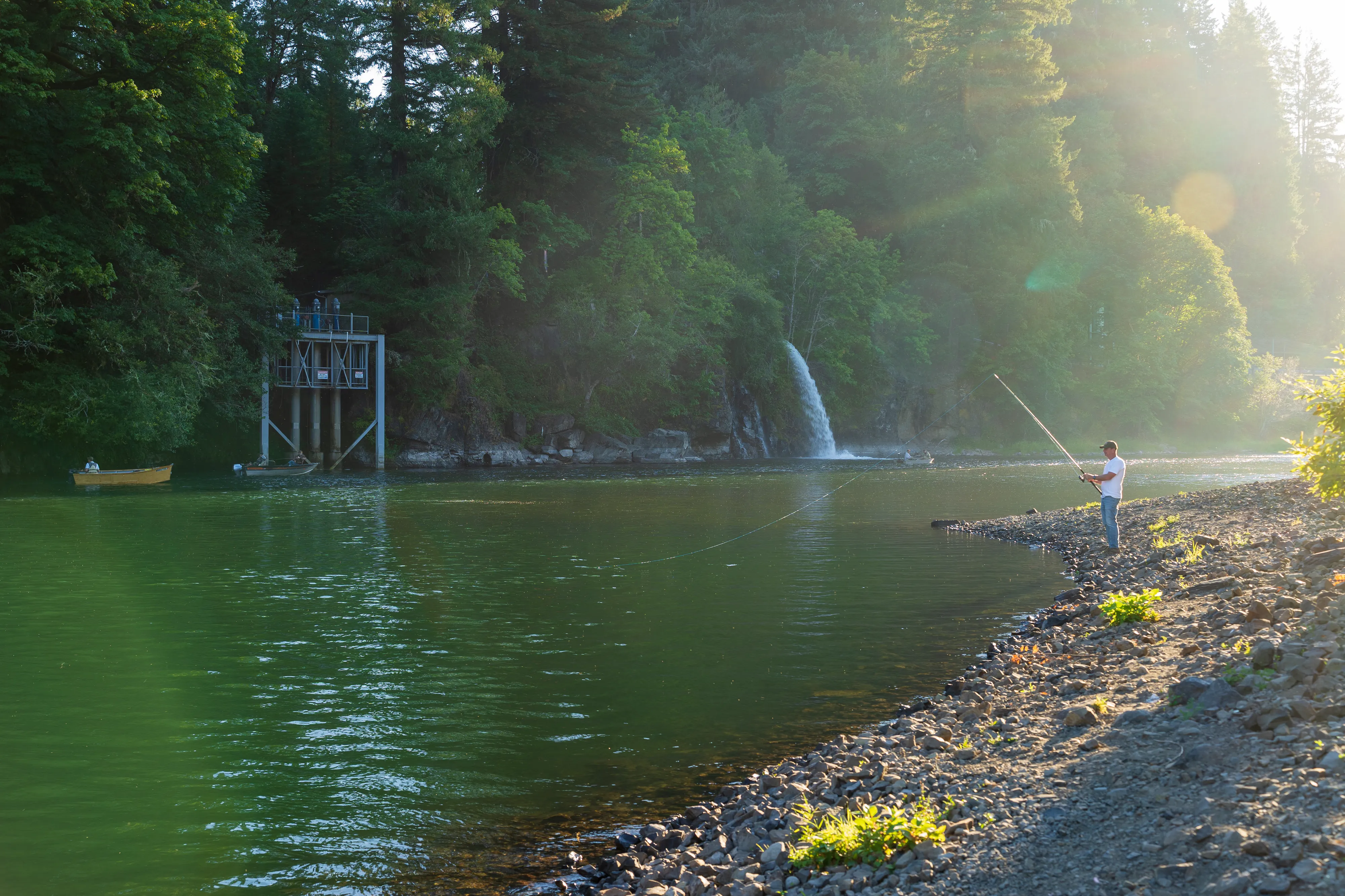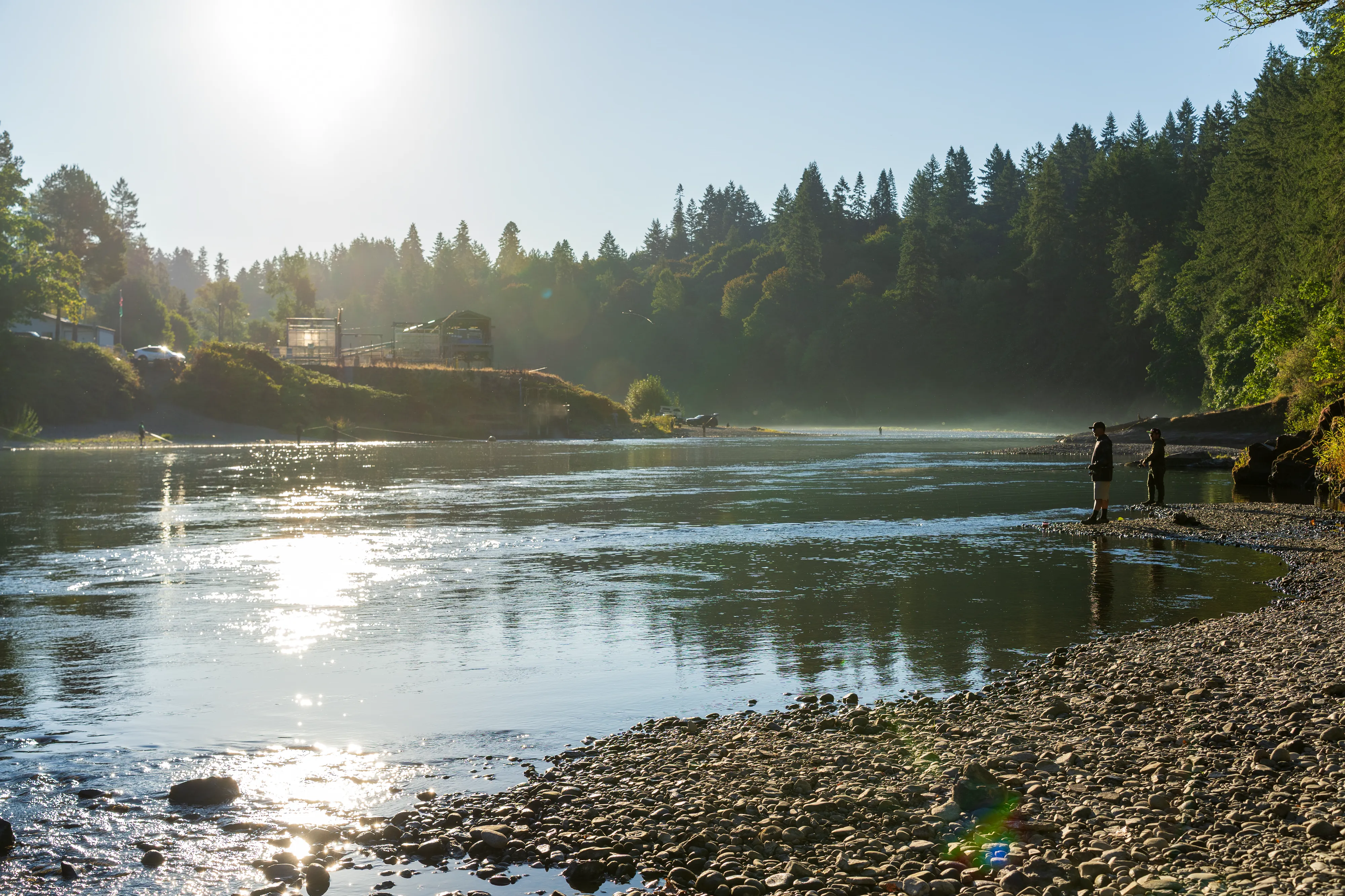 Die Nacht verbringen wir am Lewis River mit nahem, kleinem Wasserfall. Früh am nächsten Morgen werden wir feststellen, dass es sich um einen sehr beliebten Spot für Angler handelt - und diese in aller Herrgottsfrühe anrücken. Allerdings durchaus leise und so sind wir beim Aufstehen doch recht überrascht, den Parkplatz fast gefüllt vorzufinden. In idyllischer Lage können wir unseren neuen Gaskocher ausprobieren und unser Frühstück mit großen Mengen an wilden Brombeeren bereichern.