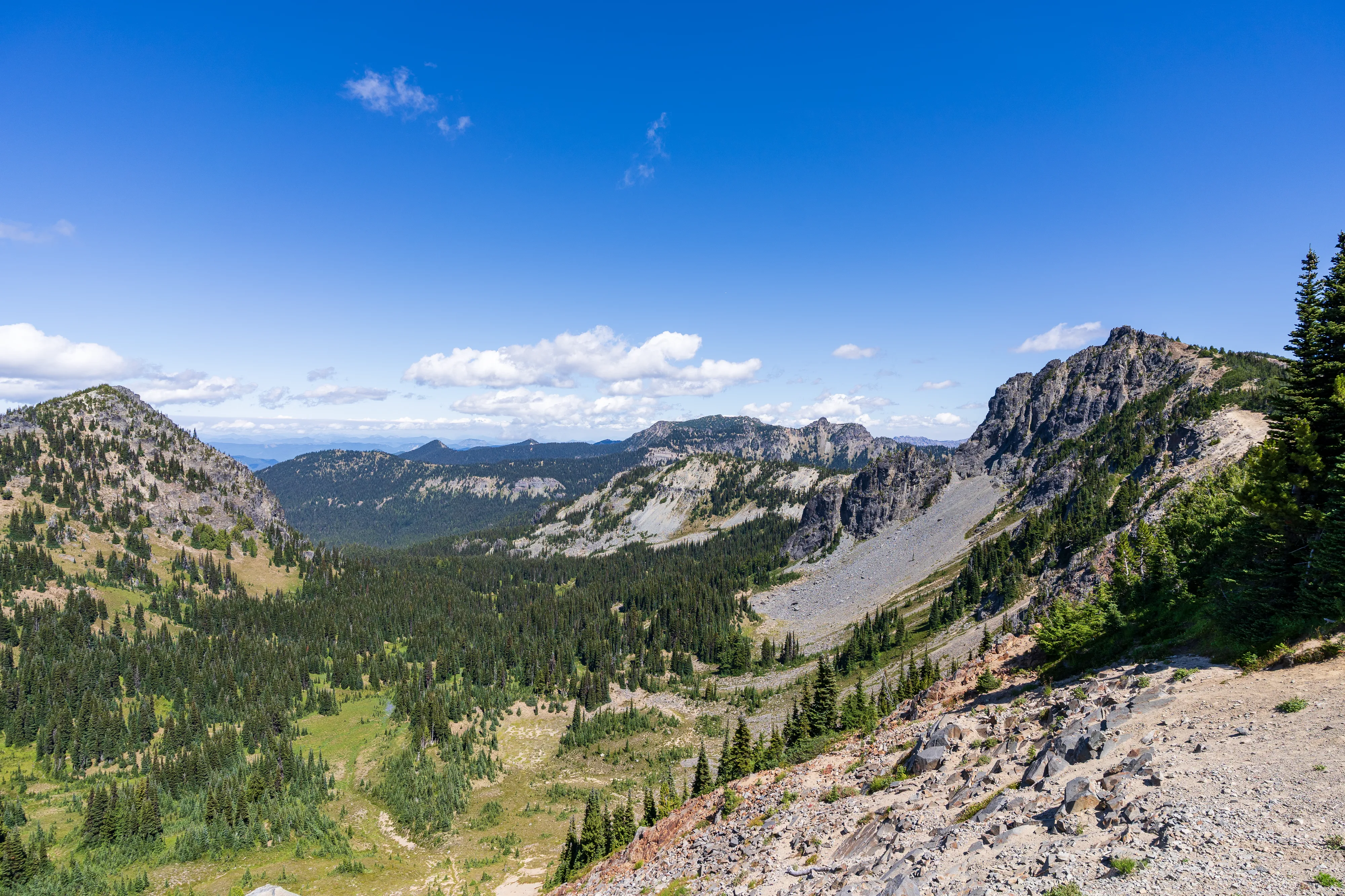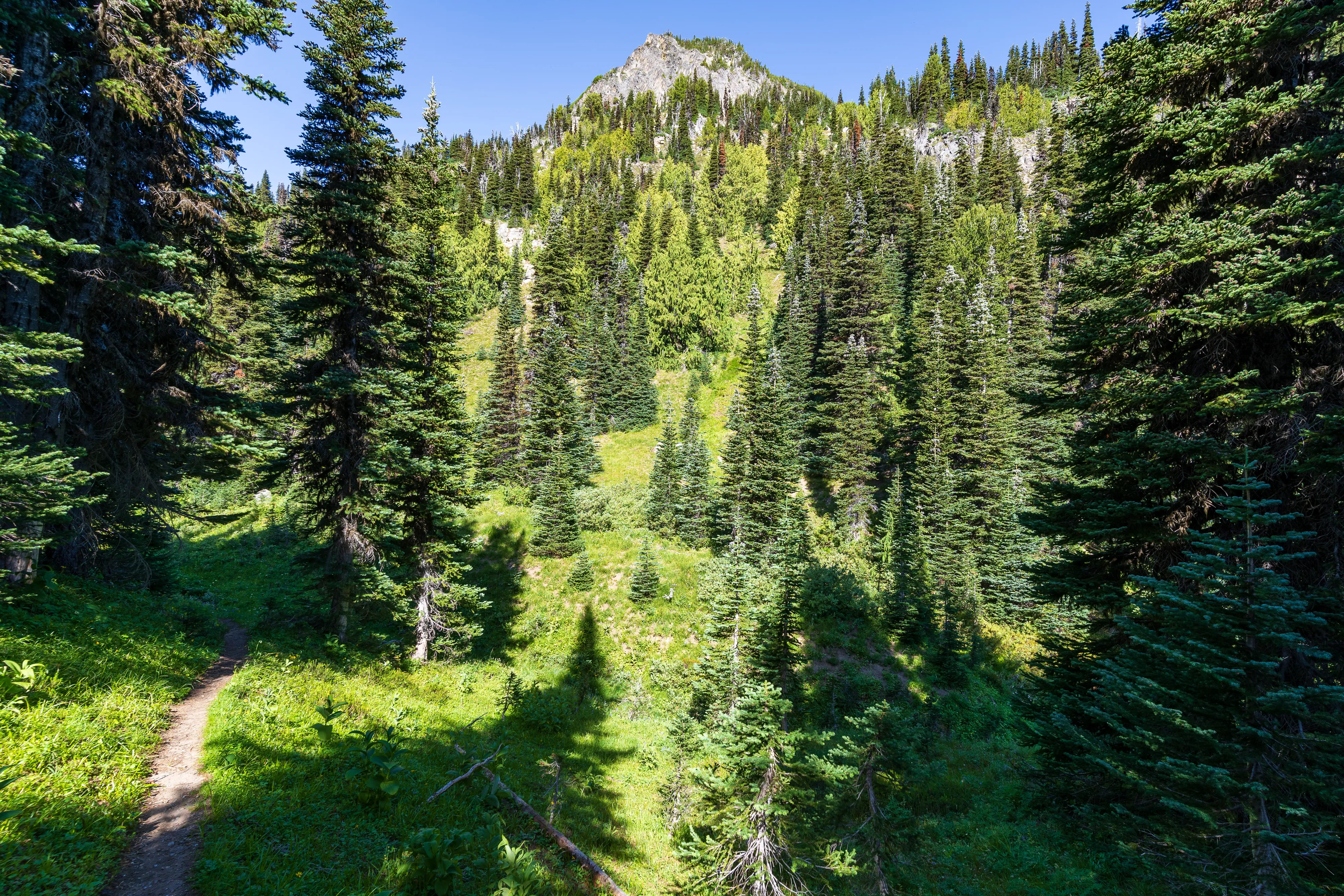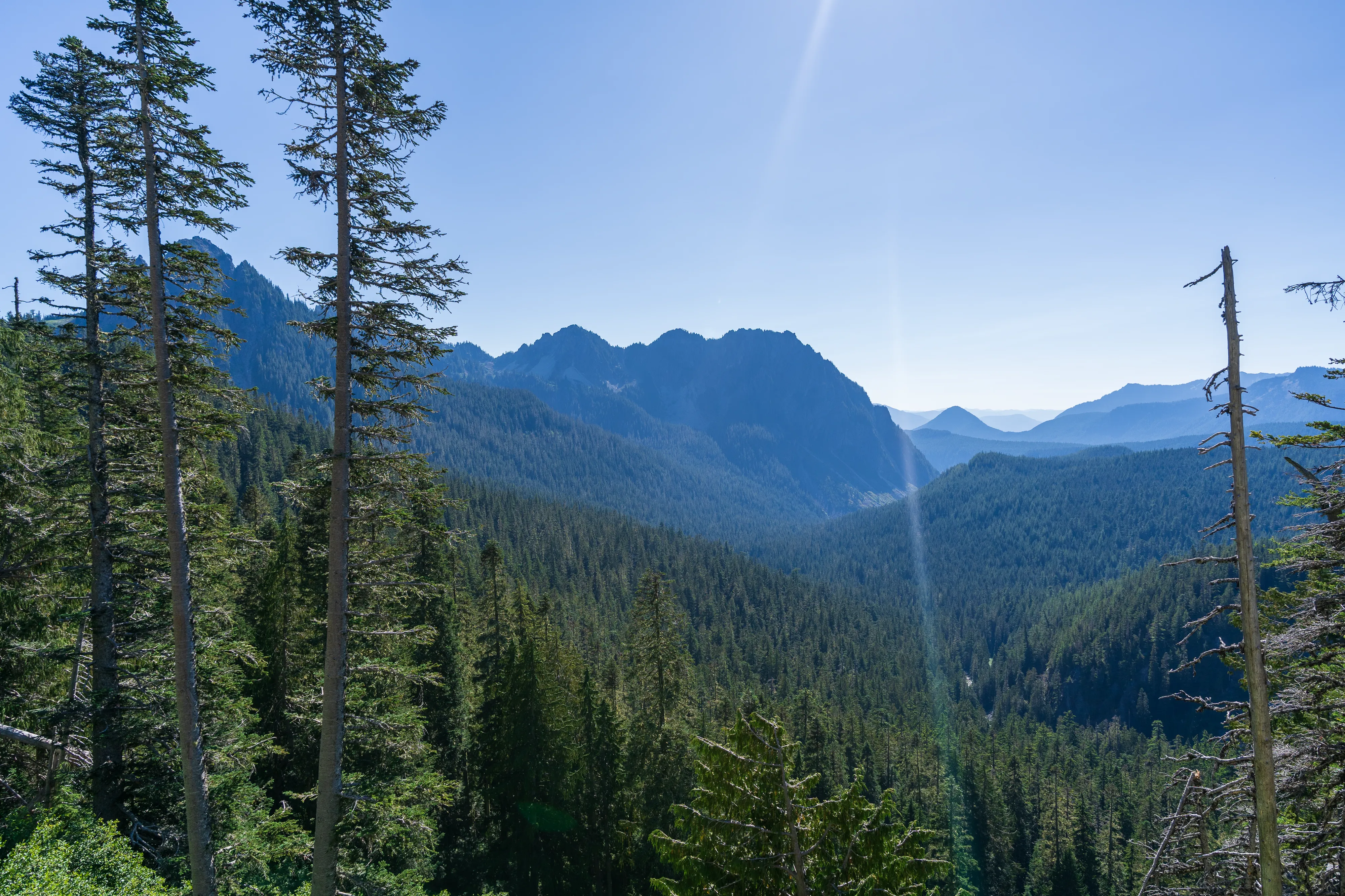 Wir starten unsere Rundwanderung auf dem Sourdough Ridge Trail von dem man, wie der Name schon vermuten lässt, tolle Ausblicke in beide Richtungen entlang des Grats hat.