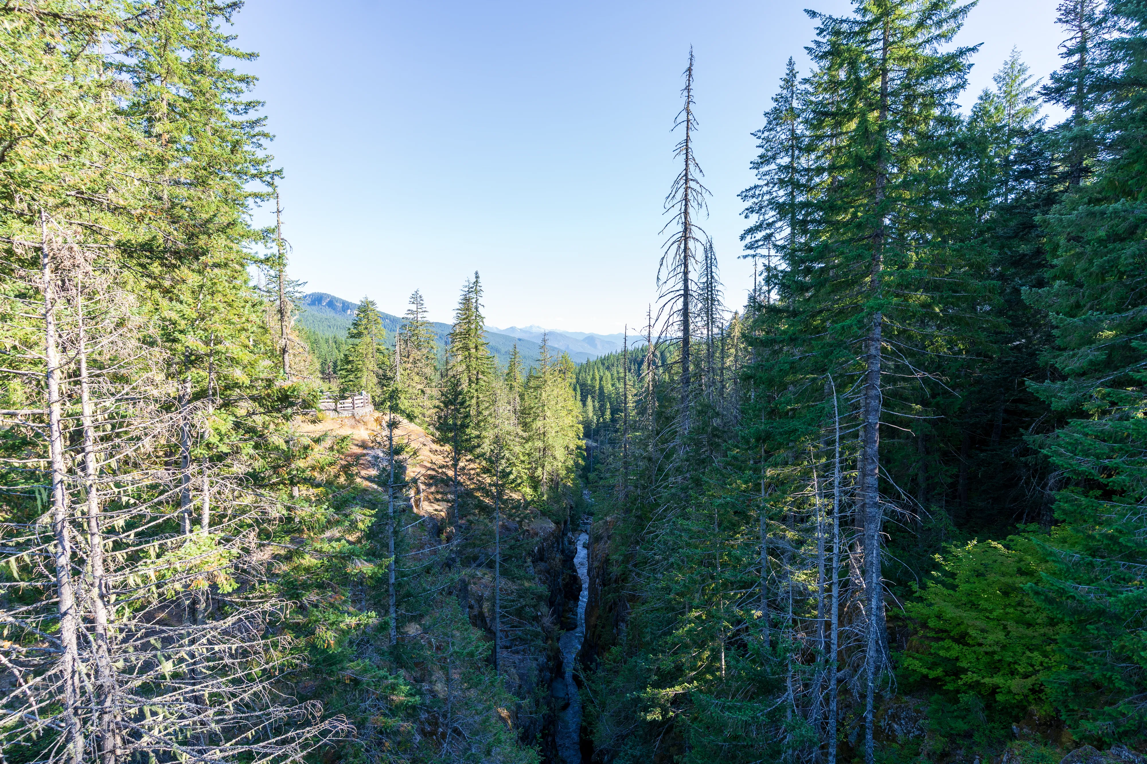 Also entscheiden wir uns, natürlich nicht ohne ein paar Fotostopps, die Steven Canyon Road entlang Richtung Sunrise Area zu fahren. Auf dem Weg machen wir auch noch einen Stopp bei den Narada Falls.