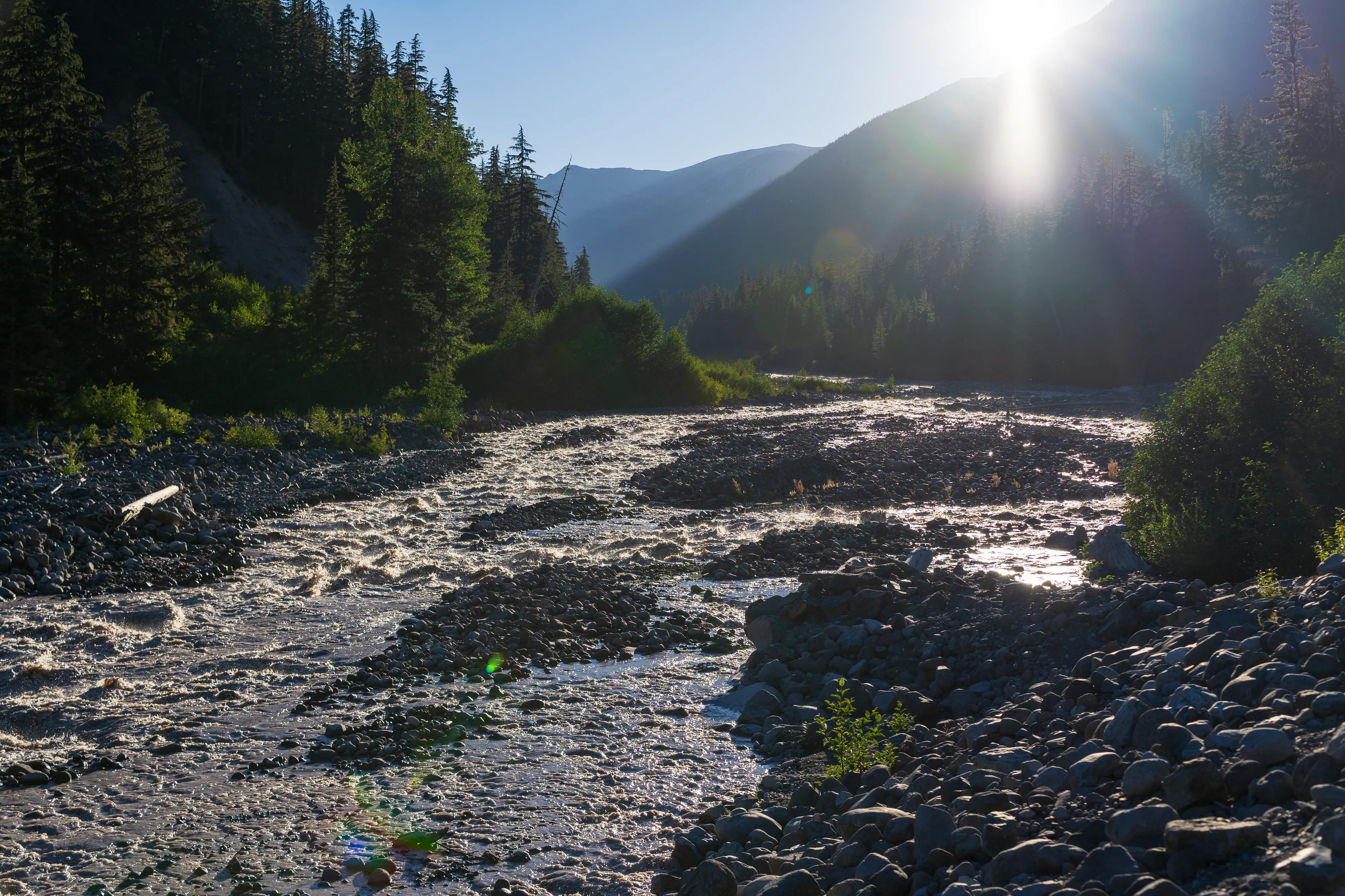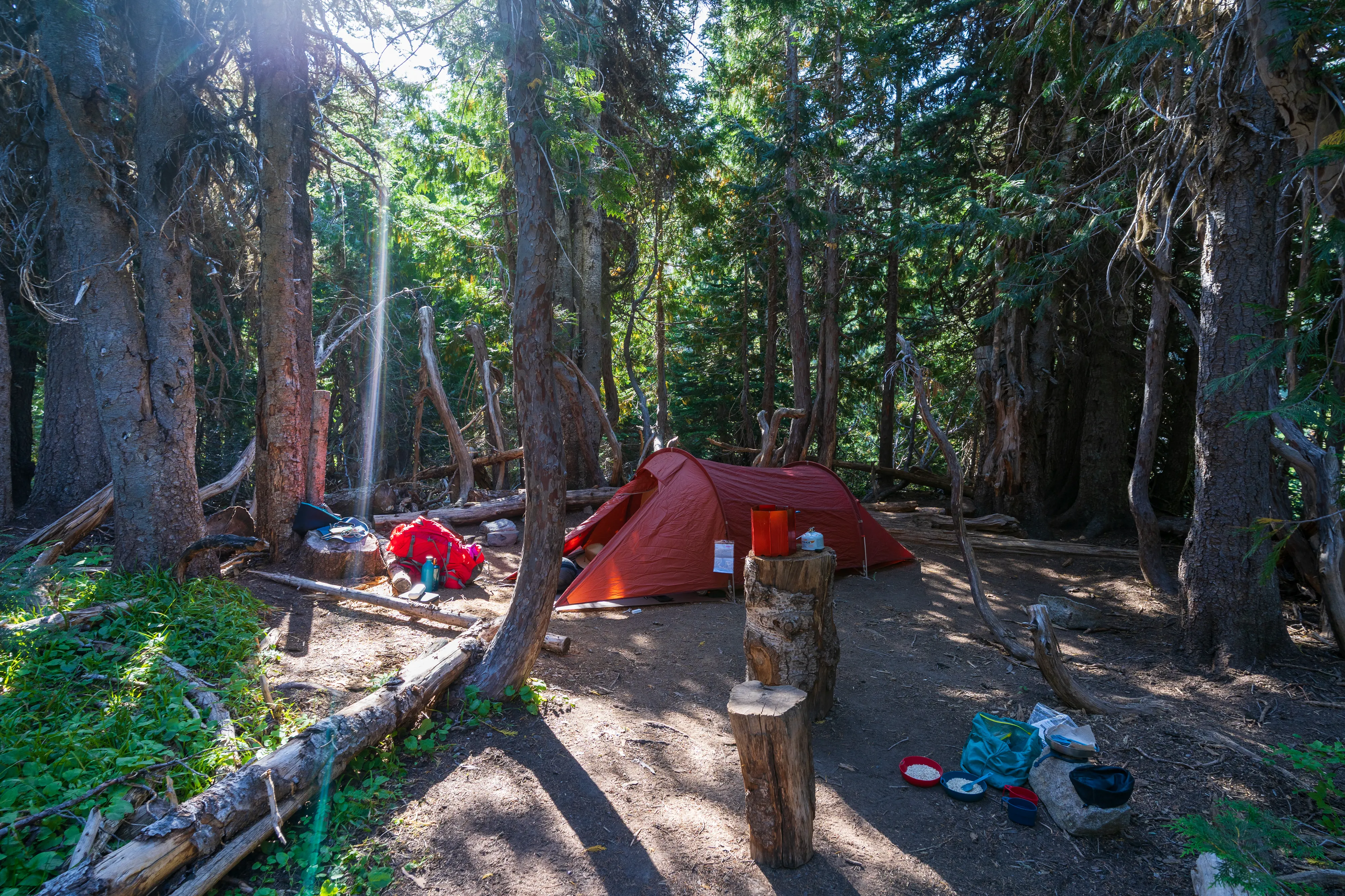 Wir kommen erst spät, ca. 1 Stunde vor Sonnenuntergang, beim White River Campground an, wo der Trail startet und wir unser Auto für die Nacht stehen lassen. Nach einer schnellen Packaktion sind wir mit unseren Campingsachen beladen und machen uns auf den Weg zum Glacier Basin Camp.