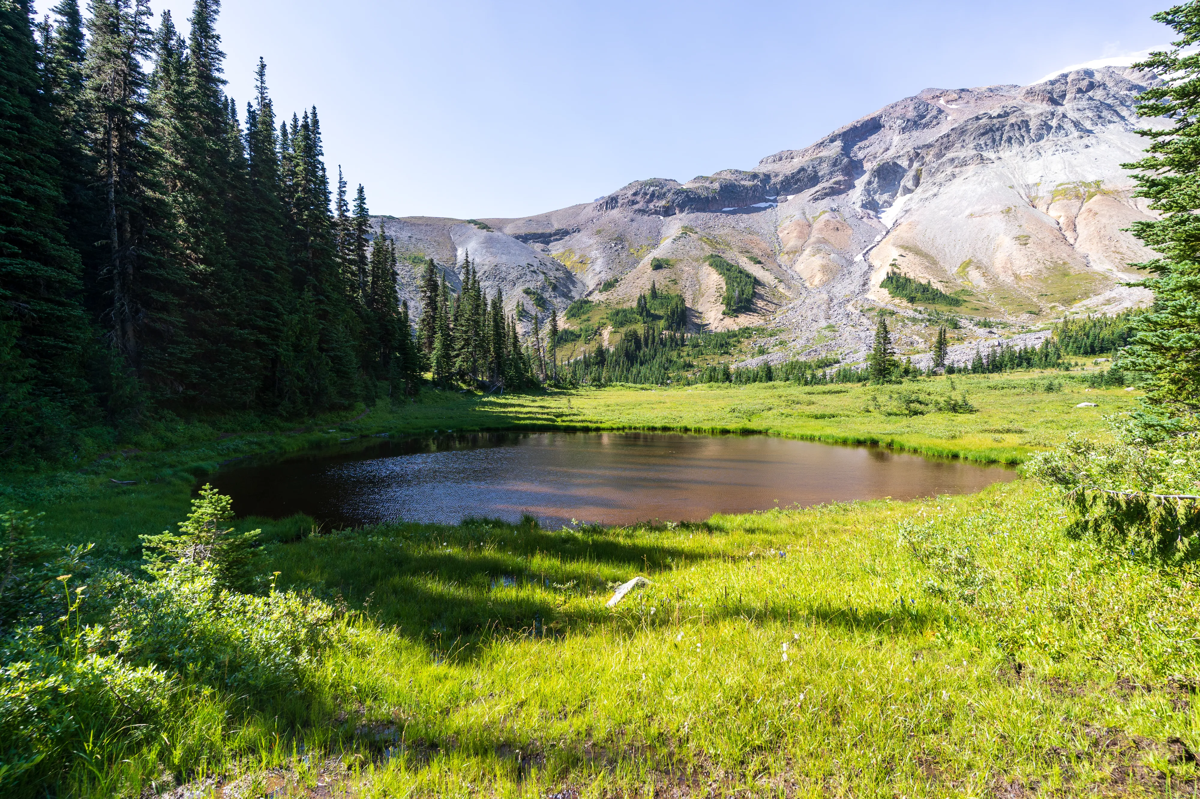 Der Shadow Lake, ein kleiner Bergsee, hat kristallklares Wasser und lädt zum Baden ein - das ist hier aber leider verboten 😉.