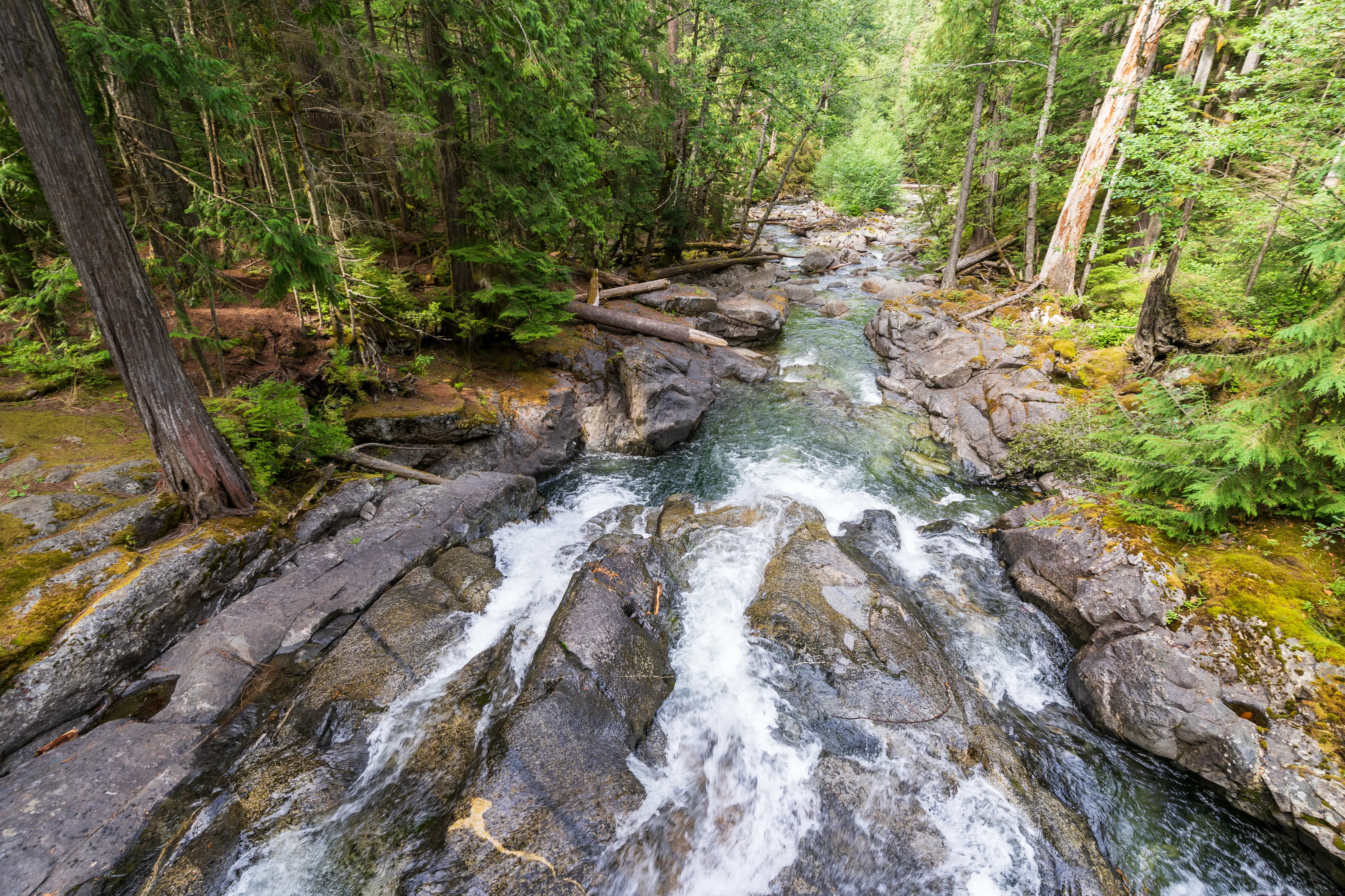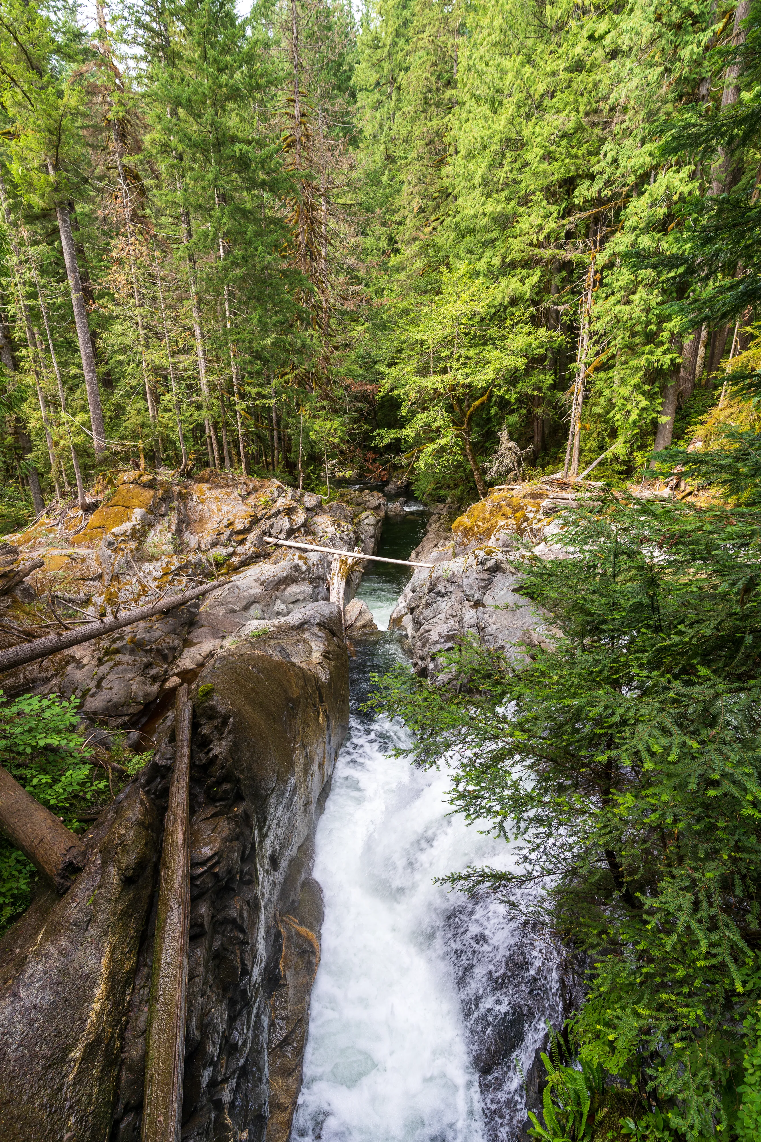Dann geht es weiter zu den Deception Falls. Diese sind ganz interessant, da der Fluss hier in einem 90 º Winkel fließt, da er von einem großen Felsen “umgeleitet” wird.
