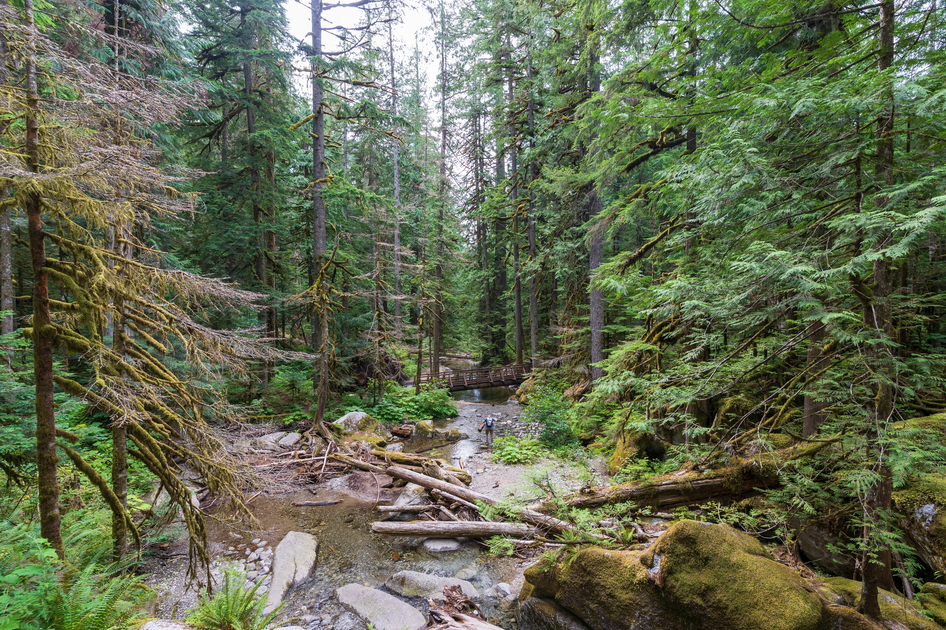 Den folgenden Morgen beginnen wir mit einem Besuch im North Cascades Visitor Center, in dem wir einiges über den Nationalpark lernen. Und auch andere faszinierende Dinge, wie, dass Schwarzsegler täglich auf der Suche nach Futter bis zu unglaubliche 950 km zurücklegen können. Der North Cascades National Park ist aus den 1960er Jahren und gehört somit zu den jüngsten Nationalparks. Seine Grenzen erstrecken sich östlich von Seattle entlang des Gebirges bis an die kanadische Grenze. Die Landschaft ist von über 300 Gletschern geprägt (die meisten kontinuierlichen Gletscher in den “Lower 48”) und durch die Höhendifferenzen zwischen Bergen und Tälern sehr divers an Tier- und Pflanzenwelt. Die Stauseen bieten neben den unzähligen Wander- und Klettermöglichkeiten auch noch Möglichkeiten für Wasseraktivitäten. Der Nationalpark bietet auch einige “Backcountry” Campingmöglichkeiten, manche davon nur per Boot erreichbar.