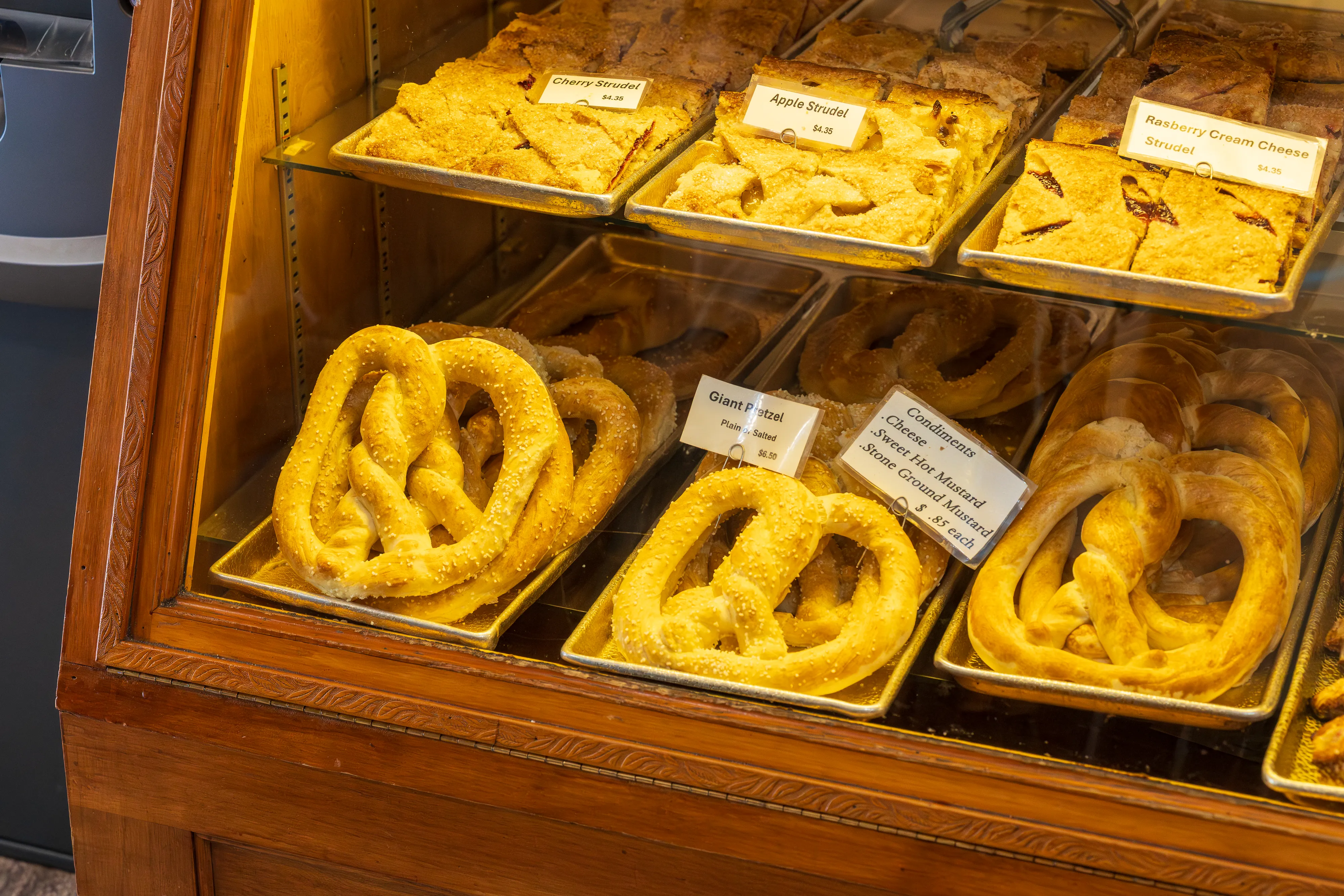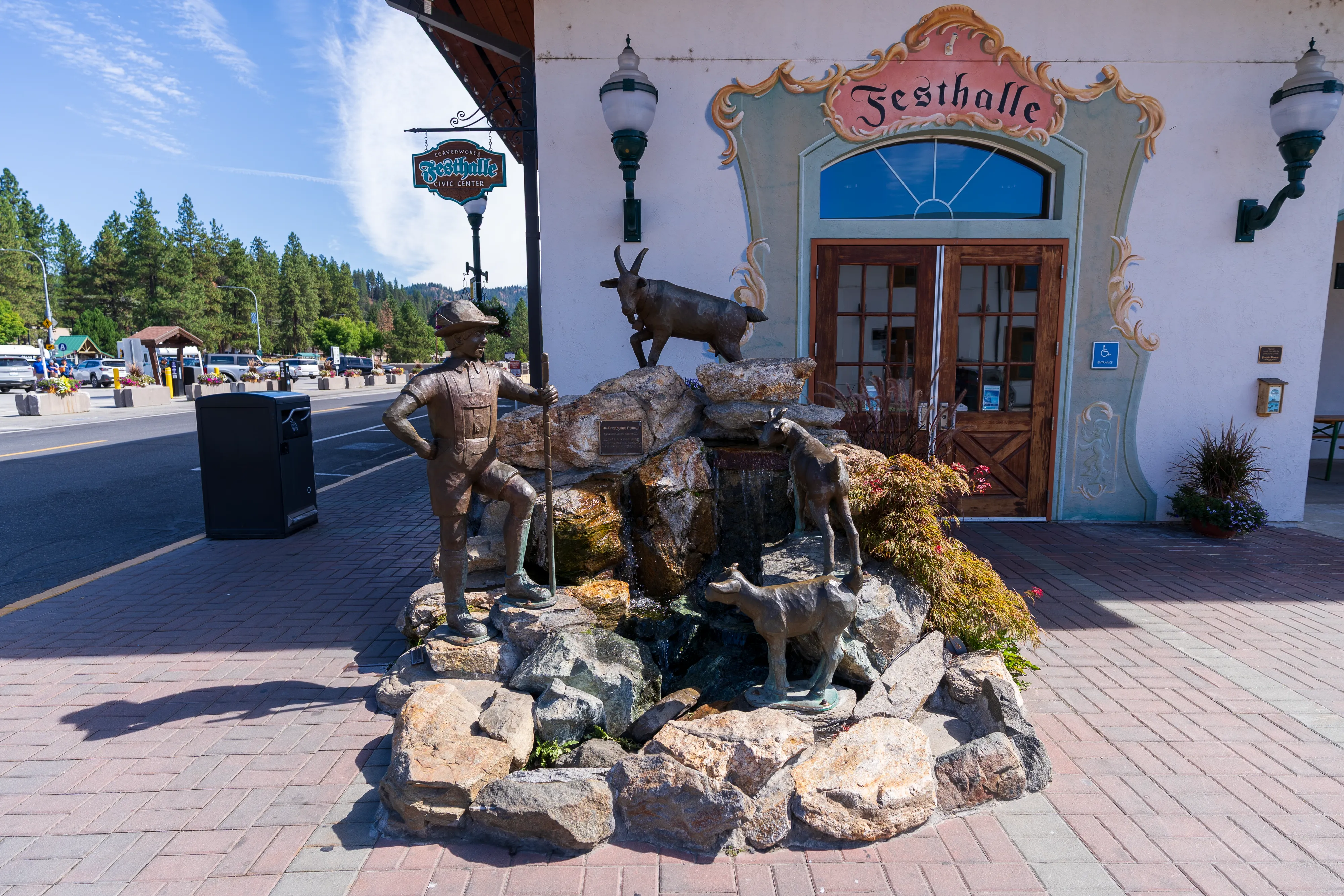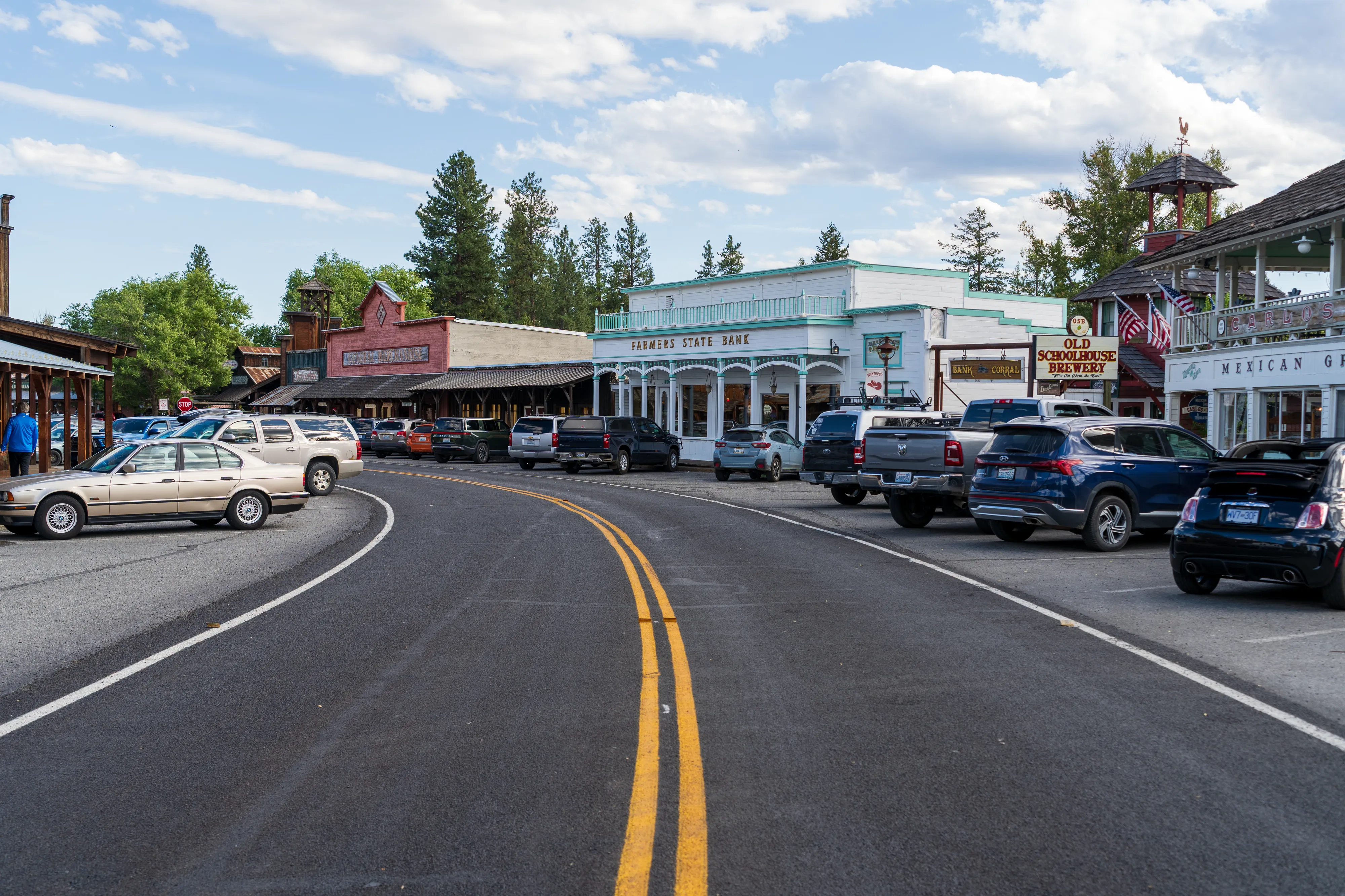 Wir erreichen Leavenworth, das “Bavarian Village”, welches sich zum Ziel gesetzt hat Touristen damit zu locken, dass es hier vermeintlich wie in Bayern ist. Die Häuser sind im alpenländischen Stil (allerdings sind die entsprechenden Stilelemente zumeist aufgemalt, die Gebäude also nicht wirklich authentisch), viele Straßenschilder sind bilingual und es gibt sogar einen Maibaum in der Dorfmitte. Natürlich ist die bayrische Flagge auch häufiger zu finden. Und auch bei den angebotenen Gerichten versuchen die Amerikaner authentisch zu sein, was ihnen bei Gerichten wie Schnitzel (zumindest dem Namen nach) gelingen mag. Sogar die Unterscheidung zwischen Wienerschnitzel und Schnitzel Wiener Art wird beherrscht. Bei der Brezel hört es dann aber auch schon wieder auf: Diese sieht eindeutig zu sehr aus wie ein Weckmann mit Salz in Form einer Brezel als das klassische Laugengebäck. Lustig ist das Dorf jedoch allemal, zumal auch Kaffeehausketten, Supermärkte und Tankstellen mitziehen.