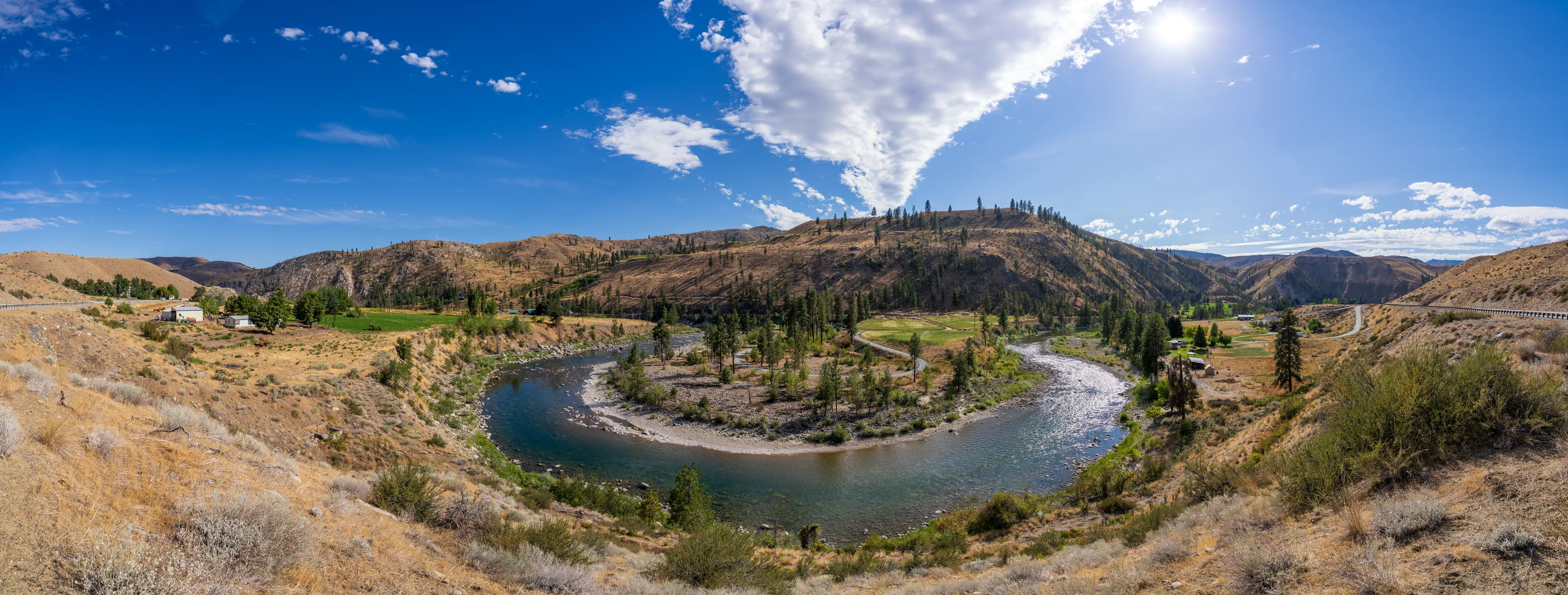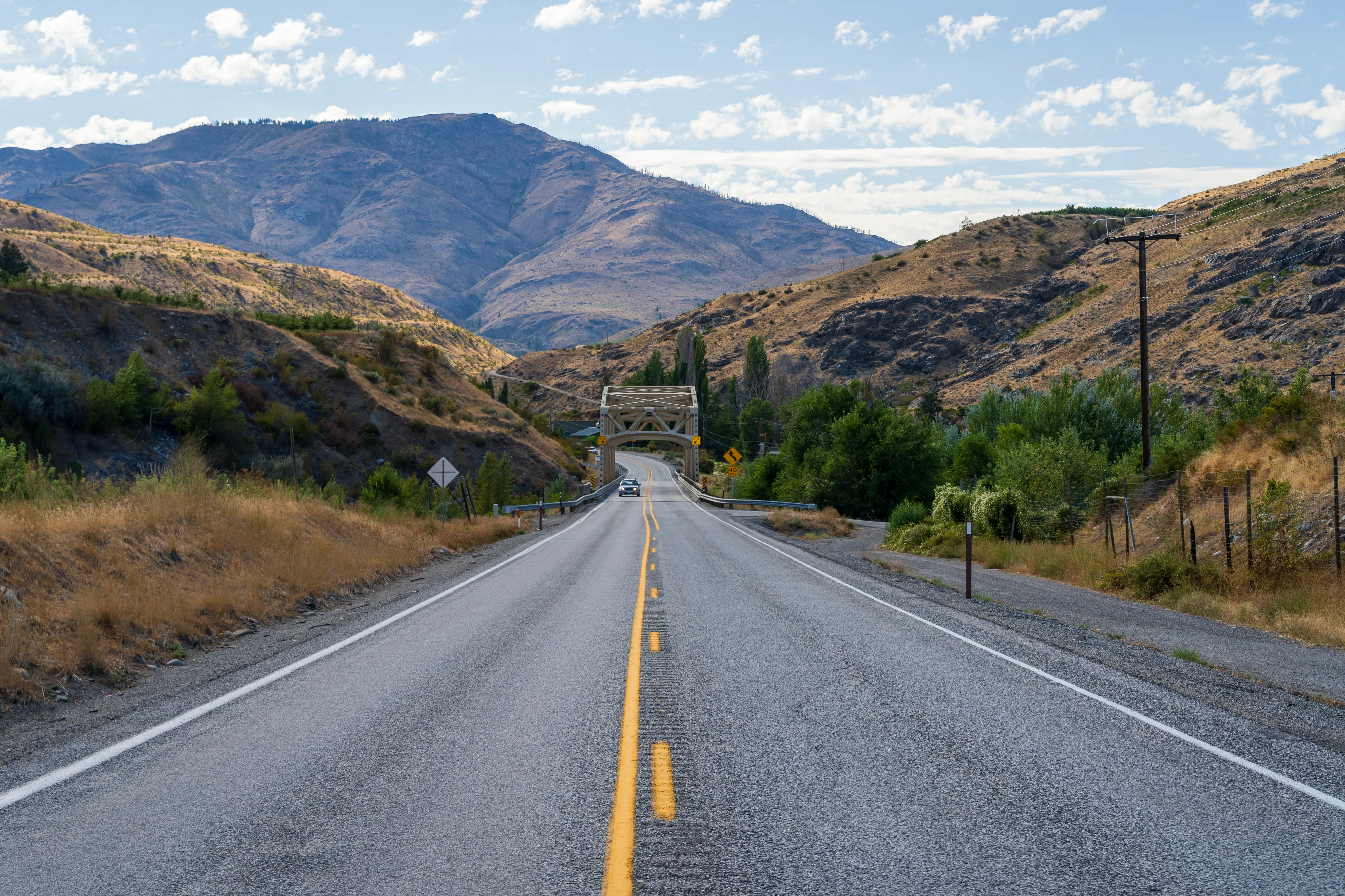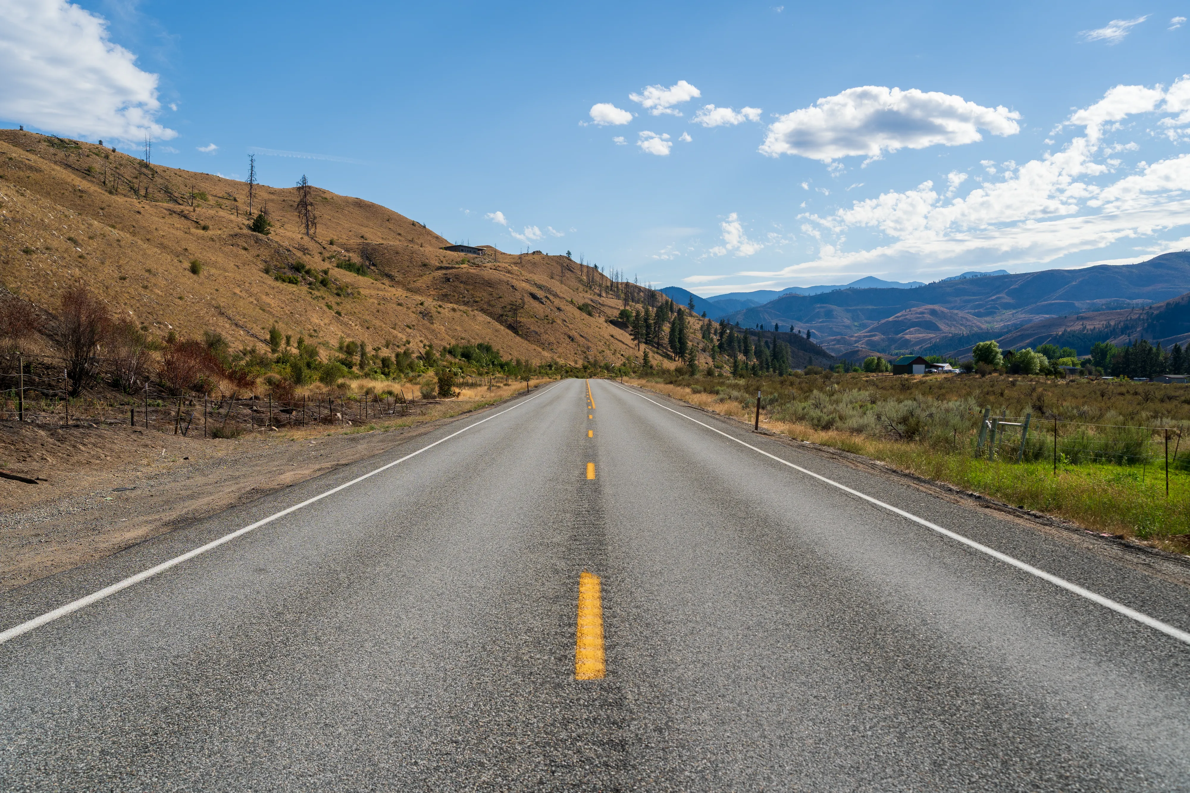 Hinter Leavenworth ändert sich die Landschaft recht schlagartig: statt bewaldeter Berghänge prägen nun hügelige, karge Wiesen mit vereinzelten grünen Oasen in Wassernähe und unzähligen Obstplantagen das Bild.