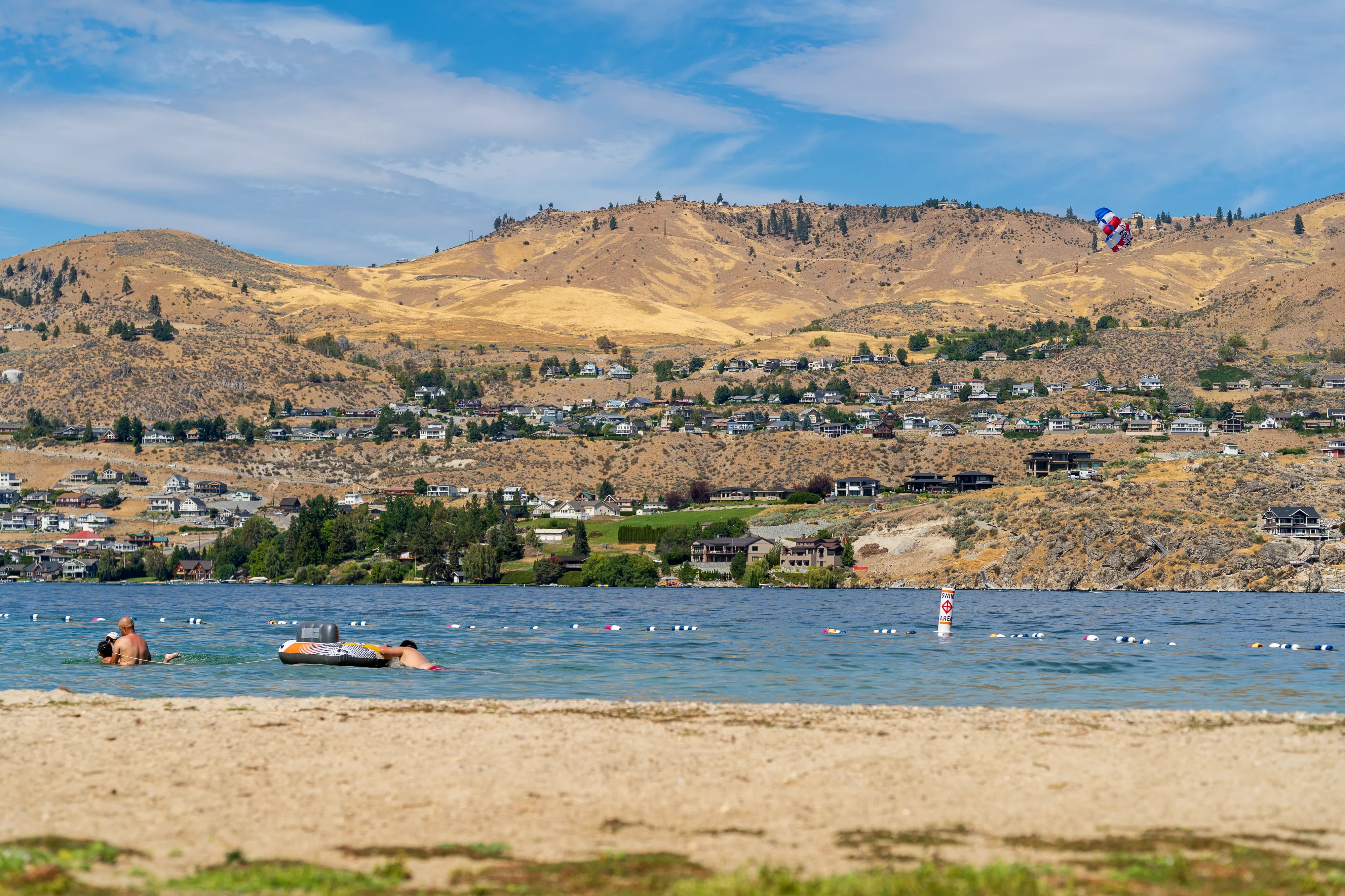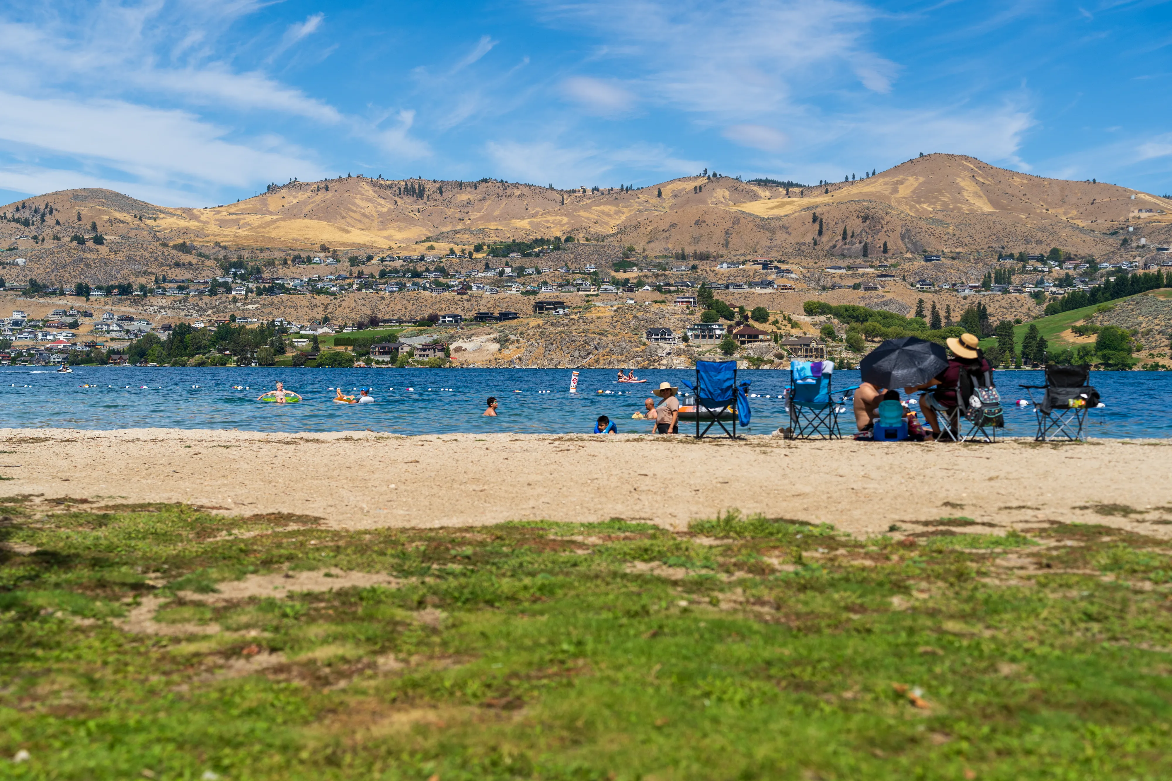 Am Lake Chelan machen wir einen Halt, um uns im kühlen Wasser zu erfrischen. Der aufgestaute Lake Chelan ist bei den Washingtonians insbesondere im Sommer als Ausflugsziel sehr beliebt, hier kann man nicht nur baden, sondern auch sämtlichen Wassersportarten, u.a. Jetskifahren, nachgehen.