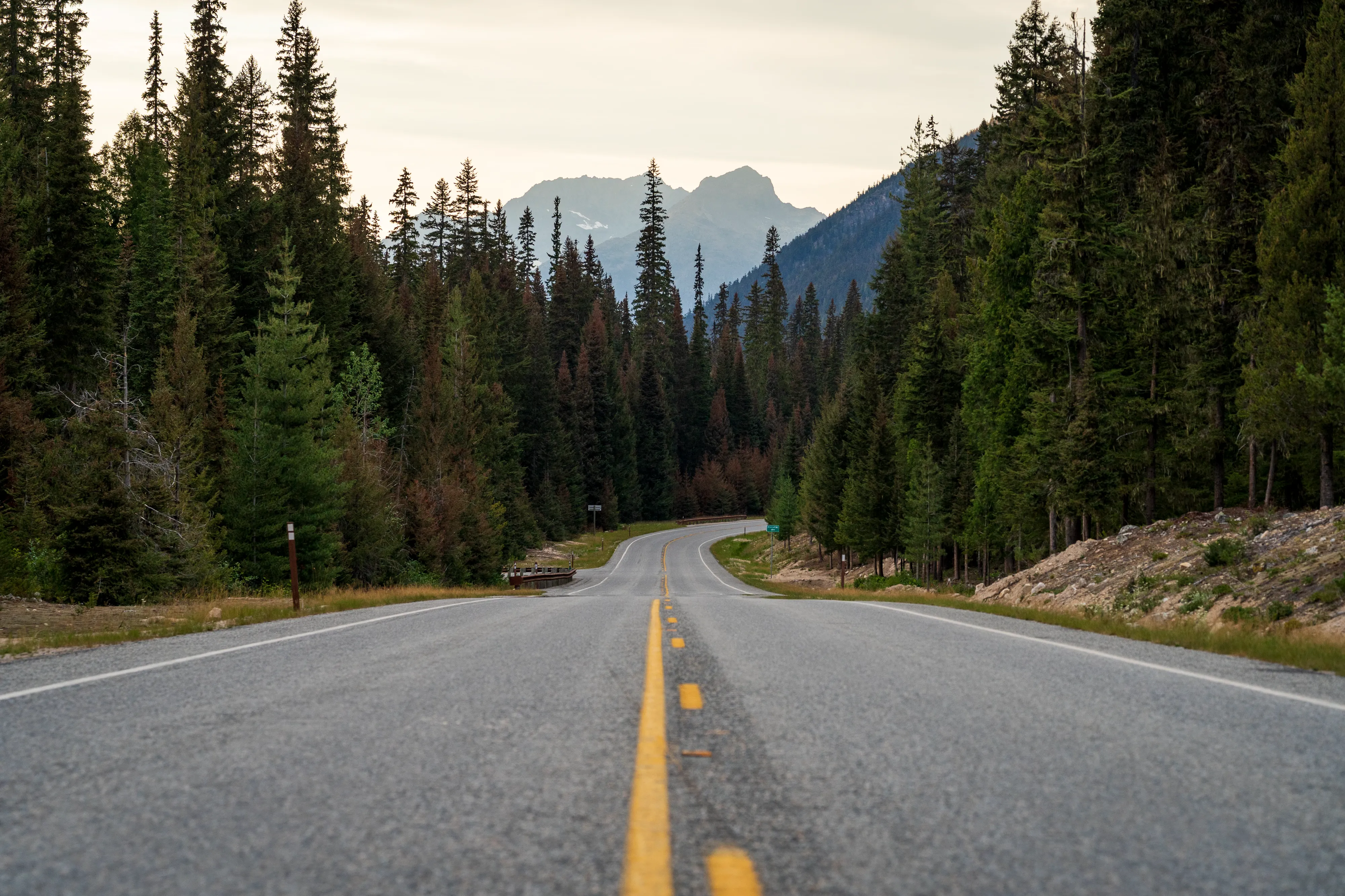 Weiter Richtung Tal kommen wir zum Ross Lake und dem gleichnamigen Aussichtspunkt. Mindestens so sehenswert wie der See selbst ist jedoch die Straße und die Gipfel in der Ferne.