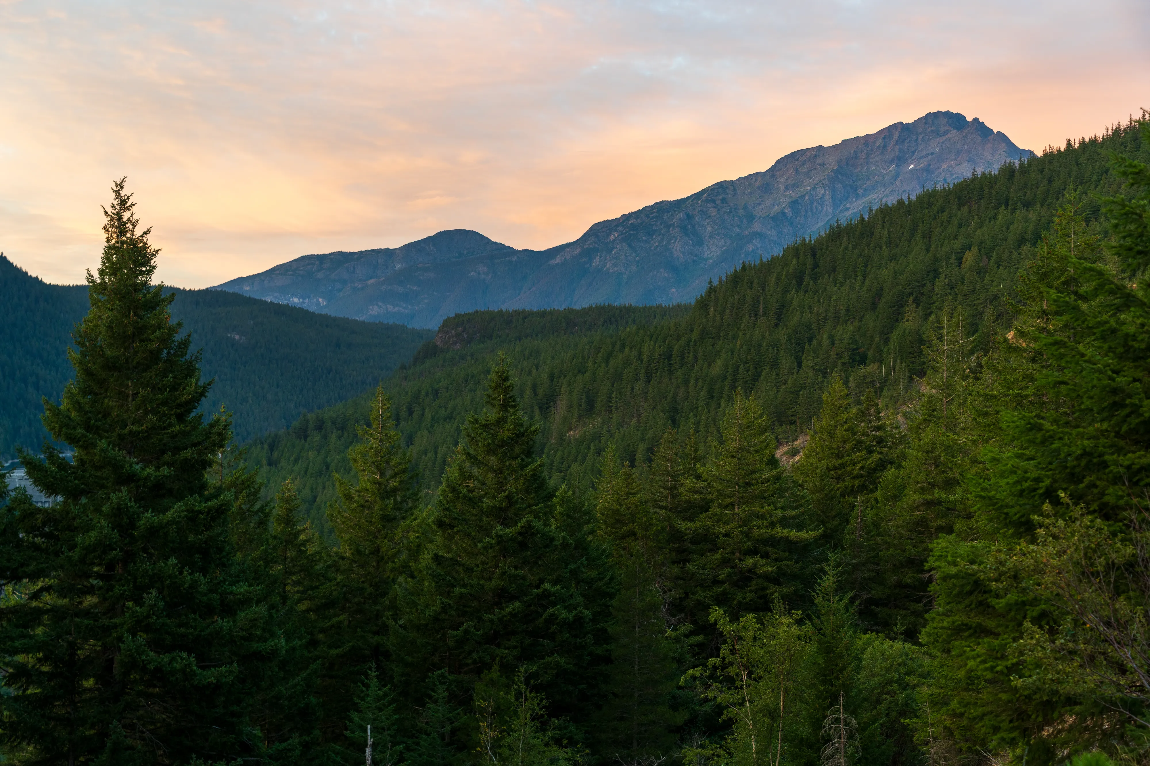 Mit dem letzten Licht des Tages erreichen wir den Newhalem Creek Campground.