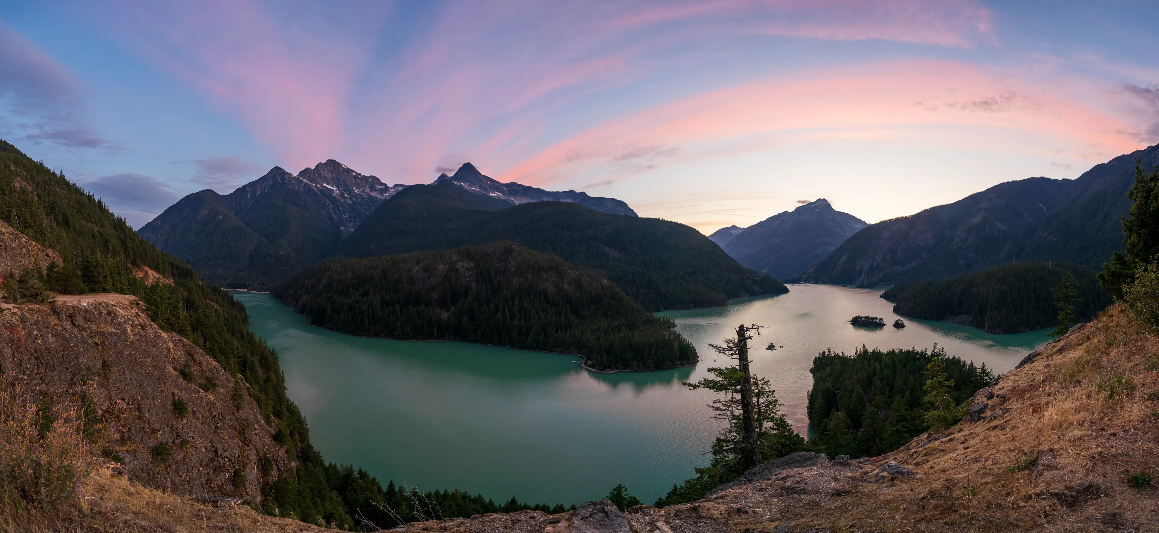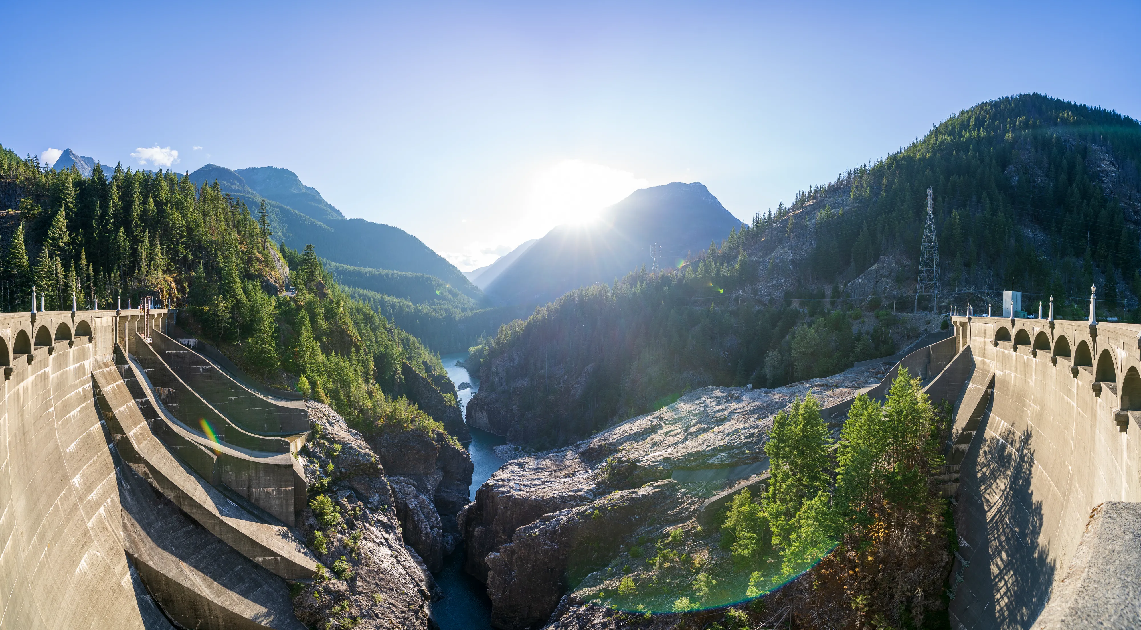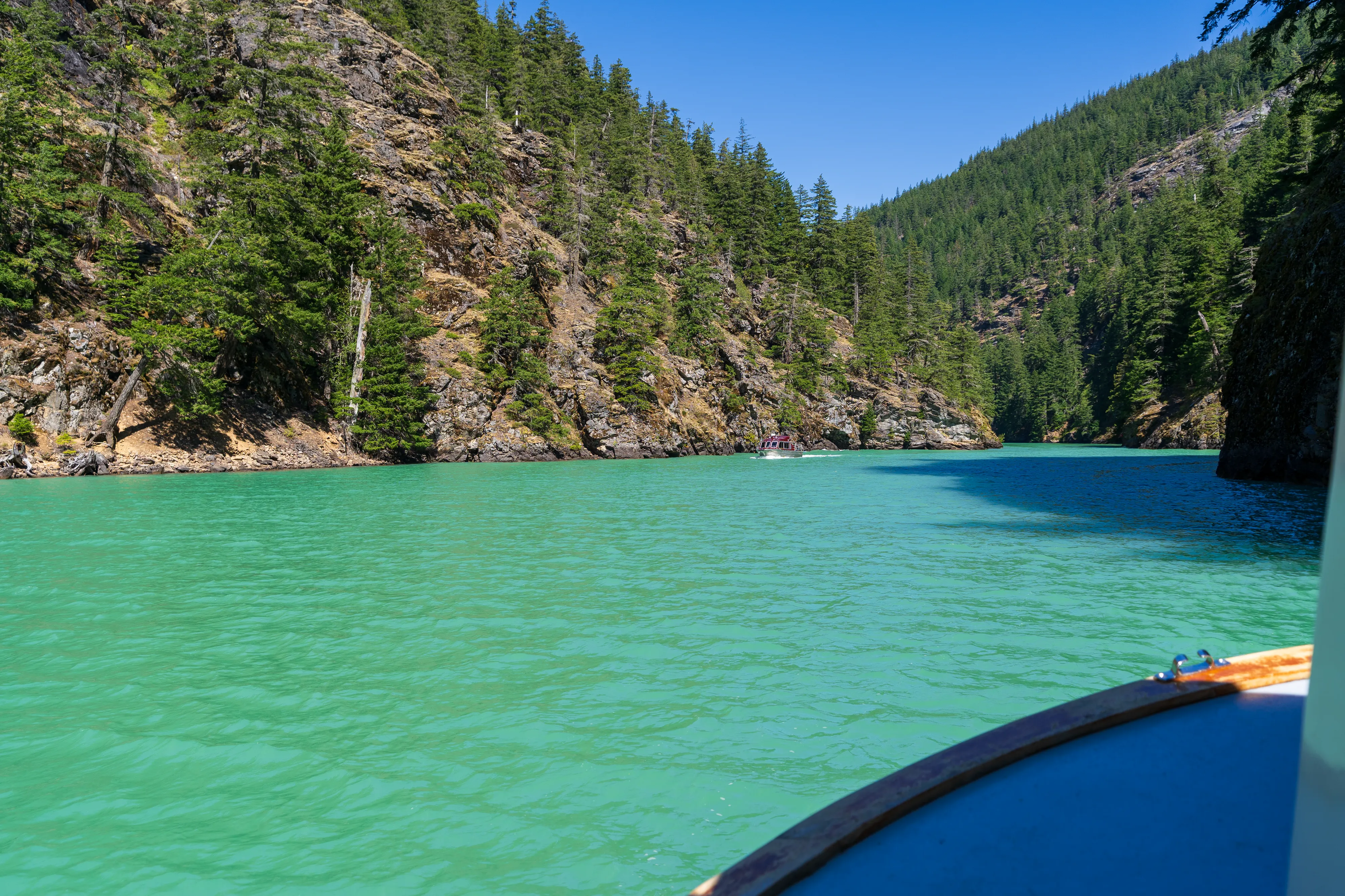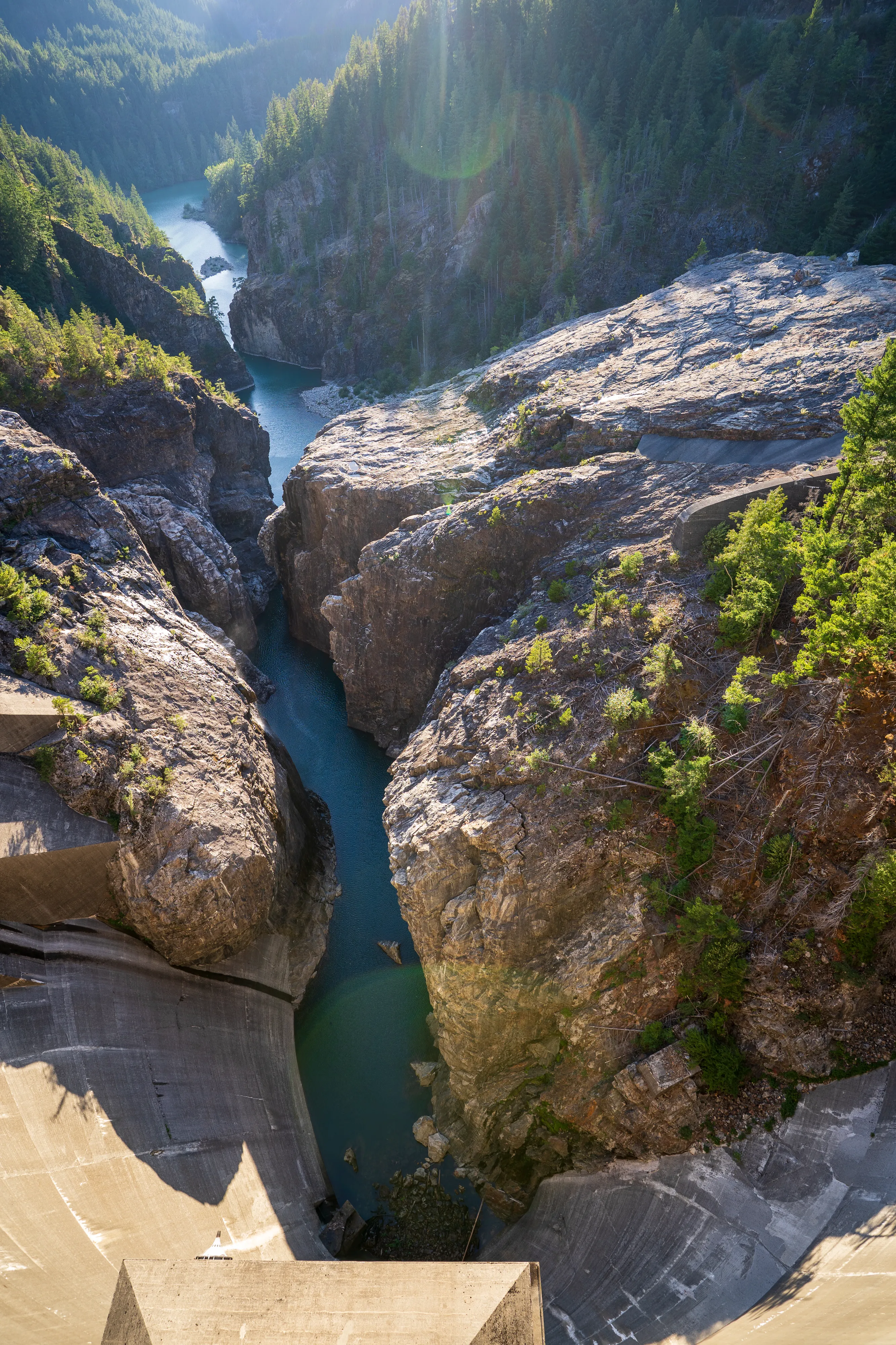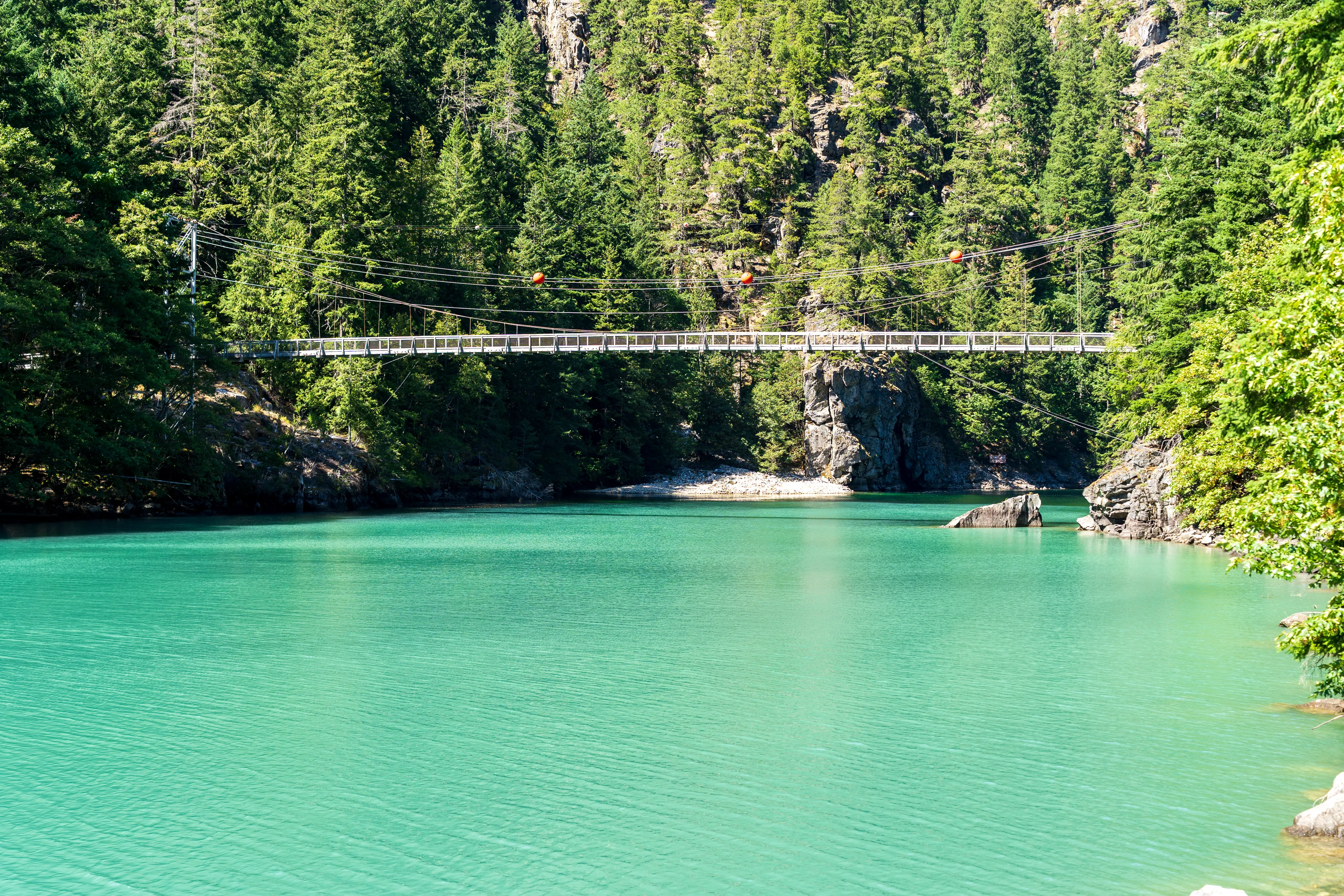 Am Westufer des Diablo Lake fährt zweimal täglich eine Fähre zum Ross Dam (betrieben von den öffentlichen Elektrizitätswerken von Seattle, welche auch die drei hiesigen Dämme gebaut haben und betreiben) - von wo aus man über den Diablo Lake Trail oberhalb des Sees zurücklaufen kann - wirklich eine empfehlenswerte Tour.