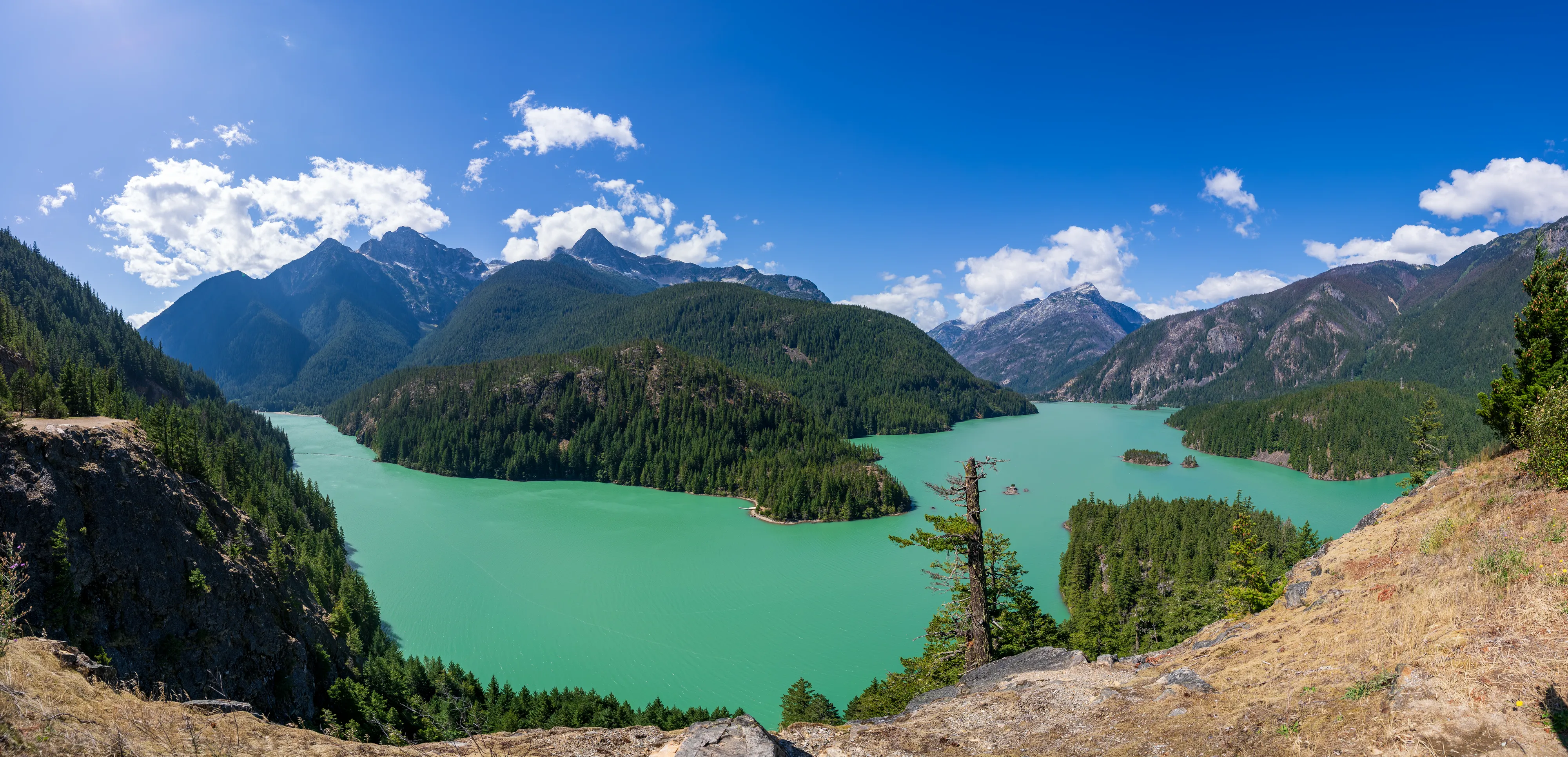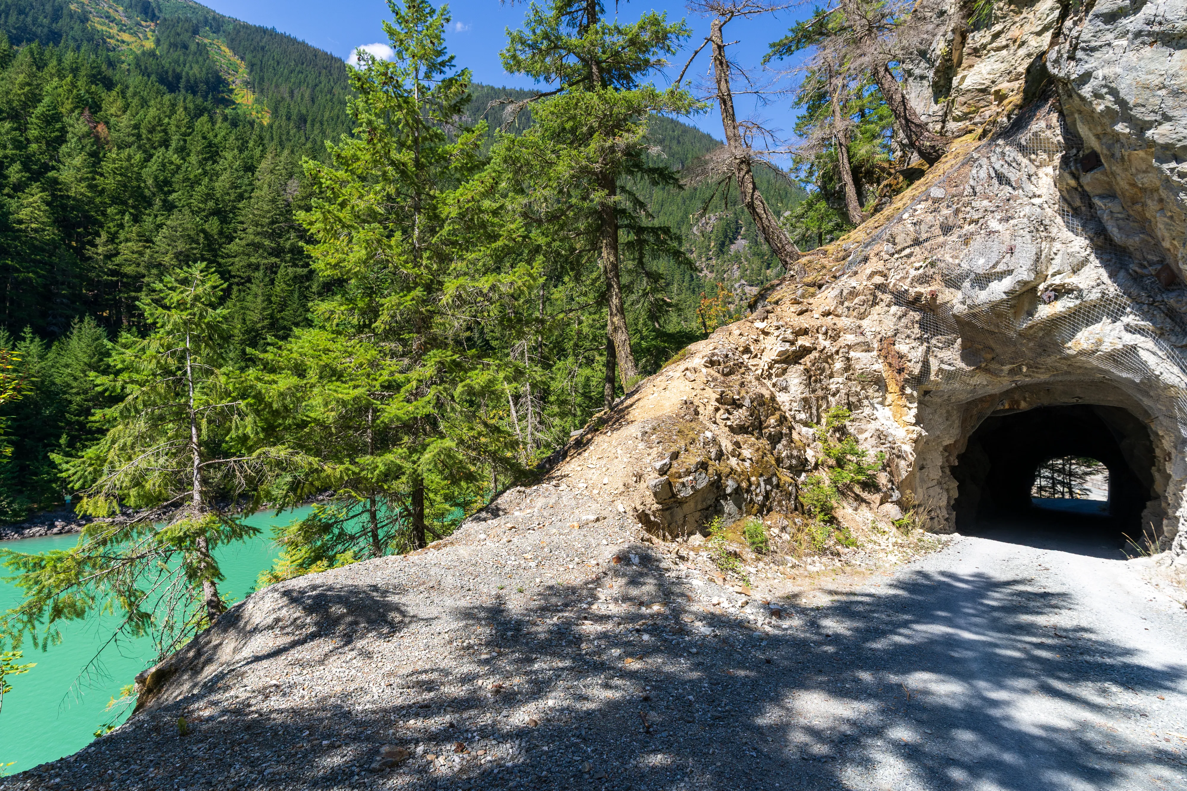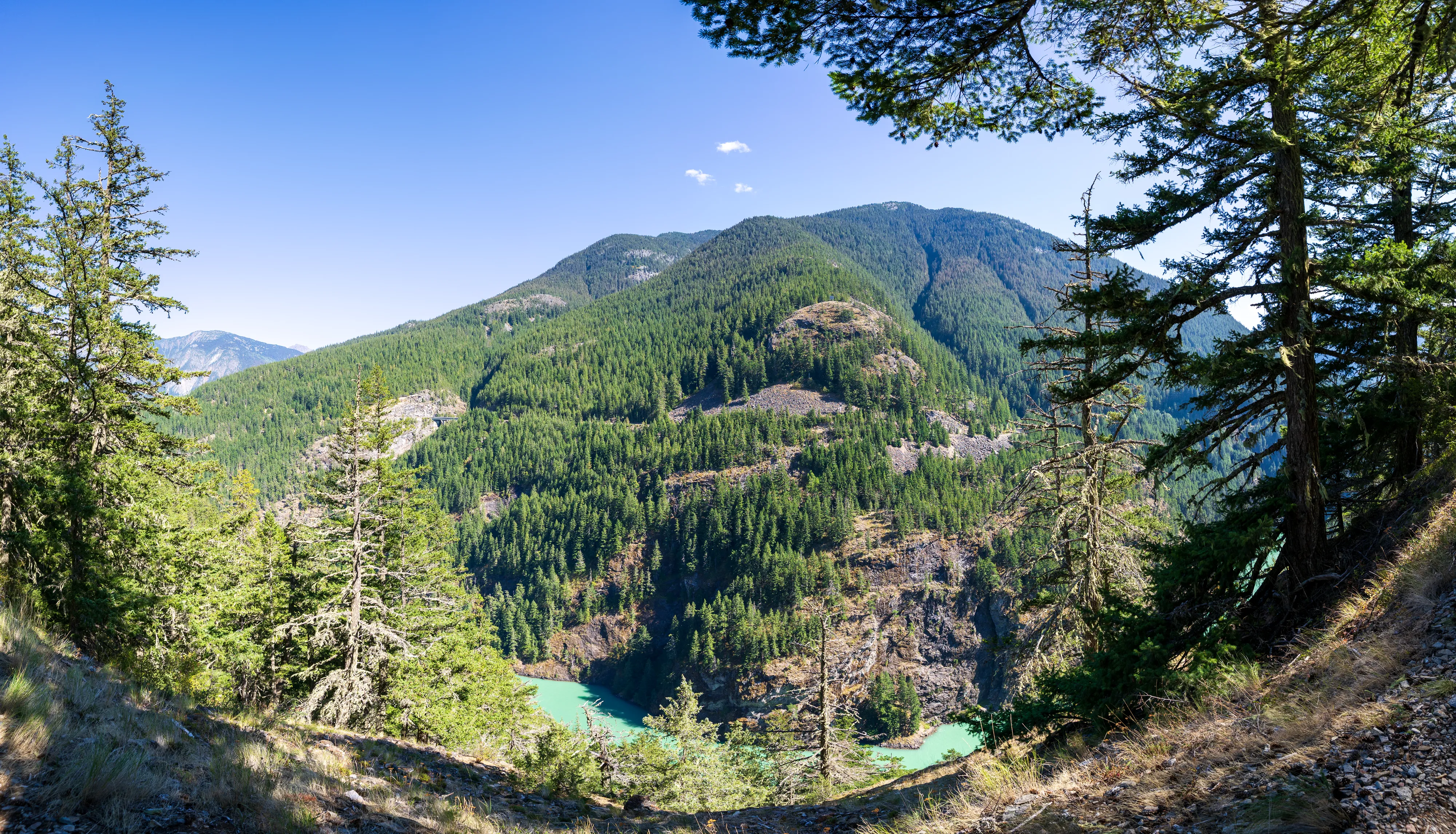 Der Diablo Lake ist auch bei Tag ein wirklich grandioser Anblick - auch, weil man hier seine, durch viel eingetragenes Sediment verschuldete, Färbung gut sehen kann.
