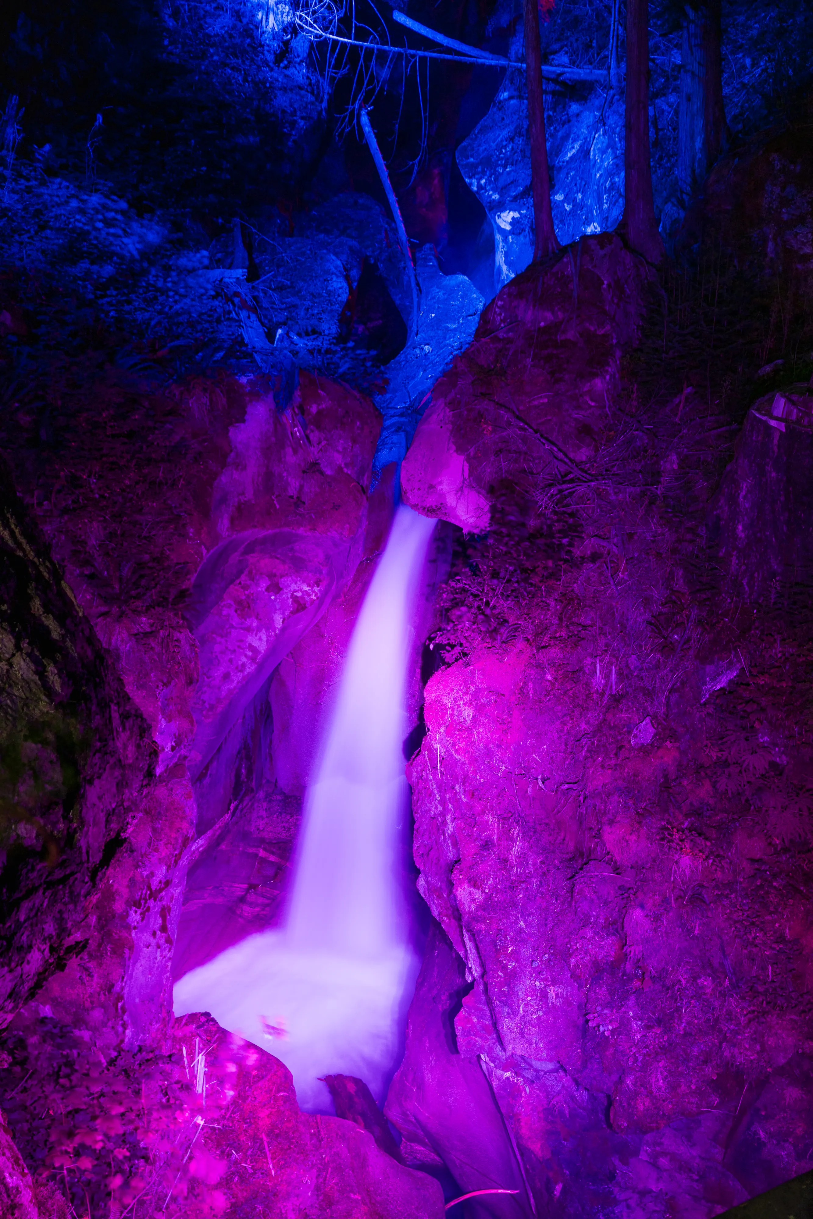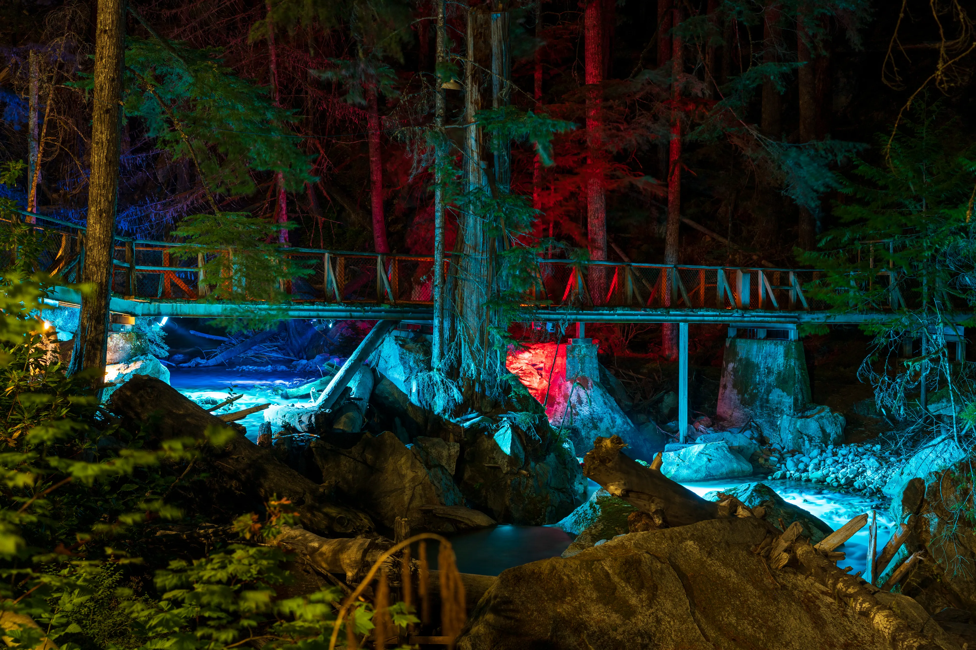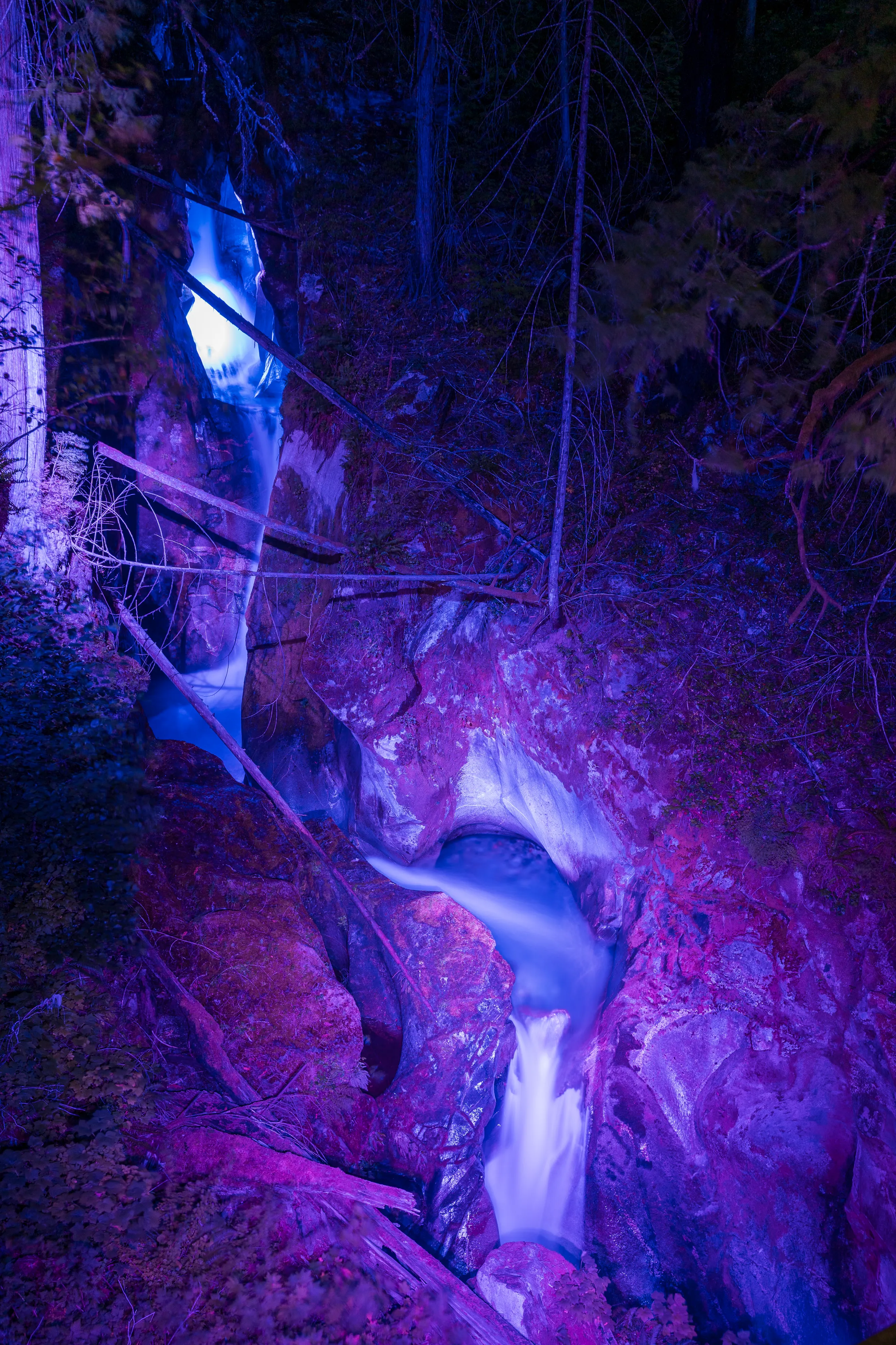 Nach einem frühen Abendessen fahren wir nochmal los, zu den Lader Creek Falls, welche sich auf dem Gelände des Gorge Powerhouses befinden, hierzu später mehr. Das Besondere an diesen an sich eher unscheinbaren Wasserfällen ist, dass sie nachts mit bunten Lichtern angeleuchtet werden und so in der Dunkelheit ein schönes Bild ergeben. Als der Park vor über einem halben Jahrhundert angelegt wurde, erwärmte man mittels Strom sogar den Boden, um tropische Pflanzen gedeihen zu lassen - mit der Absicht, zu zeigen, dass mit Strom alles möglich sei.