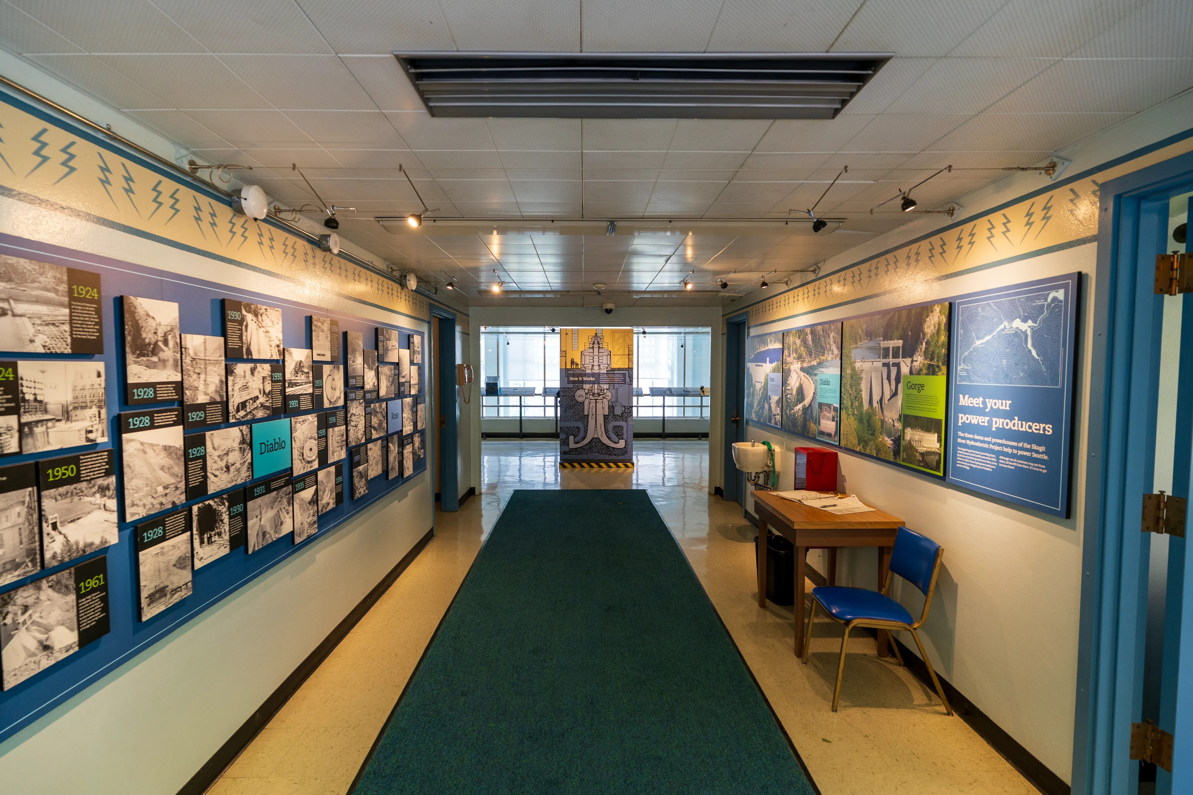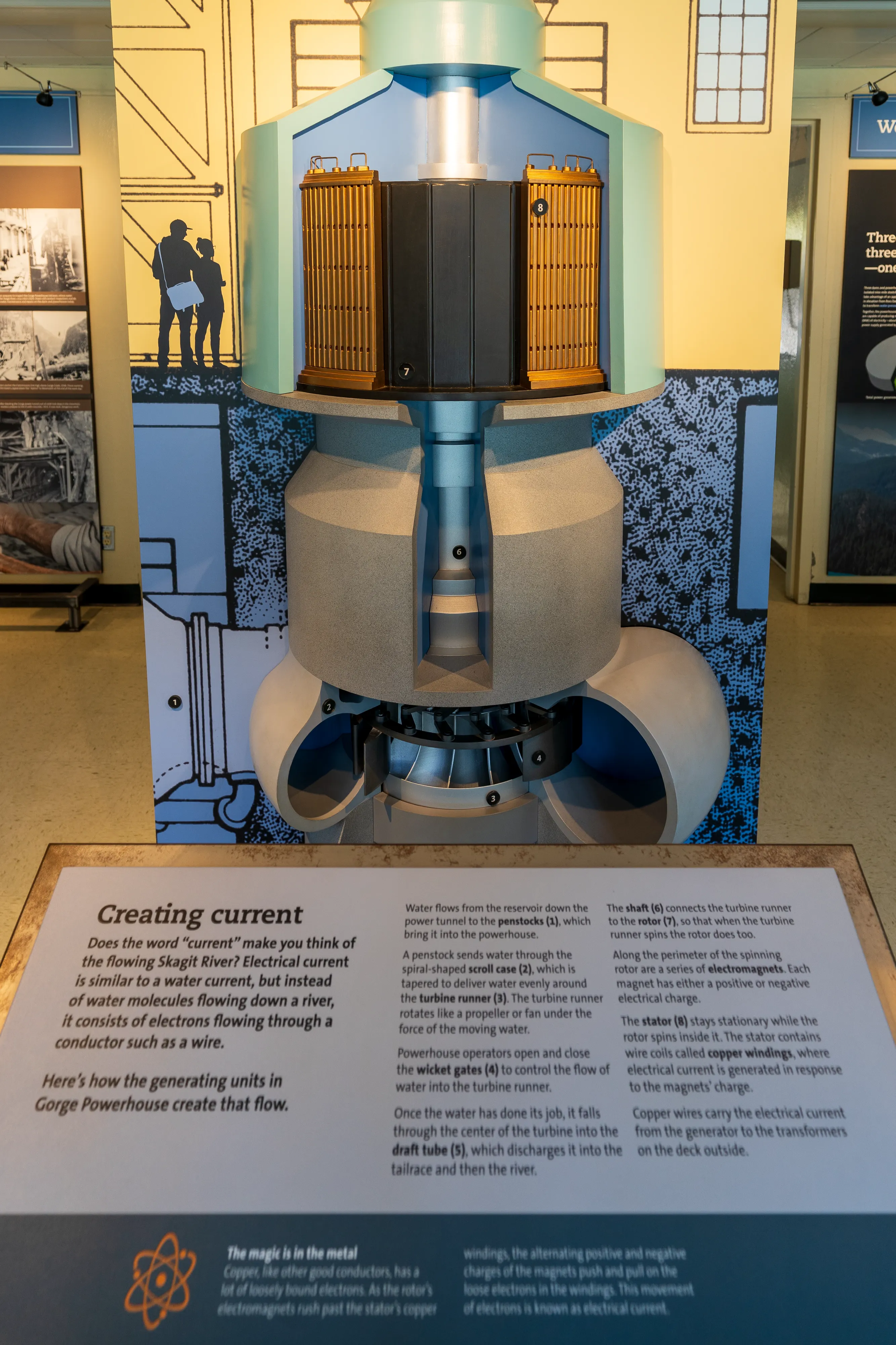 Wir statten dem Gorge Powerhouse am nächsten Morgen nochmal einen Besuch ab, da es hier eine kleine, aber sehr informative Ausstellung über die drei Stauseen, deren Staudämme und Kraftwerke gibt. Zusammen produzieren diese einen großen Teil des von Seattle benötigten Stroms auf sehr klimafreundliche Art und Weise. Die Ausstellung erklärt die Stromerzeugung aus Wasserkraft im Allgemeinen und geht besonders auf die hier gelegenen Anlagen ein.