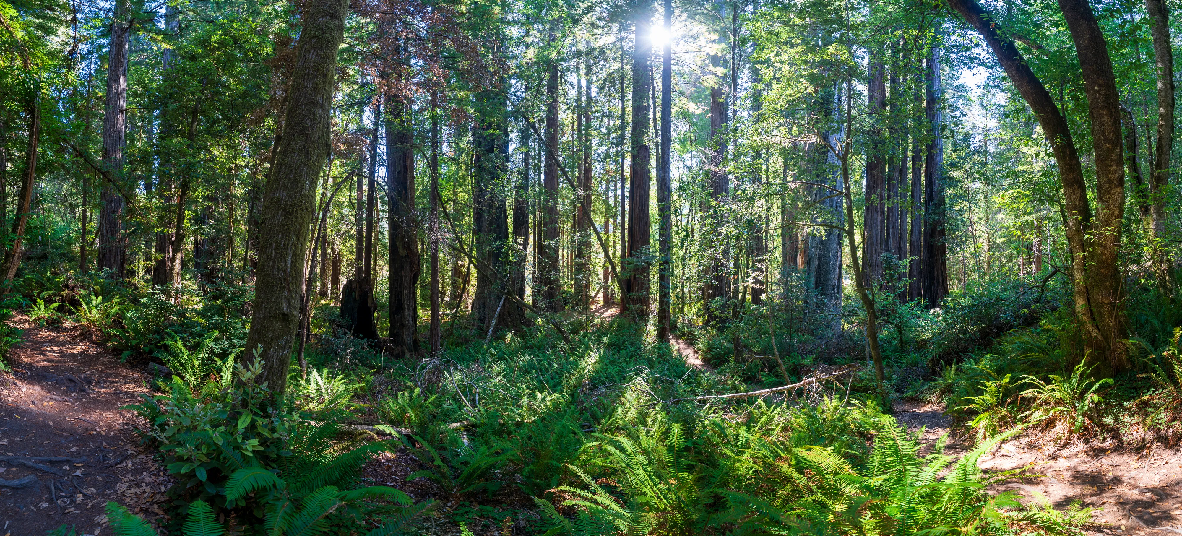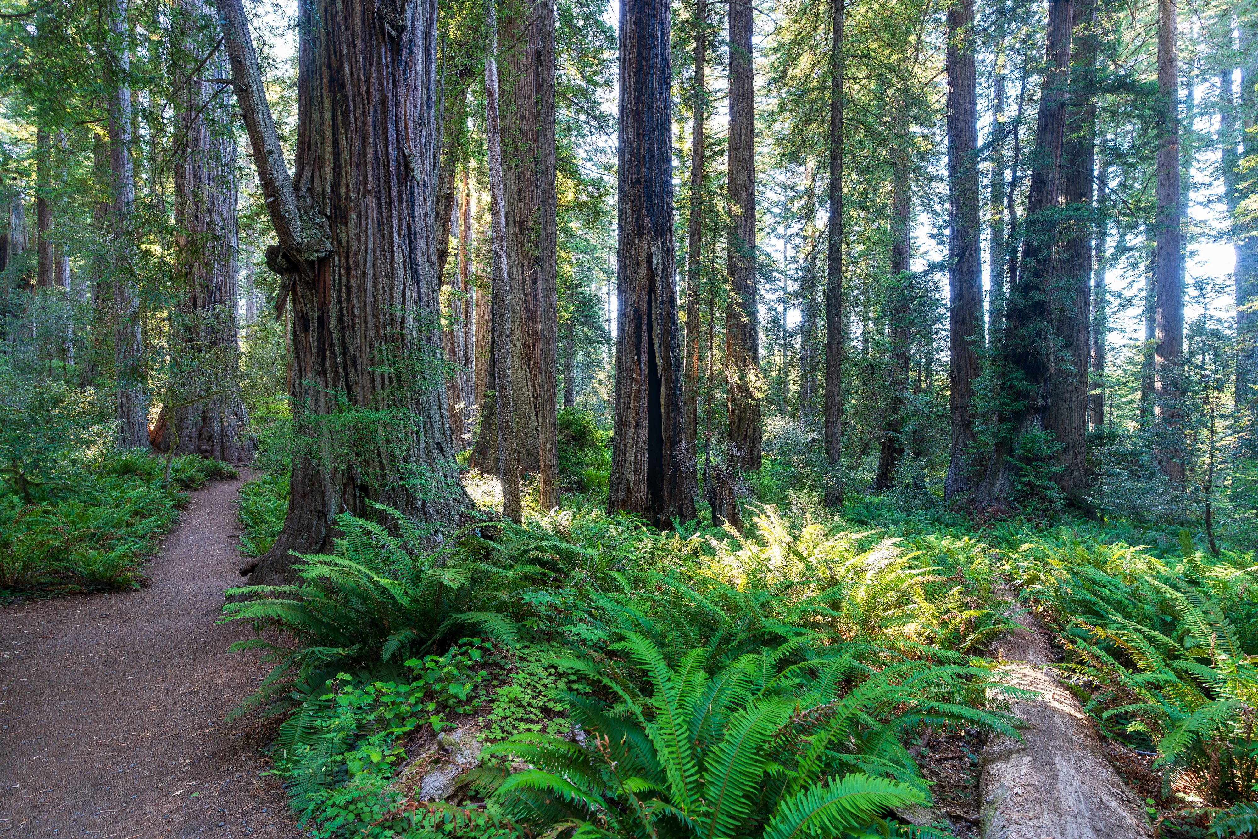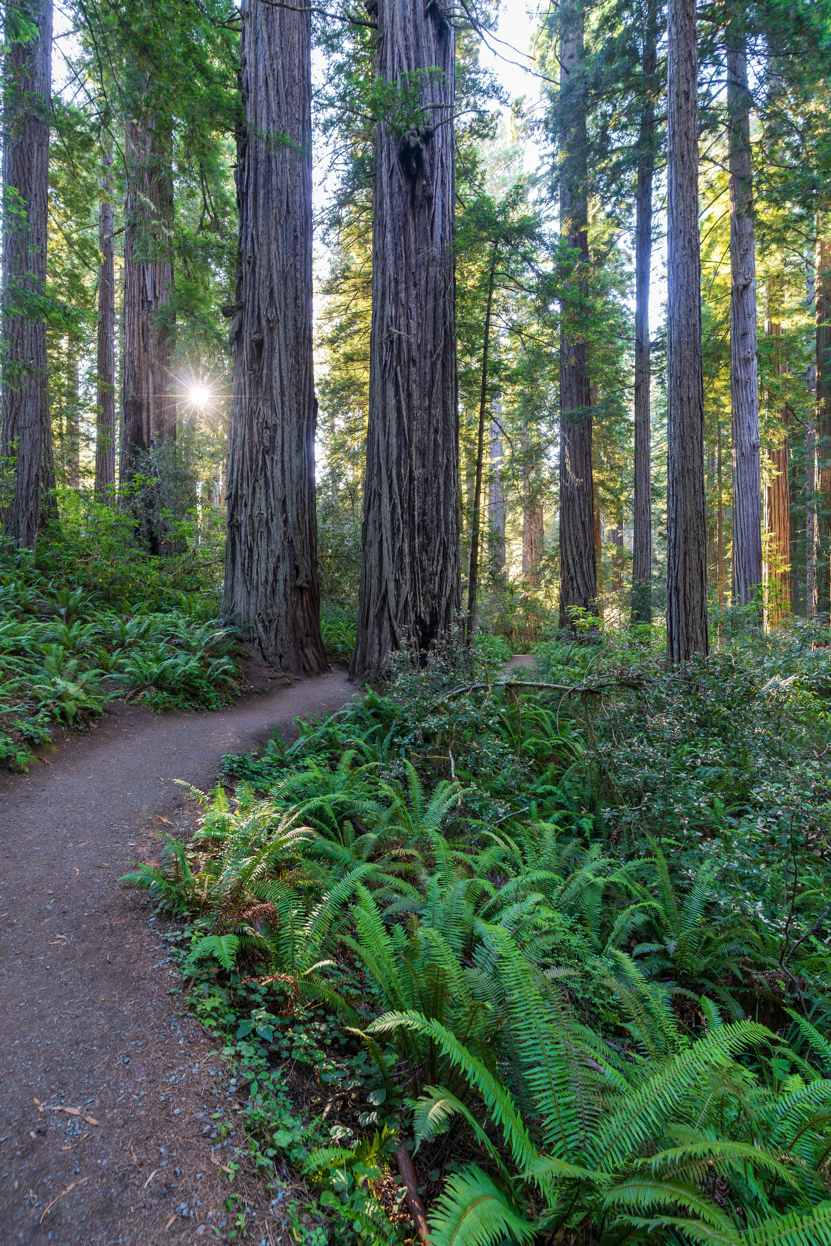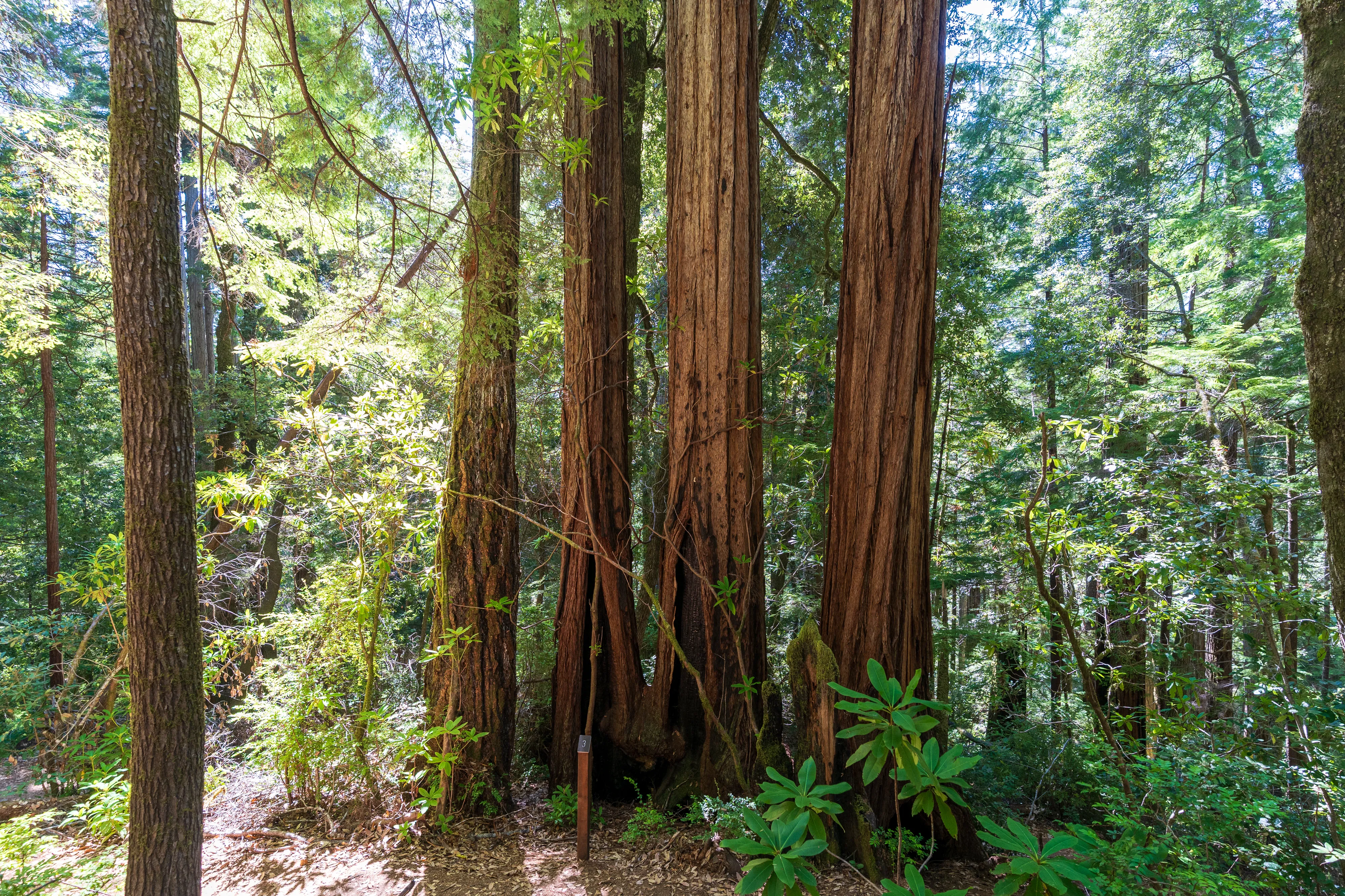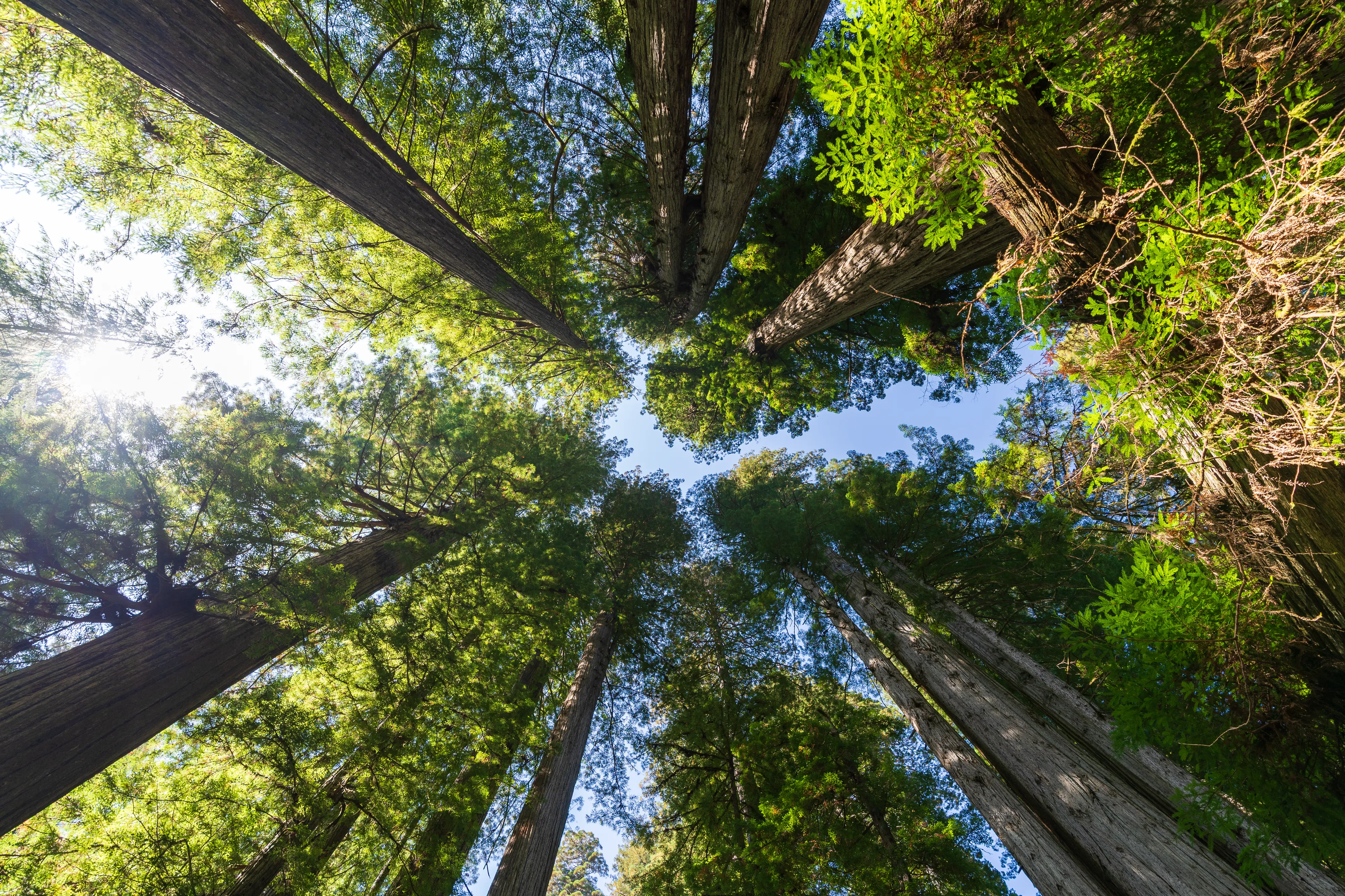 Der Küstenmammutbaum alias Coast Redwood (Sequoia sempervirens) ist vom Aussterben bedroht und nur noch an wenigen Orten zu finden, da sie in der Vergangenheit großflächig wegen ihres Holzes gefällt wurden. Das Holz ist wegen seiner Langlebigkeit und Feuerfestigkeit beliebt. Dadurch, dass Redwoods in ihrer Rinde hauptsächlich Wasser anstelle von Harz haben, ist die Rinde feuerfest und schmort eher als dass sie brennt. So kann es sein, dass ein Redwood durch wiederholte Waldbrände “innerlich” verkohlt und sogar hohl ausbrennt, die Rinde jedoch bestehen bleibt, den Baum weiterhin stützt und dieser weiterlebt. Die Mammutbäume können mehr als 2000 Jahre alt werden und während dieser Zeit eine stolze Größe von etwa 115 m und einen Umfang von 8 bis 9 m erreichen. Ganz schön beeindruckende Riesen.