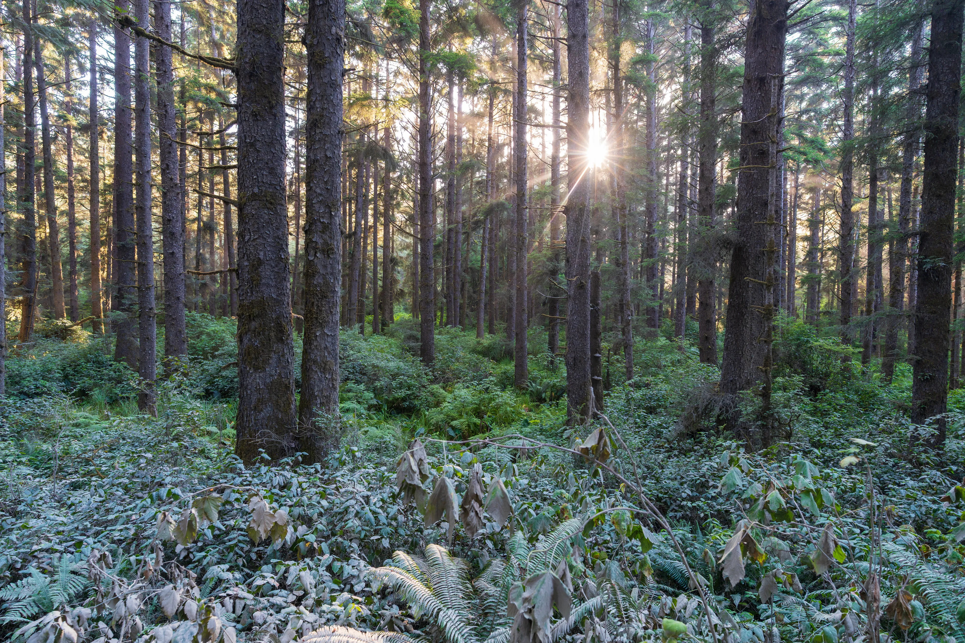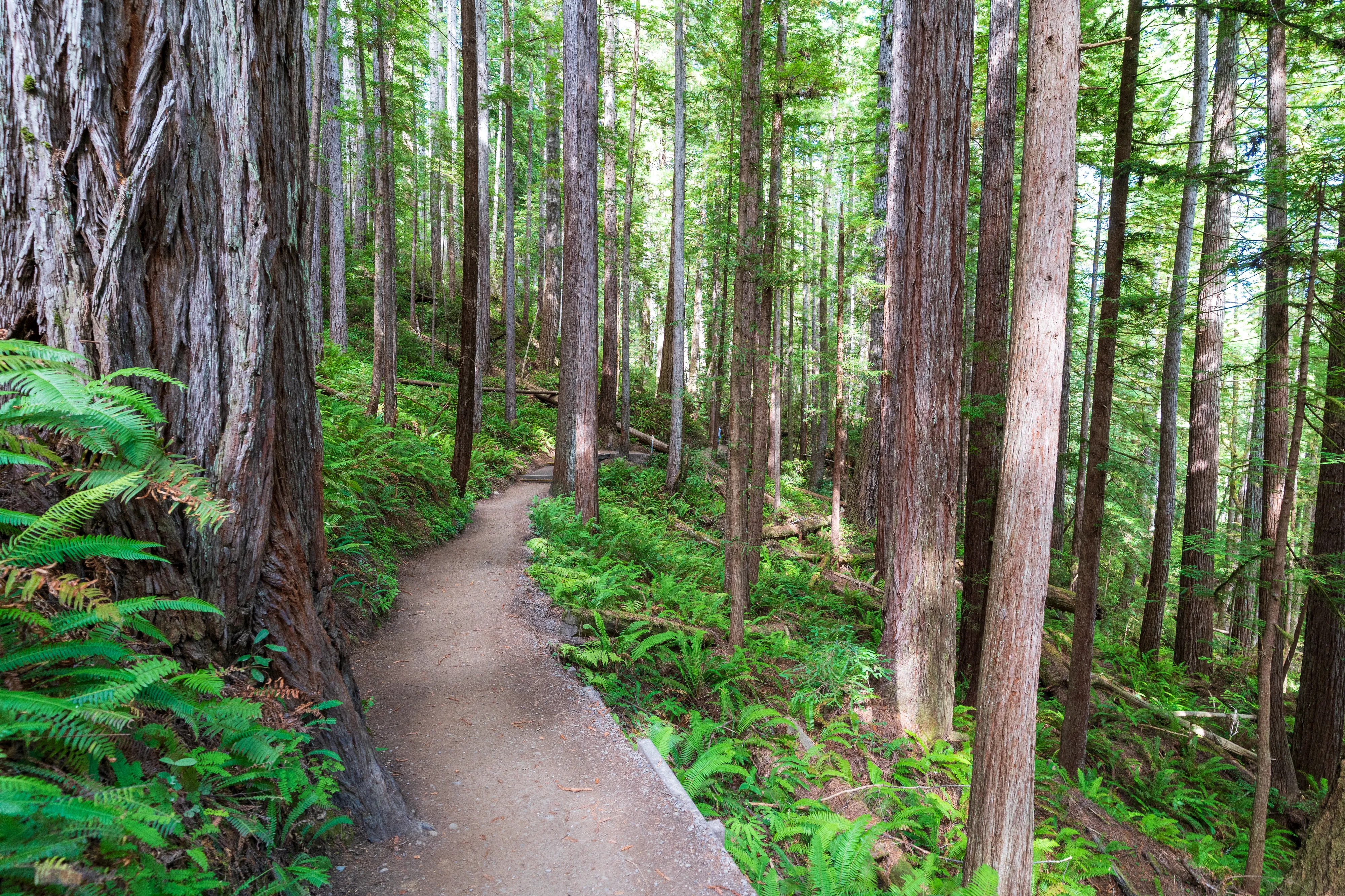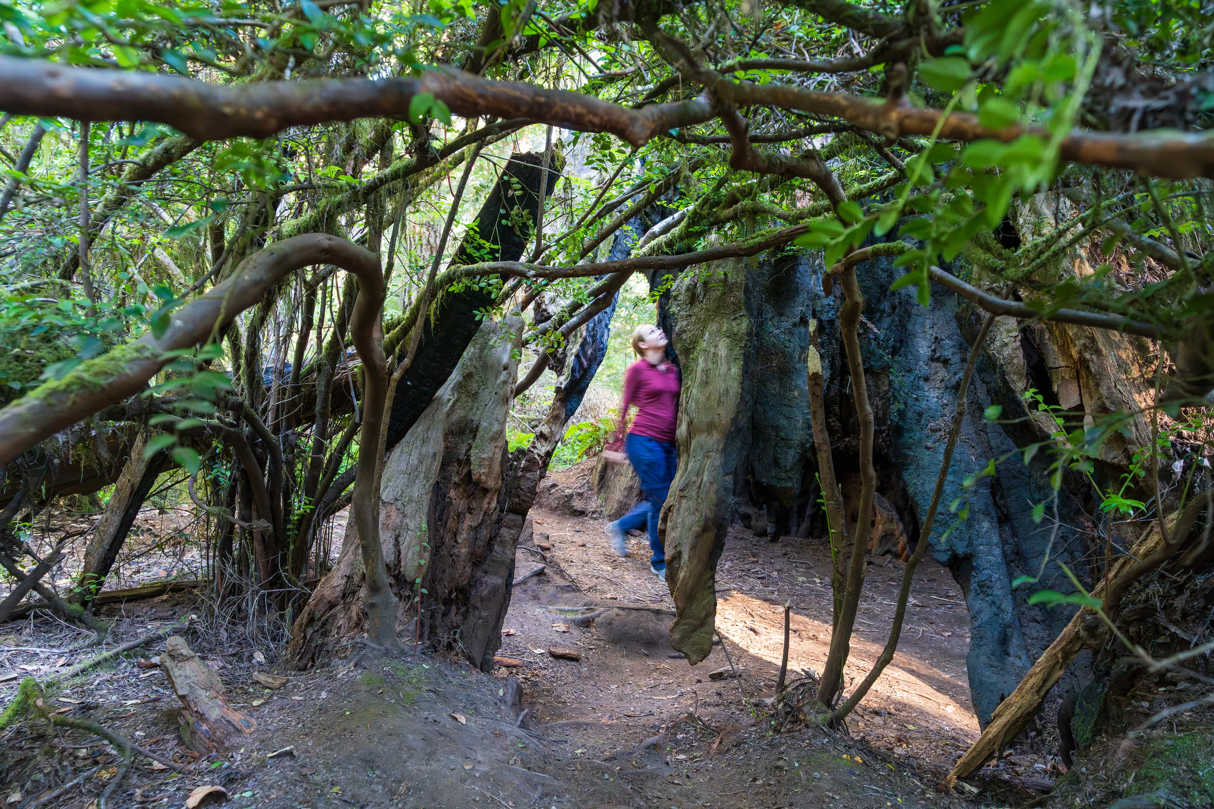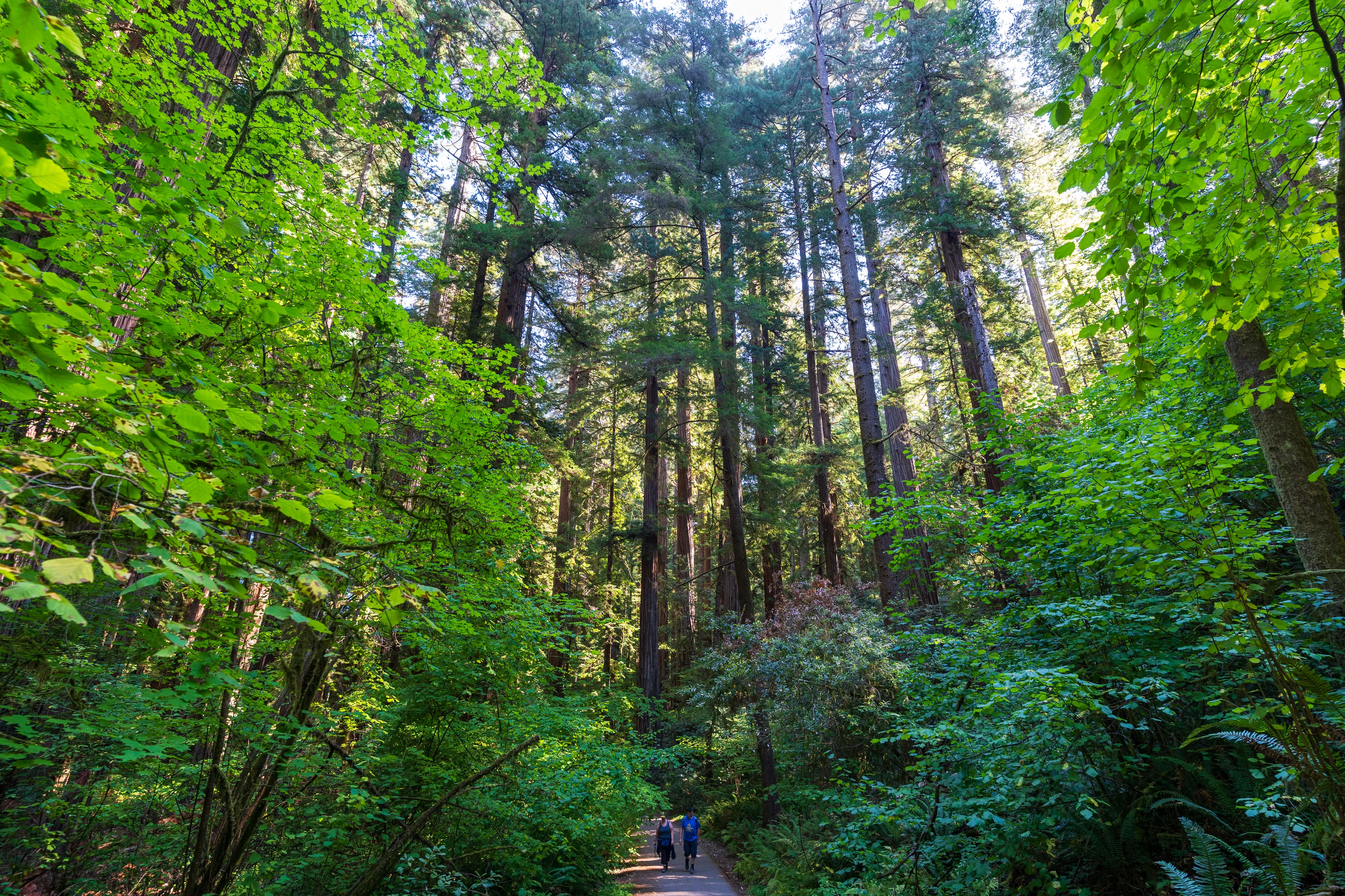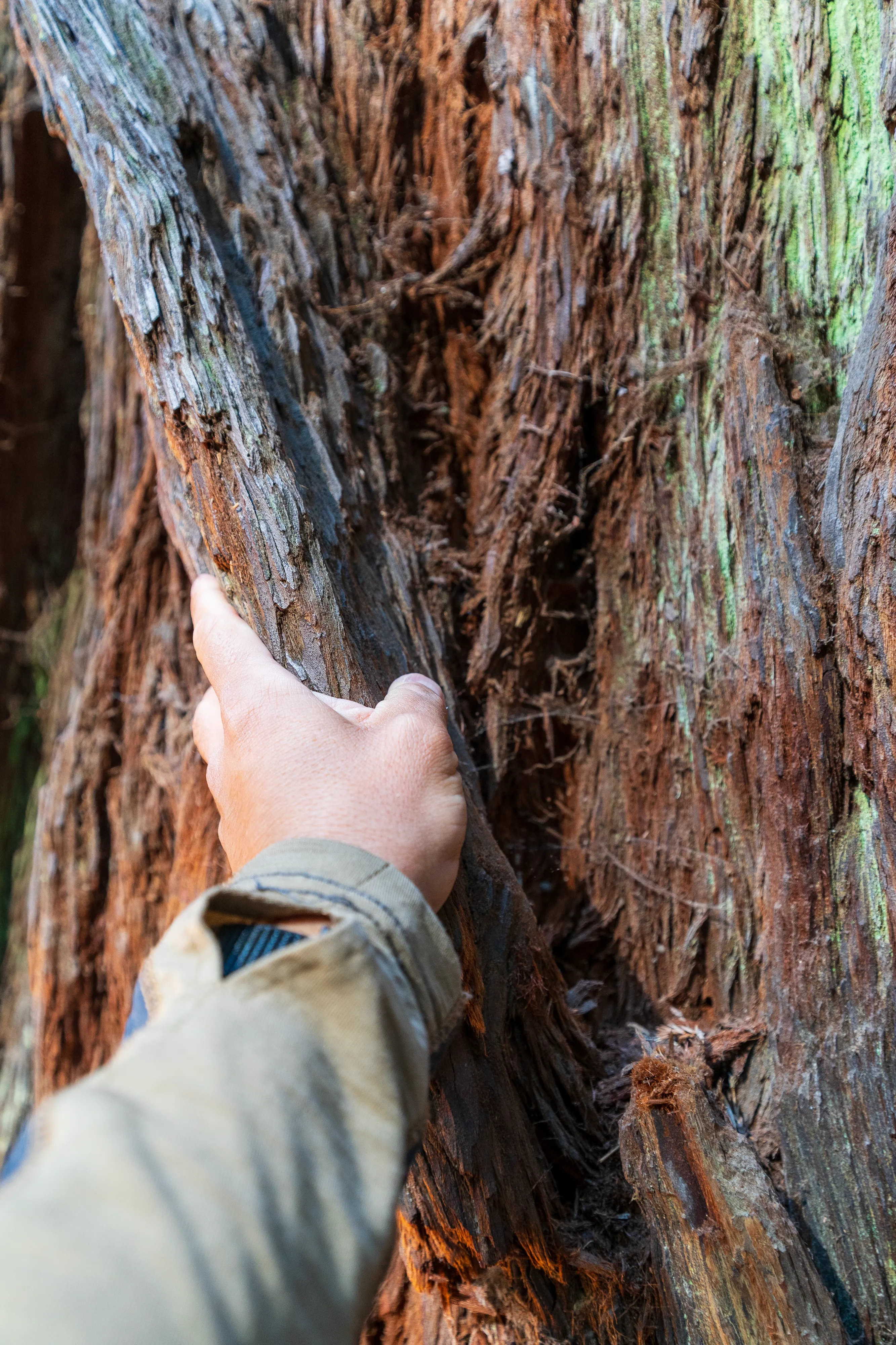 Der Küstenmammutbaum alias Coast Redwood (Sequoia sempervirens) ist vom Aussterben bedroht und nur noch an wenigen Orten zu finden, da sie in der Vergangenheit großflächig wegen ihres Holzes gefällt wurden. Das Holz ist wegen seiner Langlebigkeit und Feuerfestigkeit beliebt. Dadurch, dass Redwoods in ihrer Rinde hauptsächlich Wasser anstelle von Harz haben, ist die Rinde feuerfest und schmort eher als dass sie brennt. So kann es sein, dass ein Redwood durch wiederholte Waldbrände “innerlich” verkohlt und sogar hohl ausbrennt, die Rinde jedoch bestehen bleibt, den Baum weiterhin stützt und dieser weiterlebt. Die Mammutbäume können mehr als 2000 Jahre alt werden und während dieser Zeit eine stolze Größe von etwa 115 m und einen Umfang von 8 bis 9 m erreichen. Ganz schön beeindruckende Riesen.
