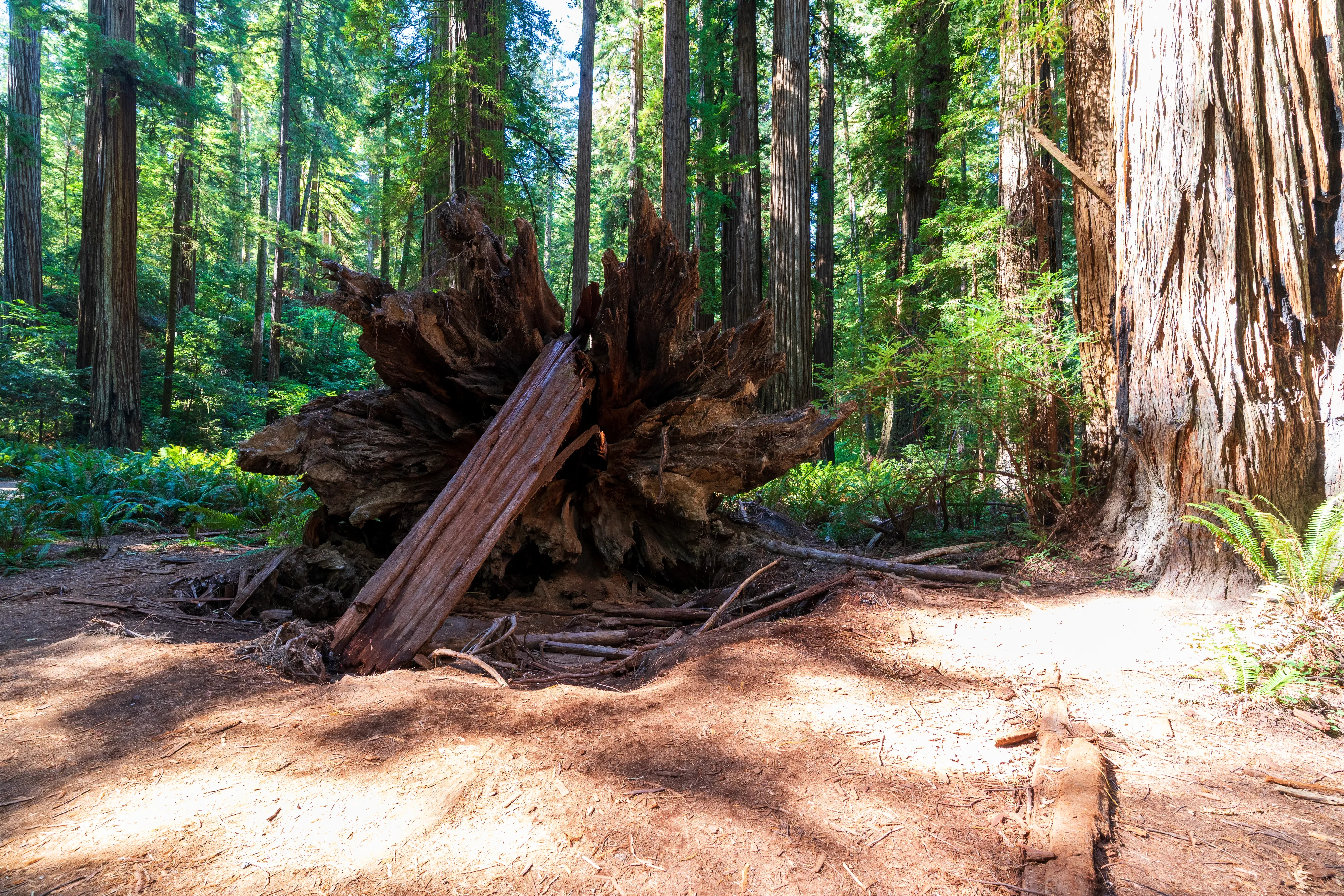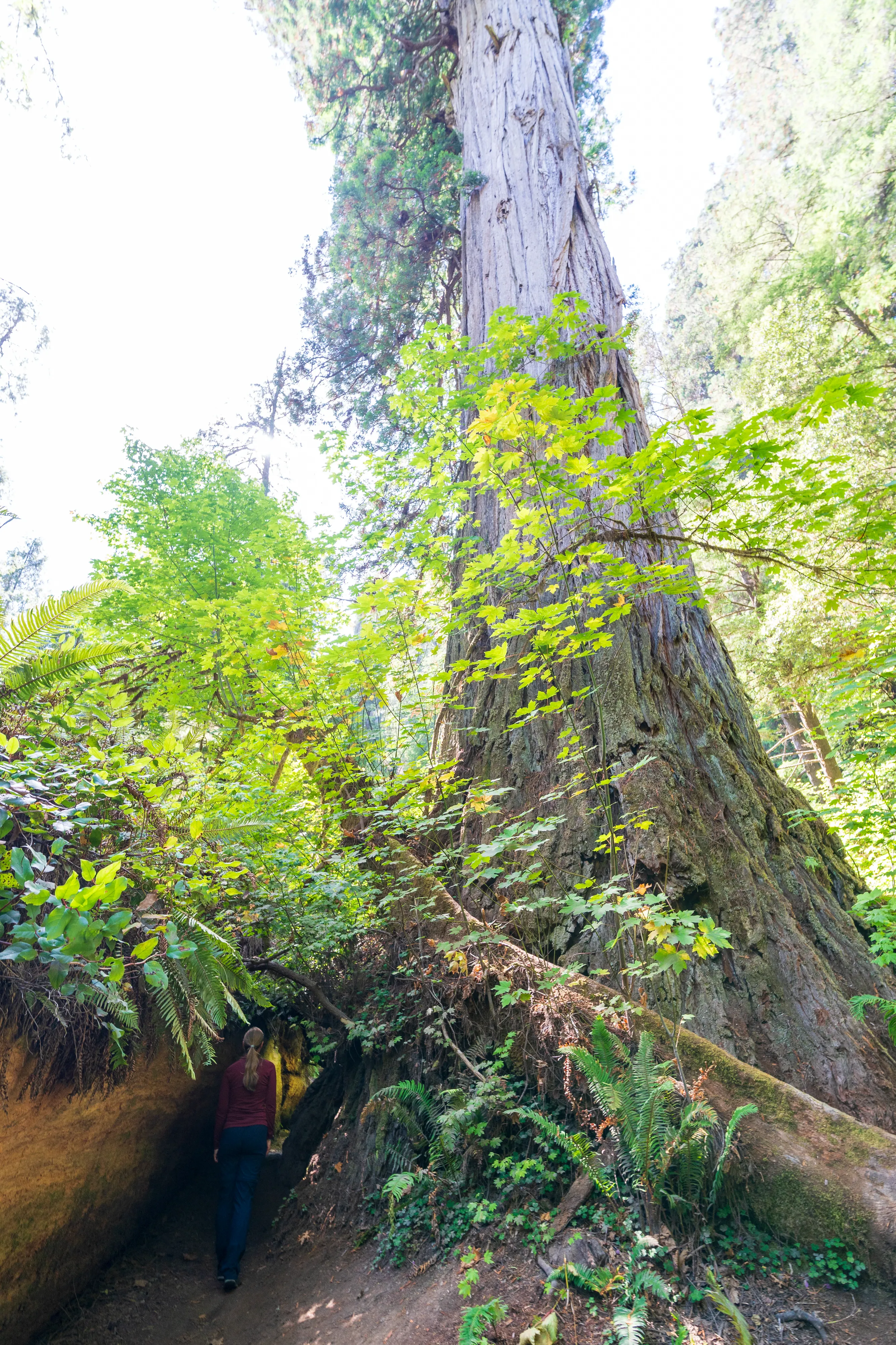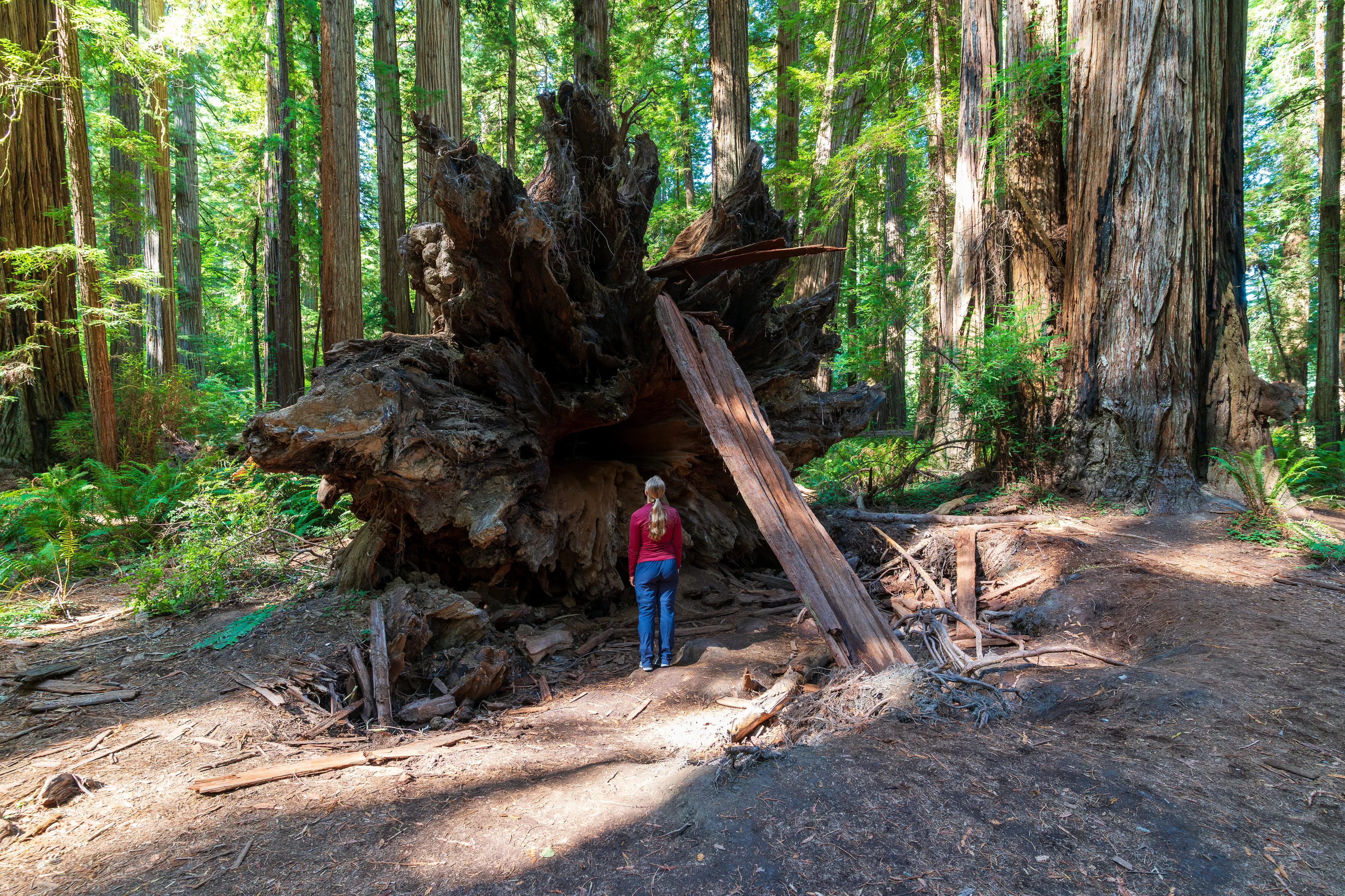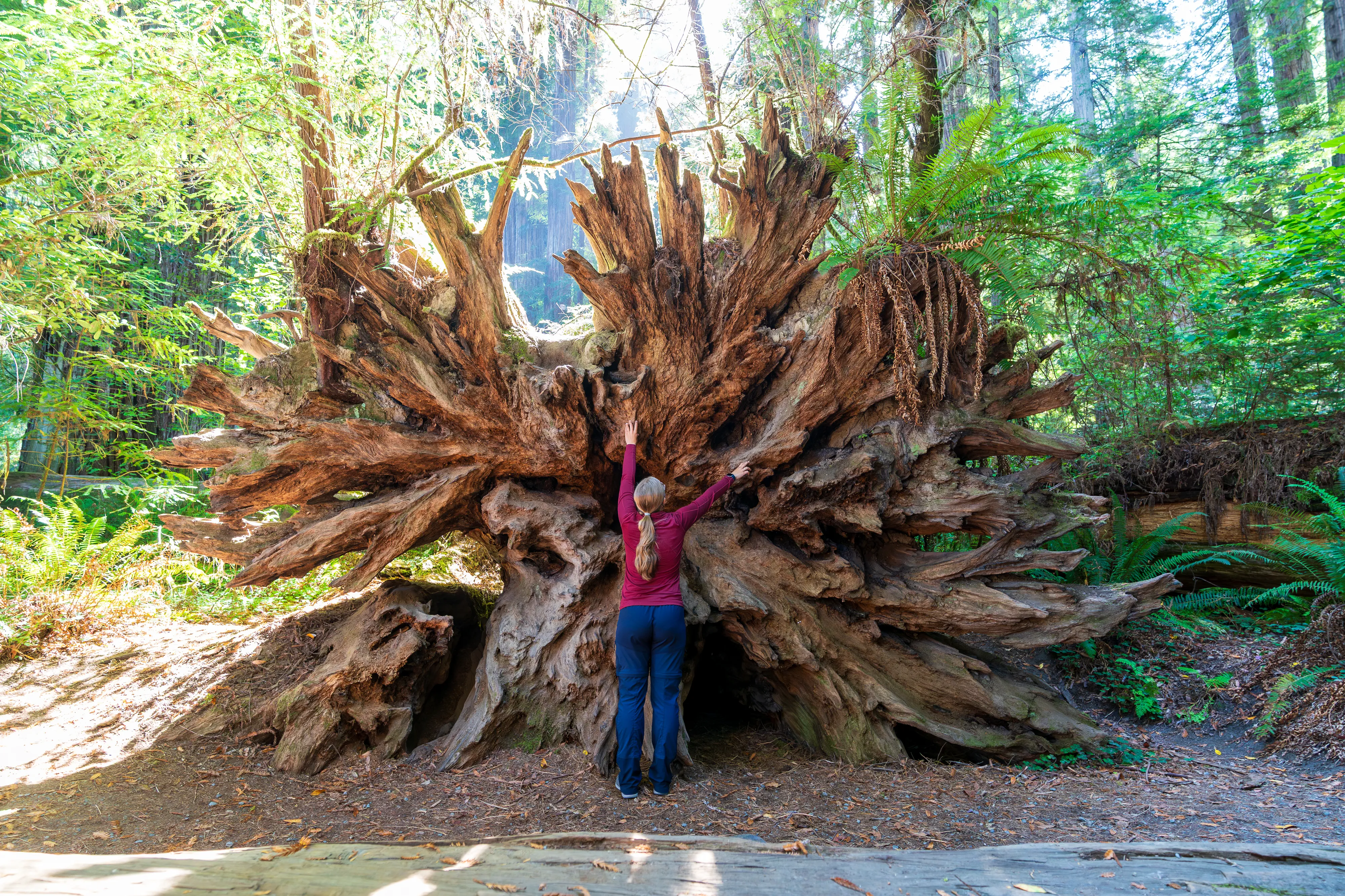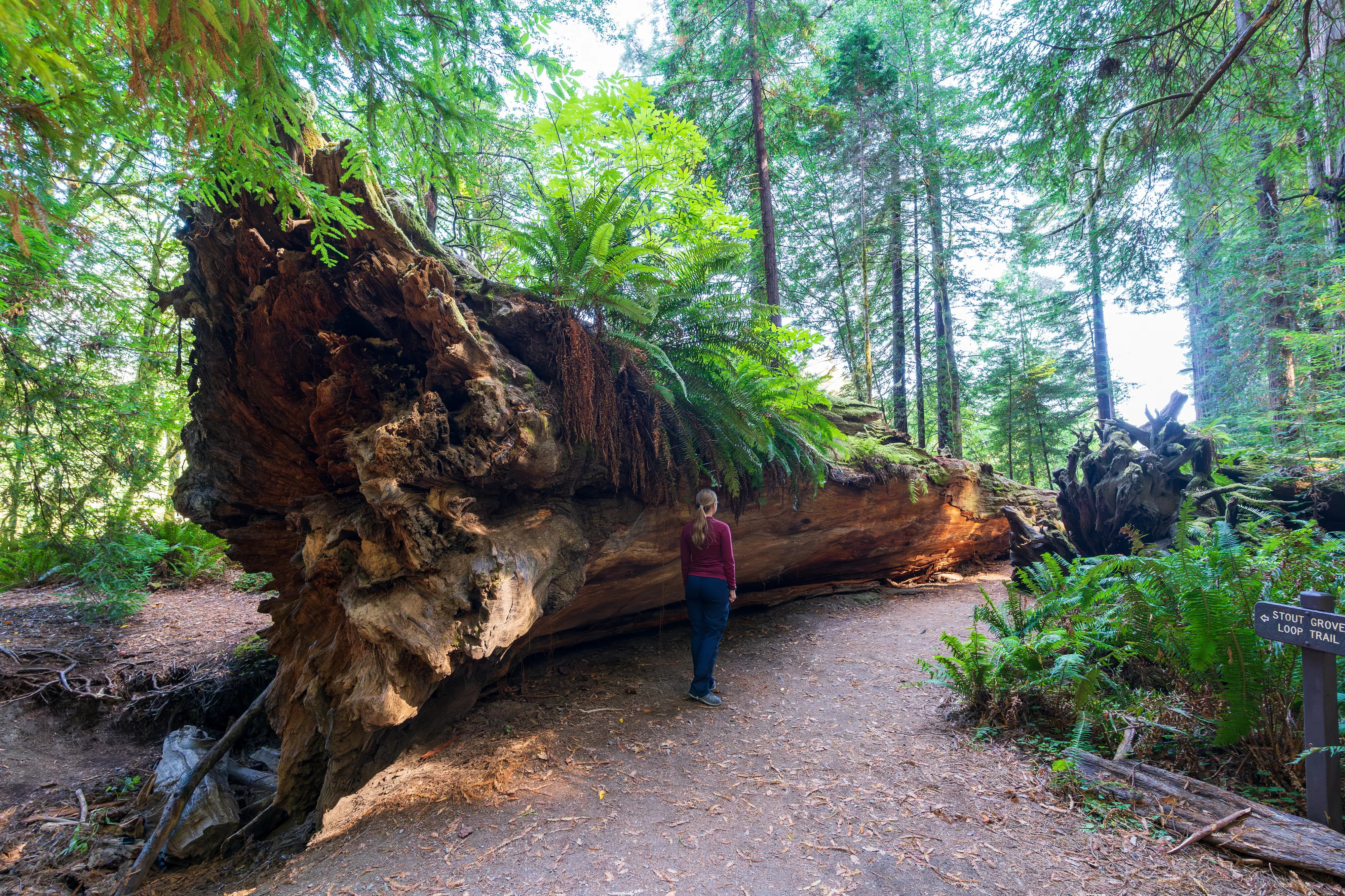 Entlang des Stout Memorial Grove Trails lassen sich weitere Mammutbäume bestaunen. Insbesondere die hohlen Baumstämme und die riesigen Wurzeln umgefallener Bäume beeindrucken uns besonders.