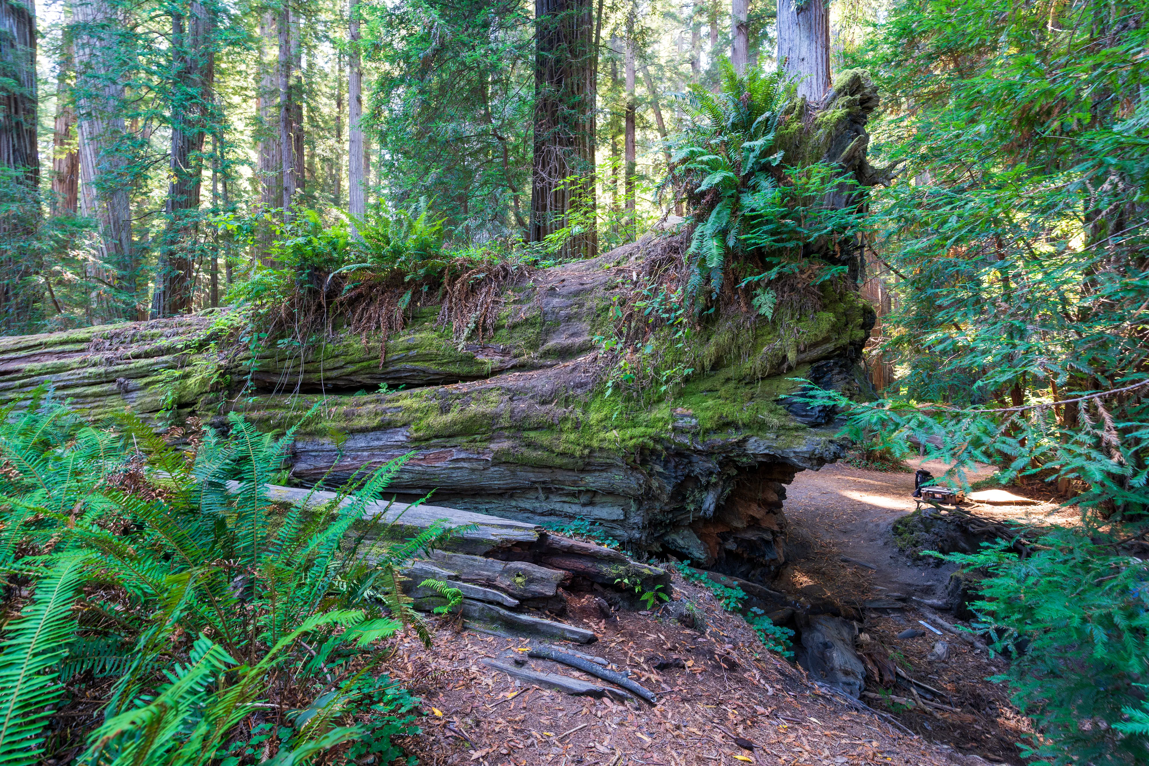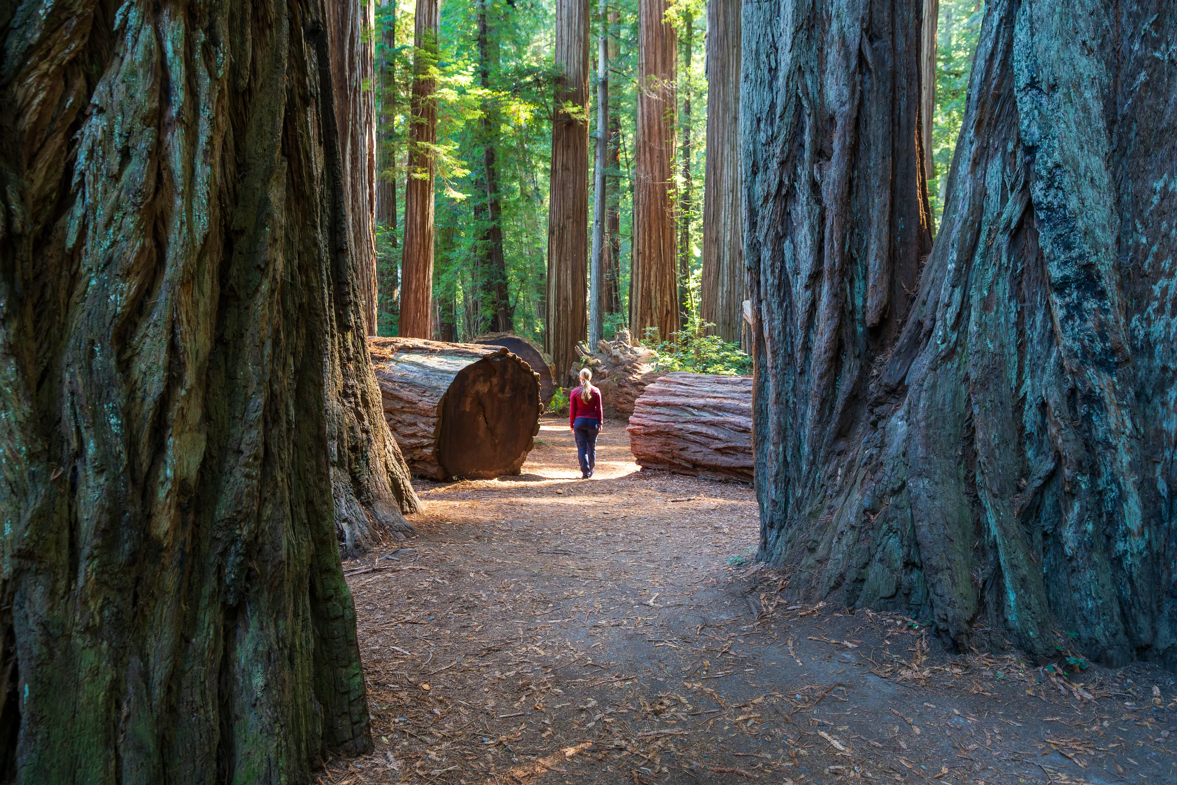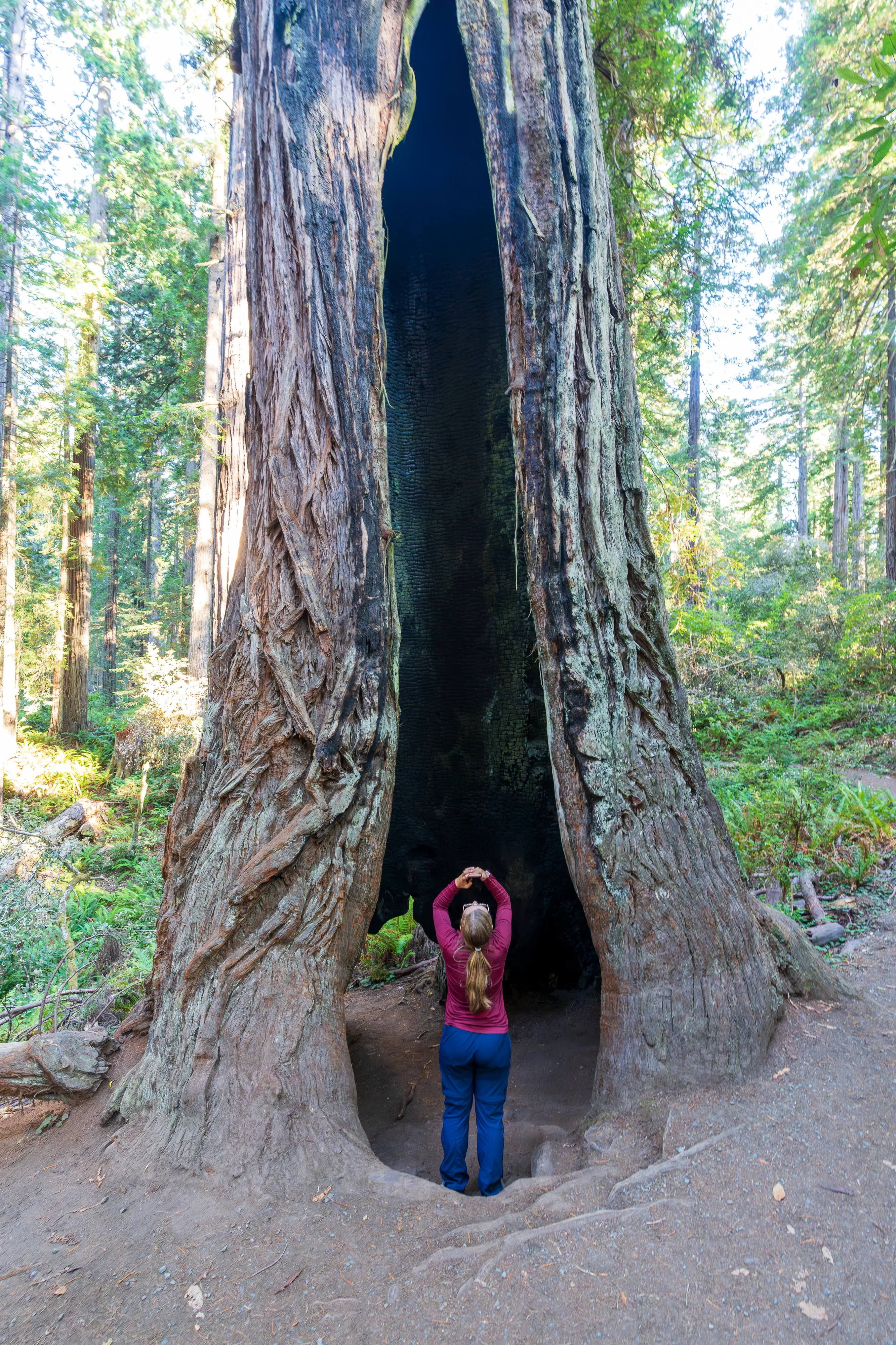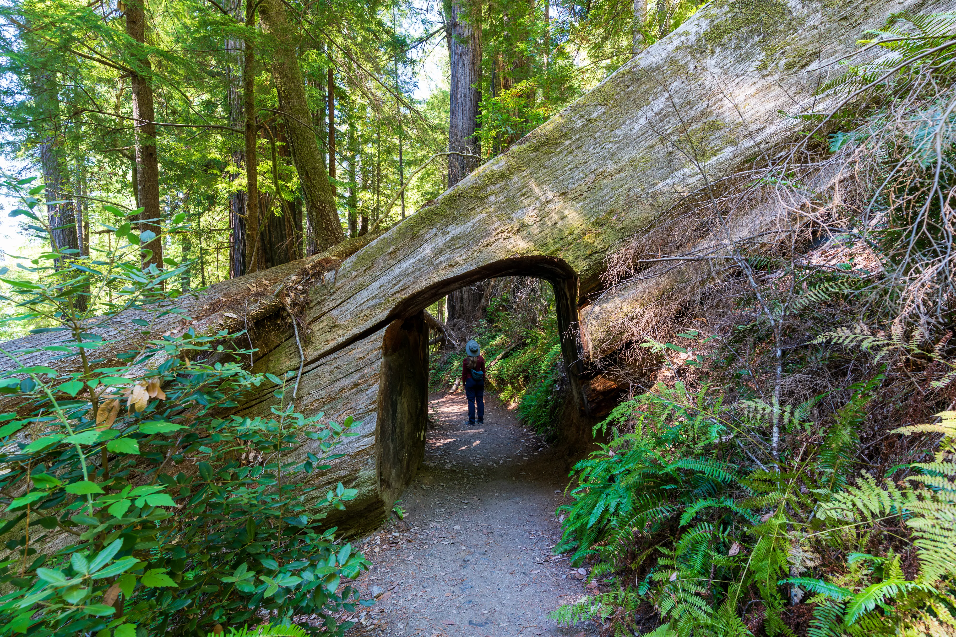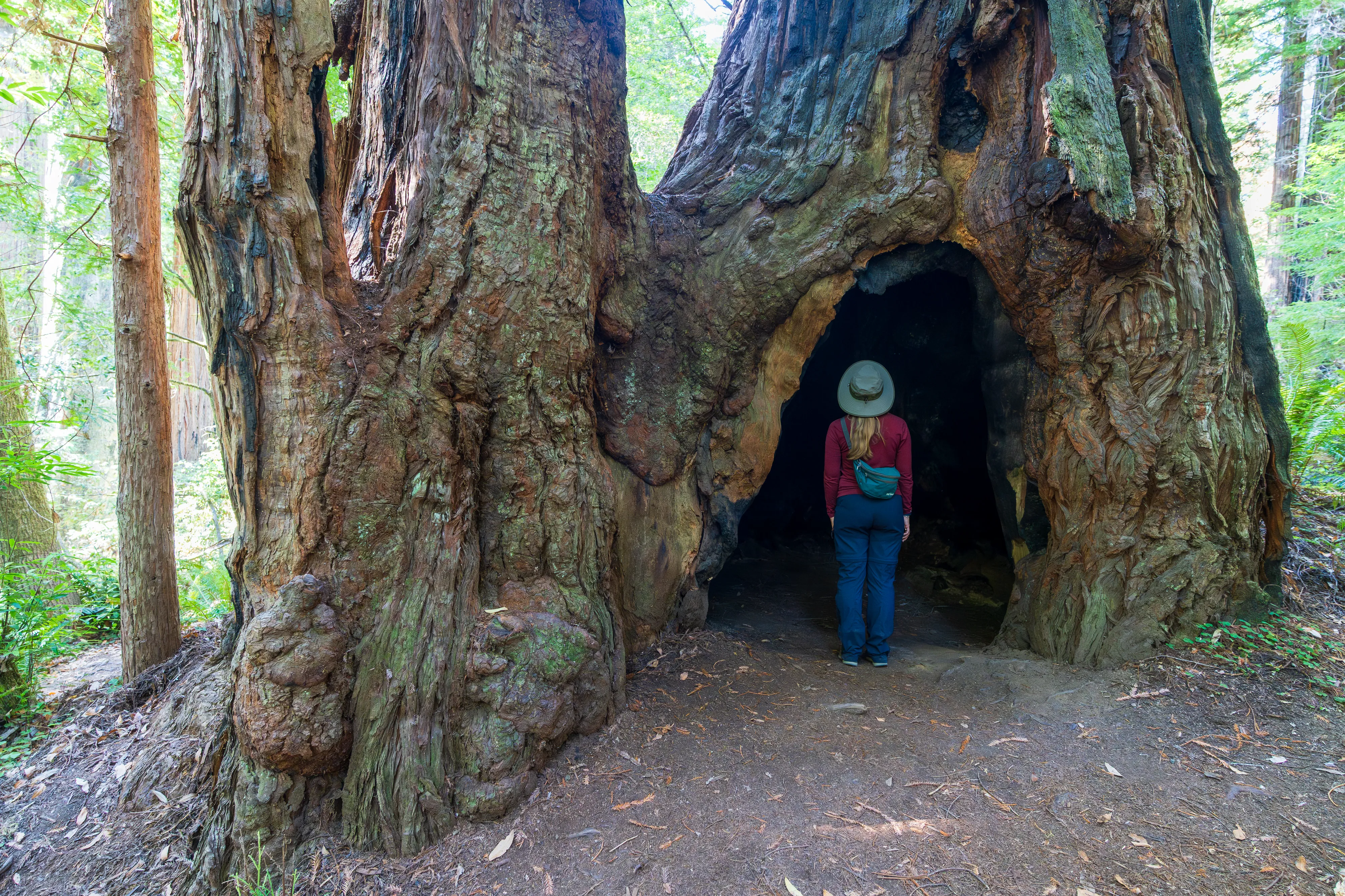 Entlang des Stout Memorial Grove Trails lassen sich weitere Mammutbäume bestaunen. Insbesondere die hohlen Baumstämme und die riesigen Wurzeln umgefallener Bäume beeindrucken uns besonders.