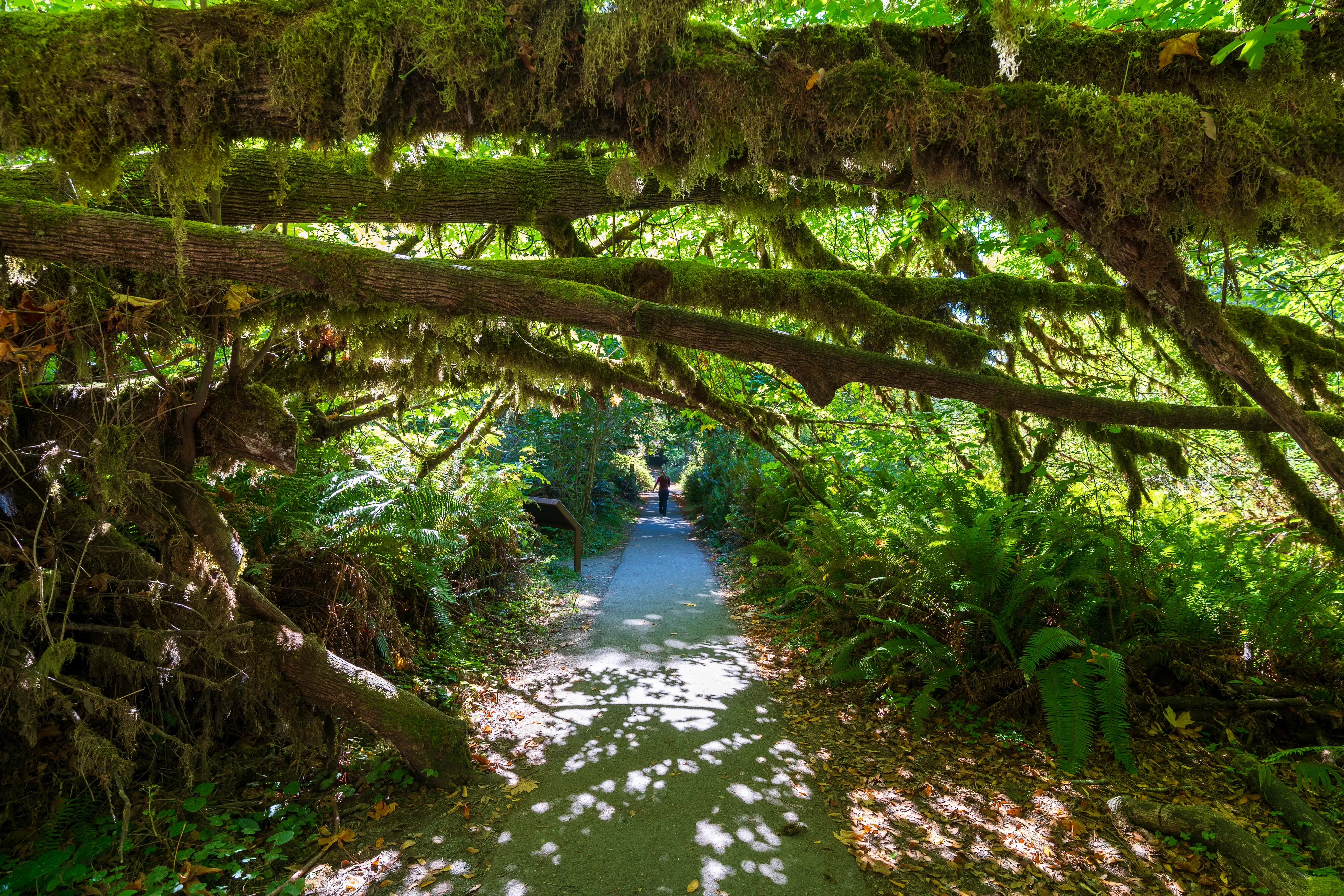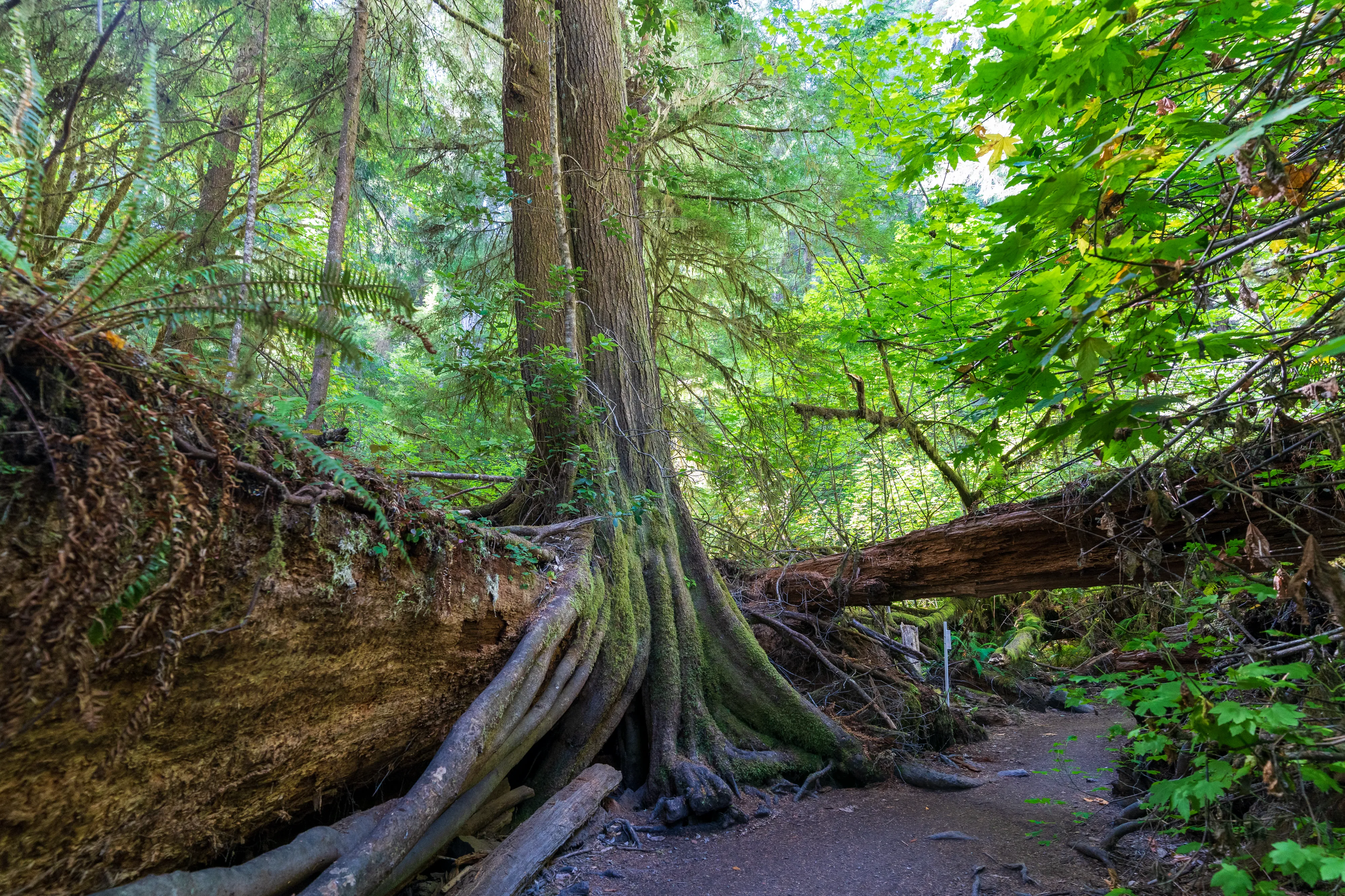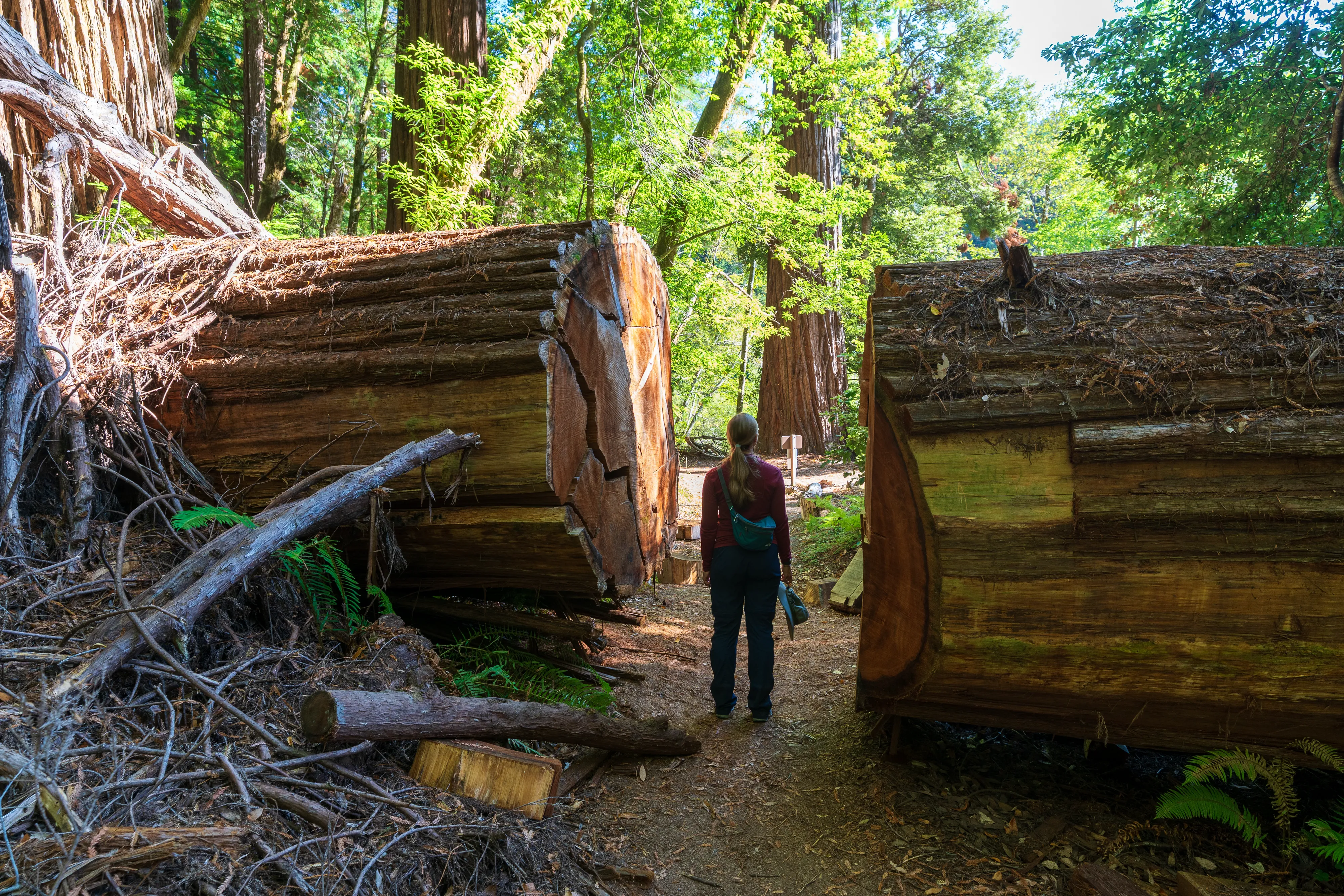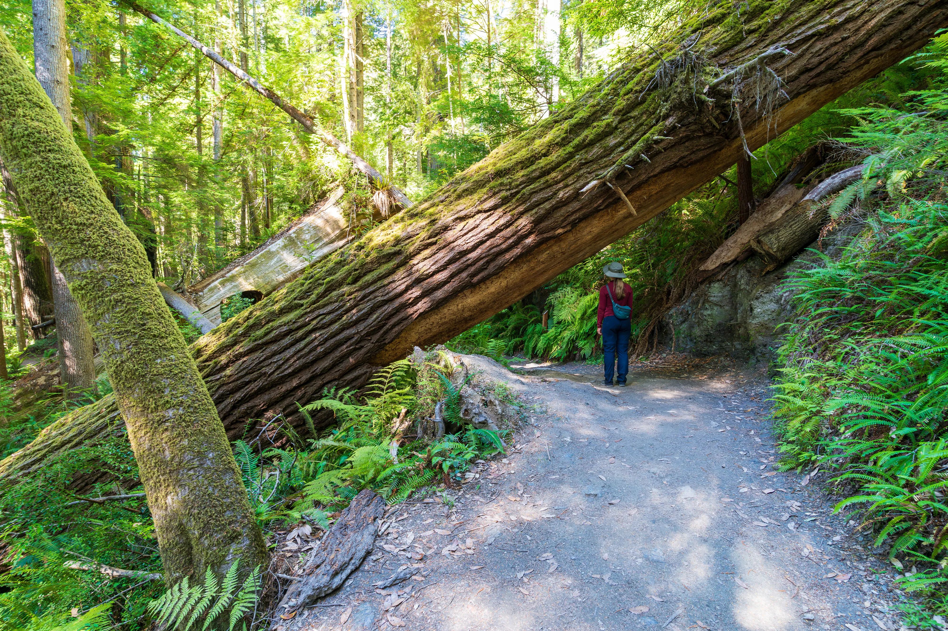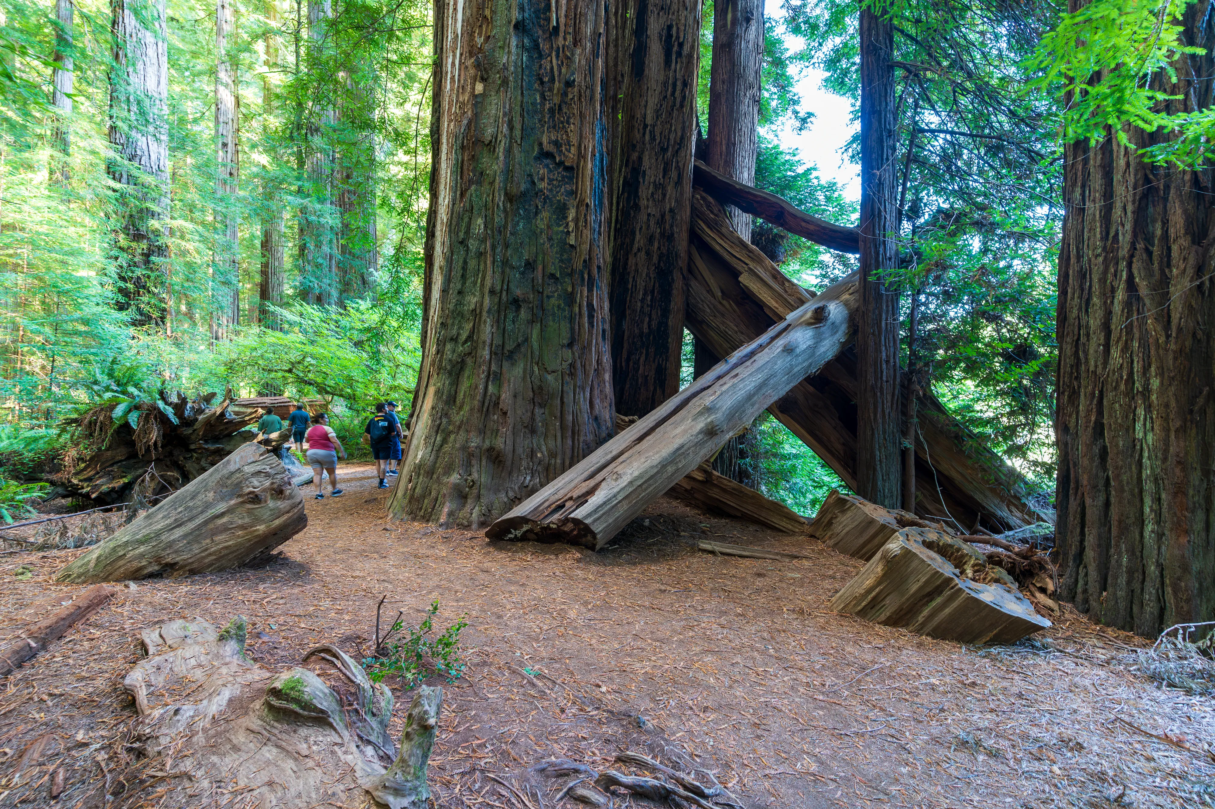 Entlang des Stout Memorial Grove Trails lassen sich weitere Mammutbäume bestaunen. Insbesondere die hohlen Baumstämme und die riesigen Wurzeln umgefallener Bäume beeindrucken uns besonders.