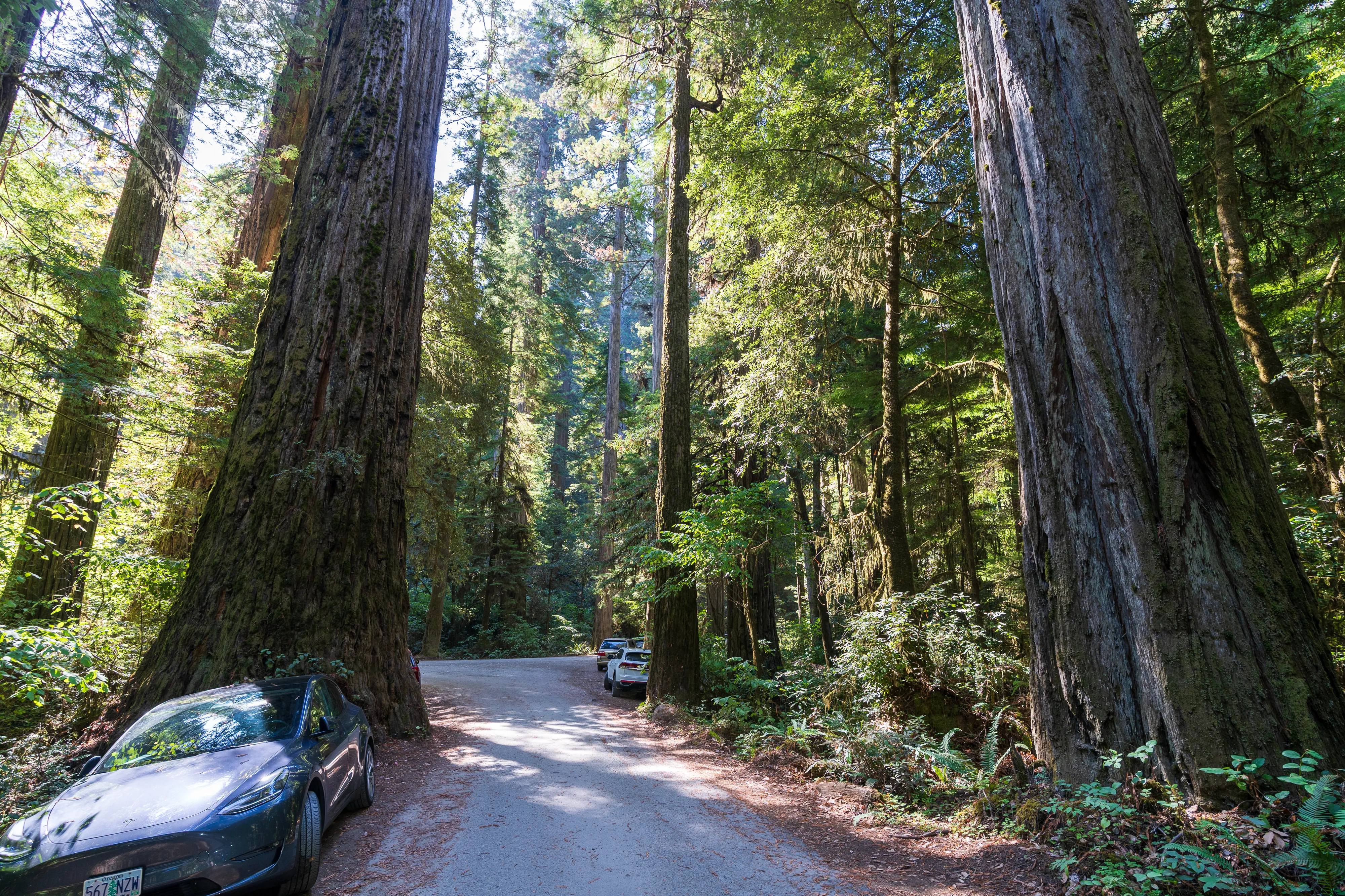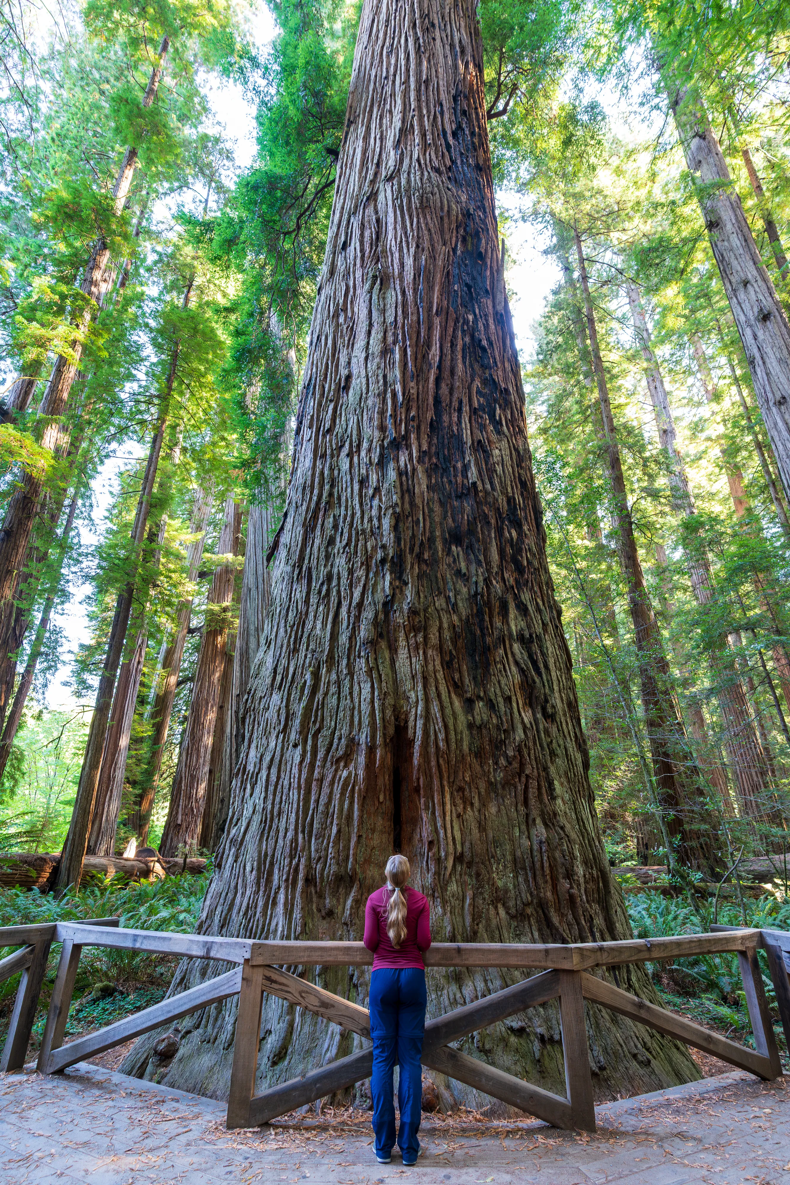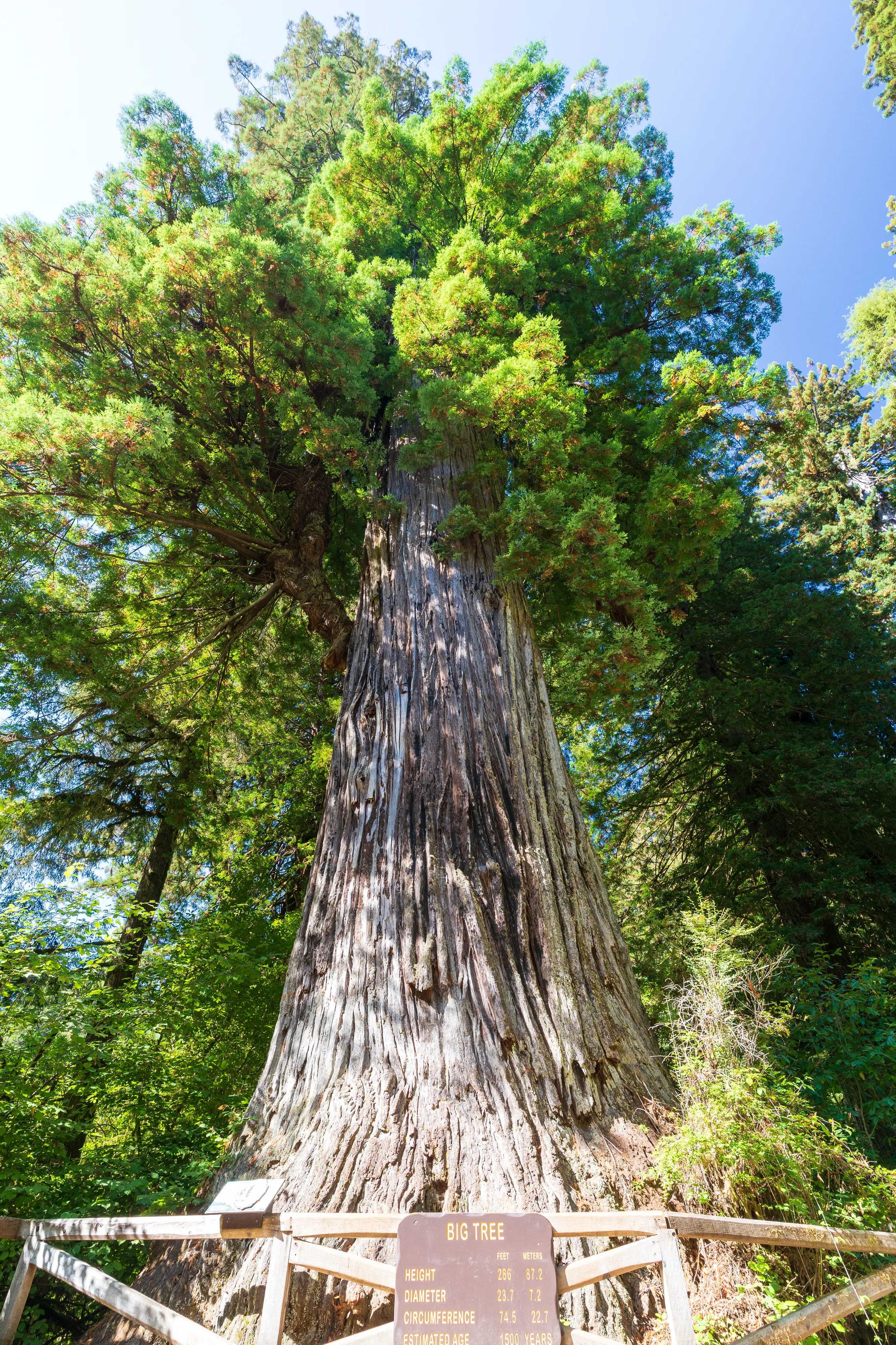 Am nächsten Morgen fahren wir wieder durch Mammutbaumwälder entlang des Scenic Drive über den Newton B. Drury Parkway, welcher Teil des Prairie Creek Redwoods State Park ist. Hier befindet sich auch einer der größten Bäume des Parks: Big Tree. So richtig einschätzen, welcher letztendlich der größte Baum ist, lässt sich wohl nicht, aber hierbei handelt es sich auf jeden Fall um ein besonders großes und beeindruckendes Exemplar.