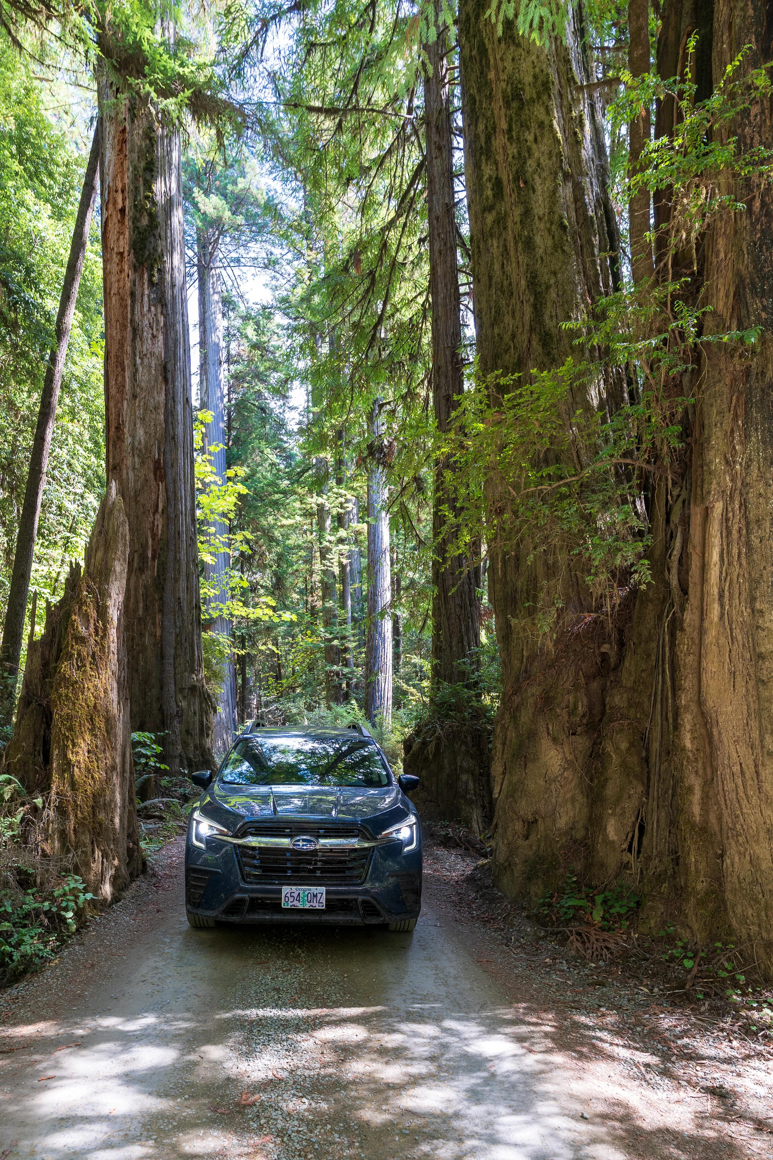 Wir starten unsere Tour im Norden des RNSP im Jedediah Smith Redwoods State Park im Hiouchi Visitor Center. Von dort aus geht es den Howland Hill Rd Scenic Drive durch einen Wald voller Baumriesen. Die Straße schlängelt sich durch die riesigen Baumstämme und lässt einen wirklich klein vorkommen - selbst wenn man in einem großen Auto sitzt.