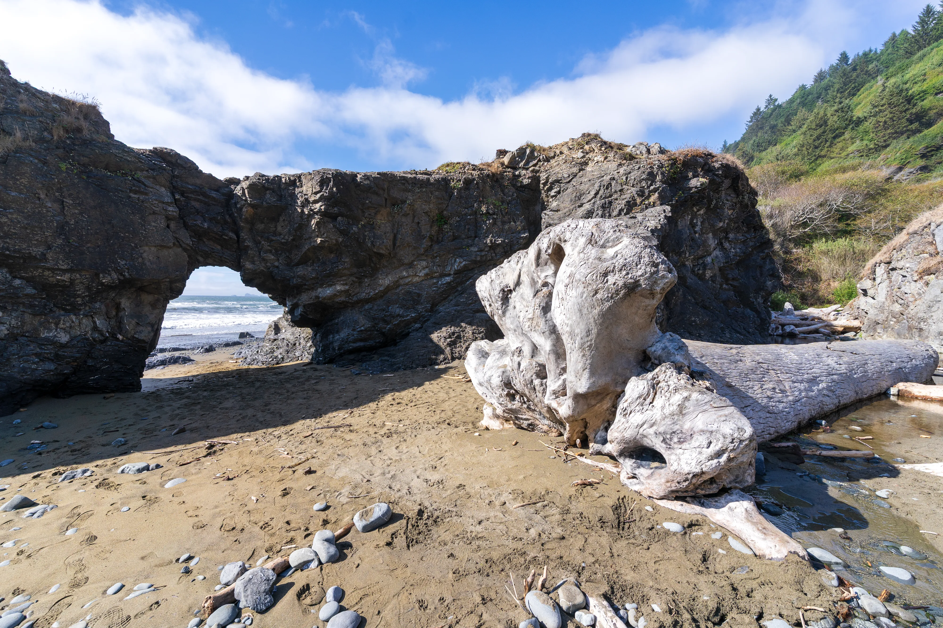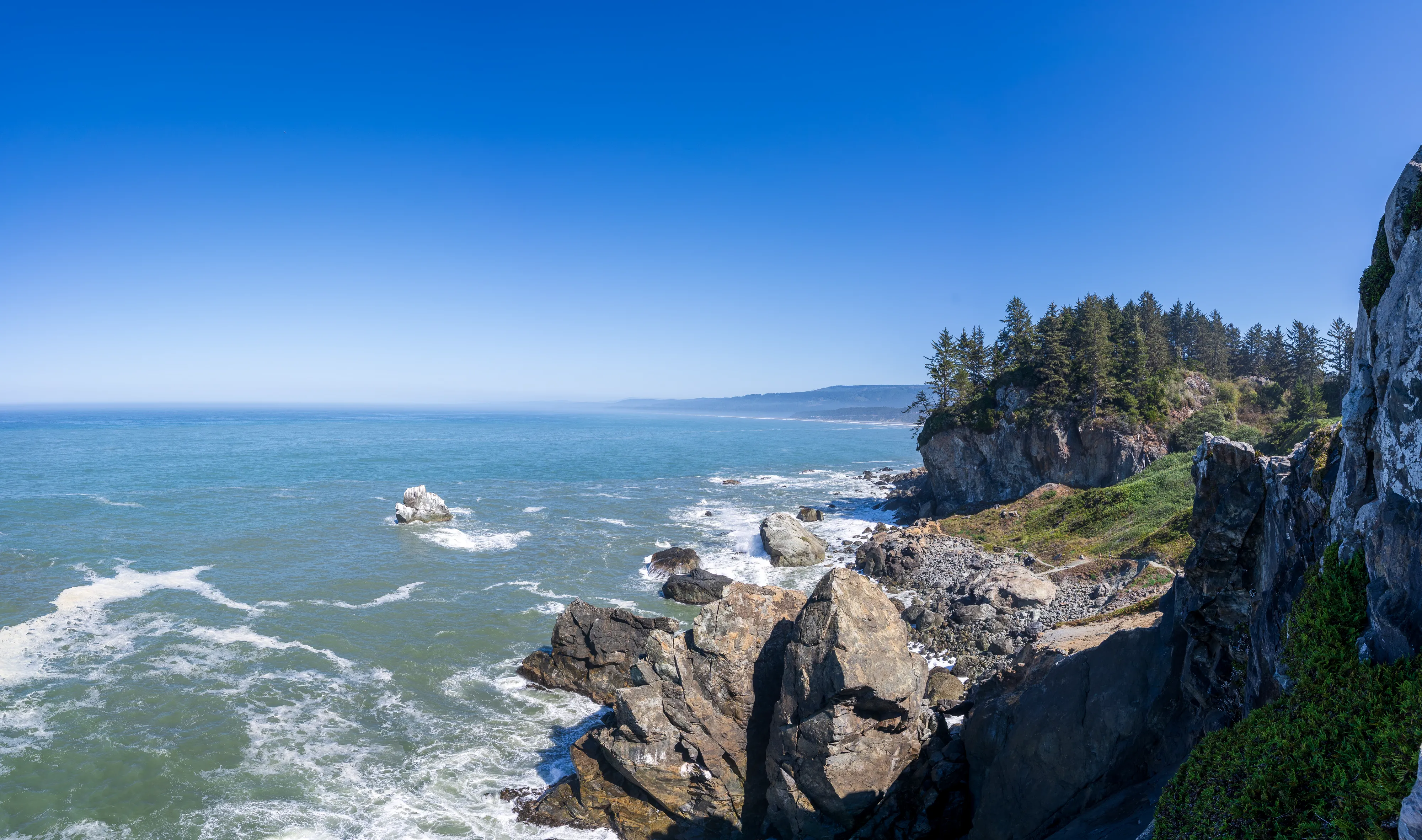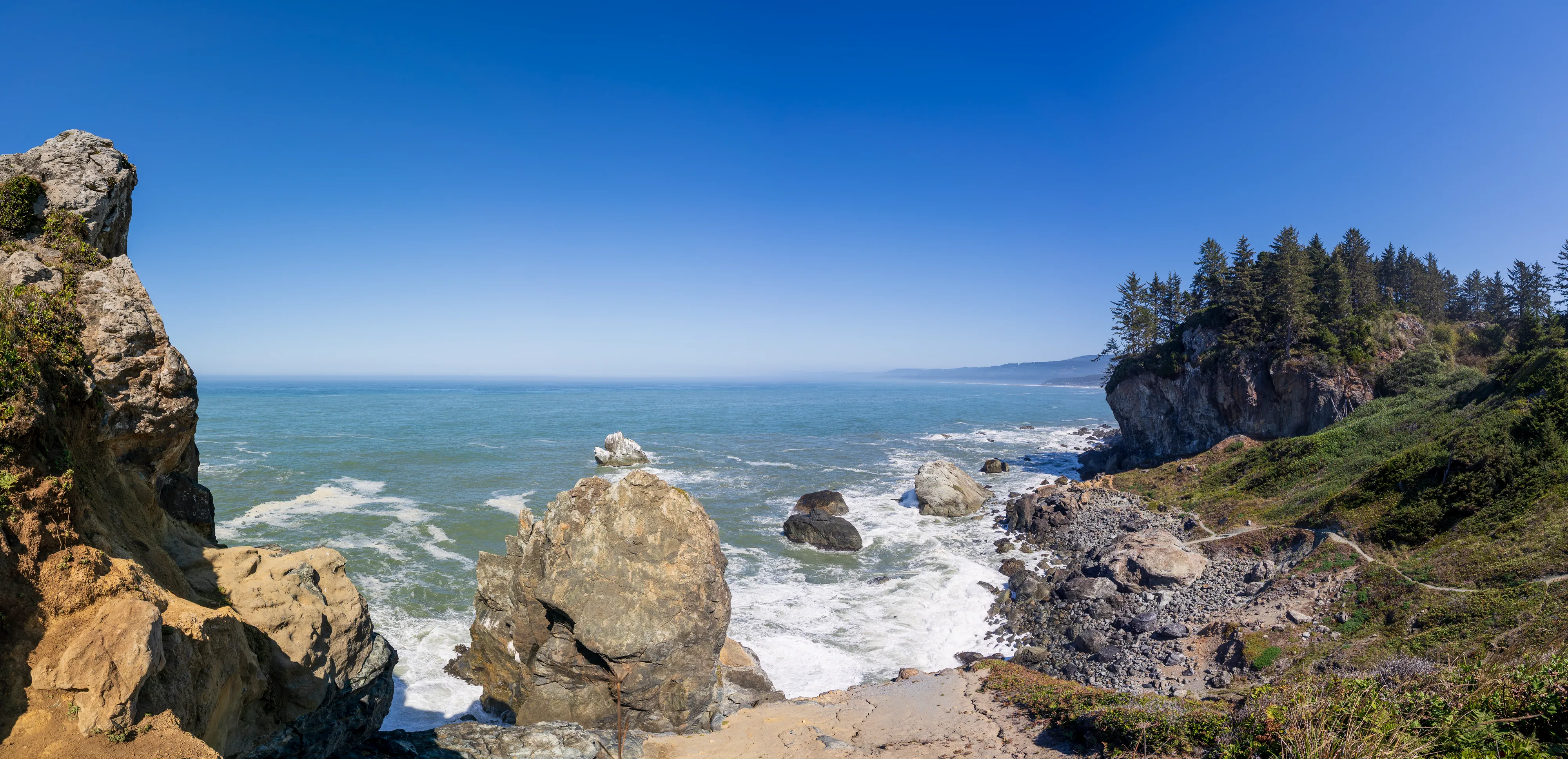 Anschließend fahren wir weiter: Erst Richtung Süden auf dem Highway 101 und halten beim Sue Meg State Park, wo man vom Wedding Rock aus einen schönen Blick auf die schroffe Felsküste hat.