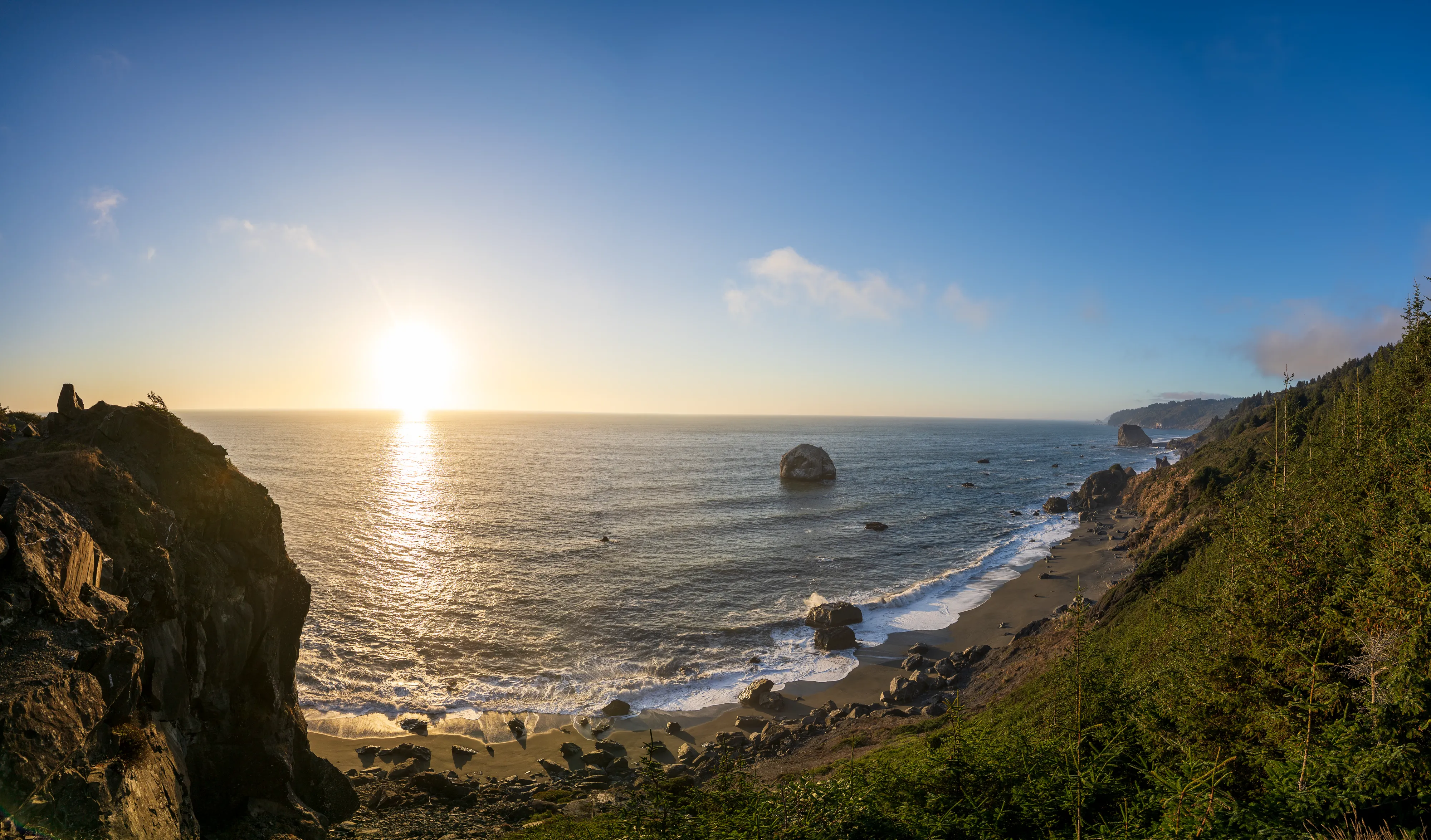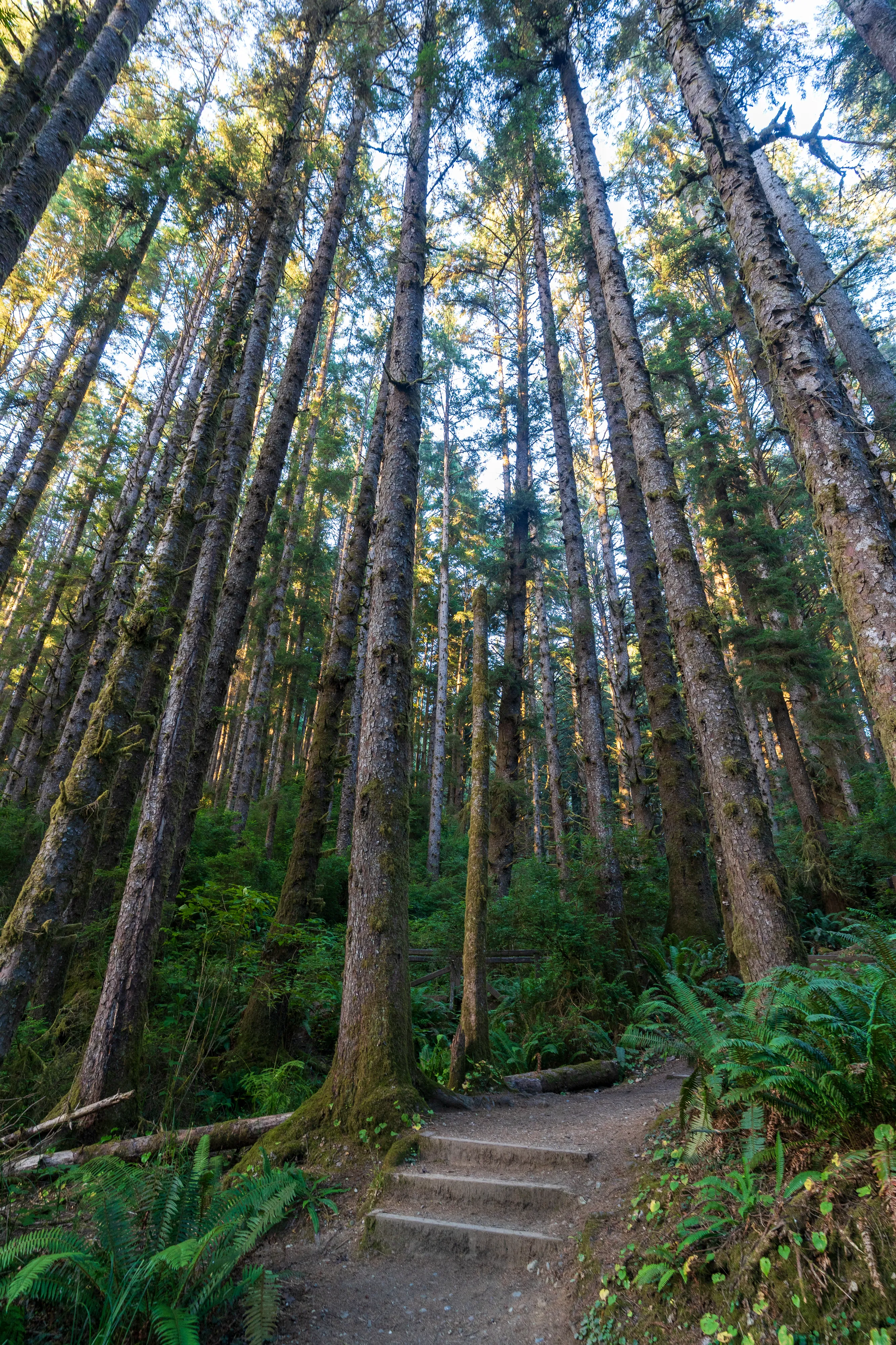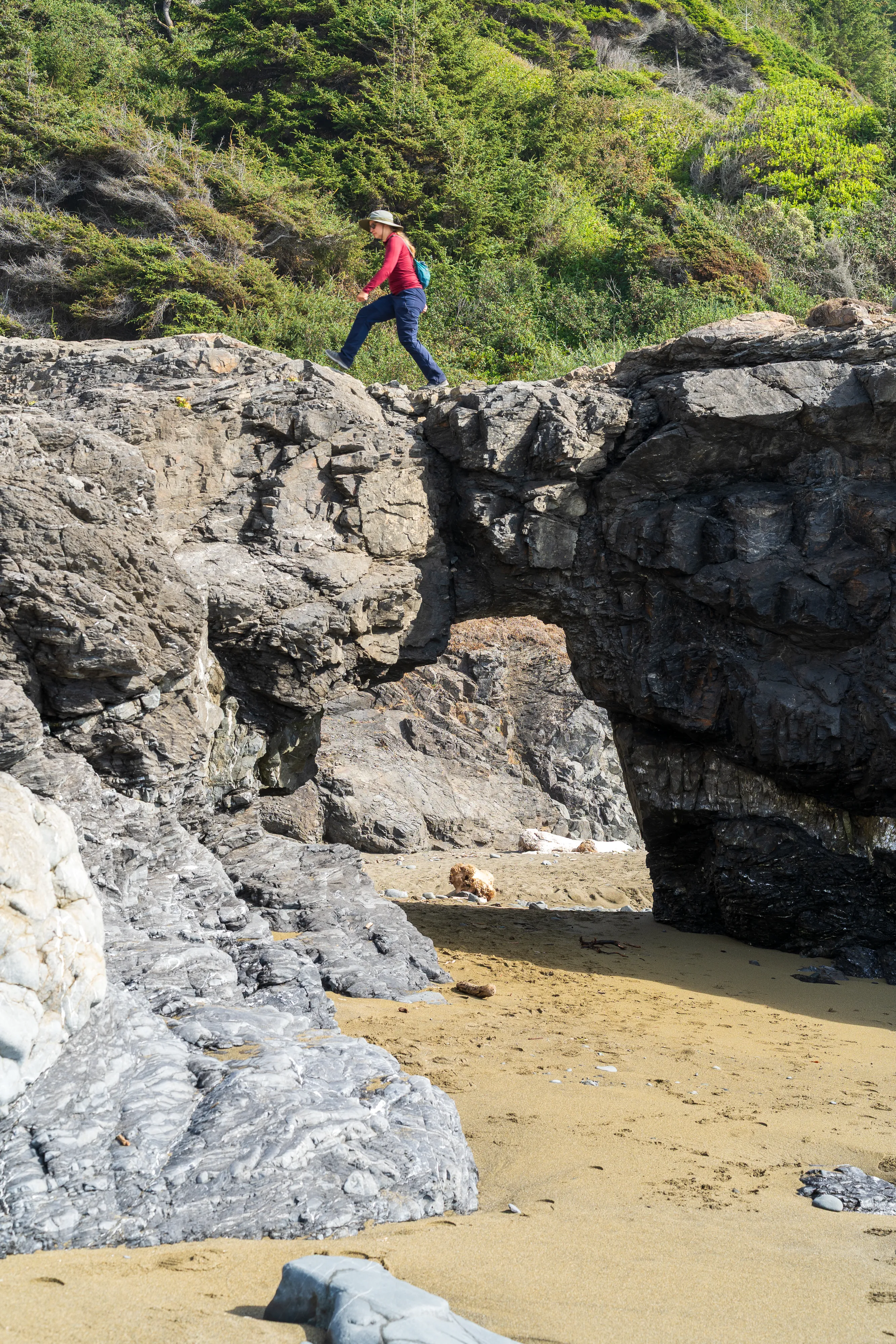 Anschließend fahren wir weiter: Erst Richtung Süden auf dem Highway 101 und halten beim Sue Meg State Park, wo man vom Wedding Rock aus einen schönen Blick auf die schroffe Felsküste hat.