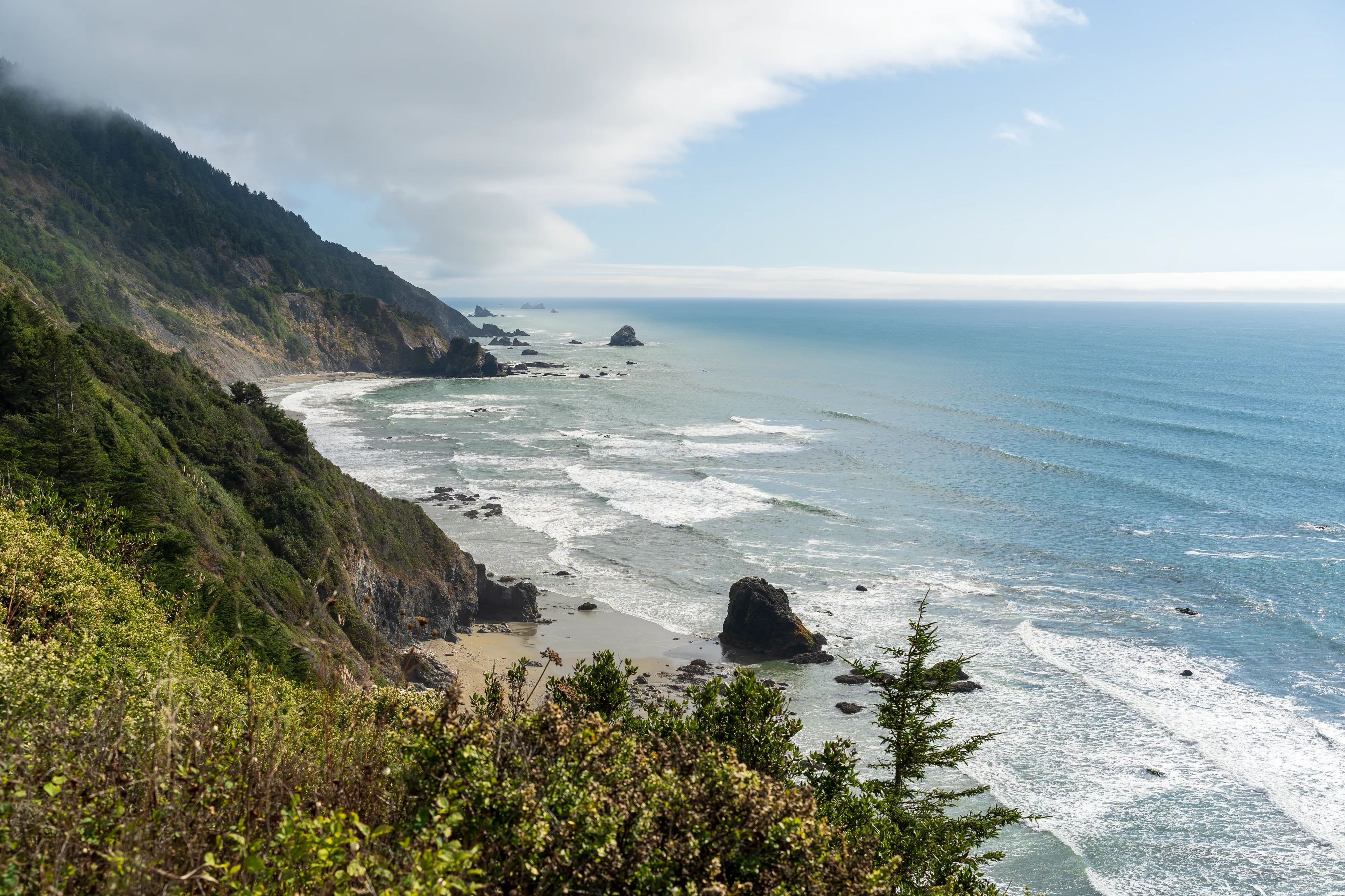 Auch weiter südlich ergeben sich vom Yurok Loop Trail aus schöne Ausblicke auf die Küste und Küstenvegetation.