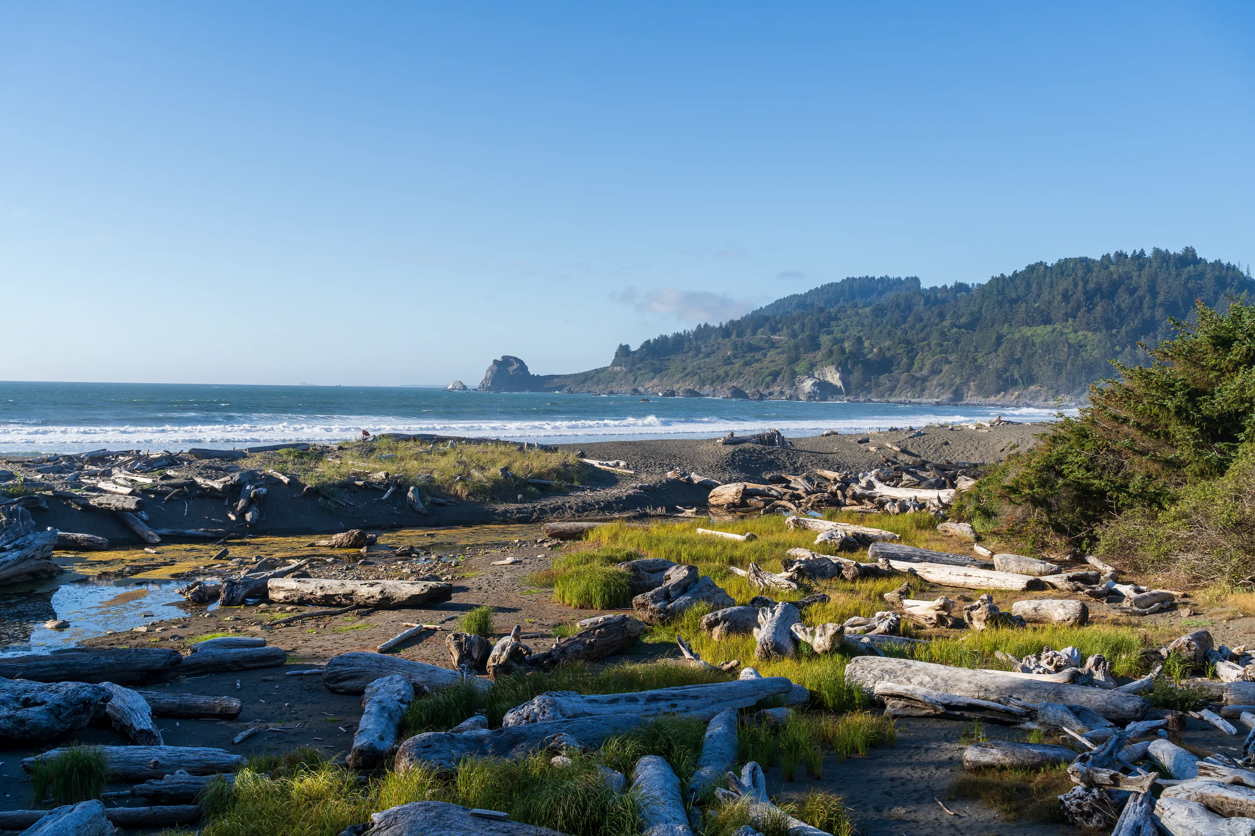 Anschließend geht es raus aus dem Wald und Richtung Küste an den Crescent Beach und Enderts Beach, einem Teil des RNSP, direkt an der Pazifikküste mit schönen Sandstränden. Das Meer ist jedoch, wie meistens an der amerikanischen Pazifikküste, aufgepeitscht, trüb und lädt überhaupt nicht zum Baden ein.