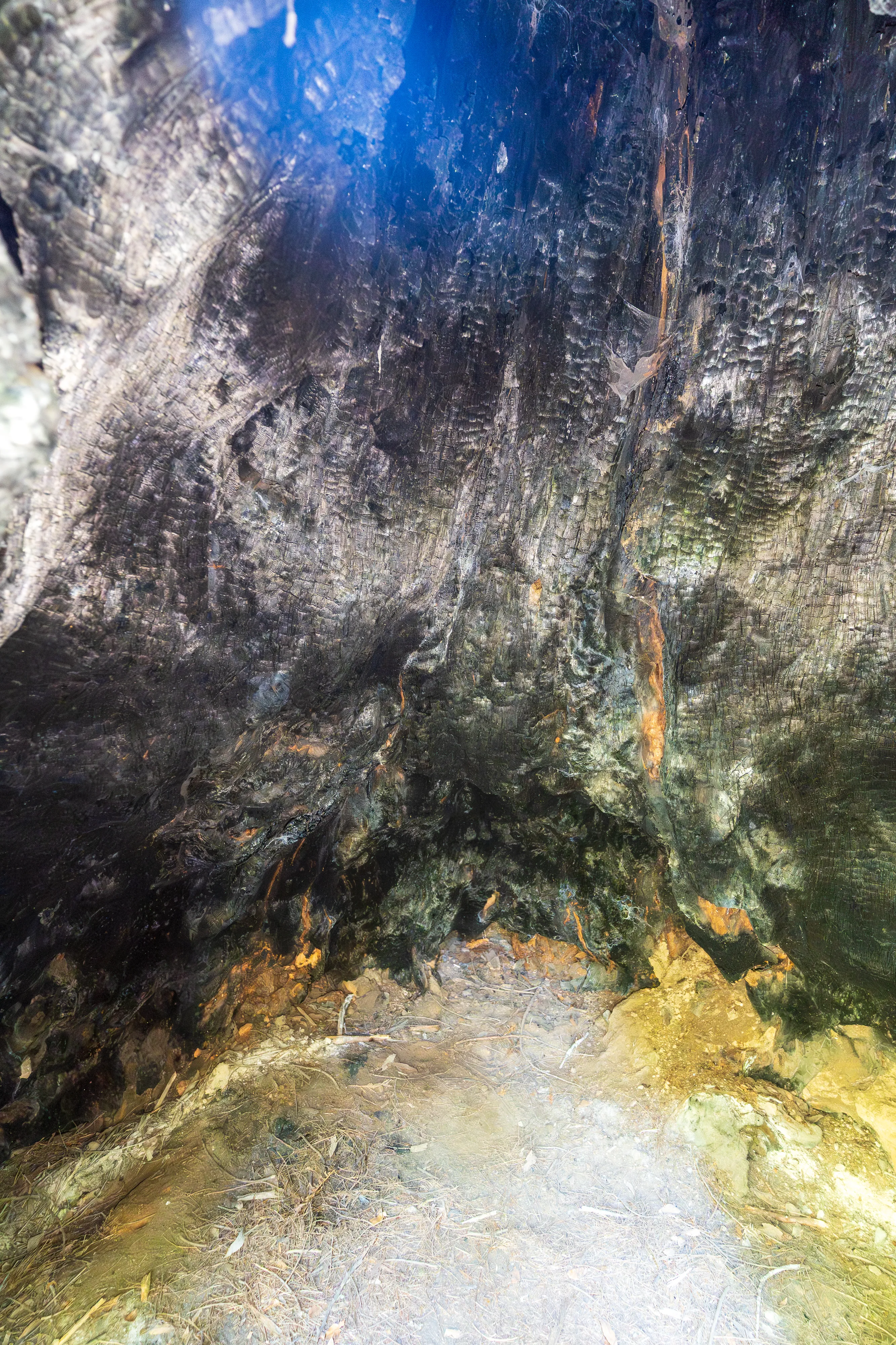 Wir fahren wieder zurück zur Hauptstraße und den Bergkamm etwas hinab und stoppen beim Lady Bird Grove Trail, der einige tolle Mammutbäume und interessante Informationen zu bieten hat. Insbesondere auch hohle und ausgebrannte Exemplare.