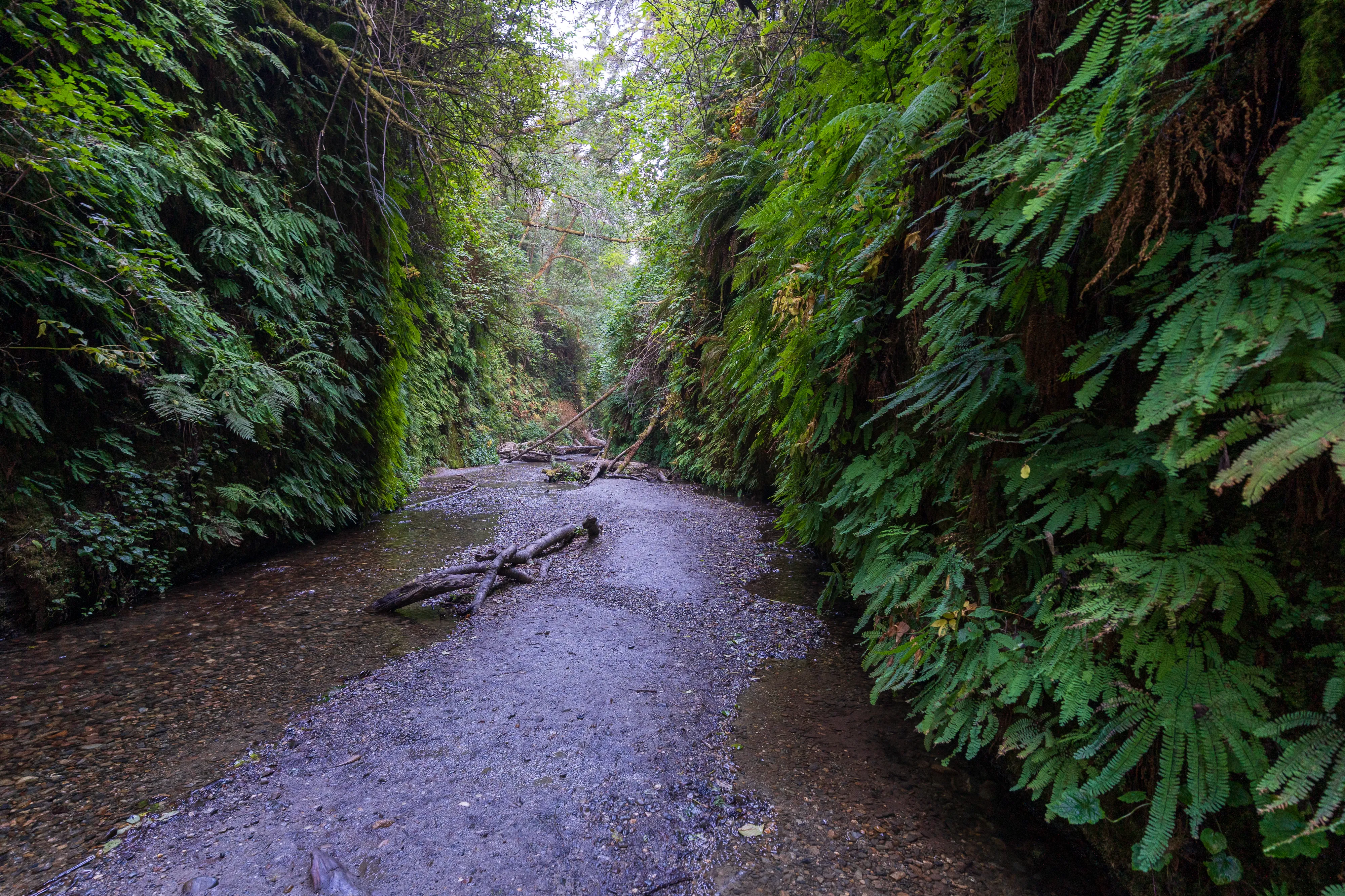 Der Fern Canyon ist eine kleine Schlucht, deren Wände komplett mit Farn bewachsen sind - daher wohl der Name - und dadurch ein gewisses Dschungelgefühl ausstrahlt. Zum Glück hatten wir uns vorher informiert, dass der Weg durch das Flussbett führt und extra unsere Wassersandalen angezogen.