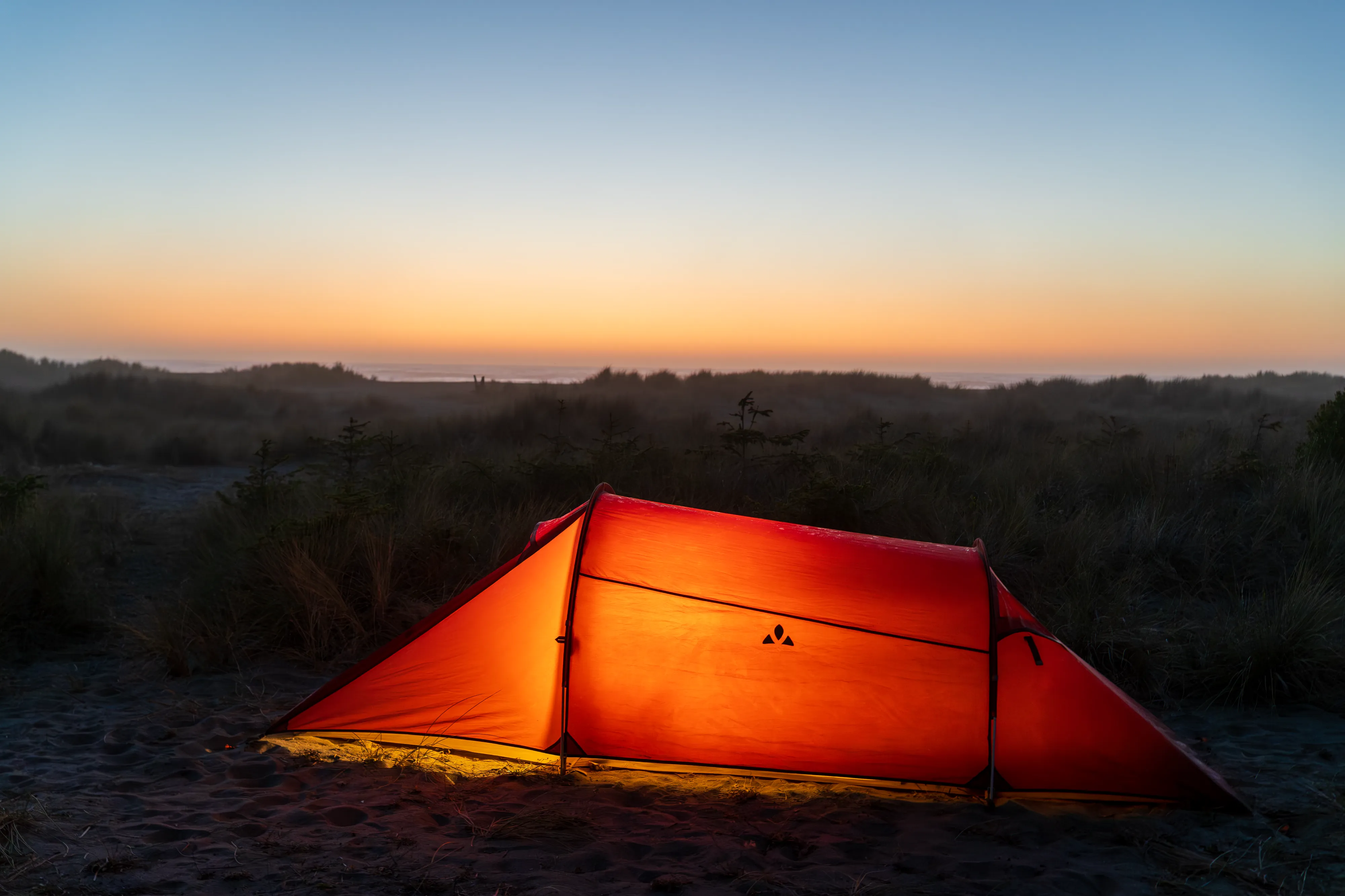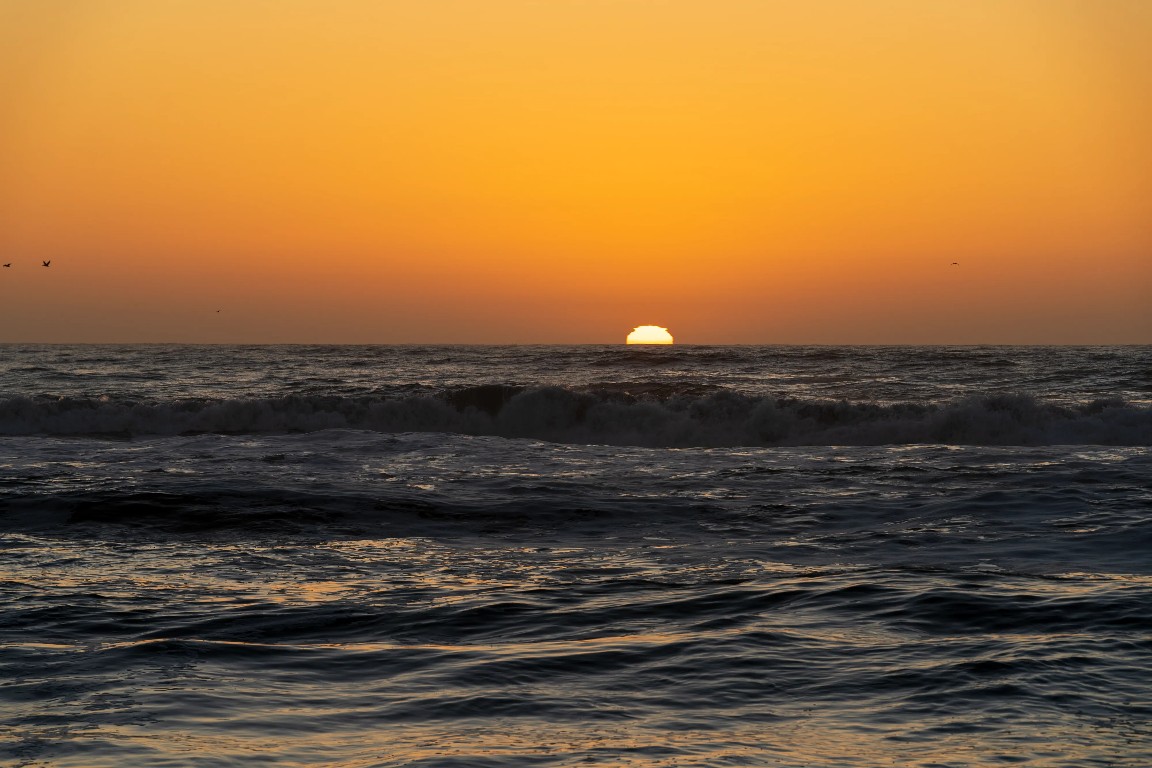 Zurück am Auto machen wir uns schnell auf den Weg zum Campingplatz, denn der Sonnenuntergang naht und den wollen wir am Strand verbringen. Unser Campingplatz liegt direkt an den Dünen und ein Weg führt in kurzer Zeit zum Strand.