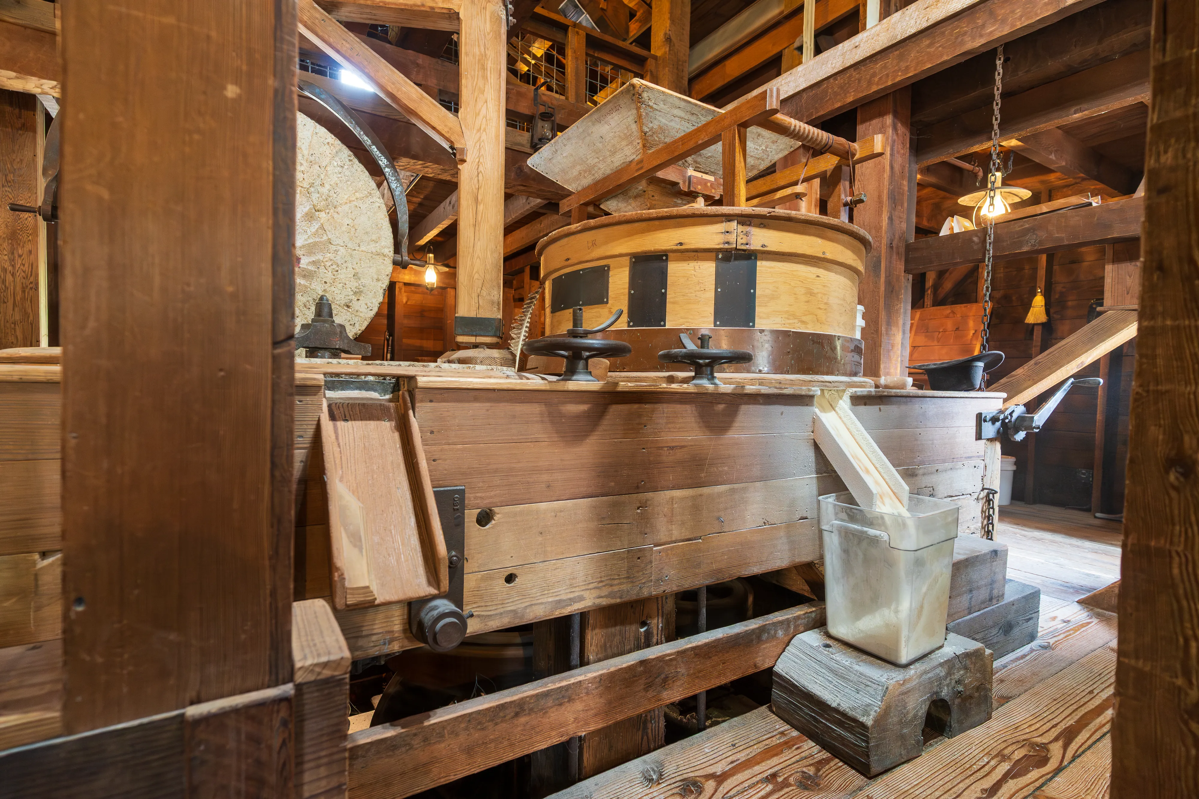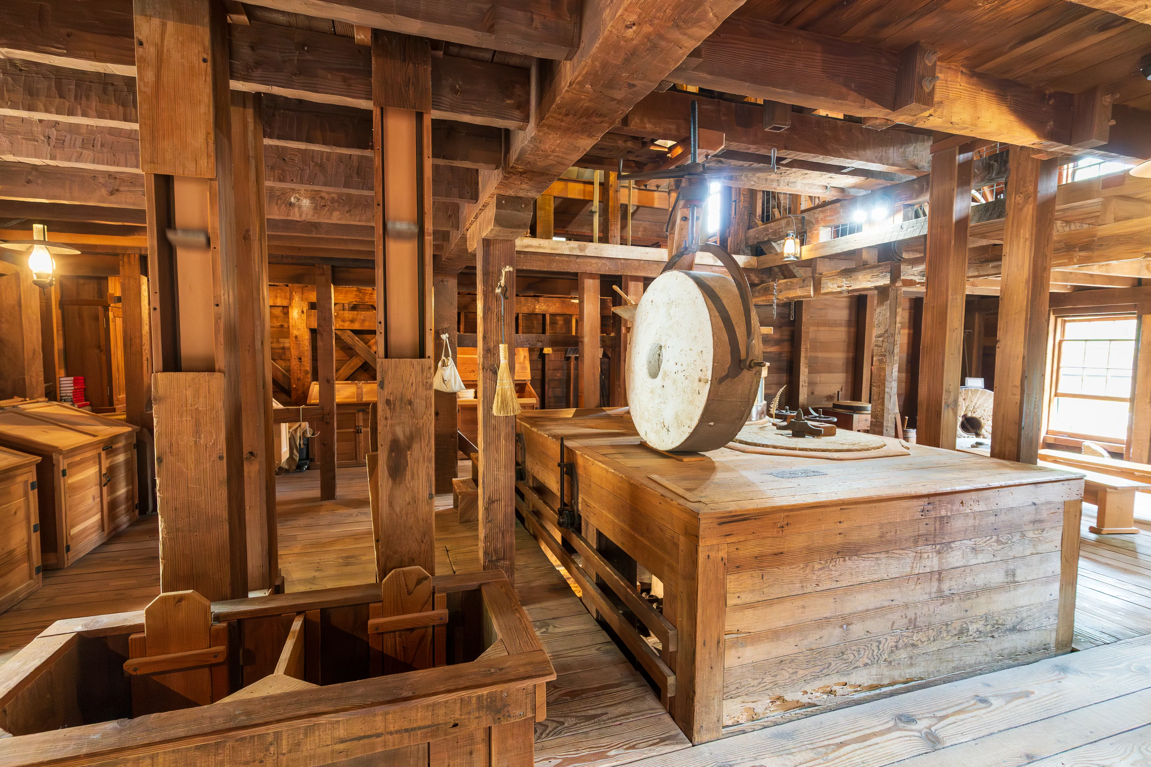 Die Getreidemühle, welche bis zum heutigen Tag mit Wasserkraft betrieben wird (auch wenn das Wasser mittlerweile aufgrund von Naturschutzvorgaben nicht mehr direkt aus einem Bach stammt, sondern in die Zuführung hineingepumpt wird), ist die letzte funktionsfähige Wassermühle im Westen der USA und stammt aus den 1840er Jahren.