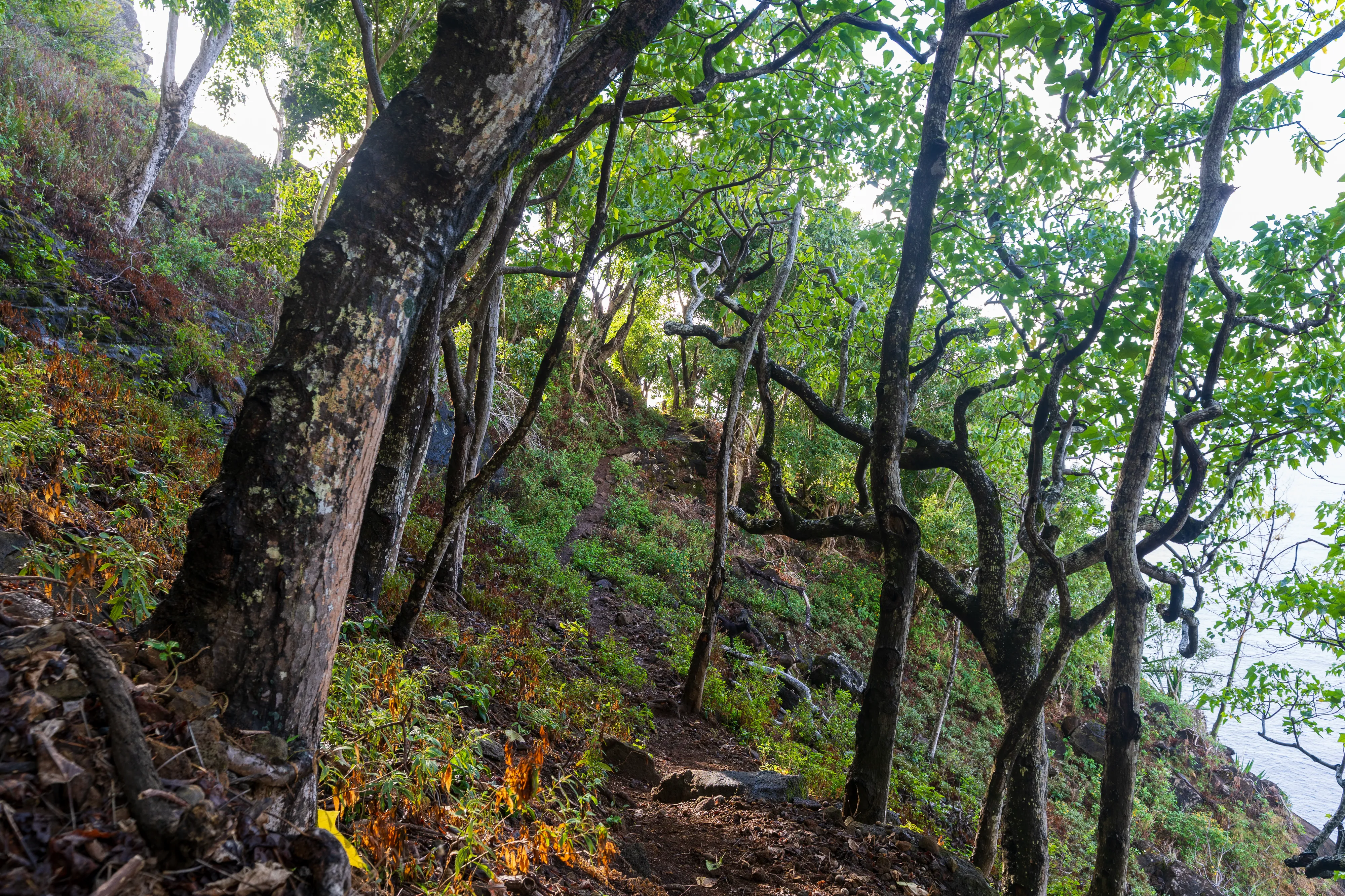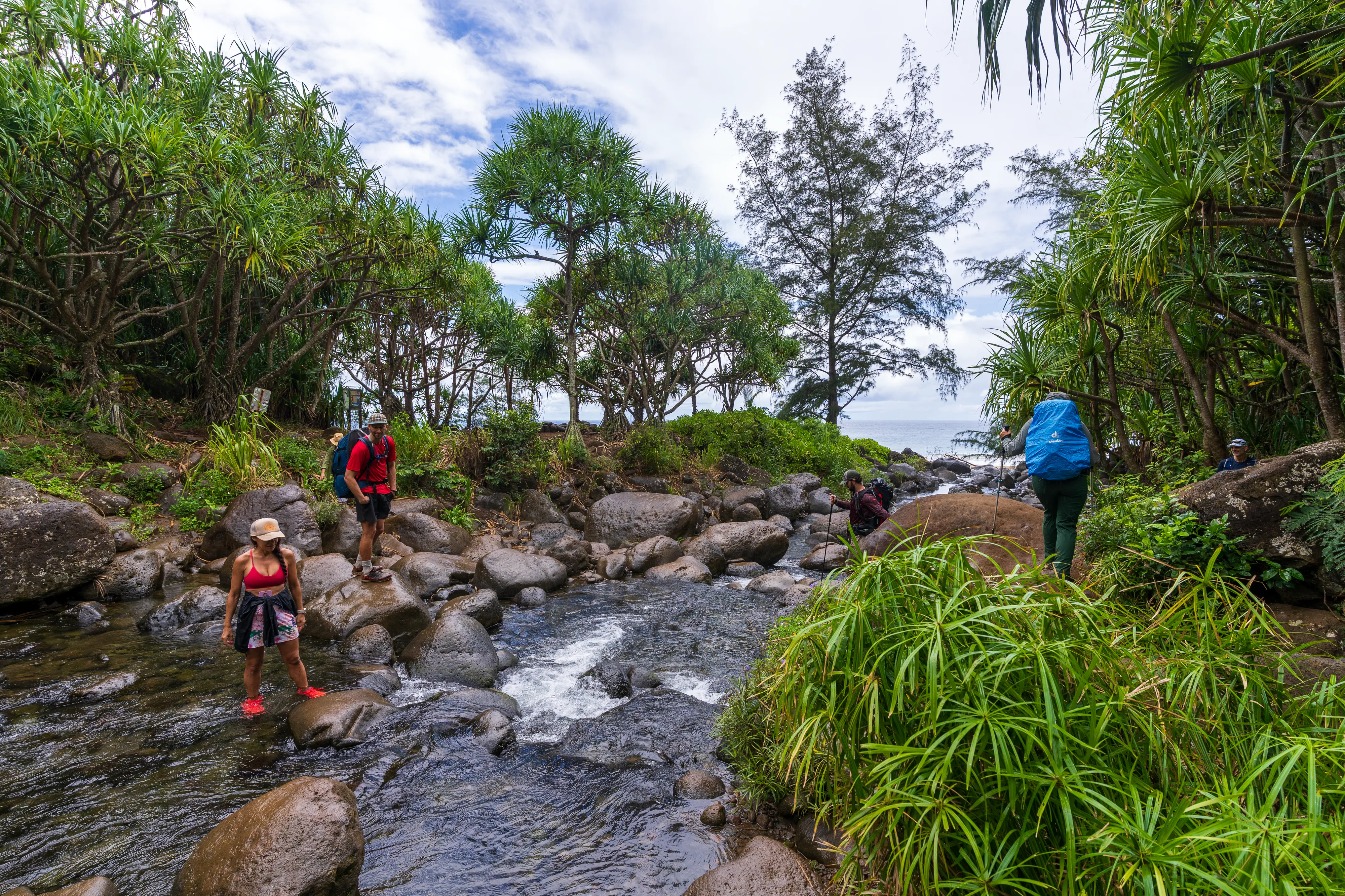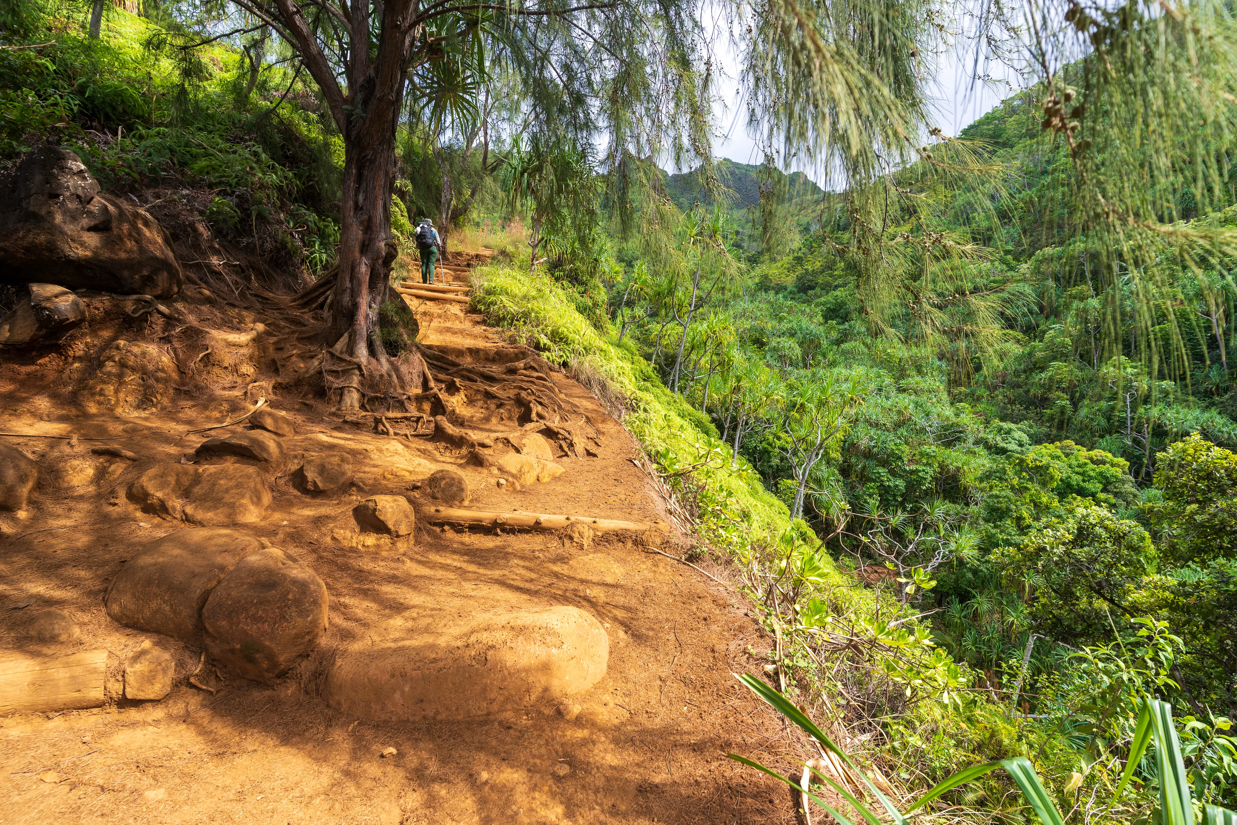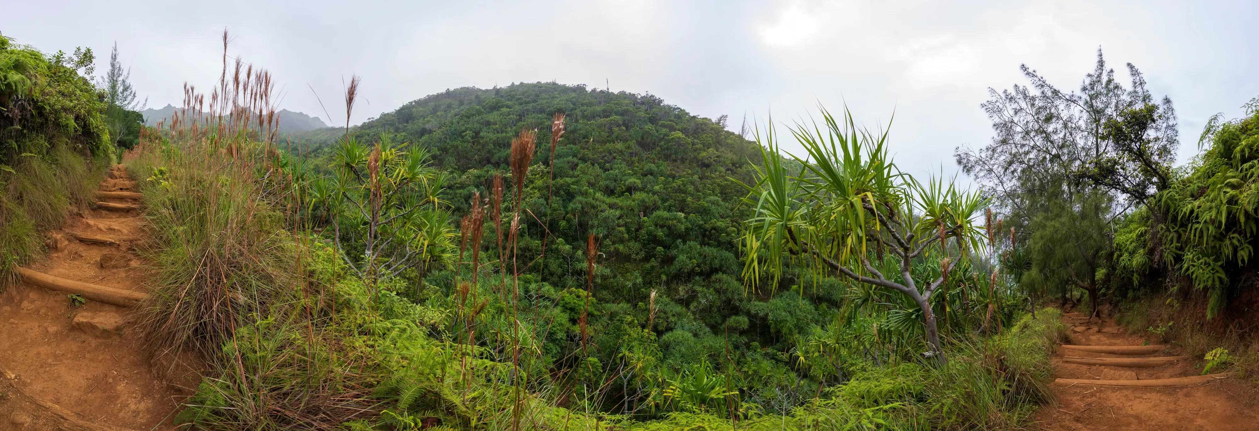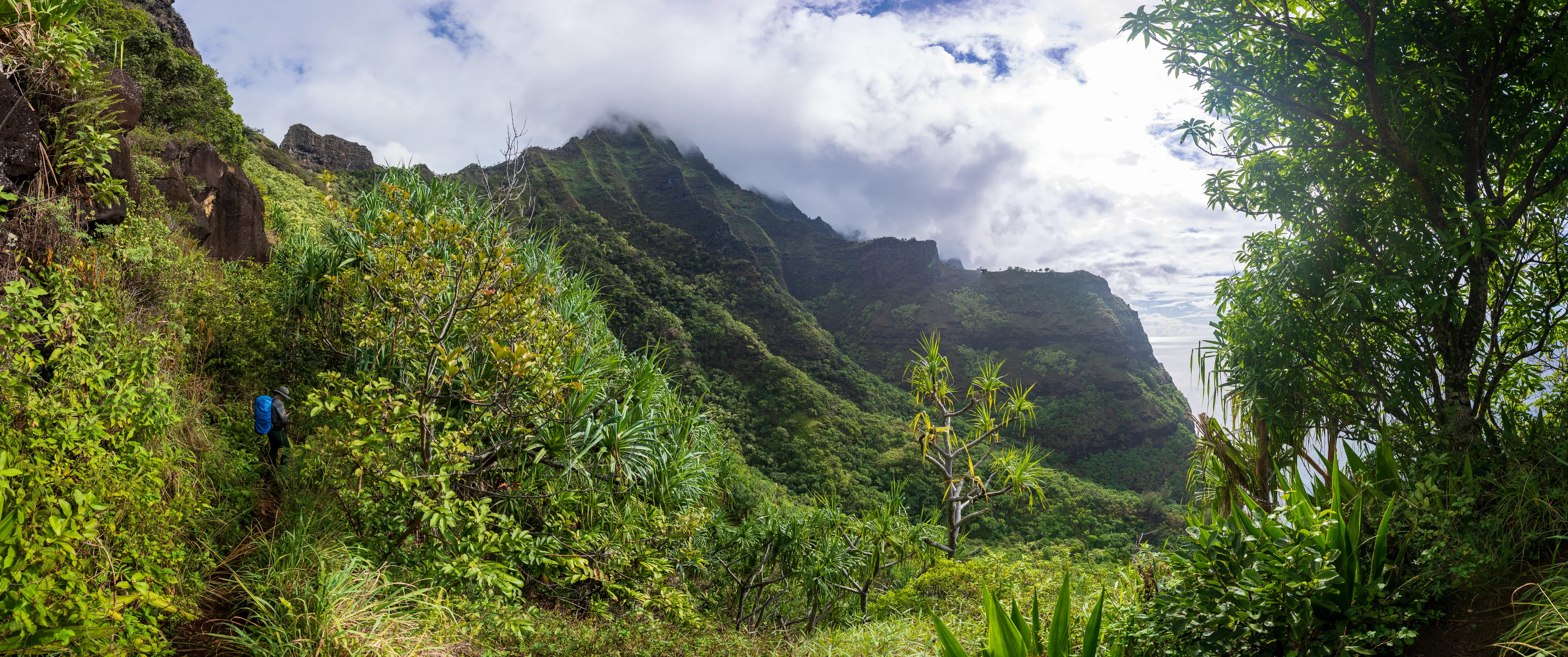 Für die folgenden zwei Tage war ursprünglich der Kalalau Trail mit Übernachtung am Kalalau Beach an der Nā Pali Coast geplant, dies lässt sich jedoch wegen gesundheitlicher Einschränkungen nicht umsetzen. Zum Glück gibt es bei unserem Backcountry Permit auch die Möglichkeit nur die halbe Strecke zu wandern und auf dem Hanakoa Campground zu übernachten. Wie sich herausstellen wird, ist das die richtige Entscheidung, denn der Weg gestaltet sich bei Temperaturen von um die 30 ºC und einer Luftfeuchtigkeit von über 90 % deutlich anstrengender als gedacht. Die klimatischen Bedingungen strengen uns mehr an als gedacht, denn bei diesen gibt der Körper seine “Abwärme” nicht sonderlich gut über Transpiration ab.