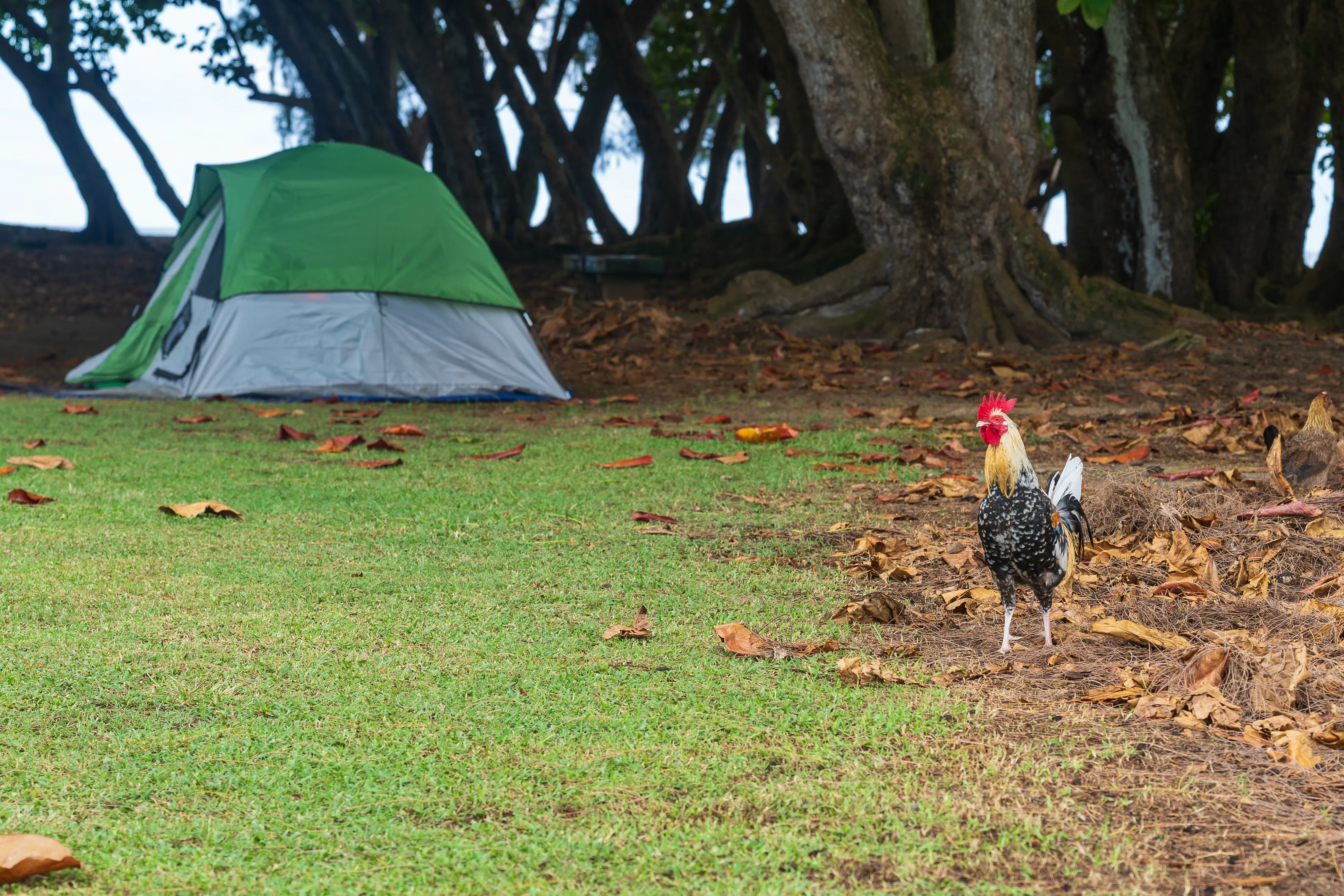 Anschließend geht es für die Nacht auf den nahegelegenen Anini Beach Park. Wie auf allen hawai’ianischen Inseln gibt es auch hier sehr viele Hühner und Hähne, wobei letztere das eigentliche Problem darstellen, denn ihre biologische Uhr scheint arg verstellt und so krähen sie auch gerne mal um zwei Uhr nachts (oder auch um fünf Uhr abends). Und da diese Zweibeiner keine natürlichen Feinde haben, gedeihen sie ganz prächtig. Interessanterweise findet man jedoch keine Eier - und auch darauf angesprochene Einheimische können nur von sehr seltenen Funden berichten.