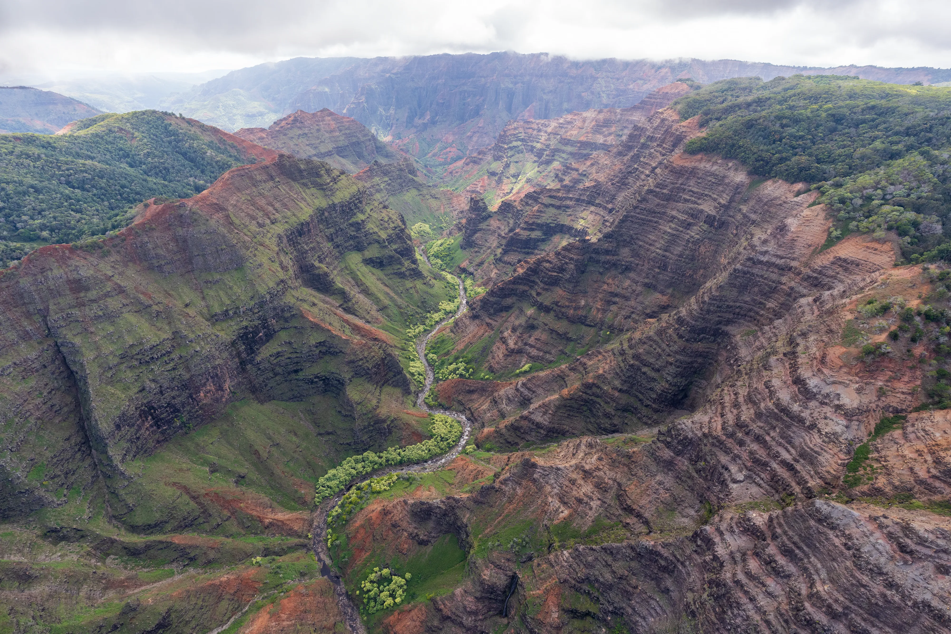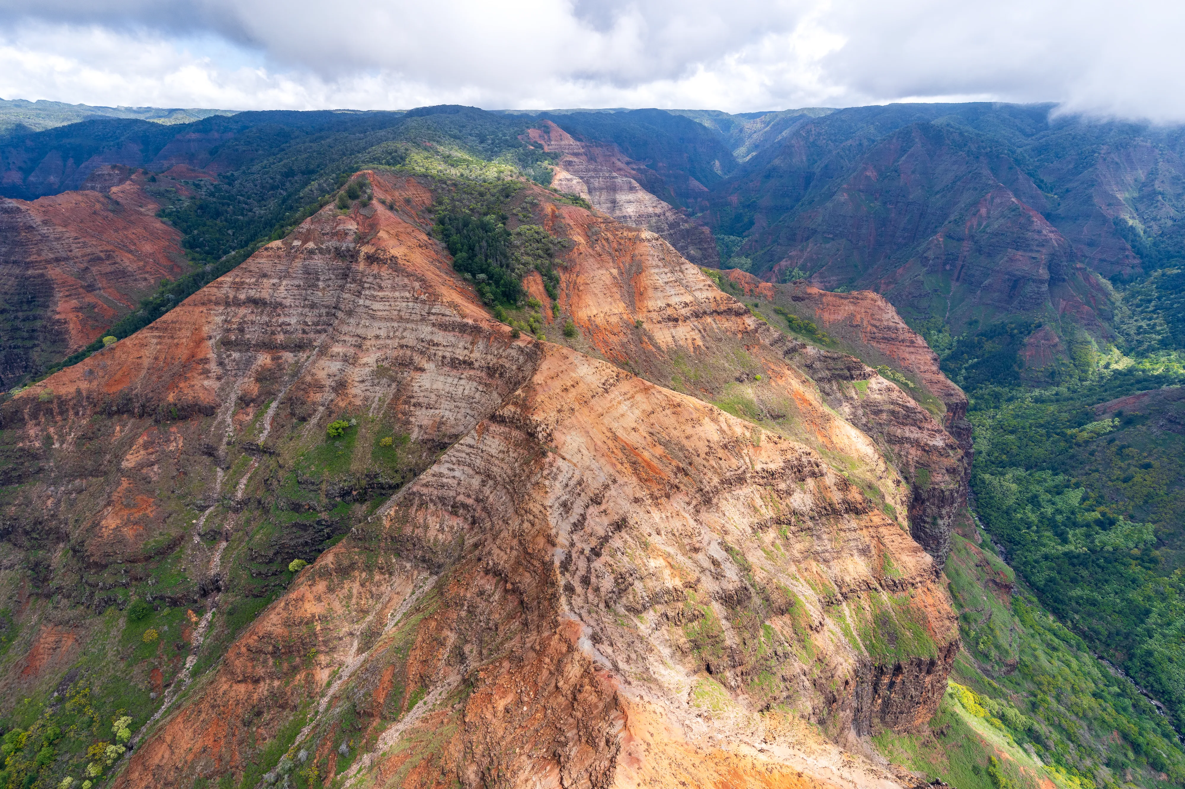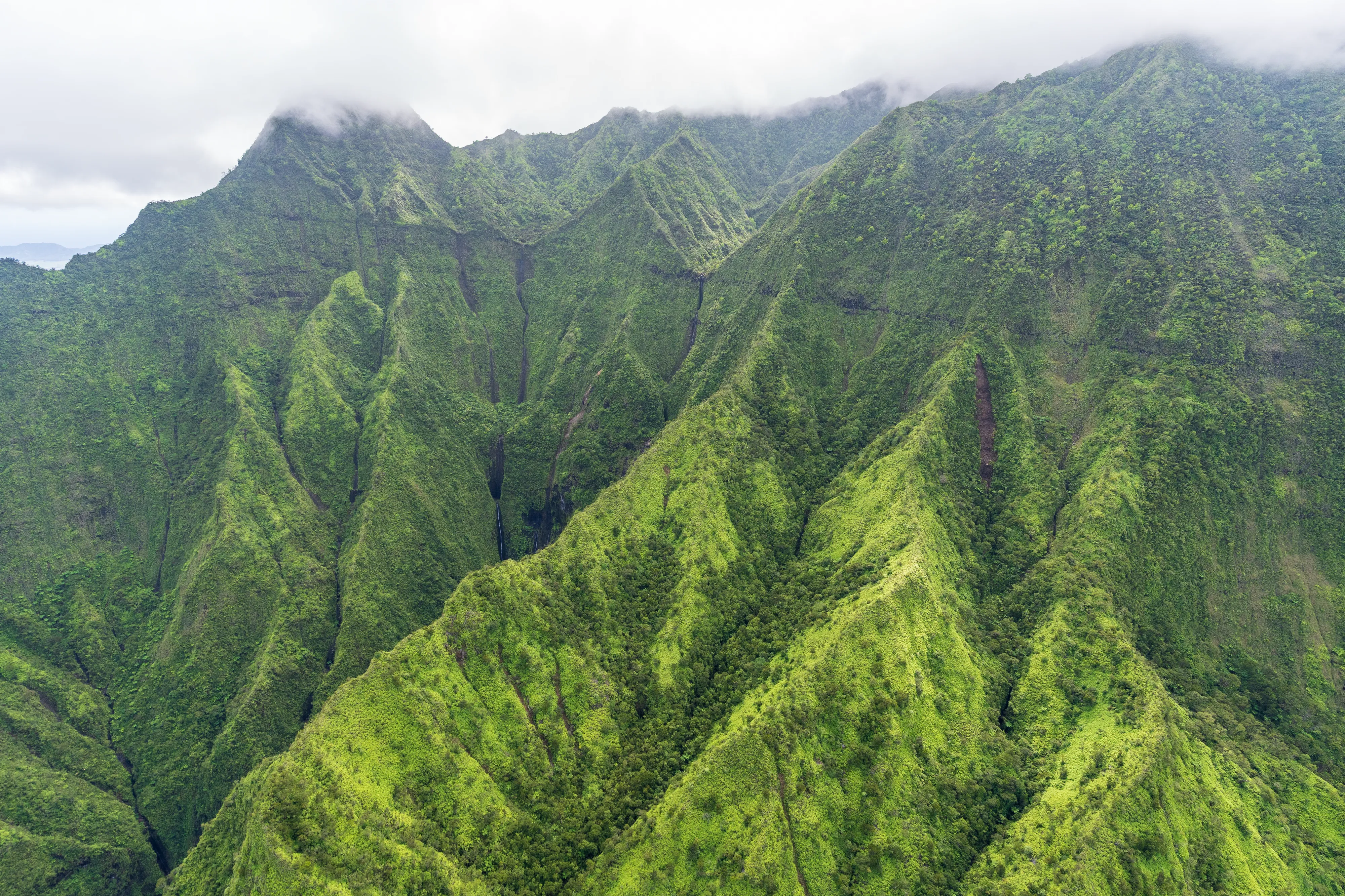 Kaua’i trägt - unserer Meinung nach absolut zu Recht - den Beinamen “die Garteninsel”. Die Insel ist wirklich grün, egal ob in der Ebene oder in den Bergen; selbst die sehr steilen, klippenartigen Hänge der Berge sind bewachsen. Die knapp 1435 km2 große Insel umfasst einen der regenreichsten Punkte der Erde: Waiʻaleʻale. Kein Wunder also, dass es hier so grün ist (wir werden hier auch mehr Regen erleben als auf allen anderen hawai’ianischen Inseln). Die Insel wird übrigens von den meisten Deutschen auf einer Hawai’ireise besucht, während sich nur wenige japanische Touristen hierher verirren (auf den anderen Inseln sind sie durchaus präsent). Auch handelt es sich um die älteste Insel des hawai’ianischen Archipels. Der Vulkan Kaua’i ist seit langem erloschen und die natürliche Erosion hatte bereits viel Zeit, die Vulkanlandschaften abzuschleifen und in üppige Regenwälder, Klippen und Schluchten zu verwandeln.