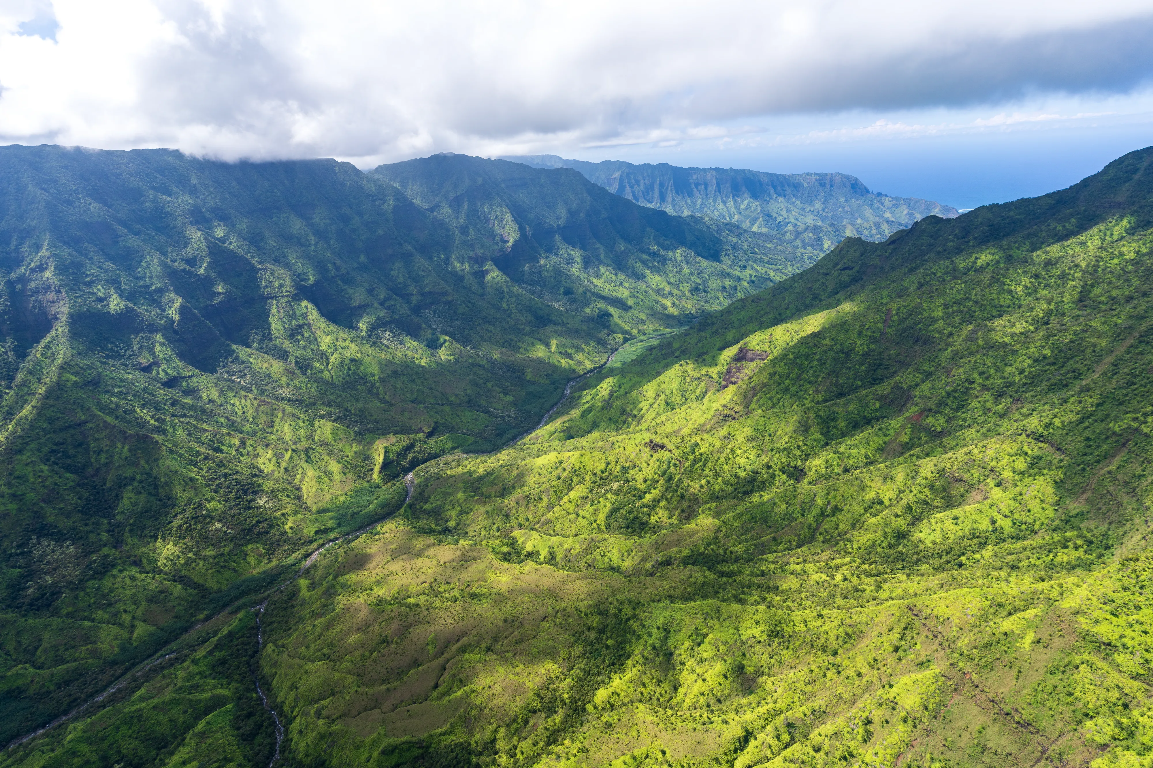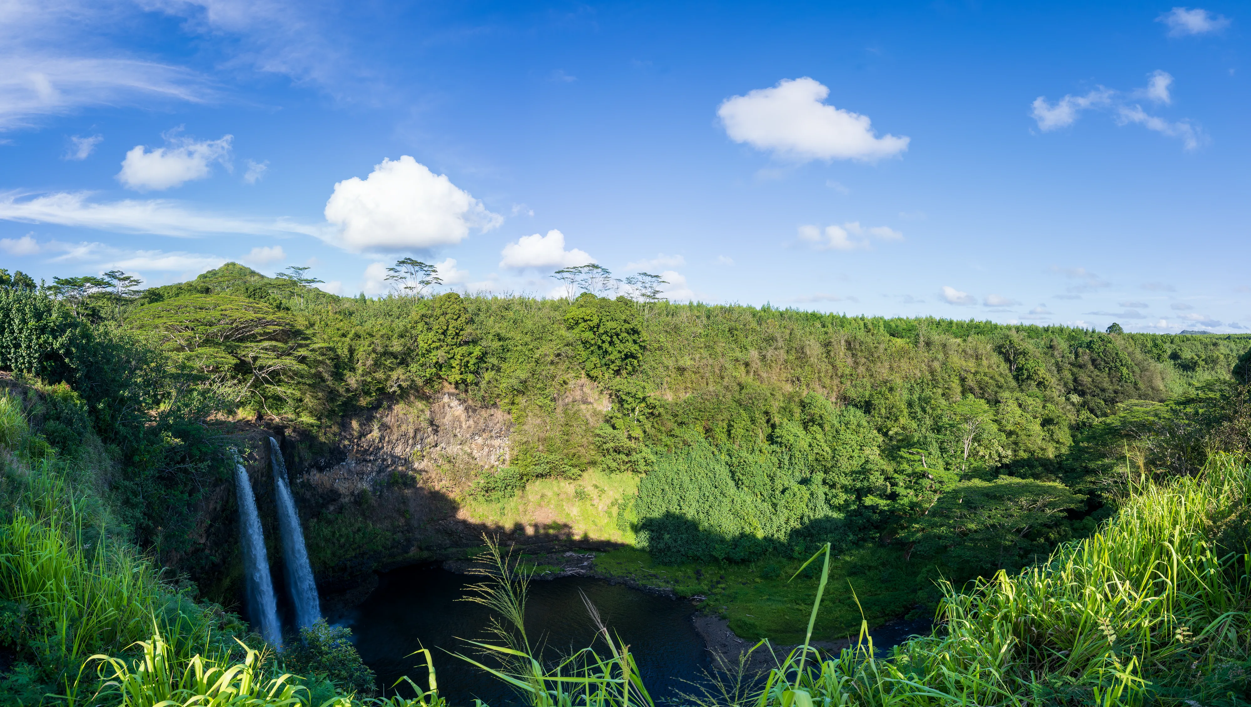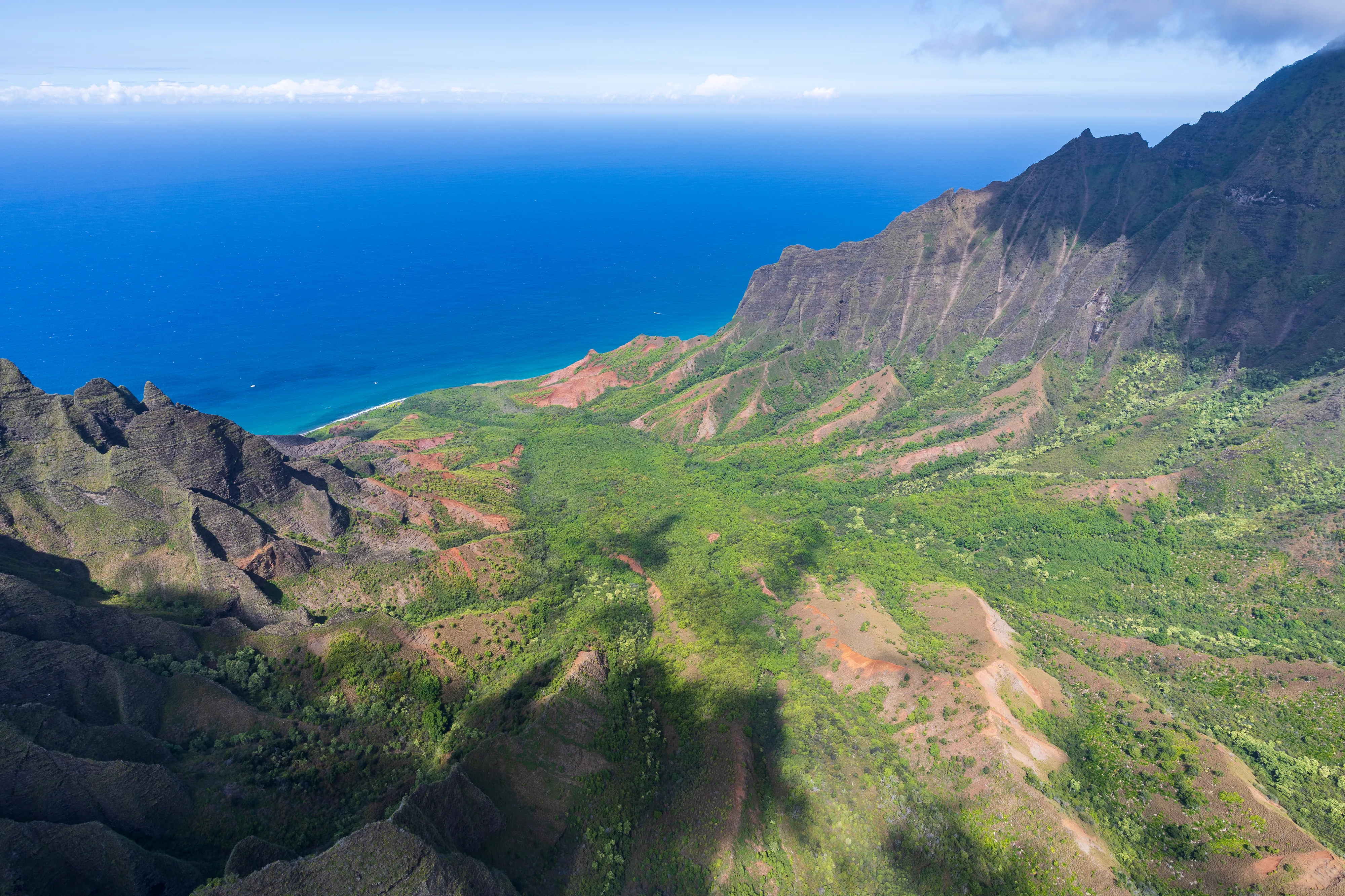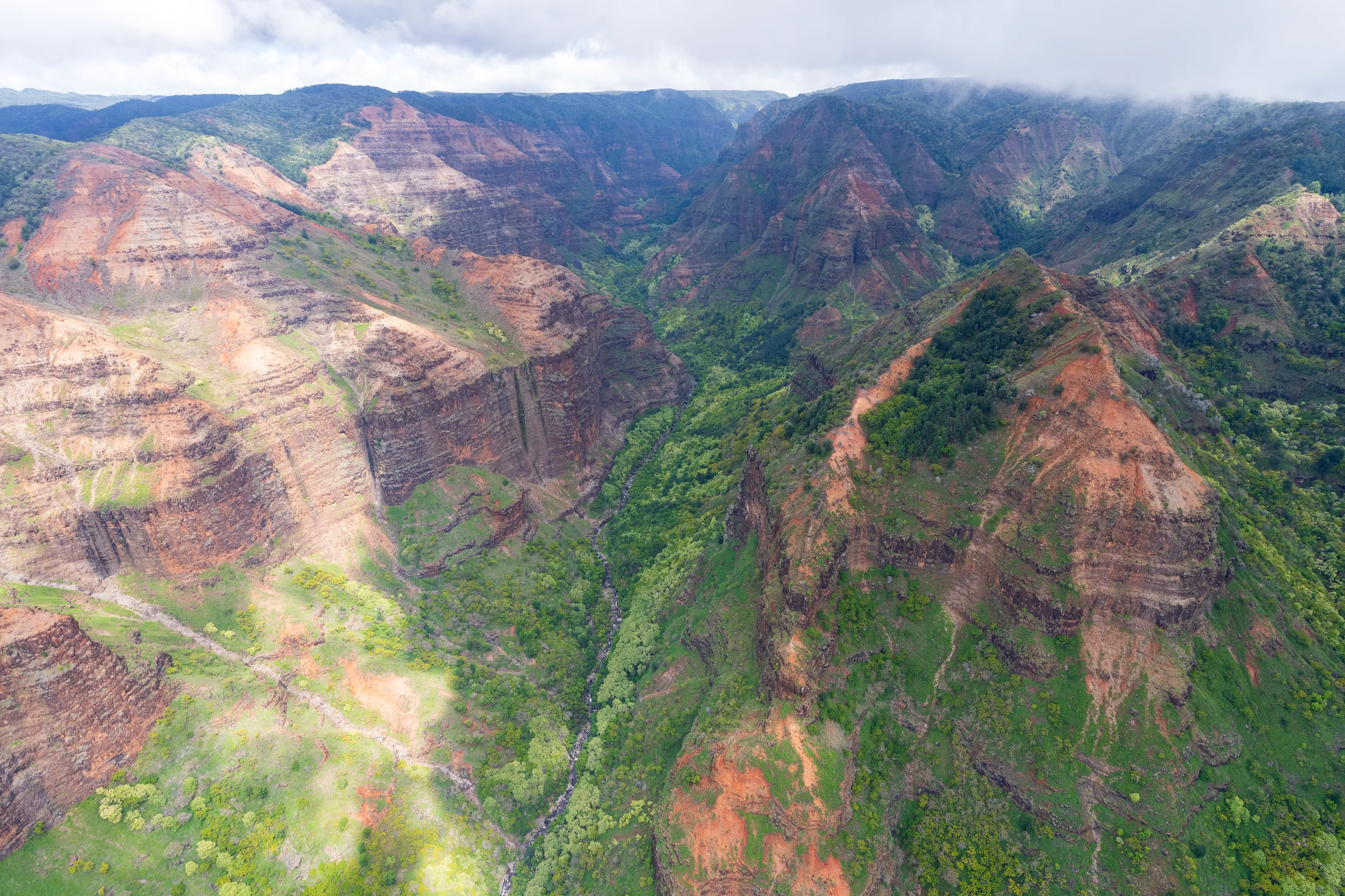 Kaua’i trägt - unserer Meinung nach absolut zu Recht - den Beinamen “die Garteninsel”. Die Insel ist wirklich grün, egal ob in der Ebene oder in den Bergen; selbst die sehr steilen, klippenartigen Hänge der Berge sind bewachsen. Die knapp 1435 km2 große Insel umfasst einen der regenreichsten Punkte der Erde: Waiʻaleʻale. Kein Wunder also, dass es hier so grün ist (wir werden hier auch mehr Regen erleben als auf allen anderen hawai’ianischen Inseln). Die Insel wird übrigens von den meisten Deutschen auf einer Hawai’ireise besucht, während sich nur wenige japanische Touristen hierher verirren (auf den anderen Inseln sind sie durchaus präsent). Auch handelt es sich um die älteste Insel des hawai’ianischen Archipels. Der Vulkan Kaua’i ist seit langem erloschen und die natürliche Erosion hatte bereits viel Zeit, die Vulkanlandschaften abzuschleifen und in üppige Regenwälder, Klippen und Schluchten zu verwandeln.