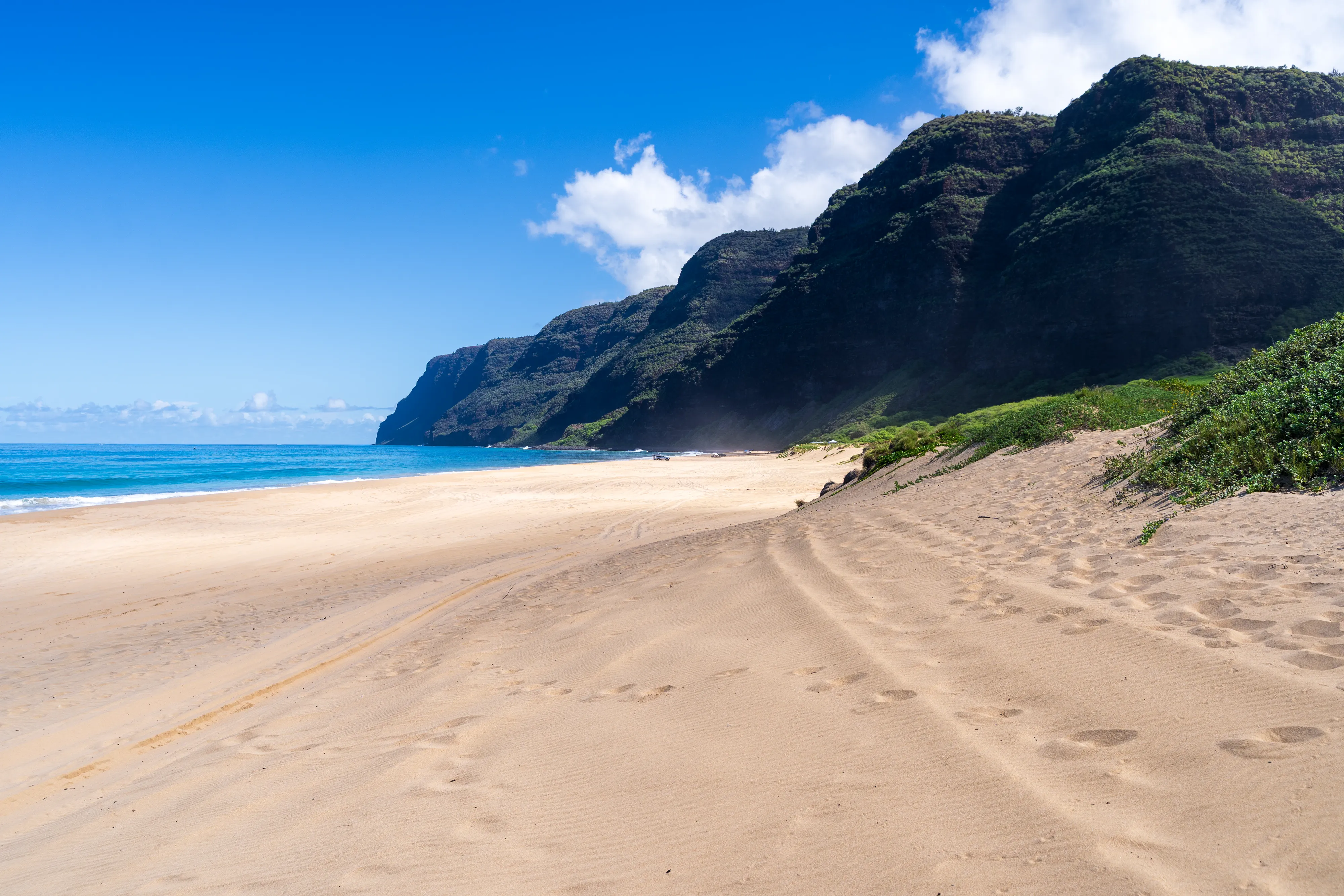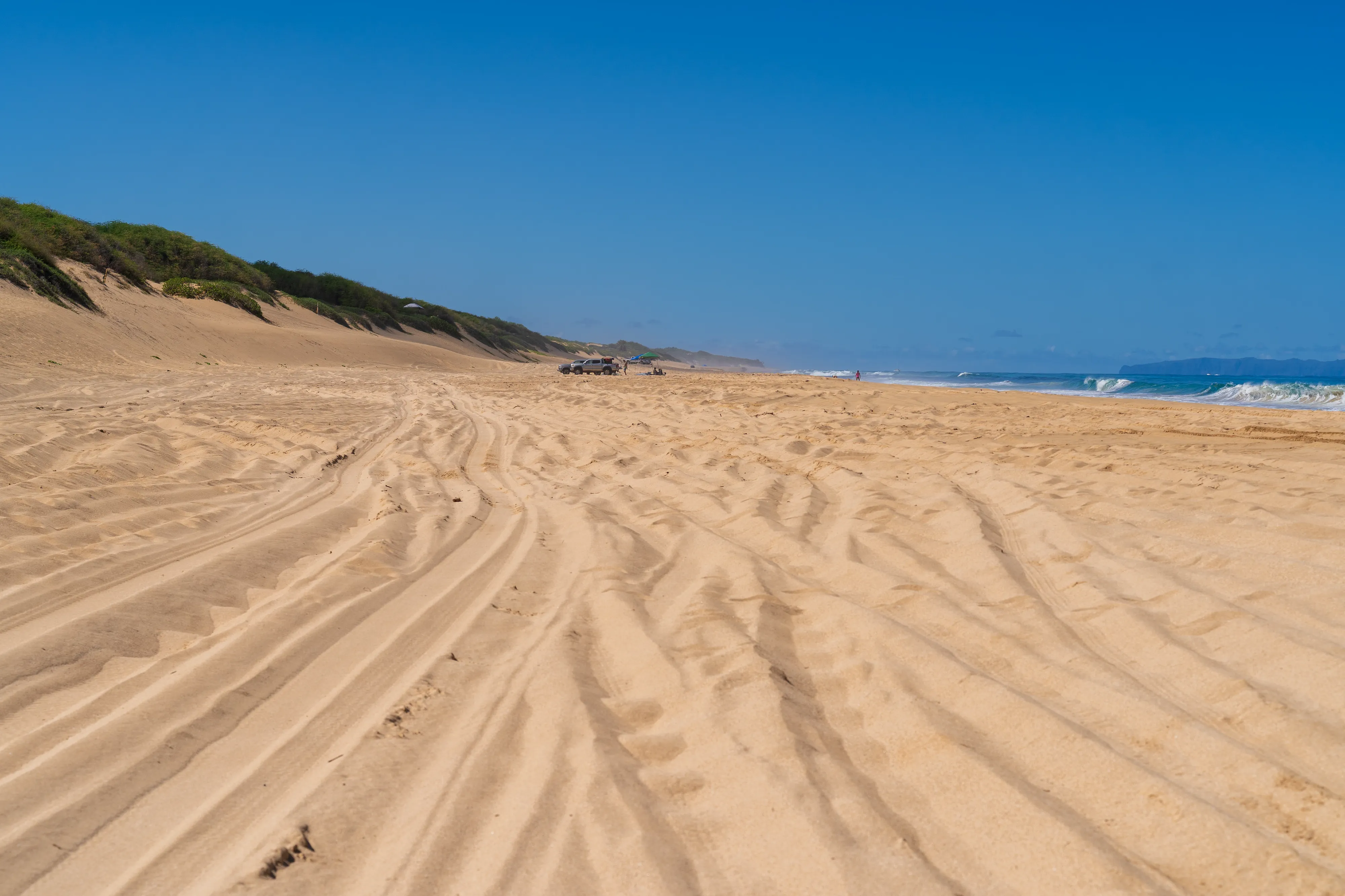Für heute Abend haben wir eine Reservierung im Polihale State Park, welcher am unteren Ende der Nā Pali Küste liegt, jedoch nur über eine ca. 8 km lange Schotterpiste zu erreichen ist, die in keinem besonders guten Zustand ist.