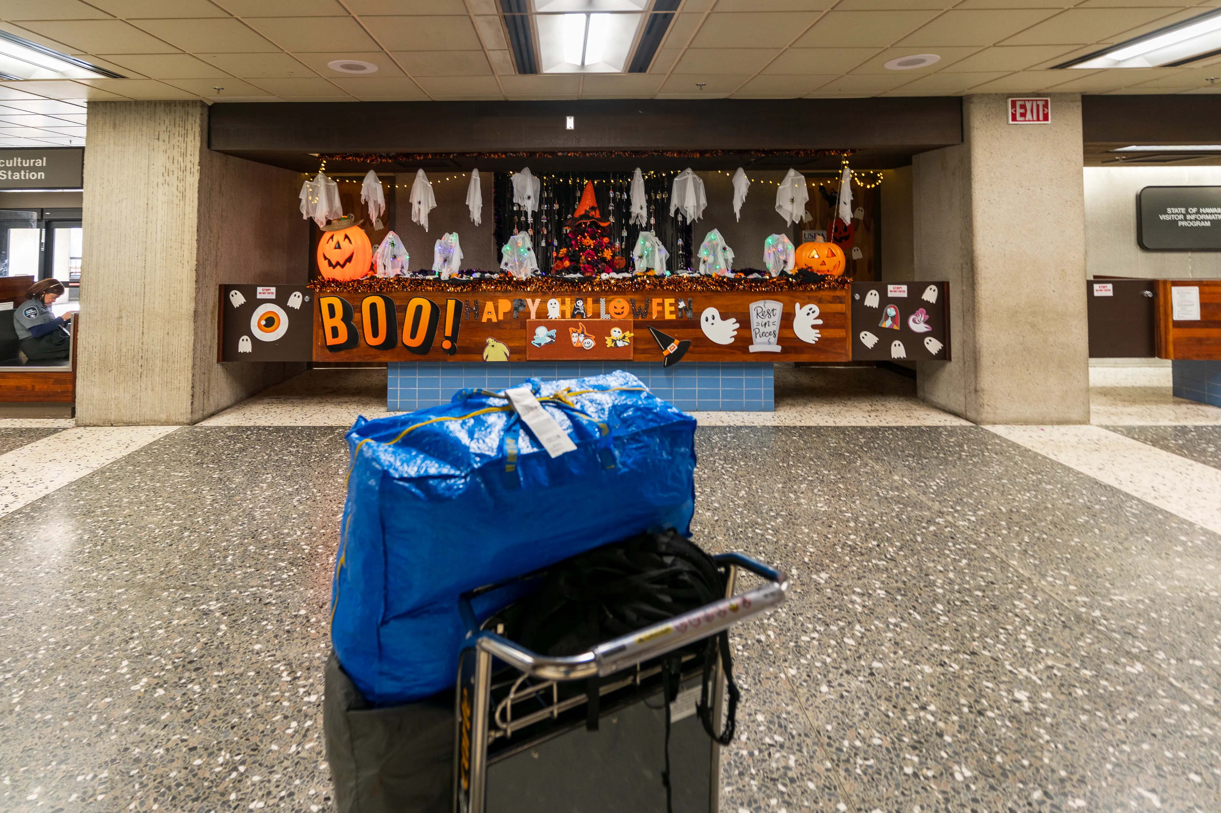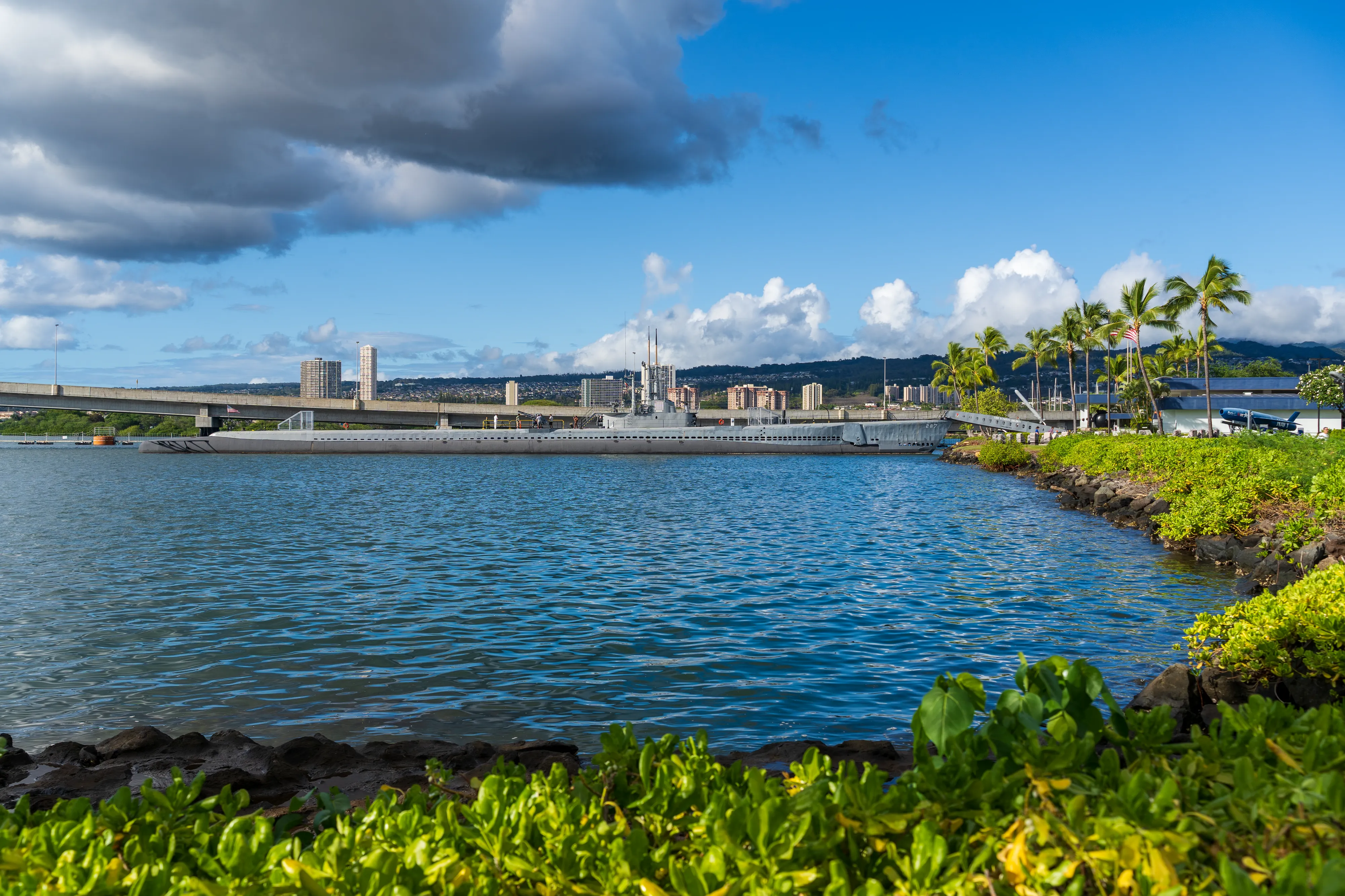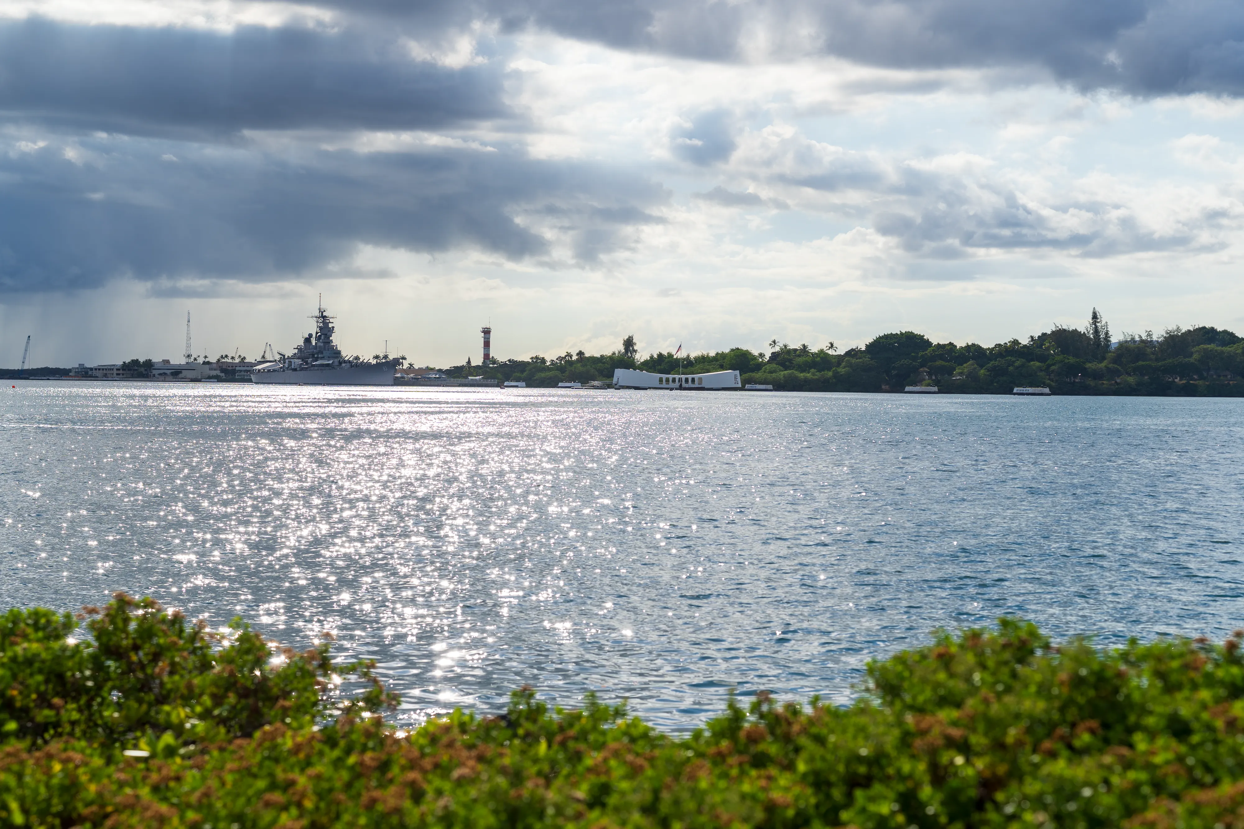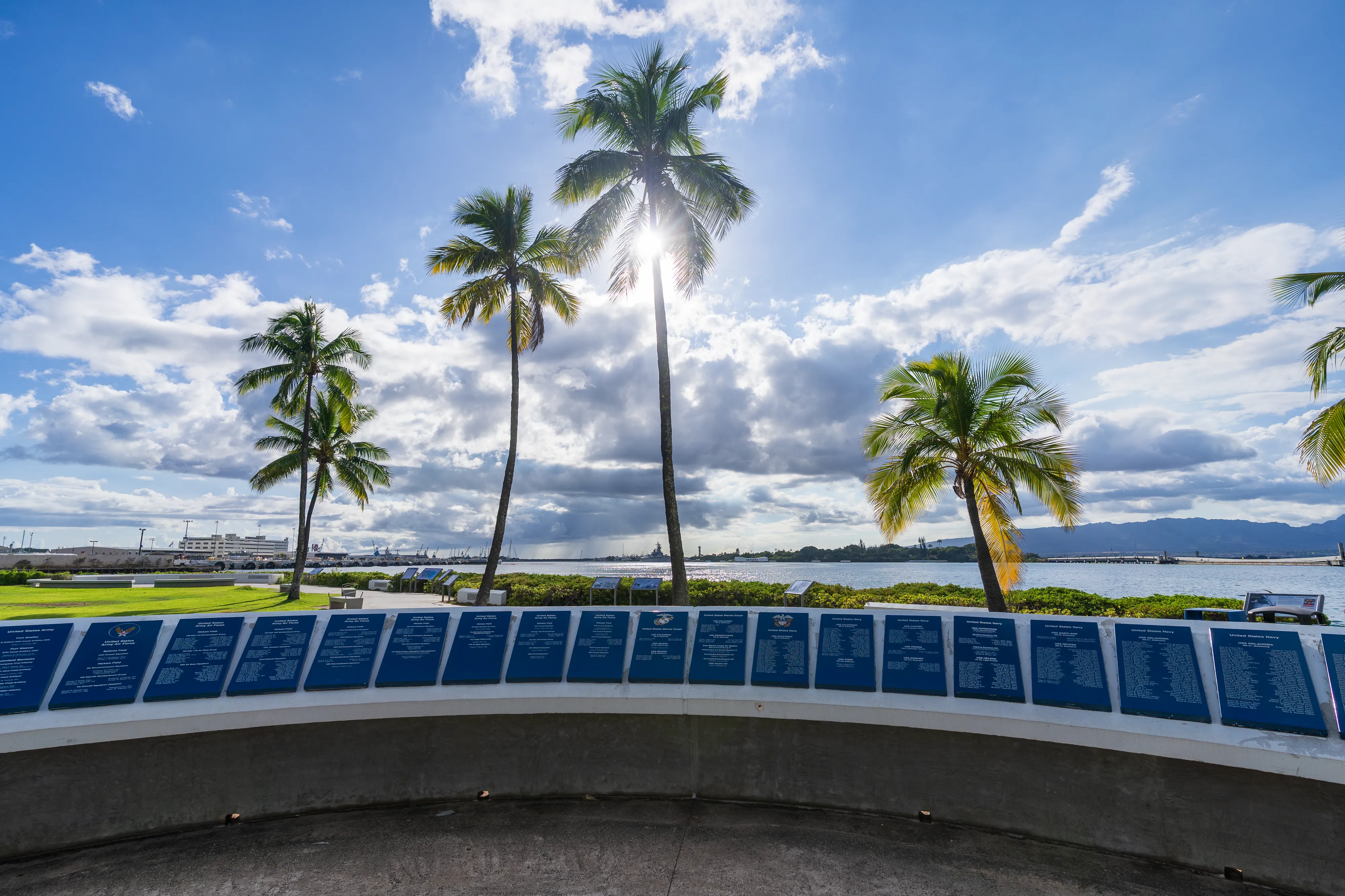 Am schon rechtzeitig für Halloween geschmückten Flughafen holen wir unseren Mietwagen, diesmal ein Ford Mustang Cabrio ab. Nachdem wir unsere Taschen in den erstaunlich geräumigen Kofferraum geladen haben und losfahren wollen, müssen wir leider feststellen: das Auto springt nicht an. Man holt uns einen Chevrolet Camaro als Ersatz aus der Garage - allerdings ist bei diesem der Kofferraum viel zu klein. Der zweite Mustang funktioniert dann wie man es sich vorstellt und wir fahren los Richtung Pearl Harbor. Pearl Harbor ist vermutlich jedem ein Begriff, da hier der verheerende Angriff der Japaner auf die US-Flotte stattfand, welcher den Kriegseintritt der USA zur Folge hatte. Einige Schiffe wurden bei dem Überraschungsangriff versenkt, viele Soldaten verloren ihr Leben. Heute kann man sich im Pearl Harbor National Memorial über die Geschichte informieren und der Gefallenen gedenken. Die Bootsfahrt zum USS Arizona Memorial lassen wir aus Zeitgründen aus - und auch weil wir selbst mit Pearl Harbor nichts verbinden. Wir schauen uns das Memorial also etwas aus der Ferne an und machen uns dann auf den Weg zur North Shore, also der anderen Küstenseite, von O’ahu.