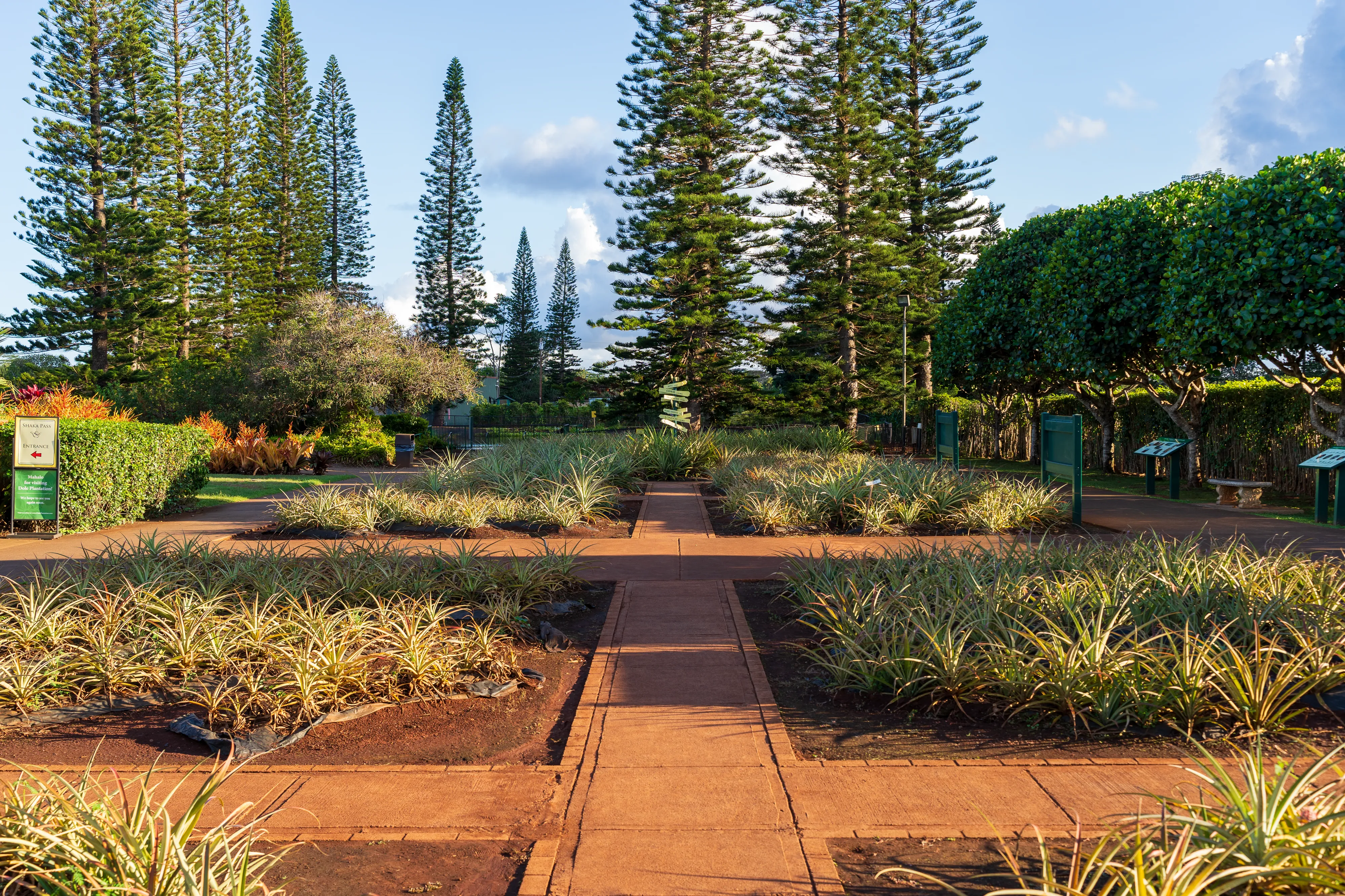 Auf dem Weg legen wir noch einen kurzen Stopp bei der Dole Plantation ein. Hier hat das Unternehmen Dole, den meisten vermutlich eher in Bezug auf Bananen ein Begriff, mit dem Anbau von Ananas seinen Anfang genommen. Mittlerweile baut man Ananas hier höchstens noch in kleinen Mengen für den lokalen Markt und zu Vorführzwecken an, denn wirtschaftlich lohnend ist der Plantagenbetrieb hier nicht mehr. Stattdessen ist hier ein kleiner Themenpark rund um die Ananas entstanden mit Labyrinth, einem Zug der durch die Plantage fährt etc.