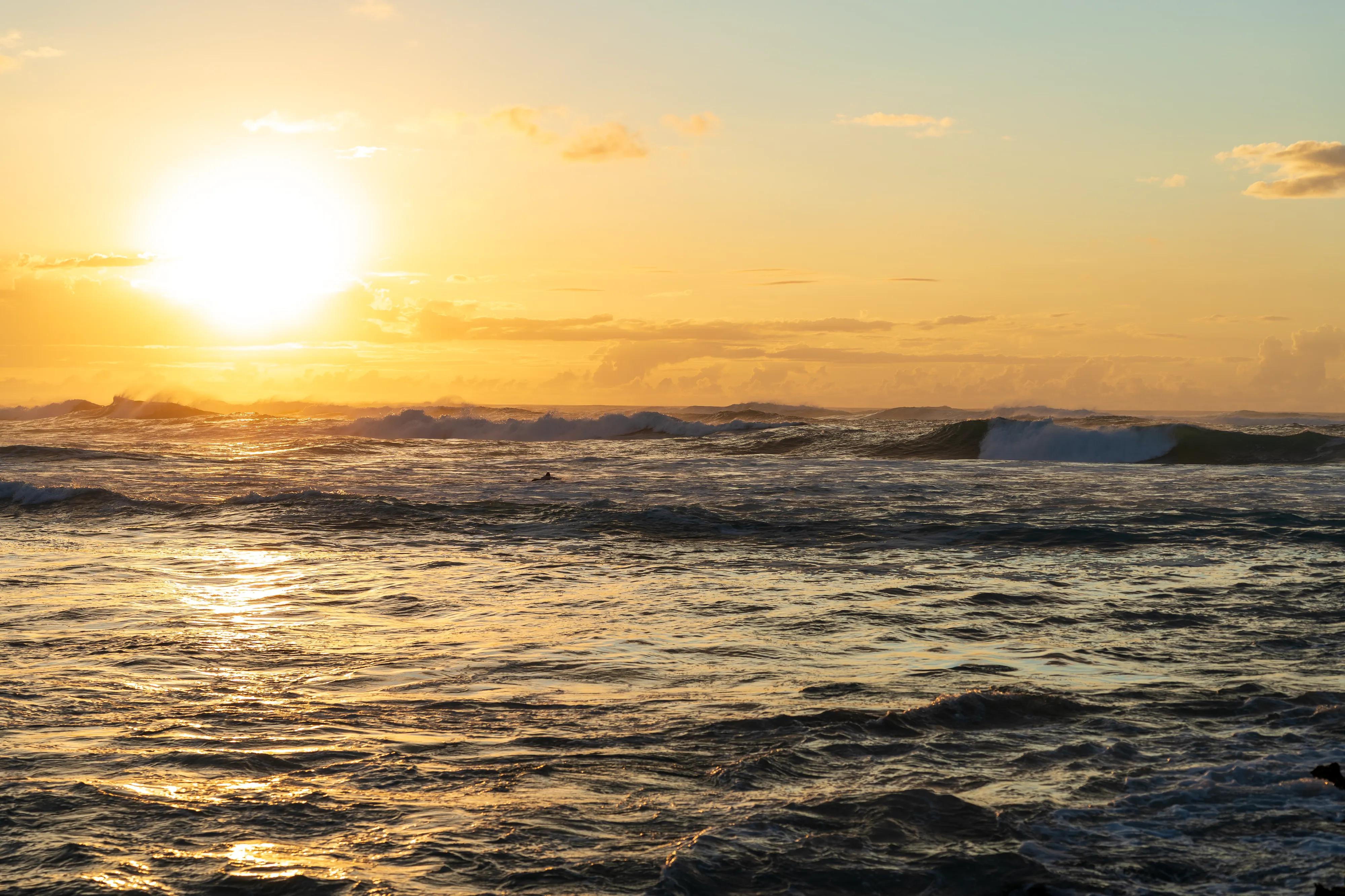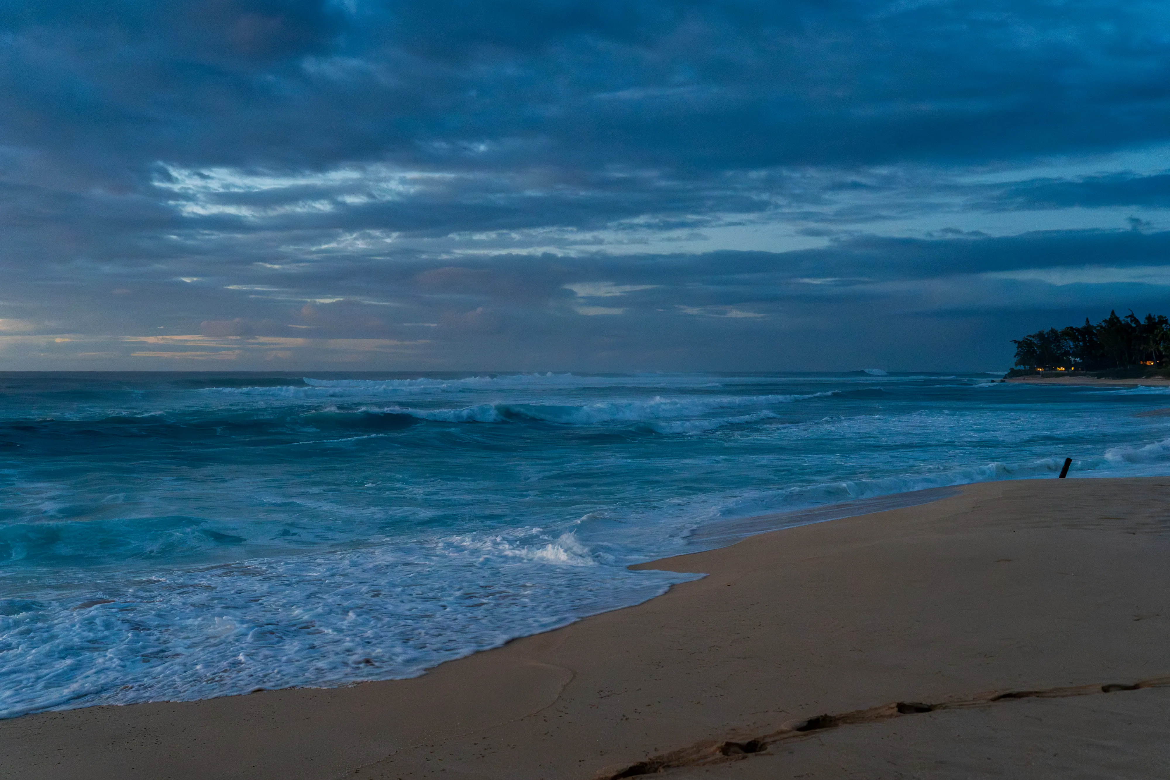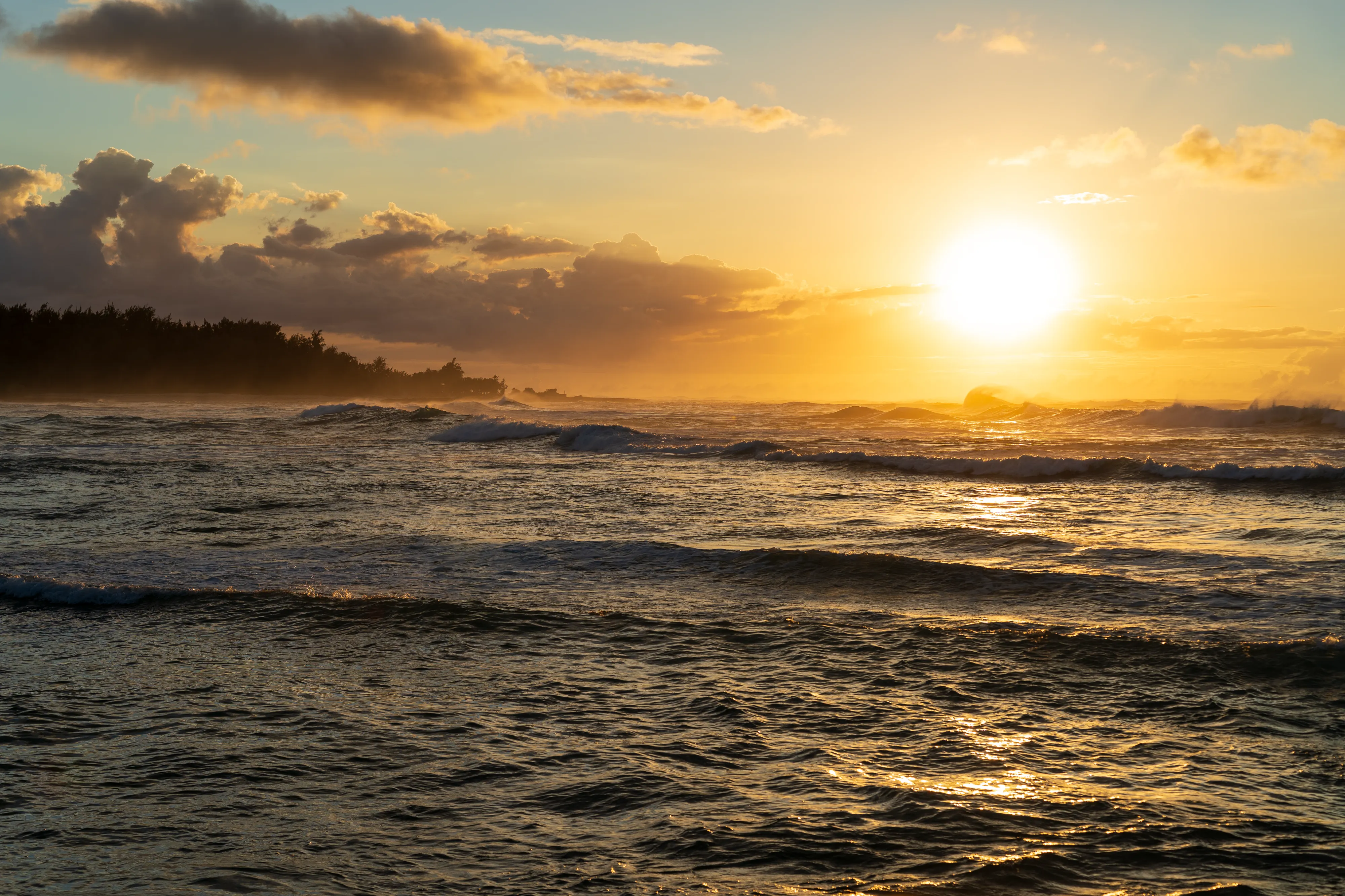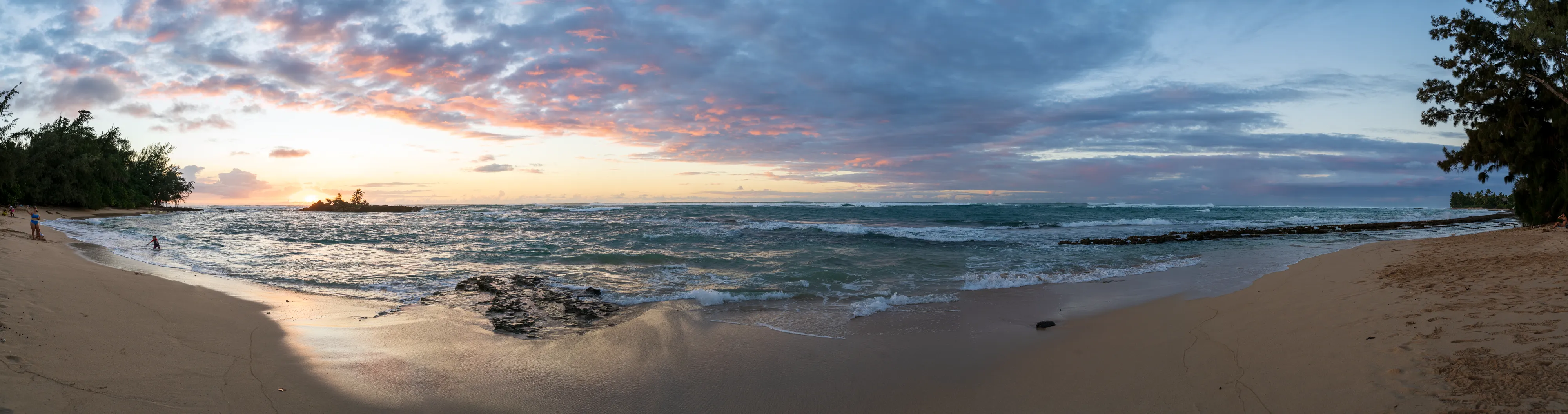 Angekommen an der North Shore, fahren wir zur Turtle Bay, leider ohne Schildkröten zu sehen und danach weiter an den Kawela Beach, um den Sonnenuntergang anzuschauen. Die Wellen sind an der Nordküste wirklich gigantisch - selbst zu dieser Jahreszeit und ohne Sturm. Kein Wunder also, dass hier jedes Jahr die Surfweltmeisterschaften abgehalten werden.