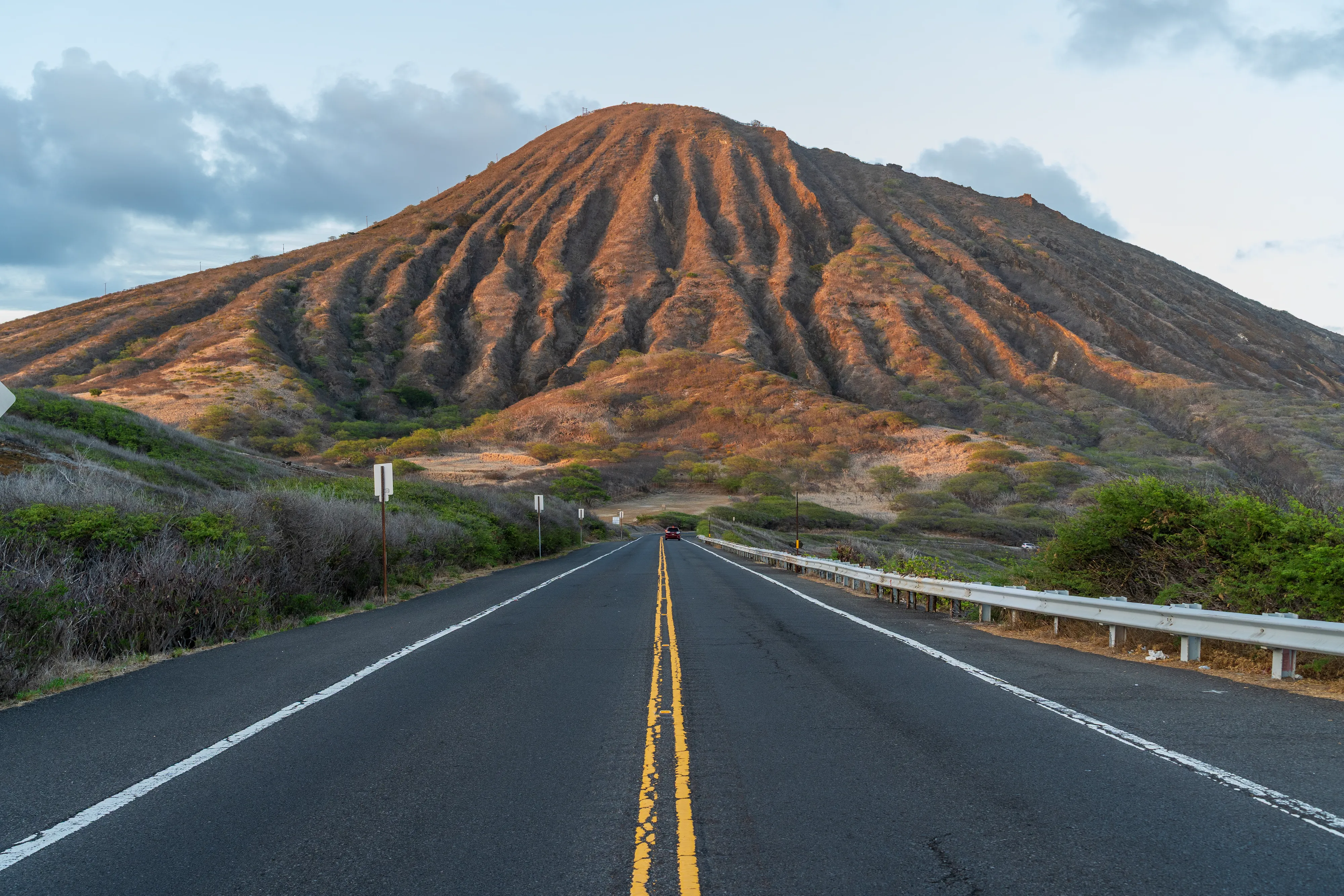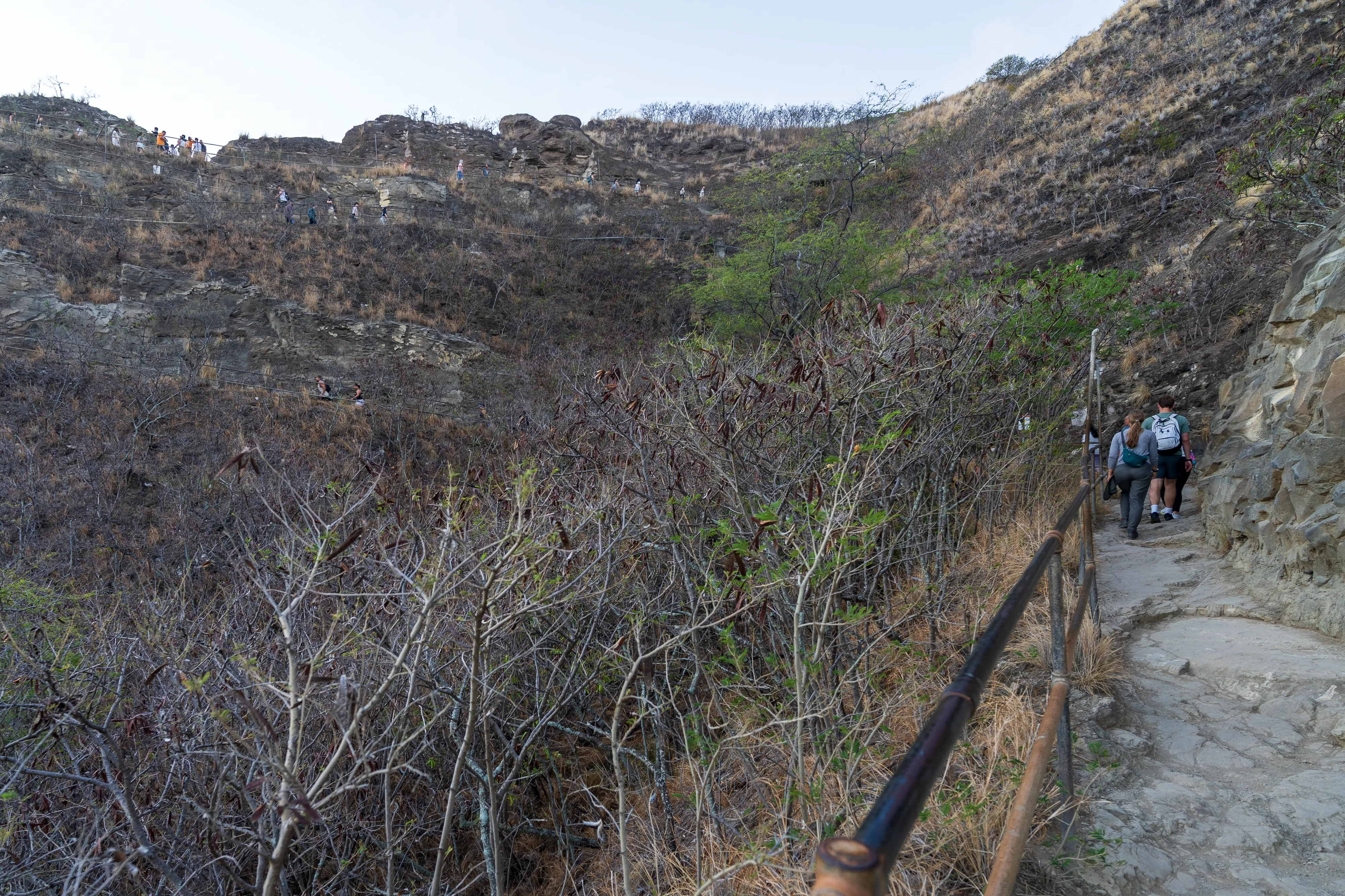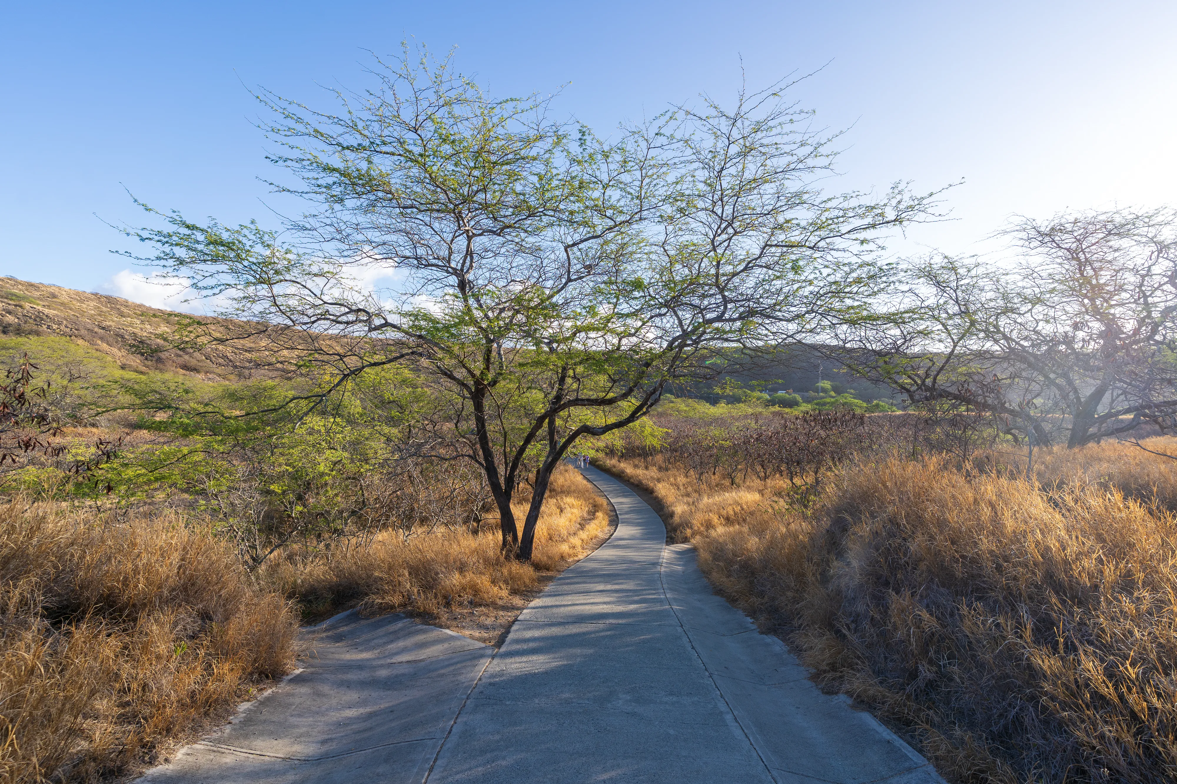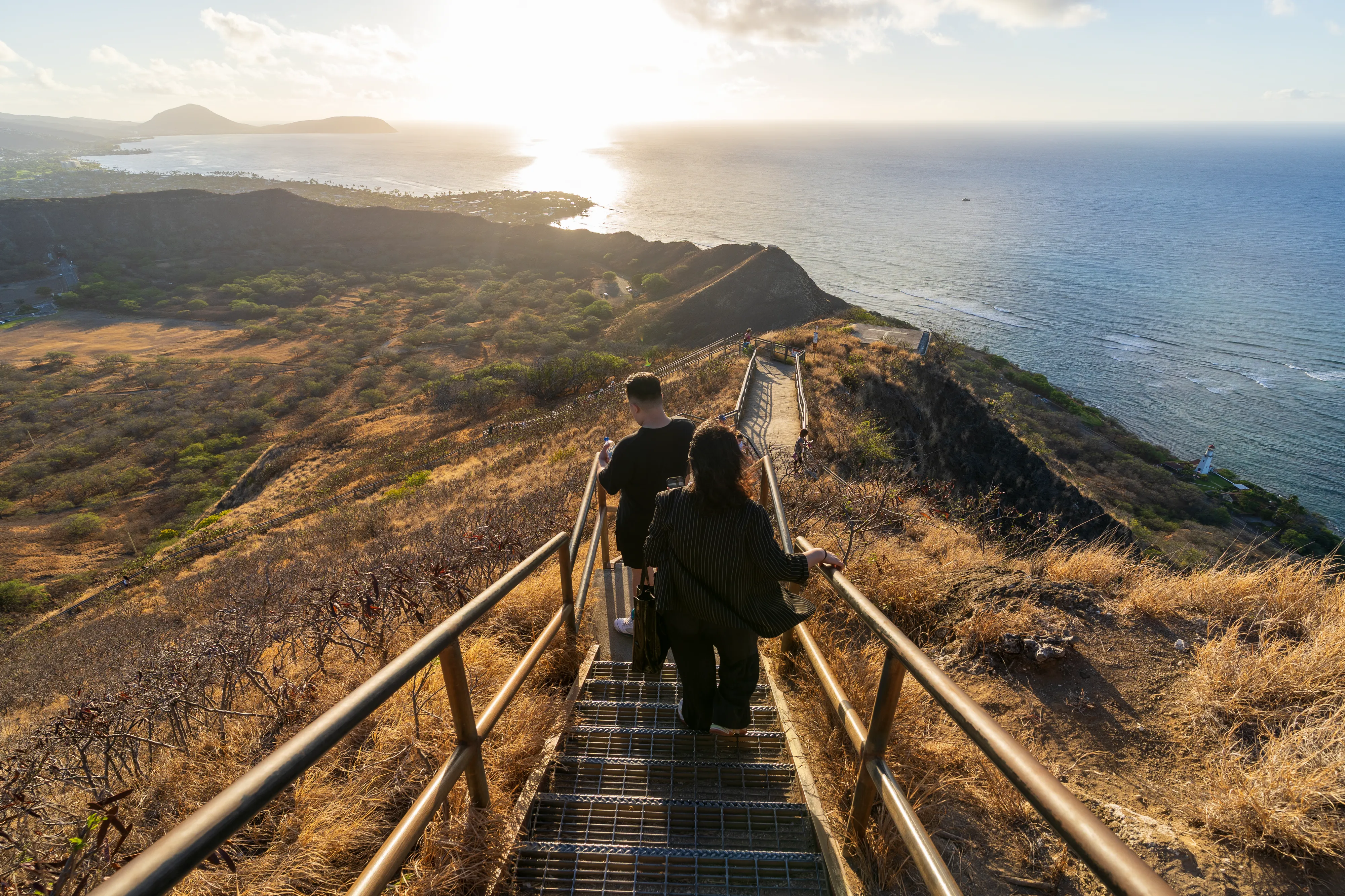Zurück im Süden der Insel checken wir in unserer Unterkunft in Waikīkī ein - ganz in der Nähe des weltberühmten Waikīkī-Beach. Der nächste Morgen beginnt für uns bereits gegen 5 Uhr, denn wir wollen zum Sonnenaufgang am Diamond Head State Park bzw. einem der Aussichtspunkte sein. Der Diamond Head ist ein aus Tuffstein bestehender Ring um einen Vulkankrater, ein Wahrzeichen Honolulus und heute ein State Park. Seit Anfang des 20ten Jahrhunderts wurde er zu militärischen Zwecken genutzt und es wurden Wege, Bunker und Tunnel gebaut. Mittlerweile werden diese allerdings nur noch von Touristen genutzt - denn die Bunkeranlagen können Teils betreten werden. Von dort aus hat man einen schönen Blick auf die Skyline von Honolulu im aufgehenden Licht der Sonne. Dafür muss man dann eben im Dunkeln aufstehen.