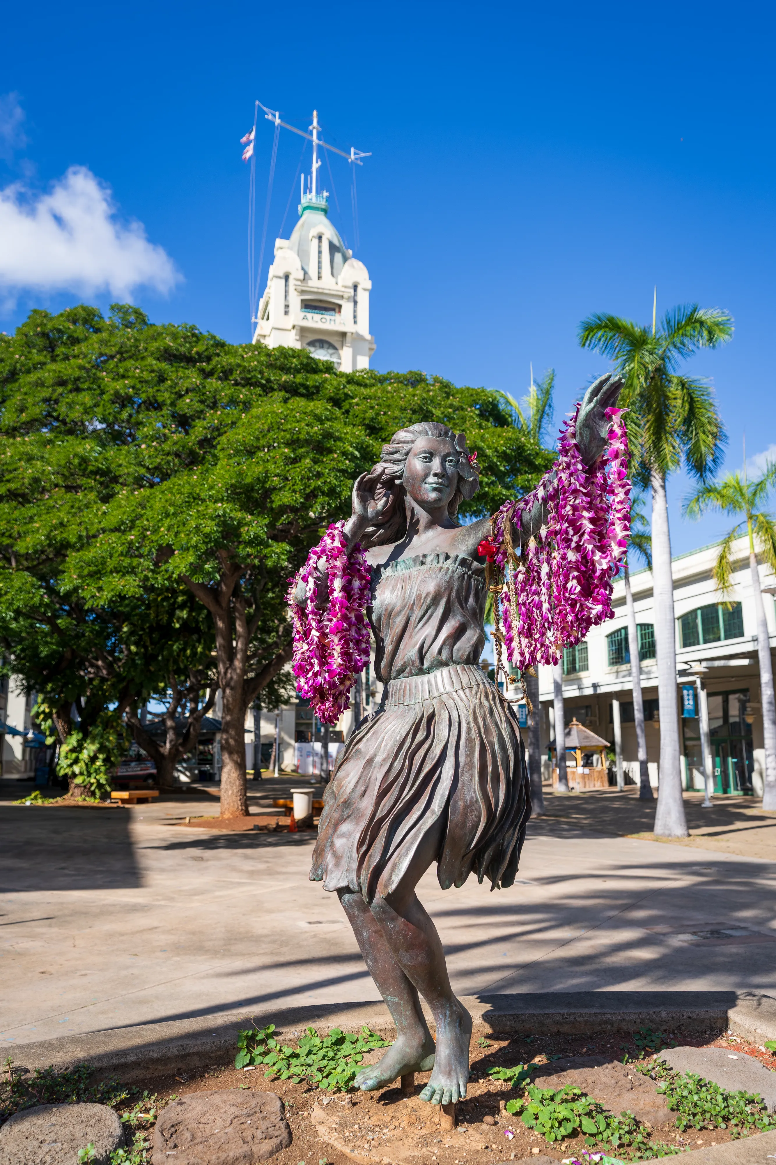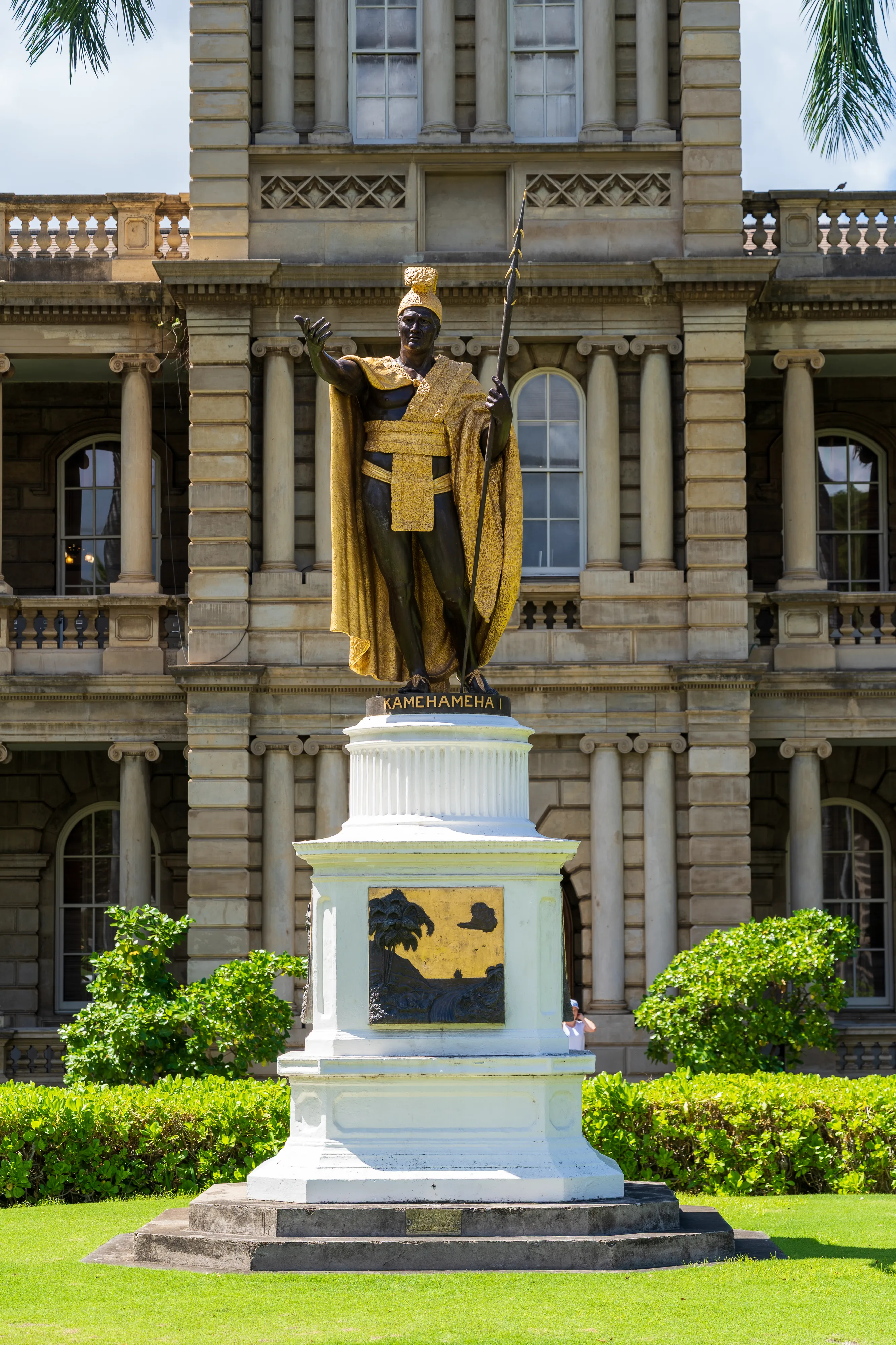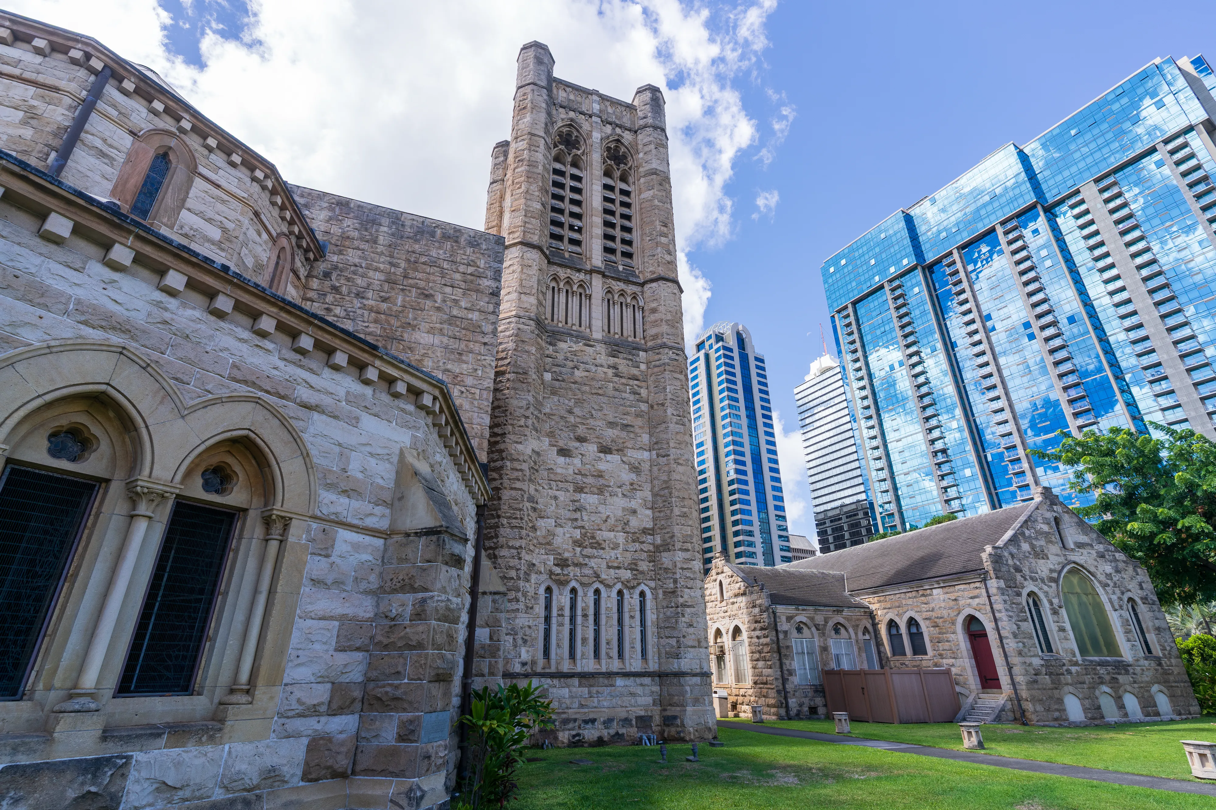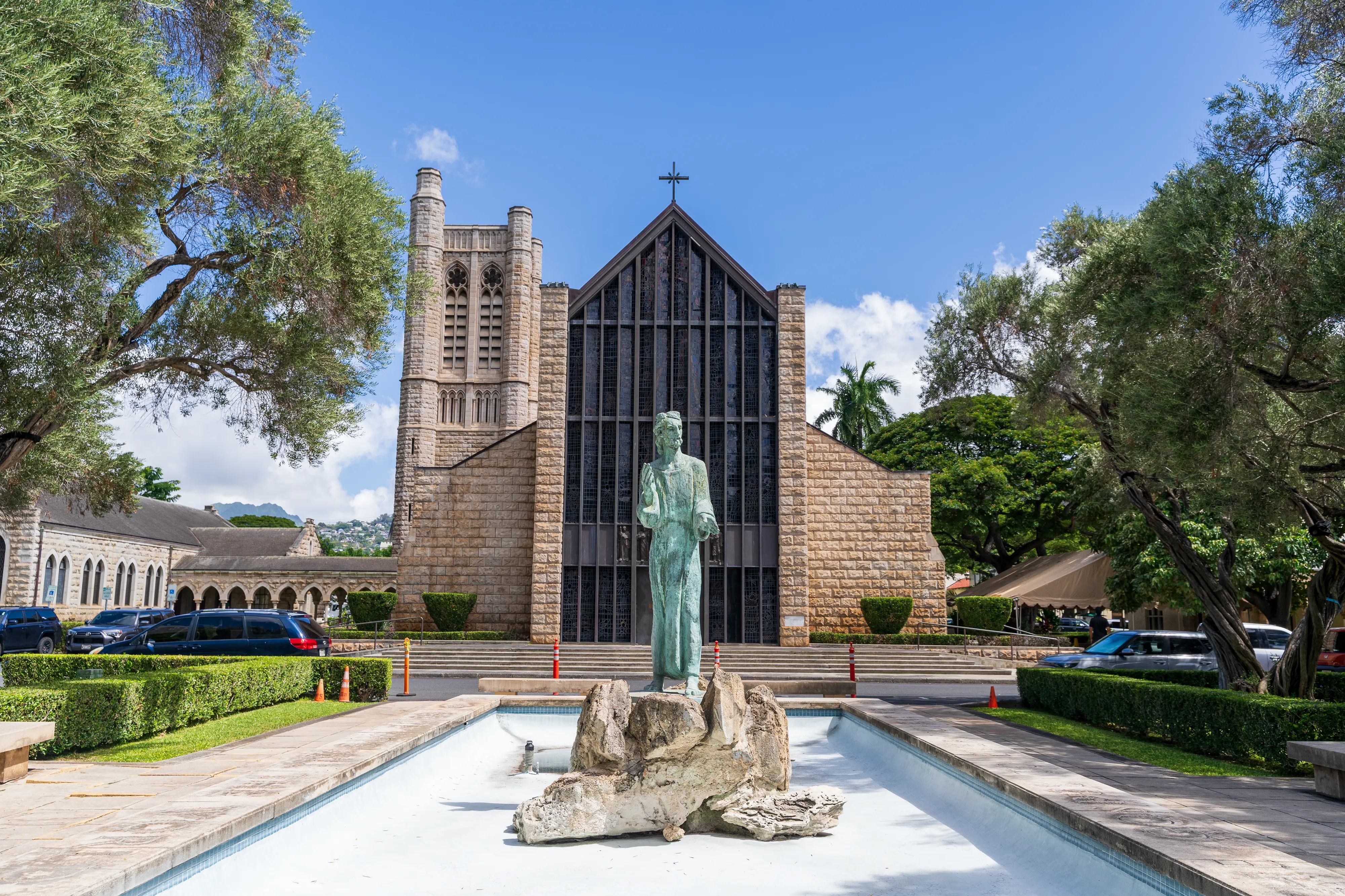Wir schlendern noch ein wenig um den Palast herum und entdecken eine Statue von Kamehameha I, welcher als mächtiger Häuptling Hawai’i zu einem Königreich vereint und die erste Herrscherdynastie begründet hat, die immerhin von 1795 bis 1873 das Archipel beherrschte und es zu einem international anerkannten Staat machte. Weiterhin kommen wir an der St. Andrew Cathedral vorbei, deren alte Gemäuer einen netten Kontrast zu den gläsernen Hochhäusern abgeben.