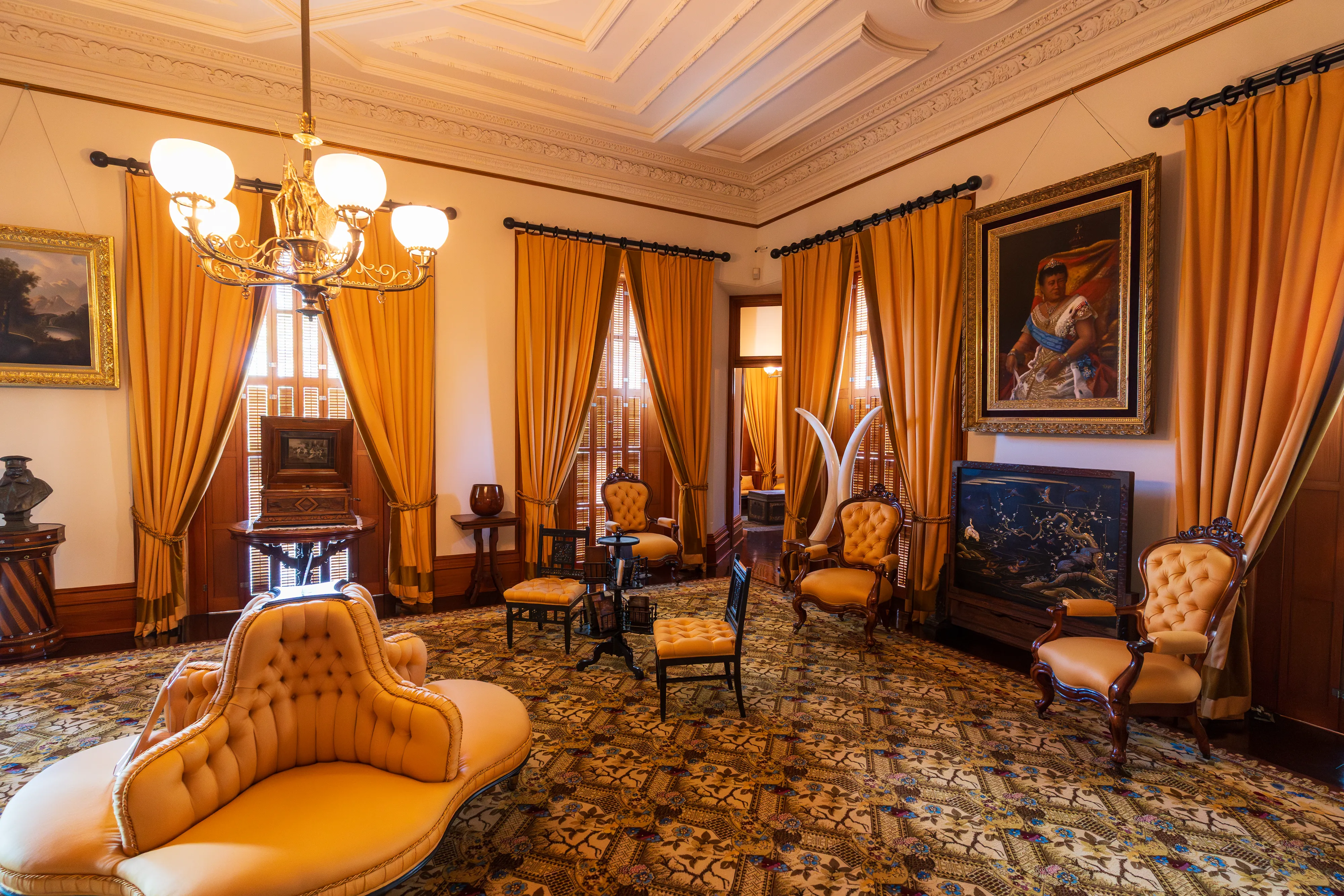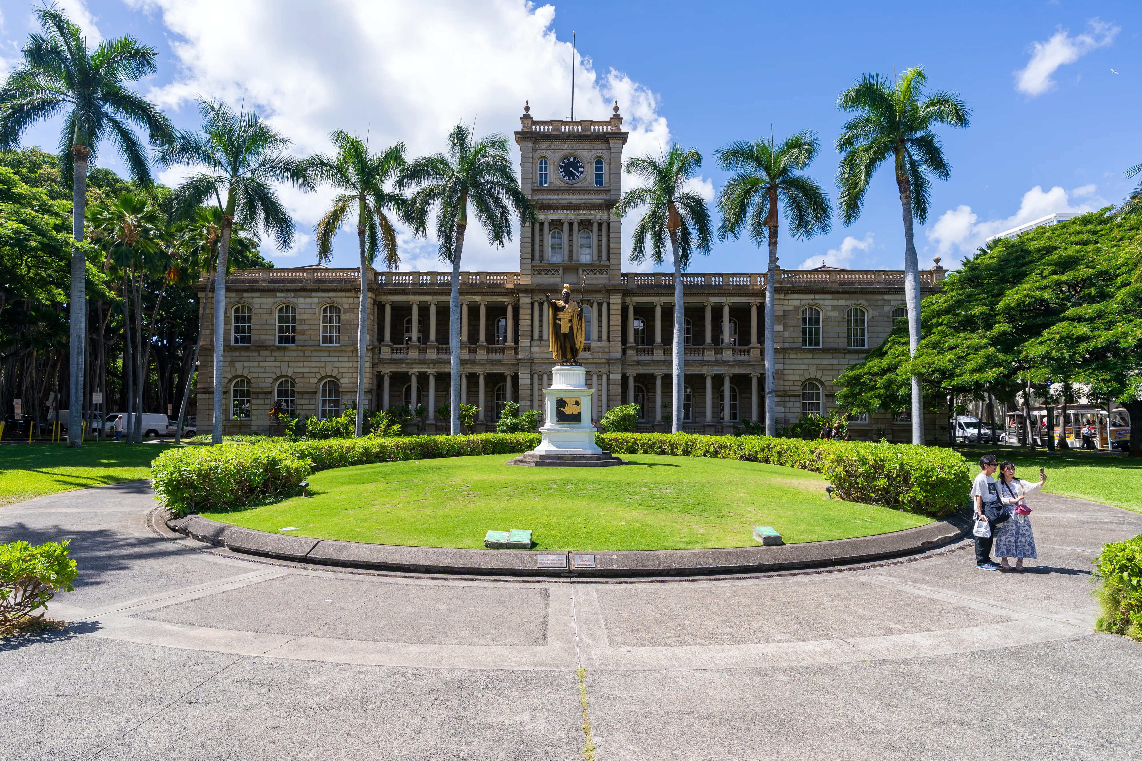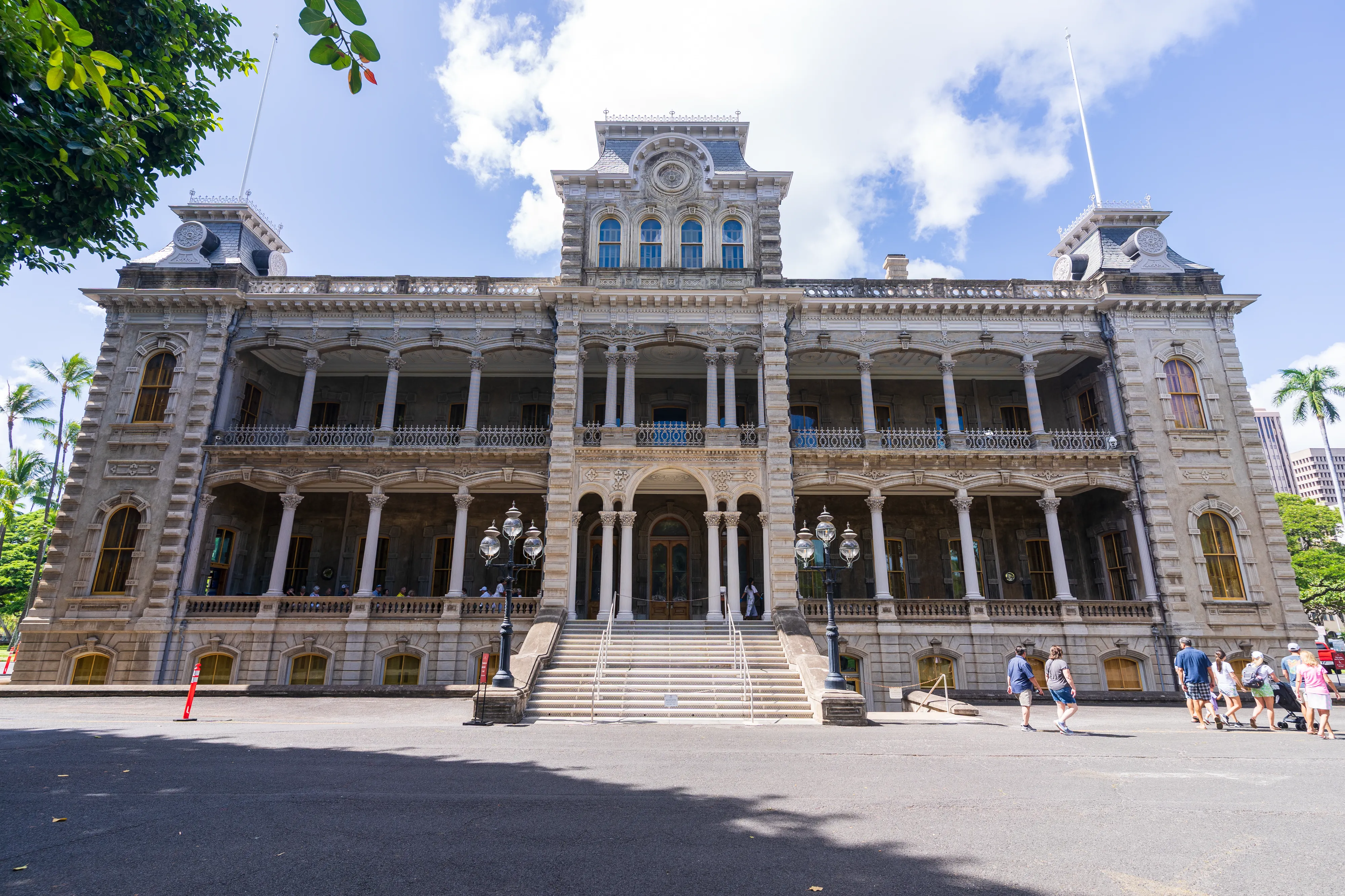 Von hier aus geht es zum Frühstück und anschließend in die Innenstadt von Honolulu, genauer gesagt zum einzigen Königspalast der USA (zumindest im Moment noch; aber es tut sich ja gerade einiges in Washington D.C.): Iolani Palace. Iolani Palace war einst der Regierungs- und Wohnsitz der hawai’ianischen Könige, bevor das Königreich Hawai’i Ende des 19. Jahrhunderts durch einen von den USA unterstützten Putsch ein jähes Ende fand und die von den Putschisten neu ausgerufene Republik auf eigenen Wunsch (rechtswidrig) von den USA annektiert wurde. Der Palast ist eine interessante Kombination aus westlichen Königshäusern und polynesischen Elementen - und spiegelt damit sicher auch das Leben und den Alltag der Königsfamilie wider, die in beiden Welten zu Hause war.