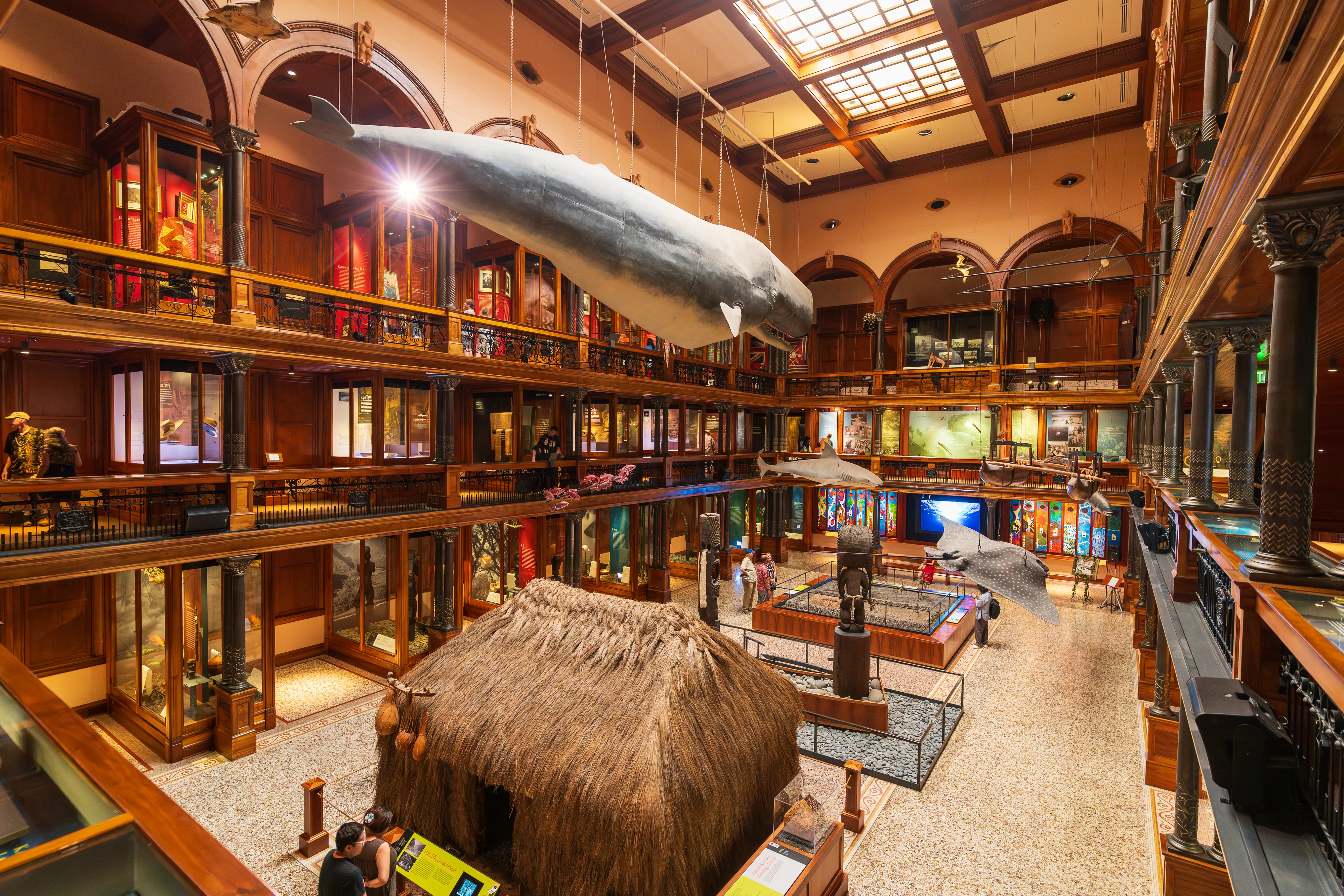 Anschließend gehen wir ins Bishop Museum, ein riesiges Naturkundemuseum. Auch wenn der Name anderes suggerieren mag, so hat dieses Museum keinen kirchlichen Hintergrund - sein Gründer hieß lediglich “Bishop” mit Nachnamen. Eine Ausstellung informiert über die Geschichte Hawai’is und die Besiedlung des Archipels durch die Polynesier. Viele Artefakte und Geschichten werden in historischem Ambiente ansprechend präsentiert.
