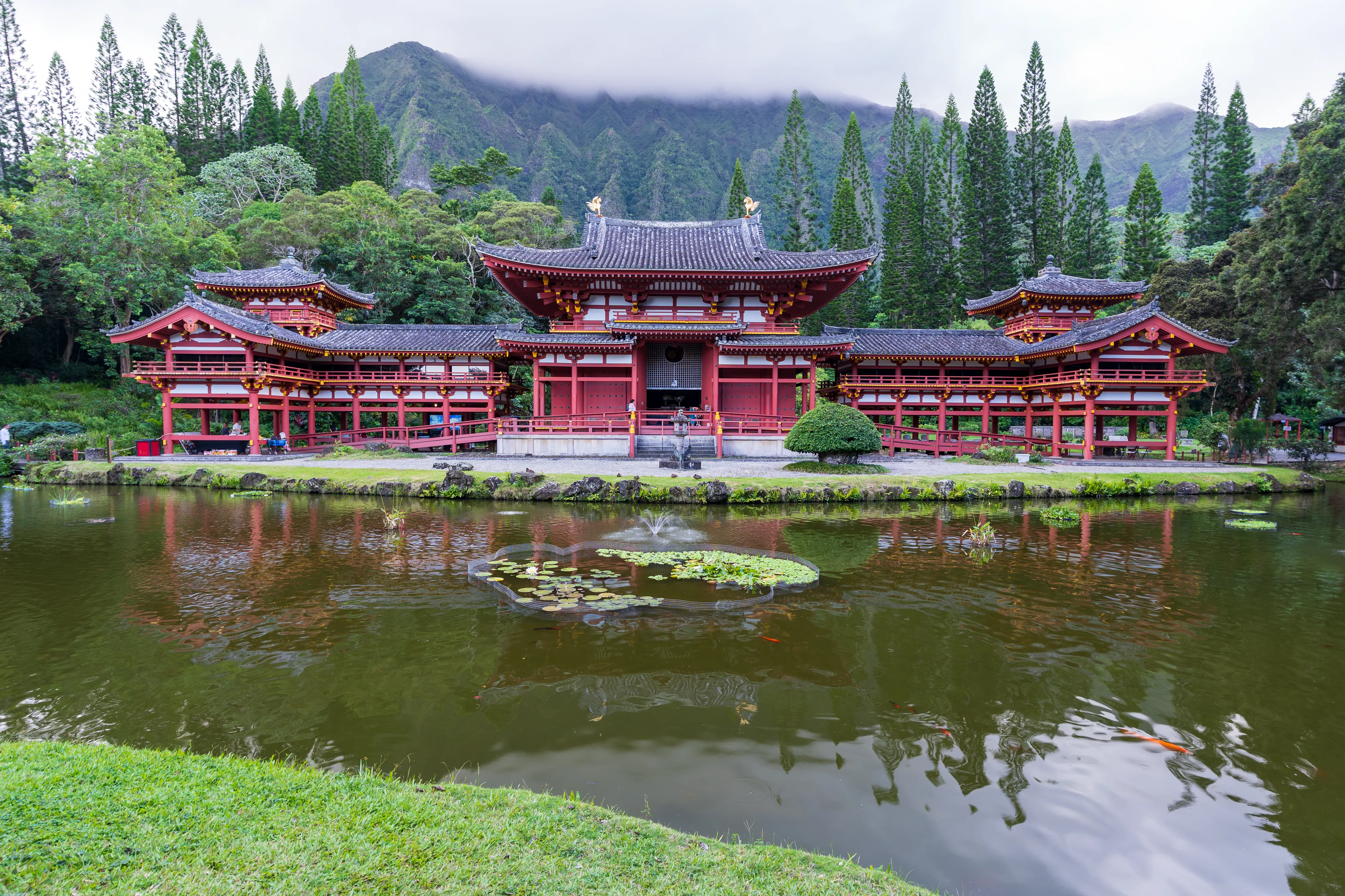 Von hier aus brechen wir zu einer Rundfahrt durch den östlichen Teil Oahus auf und fahren dafür an die nordöstliche Küste. Als Erstes besuchen wir den Byodo-in Tempel, einen schönen buddhistischen Tempel im japanischen Stil.