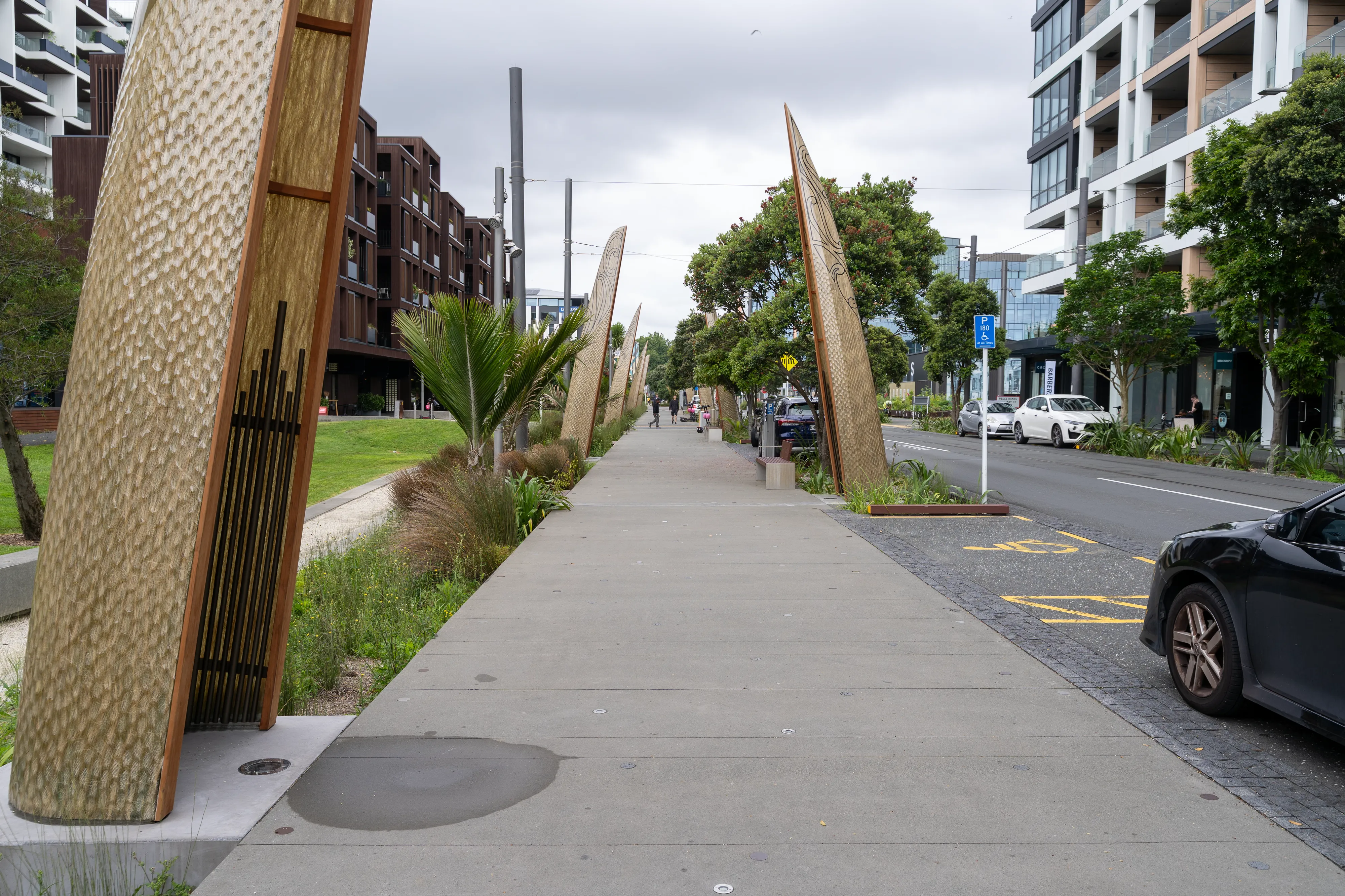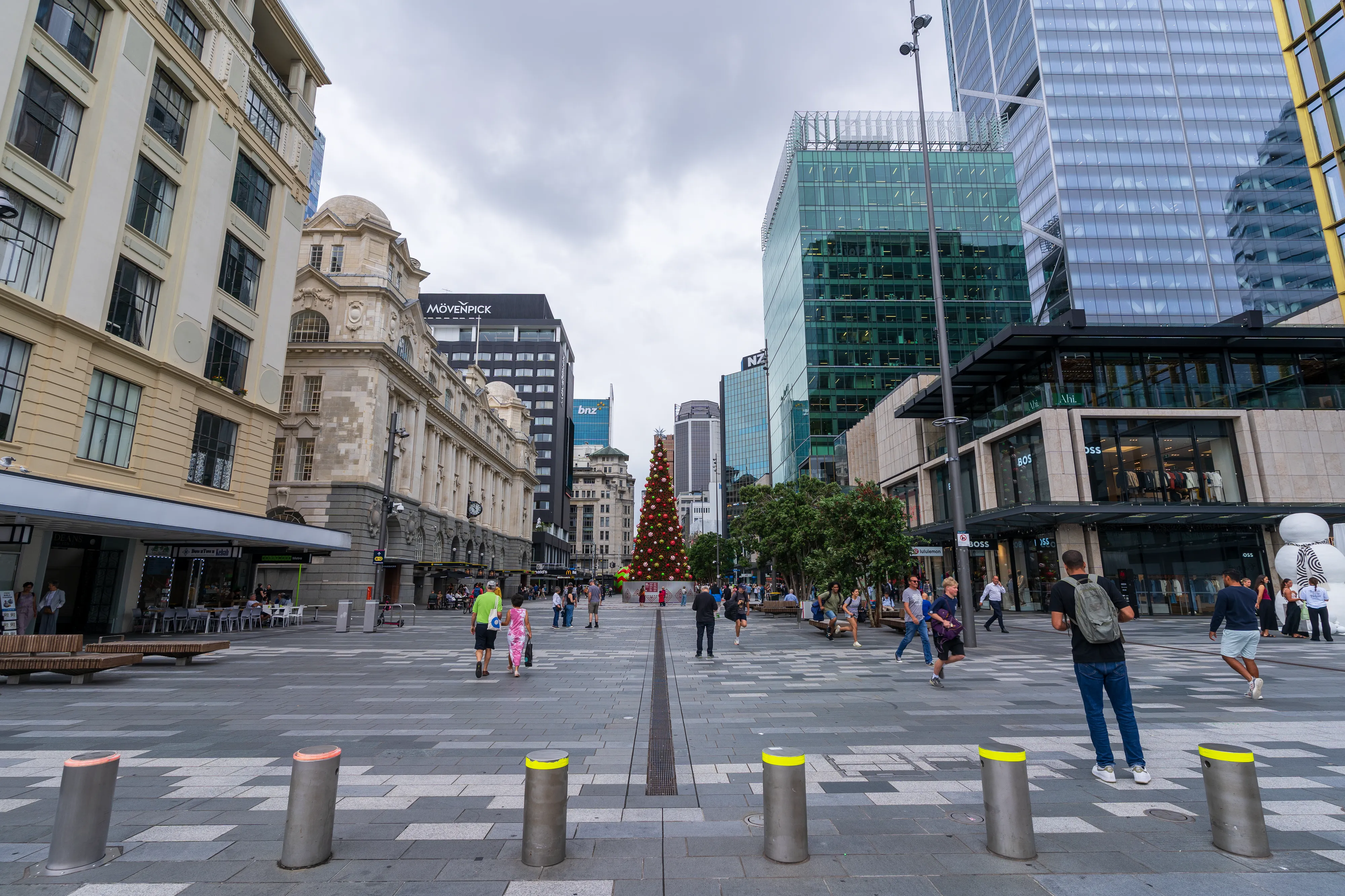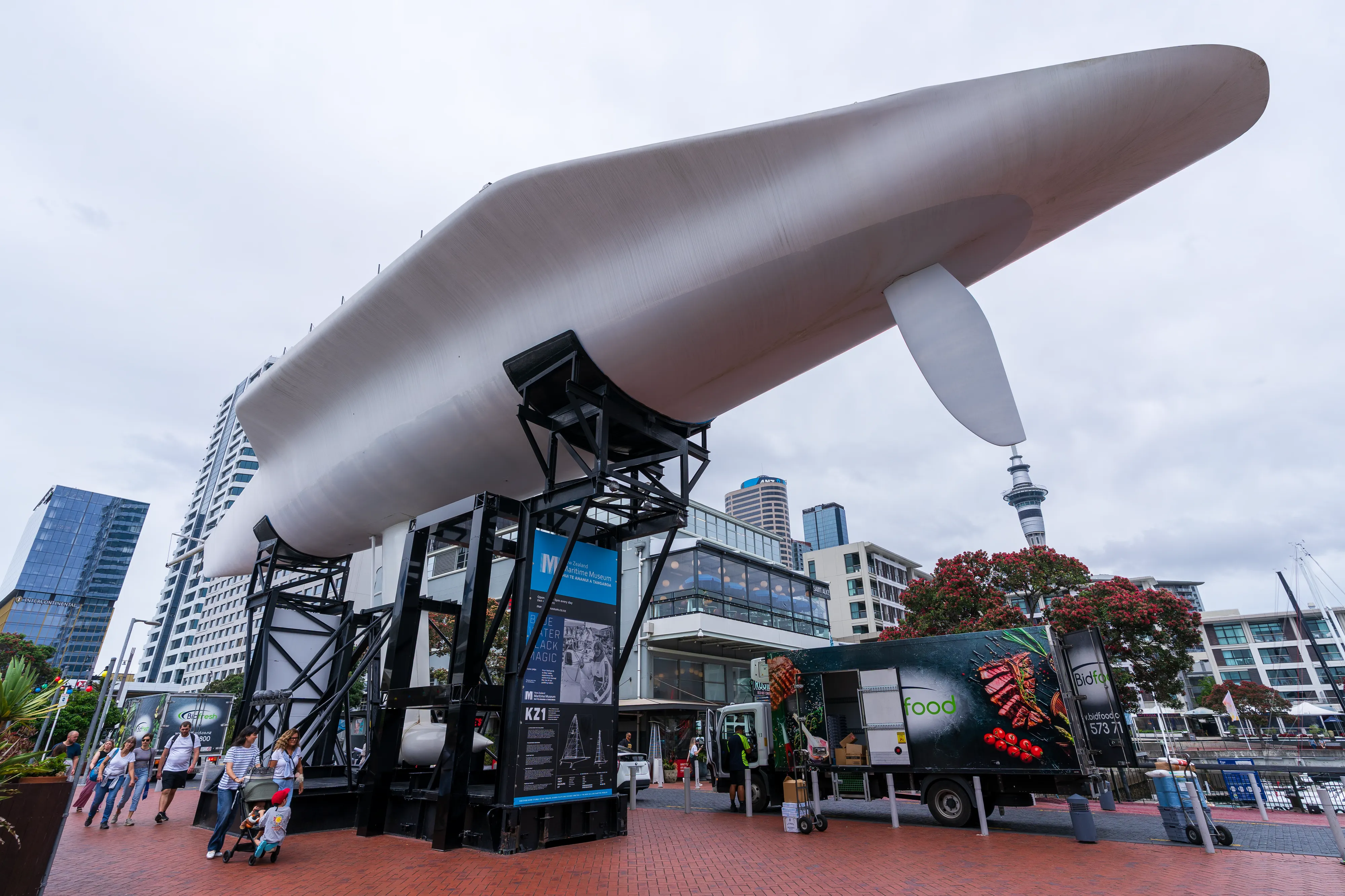 Am nächsten Morgen machen wir uns auf den Weg über die Queen Street zum eindrucksvollen, alten Ferry House im Viertel Britomart. Von dort aus geht es entlang des Hafens zum Karanga Place und Viaduct Harbour, mit einem Stopp beim Rumpf des riesigen Segelboots KZ1, bis hin zum Wynyard Quarter.